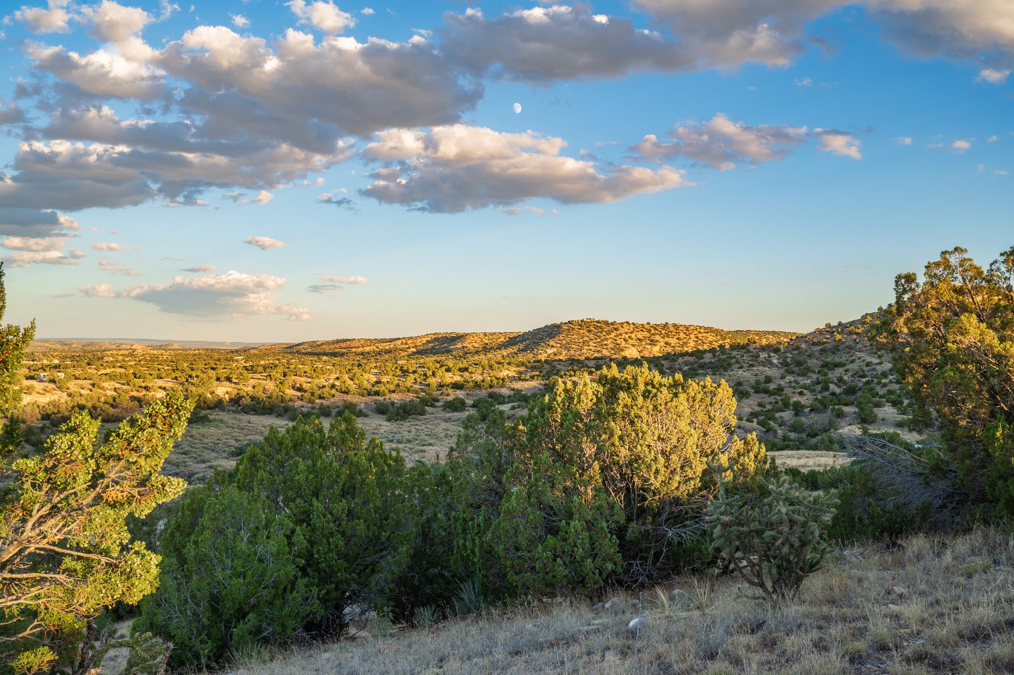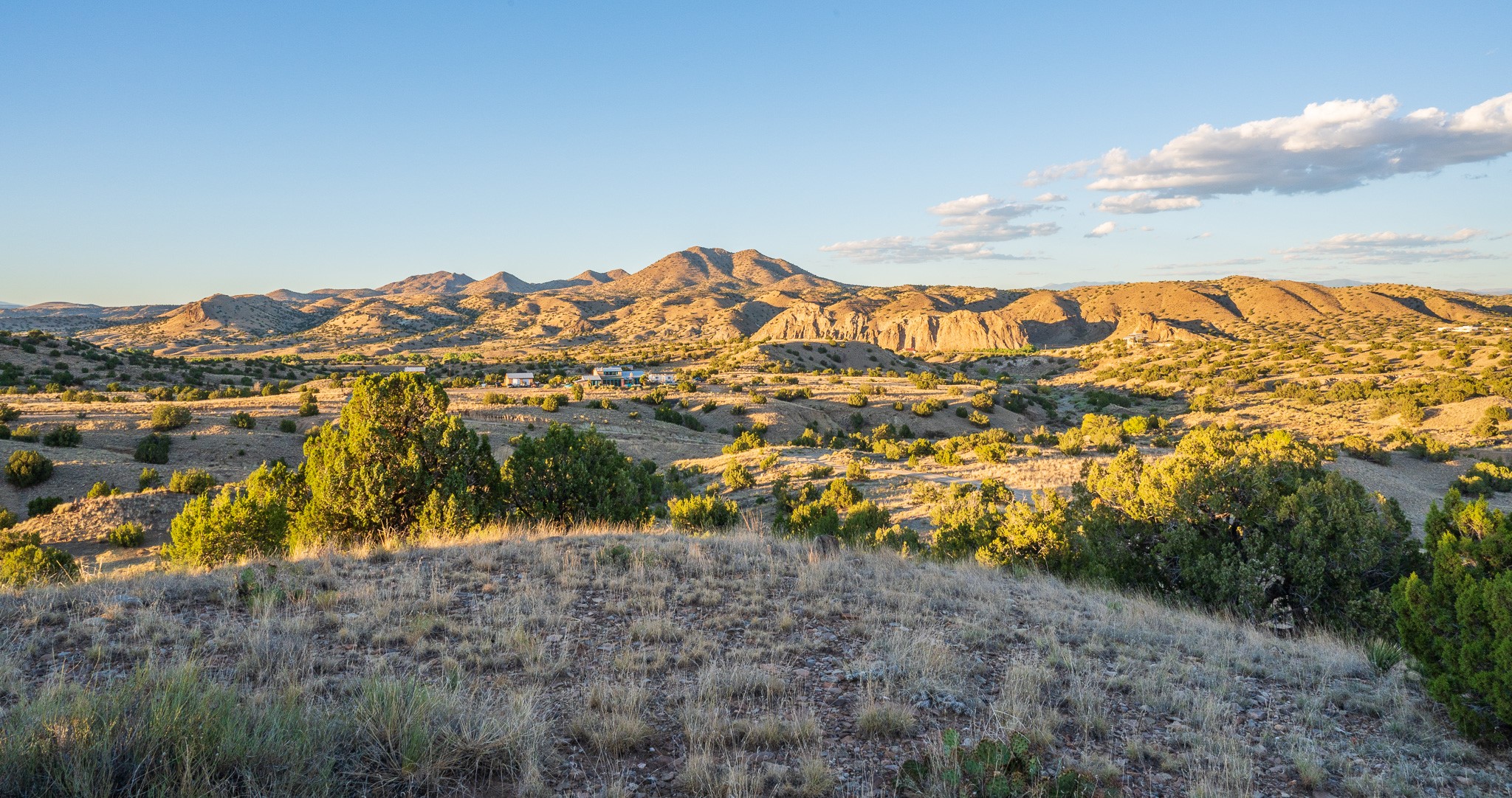 Views for miles from this off-grid 20 acres. Just 1.2 miles from the Highway 14, this property is minutes from pavement, near Cerrillos and Madrid for dining and entertainment, and about 25 minutes south of Santa Fe. A roughed-in driveway leads from White Wolf to a hilltop with an old adobe building in disrepair. Multiple elevated flat areas provide ideal building sites. Quiet and private, and ready for you to start your off-grid homestead. No restrictive covenants have been found. DO NOT ENTER THE BUILDING.