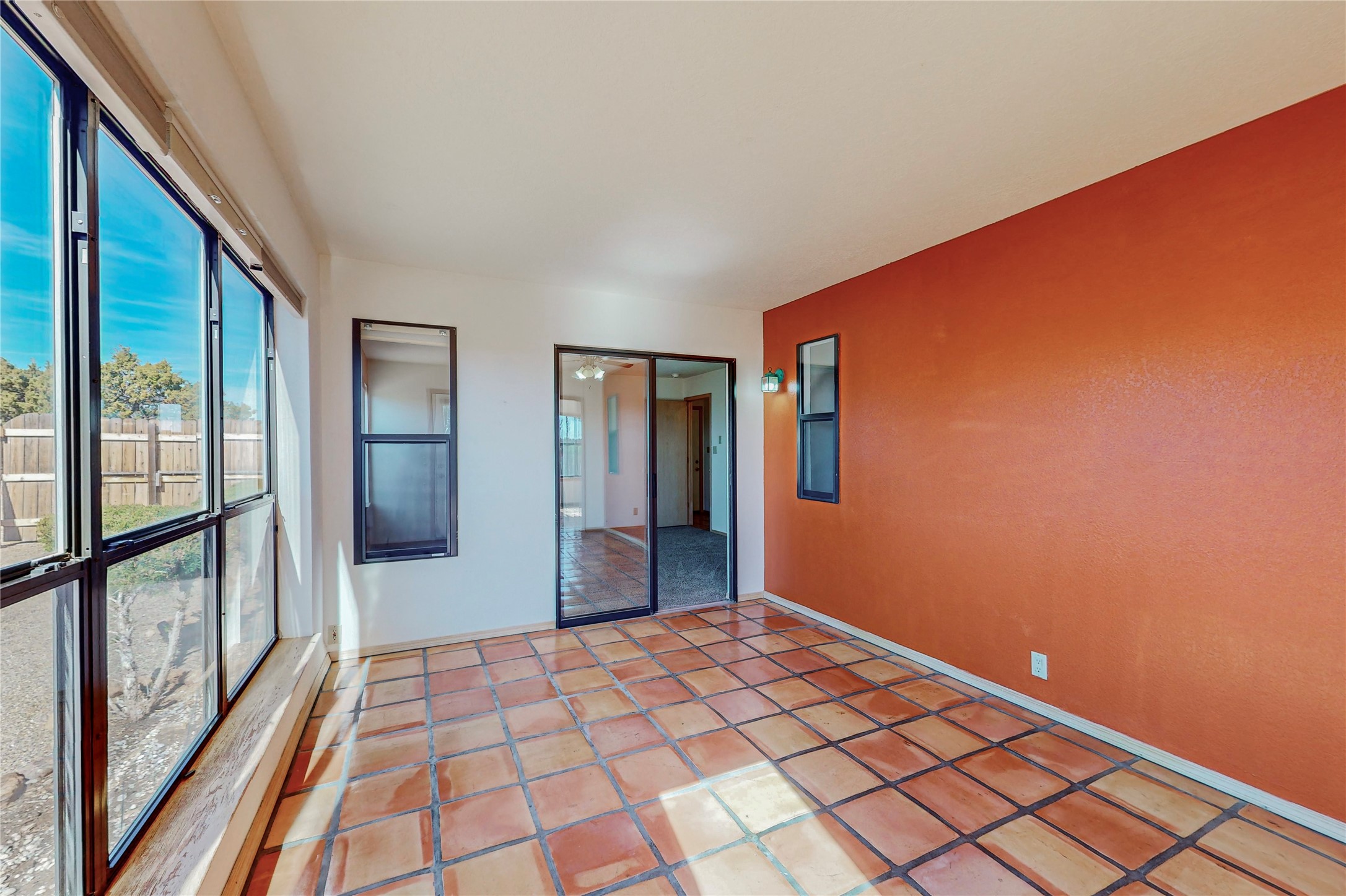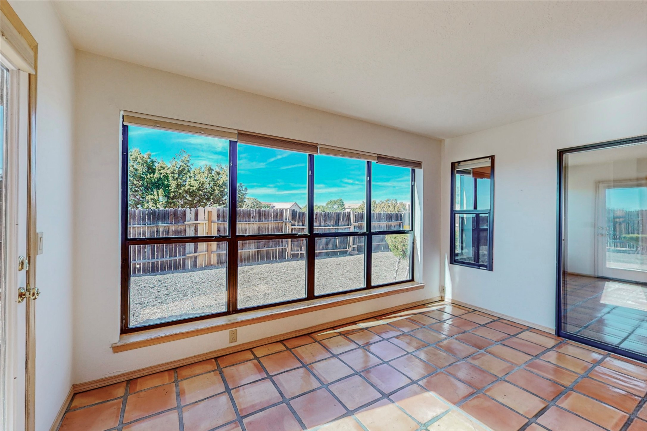 COME TO OUR OPEN HOUSE TODAY,SUNDAY NOVEMBER 12TH BETWEEN 1-4 P.M.Embrace the Santa Fe lifestyle in this beautiful two-bedroom, two-bathroom home designed in the classic pueblo style, situated on a 1.59-acre lot. At the heart of this home, a wood-burning fireplace has played a central role in countless family game nights and festive Christmases. The interior has a New Mexican ambiance, with features such as Saltillo tile, viga ceilings, and tasteful turquoise accents. Additionally, the family room is graced with elegant wooden pillars that pay homage to the rich traditions of Southwestern design. The kitchen has newer stove and refrigerator, offering ample pantry space and a window overlooking a charming enclosed front yard. From the kitchen next area is the house dining area, and through a sliding glass door, you'll find another enclosed yard space. The house has a sunroom with full glass windows that welcome natural light into every corner of this home. Nestled within the community of Eldorado, you'll have access to the exclusive amenities offered by this neighborhood including swimming pool, basketball & tennis courts, community center, dog park, and more. Eldorado has well-maintained paved walking trails that provide a picturesque environment for residents. Be sure to explore the El Dorado Farmer's market, where you can discover fresh, locally sourced produce. This property is just minutes away from restaurants, shopping center, pet store, Library and bank in the Algora Shopping center. Join the vibrant community of Eldorado, which was recognized as the #1 Best Place to Live in Santa Fe County by Niche in 2022.