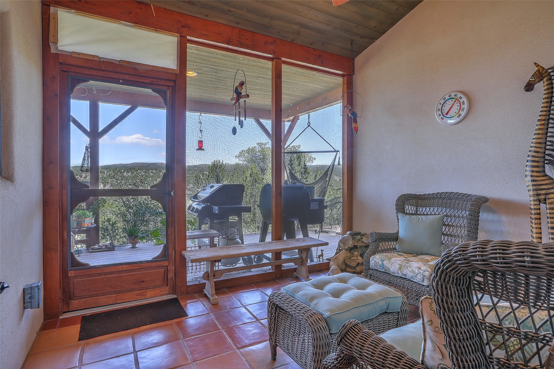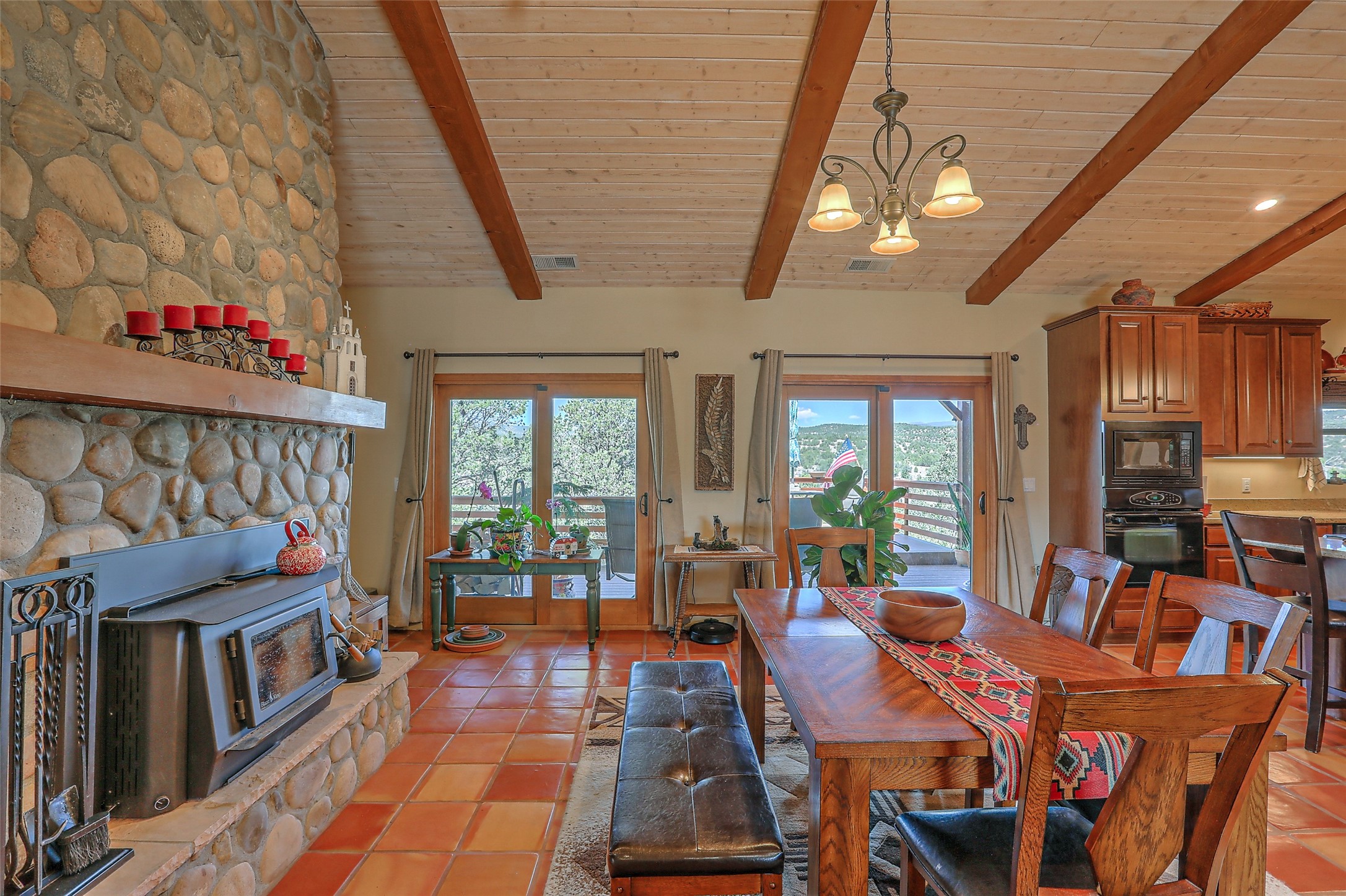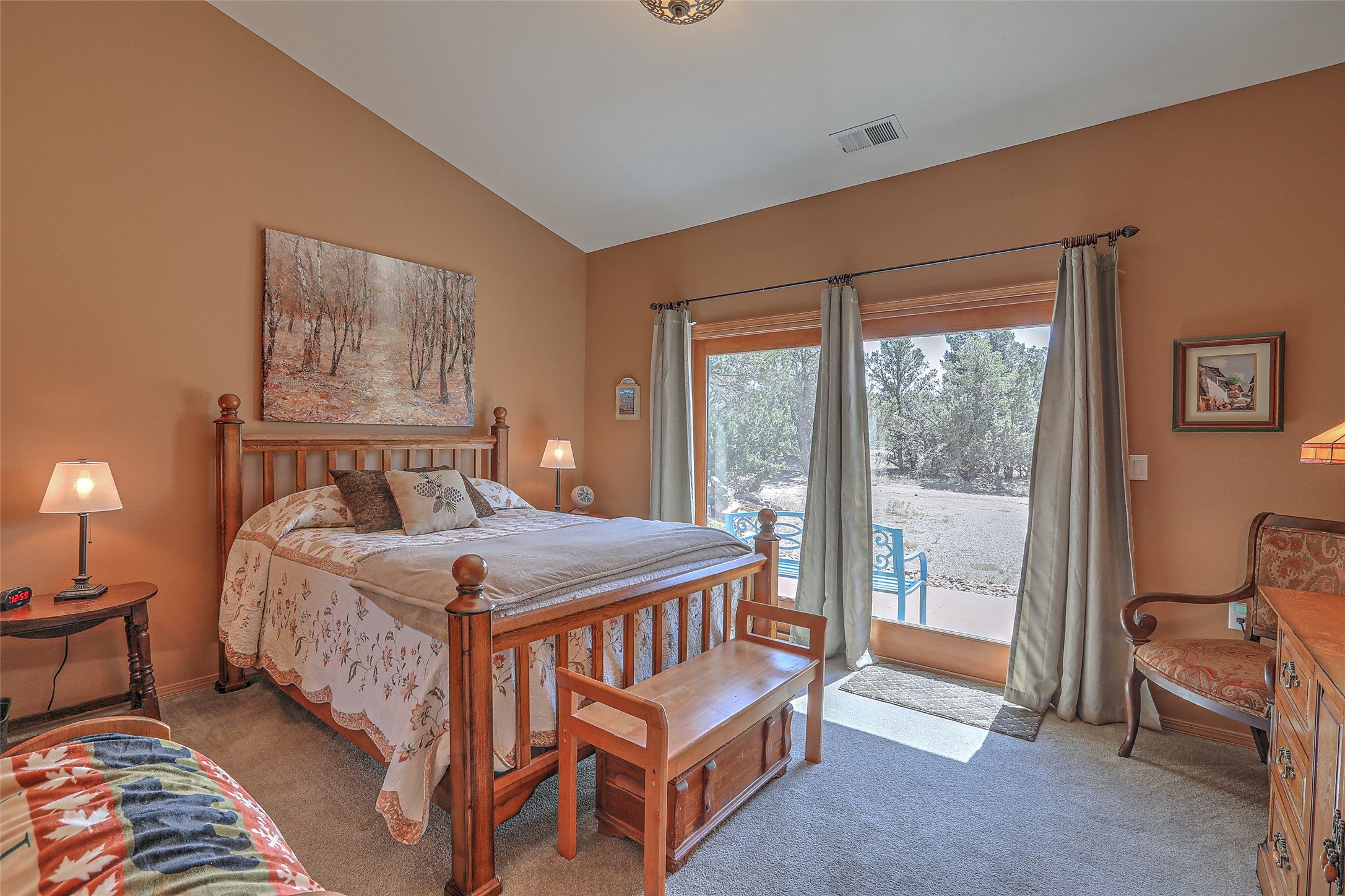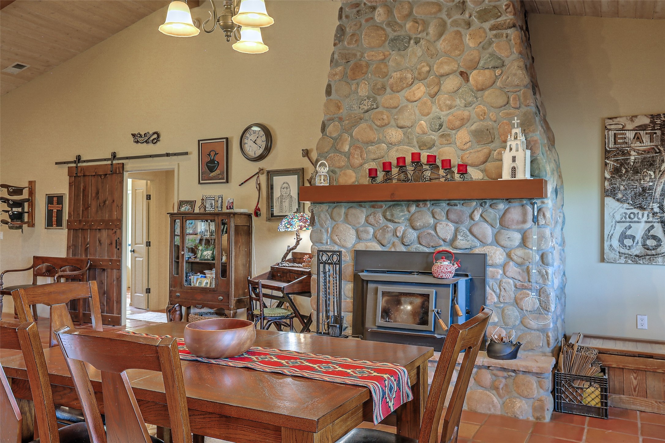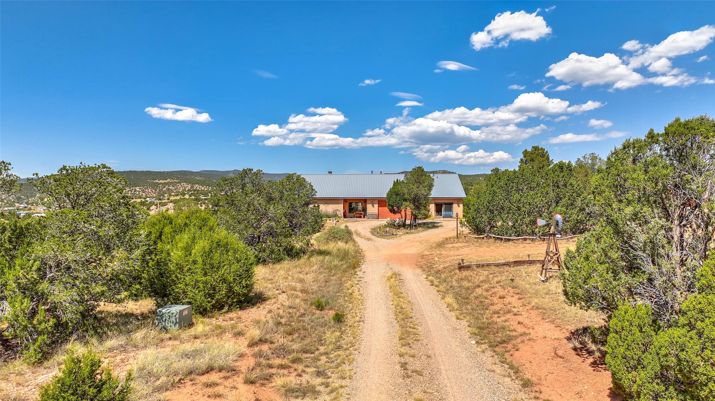 Namely apt as Casa Rio, with a beautiful meandering walk to the cliff of the Pecos River, this country home is also a short drive into Pecos local sites. Enjoy the night-sky! Enclosed Atrium. 7.5 acreage of this property with a new 280' studio/garage for your sheer talent--20x14 building constructed in 2022,concrete slab, underground electric, LED lighting, insulated, & 8/12 pitch metal roof with attic storage. Casa Rio has an added 10X10 Deck Extension & Railings to match existing deck. Hike by Foot & Equestrian Trails to the cliff along the Pecos River. The trail runs along the riverbank on BLM property 1/2 mile to a meadow on river front. Approximately 5 miles of adjoining public foot & equestrian trails around the property. The RV Site, a 30-Amp RV outlet installed at corner of house near water spicket & septic cleanout to allow for full hook-up RV Site. And there is a Dog Yard!!! Directly outside the primary bedroom. The water well is 100' deep and taps into 280' deep aquifer. An added surge protector, Sub Drive Circuit board was replaced 12.09.21. Roof includes all metal vent flashings reworked & sealed with "NP1" (high grade) caulk. Added "Dektite" neoprene plumbing vent flashings to all PVC pipes. All vents were painted to match. An added metal chimney cap. The fireplace was remodeled with a "Blaze King" wood-burning insert installed by Dreamstyle Remodeling on 03.18.20. 300-gallon propane tank usually filled twice a year, approximately $870.00+ each time. 2-3 cords of local wood a year. Internet service is Plateau or Hughsnet. New Fiberoptic install. Mora-San Miguel Electric Cooperative. The kitchen is a dream with all the amenities for cooking & storage. The gas range was replaced with an electric range, existing gas line is capped off. Primary bedroom suite is on the opposite end of the home from Jack&Jill bathroom w/2 bedrooms. Driveway, parking areas, & ground area around house & studio is sand/rock & does not get muddy. Enjoy the majesty!!