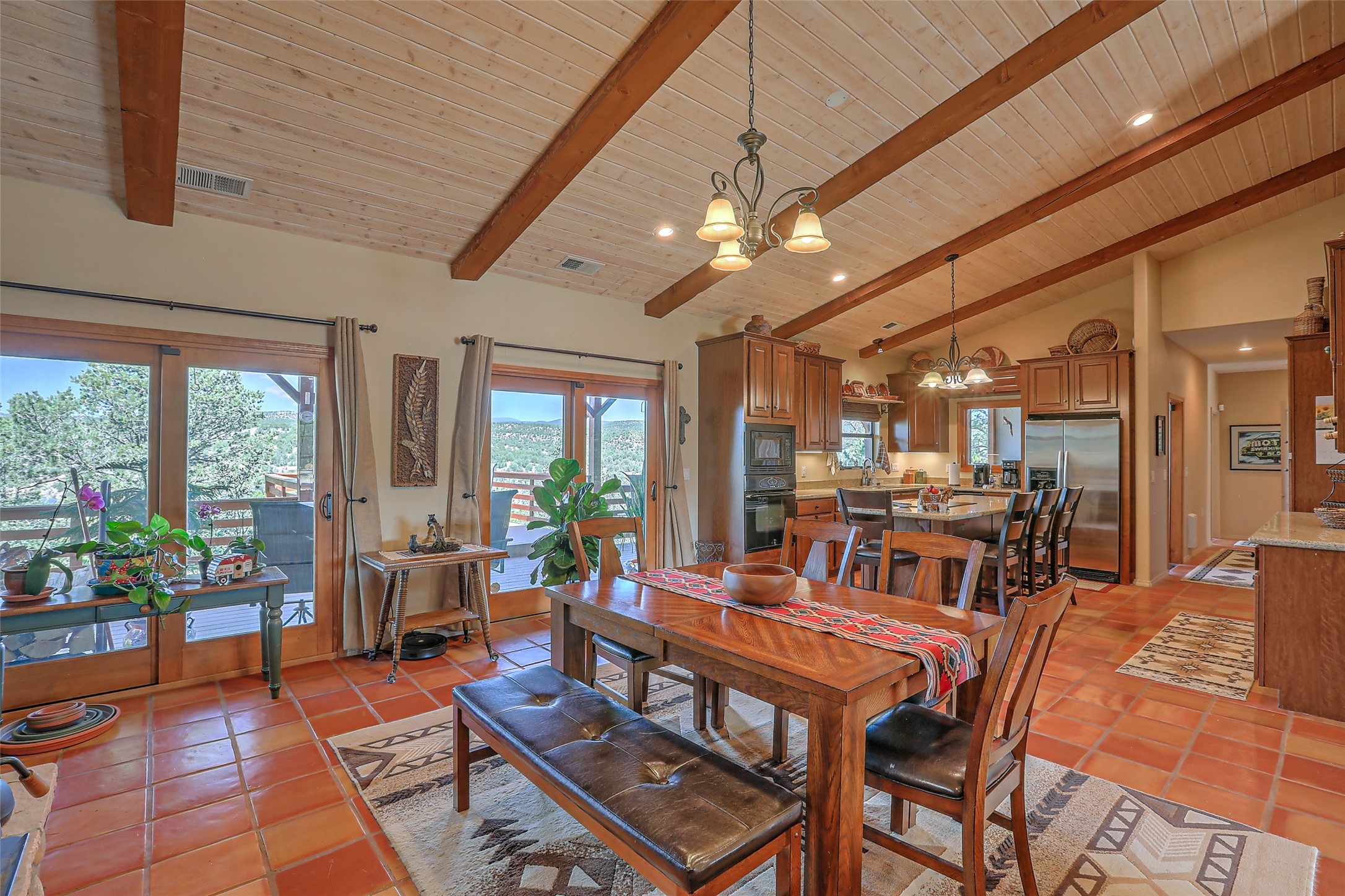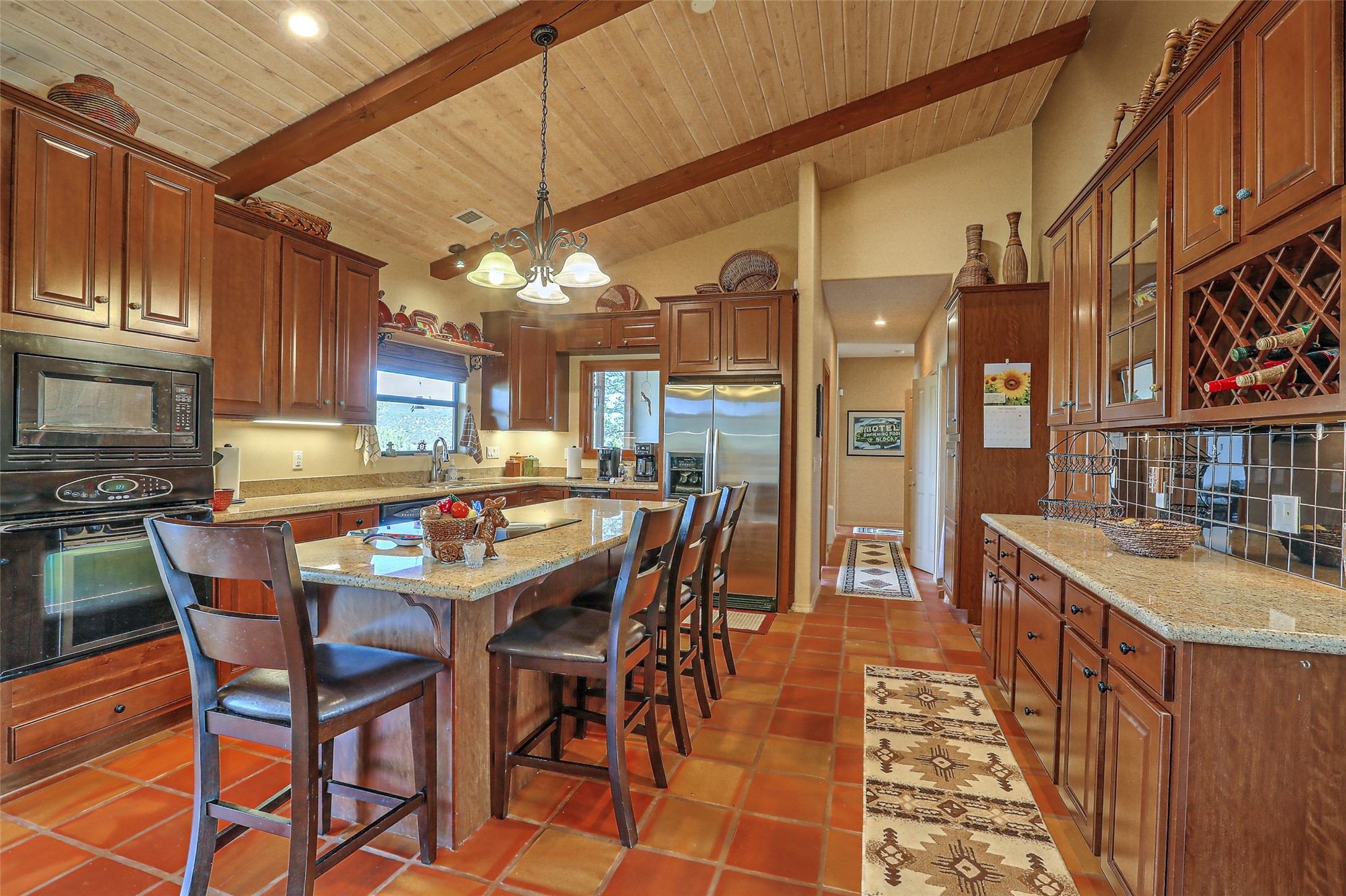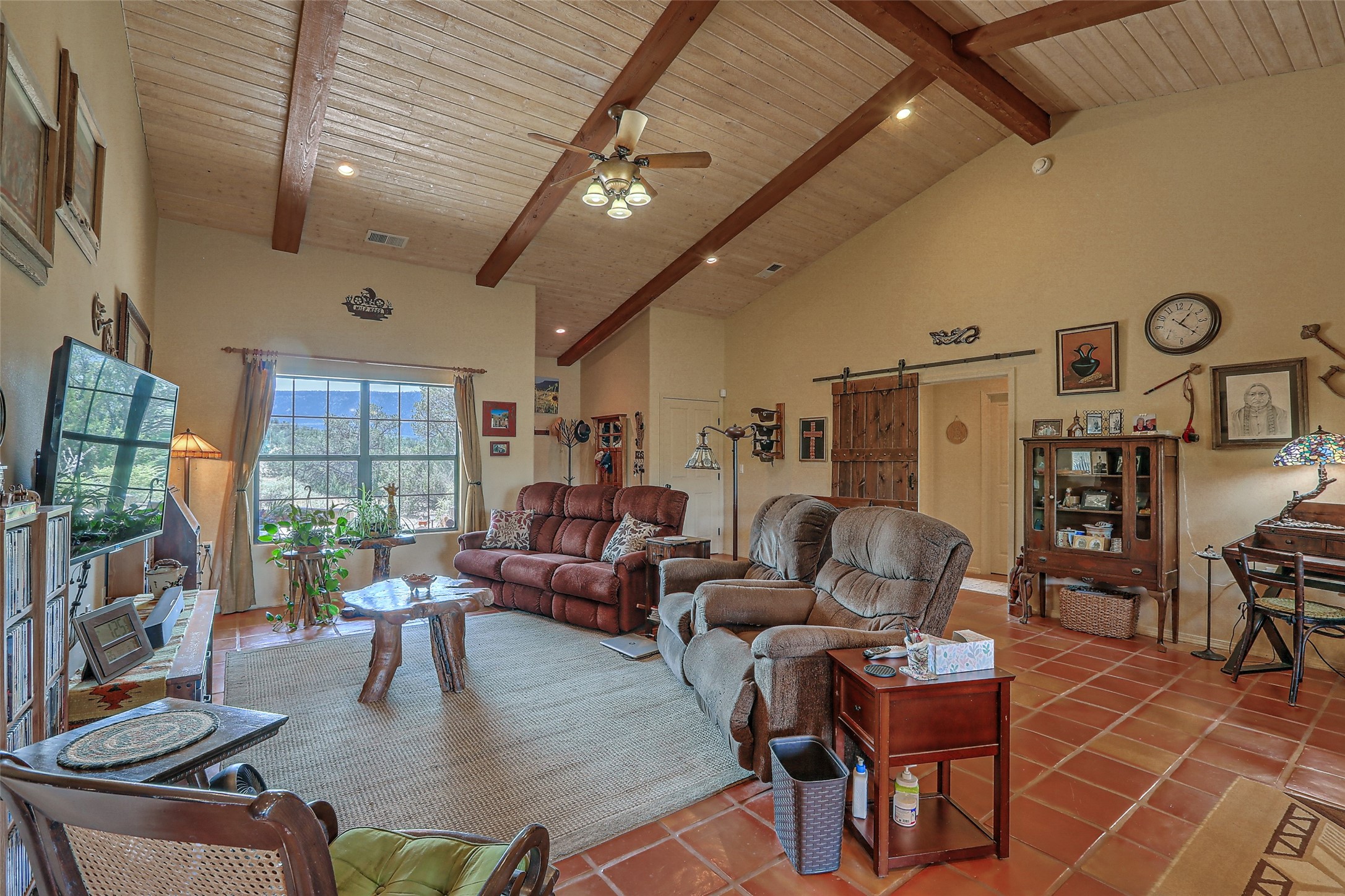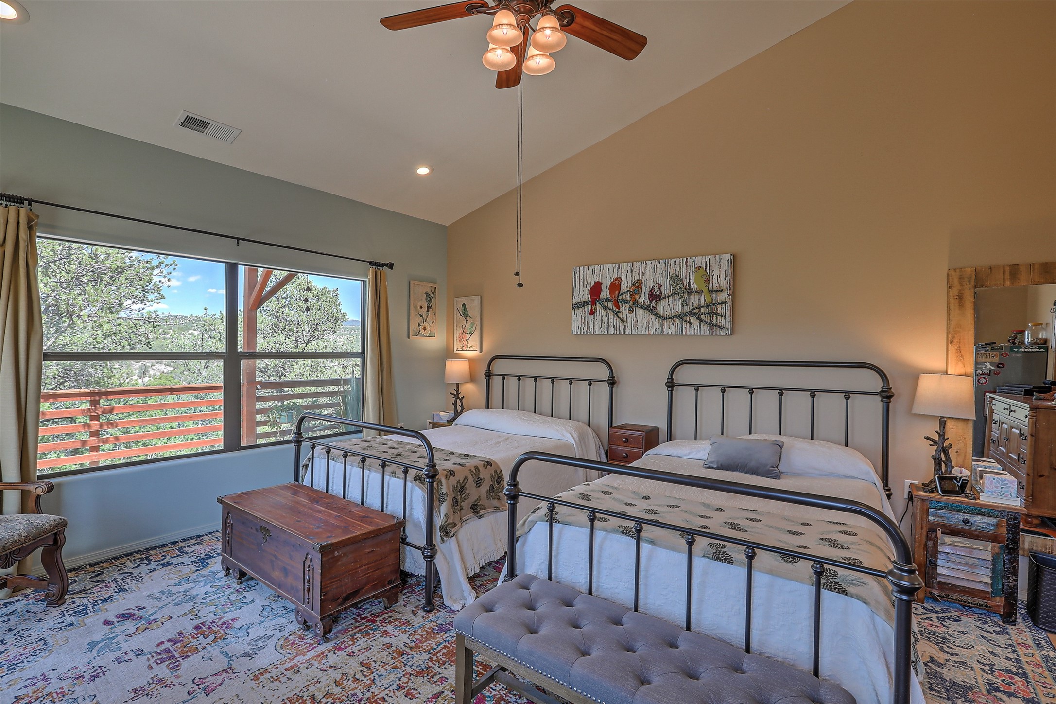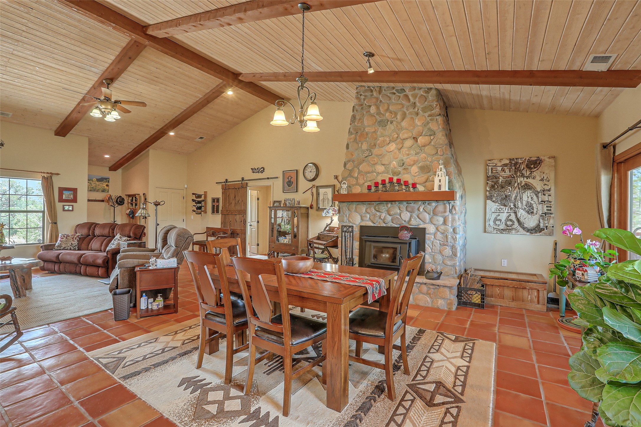 Namely apt as Casa Rio, with a beautiful meandering walk to the cliff of the Pecos River, this country home is also a short drive into Pecos local sites. Enjoy the night-sky! Enclosed Atrium. 7.5 acreage of this property with a new 280' studio/garage for your sheer talent--20x14 building constructed in 2022,concrete slab, underground electric, LED lighting, insulated, & 8/12 pitch metal roof with attic storage. Casa Rio has an added 10X10 Deck Extension & Railings to match existing deck. Hike by Foot & Equestrian Trails to the cliff along the Pecos River. The trail runs along the riverbank on BLM property 1/2 mile to a meadow on river front. Approximately 5 miles of adjoining public foot & equestrian trails around the property. The RV Site, a 30-Amp RV outlet installed at corner of house near water spicket & septic cleanout to allow for full hook-up RV Site. And there is a Dog Yard!!! Directly outside the primary bedroom. The water well is 100' deep and taps into 280' deep aquifer. An added surge protector, Sub Drive Circuit board was replaced 12.09.21. Roof includes all metal vent flashings reworked & sealed with "NP1" (high grade) caulk. Added "Dektite" neoprene plumbing vent flashings to all PVC pipes. All vents were painted to match. An added metal chimney cap. The fireplace was remodeled with a "Blaze King" wood-burning insert installed by Dreamstyle Remodeling on 03.18.20. 300-gallon propane tank usually filled twice a year, approximately $870.00+ each time. 2-3 cords of local wood a year. Internet service is Plateau or Hughsnet. New Fiberoptic install. Mora-San Miguel Electric Cooperative. The kitchen is a dream with all the amenities for cooking & storage. The gas range was replaced with an electric range, existing gas line is capped off. Primary bedroom suite is on the opposite end of the home from Jack&Jill bathroom w/2 bedrooms. Driveway, parking areas, & ground area around house & studio is sand/rock & does not get muddy. Enjoy the majesty!!