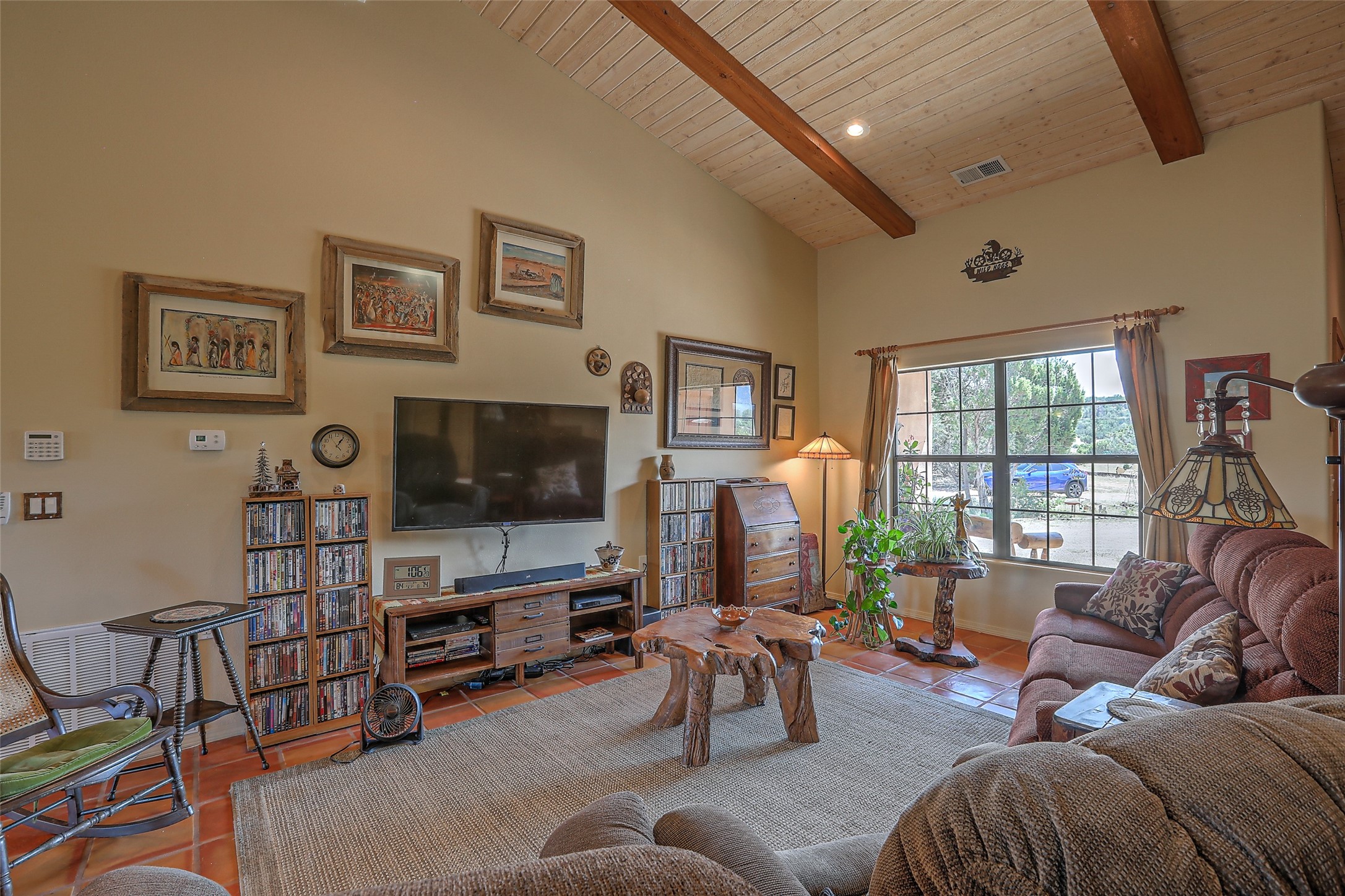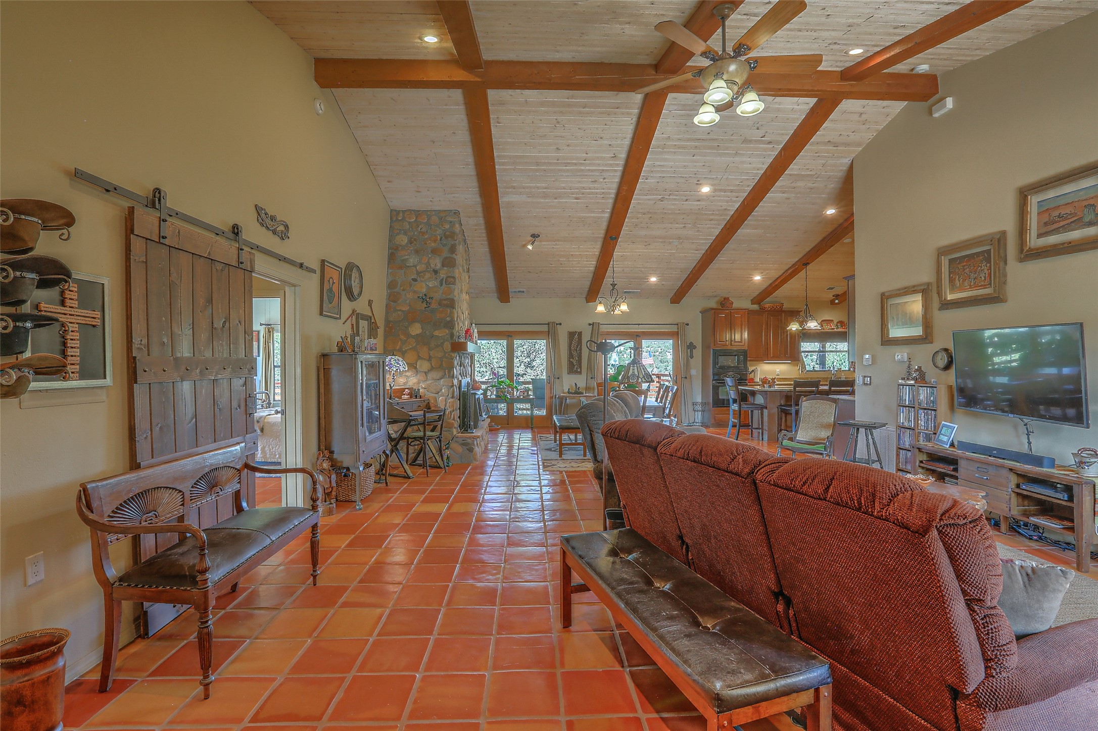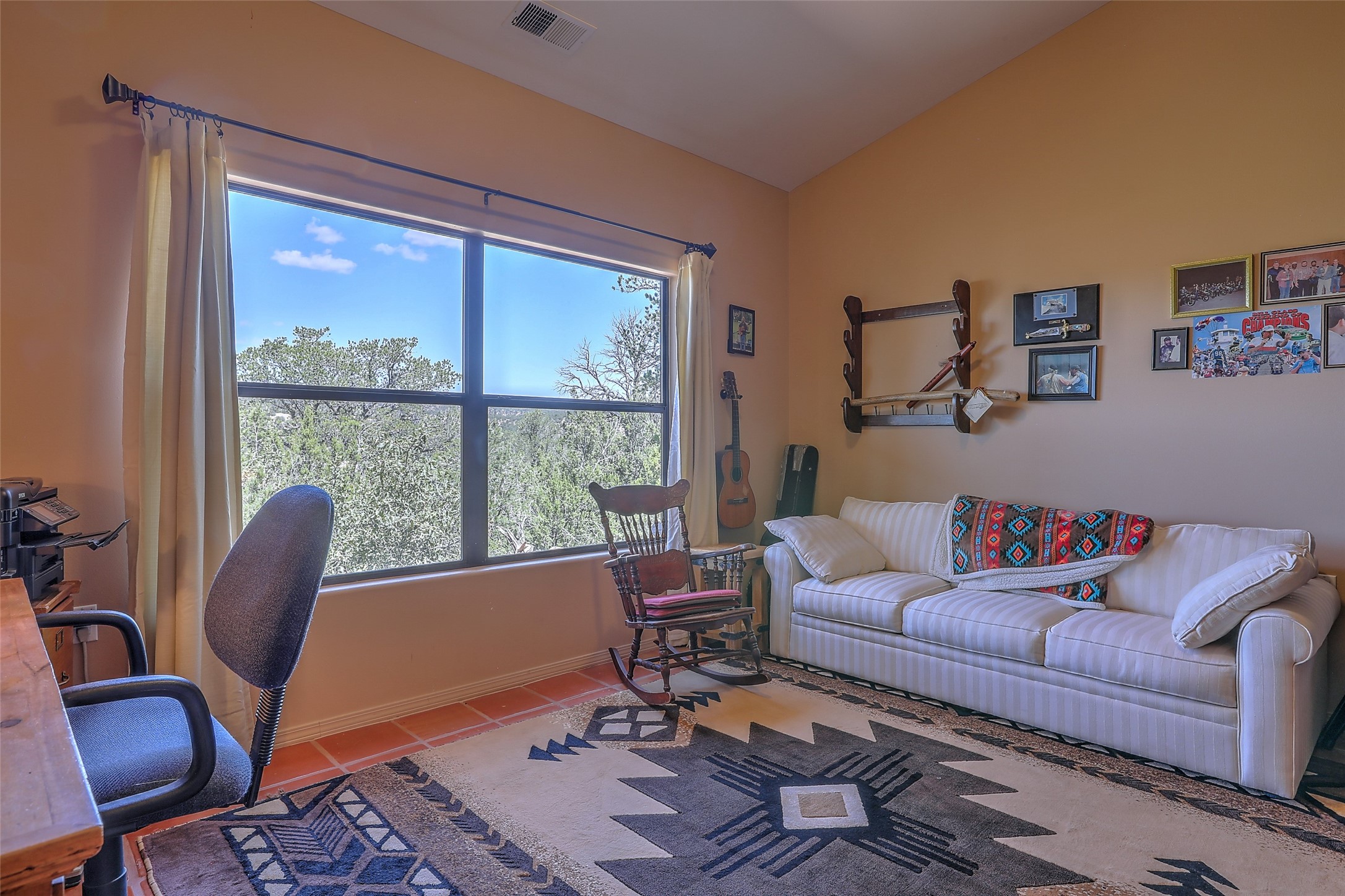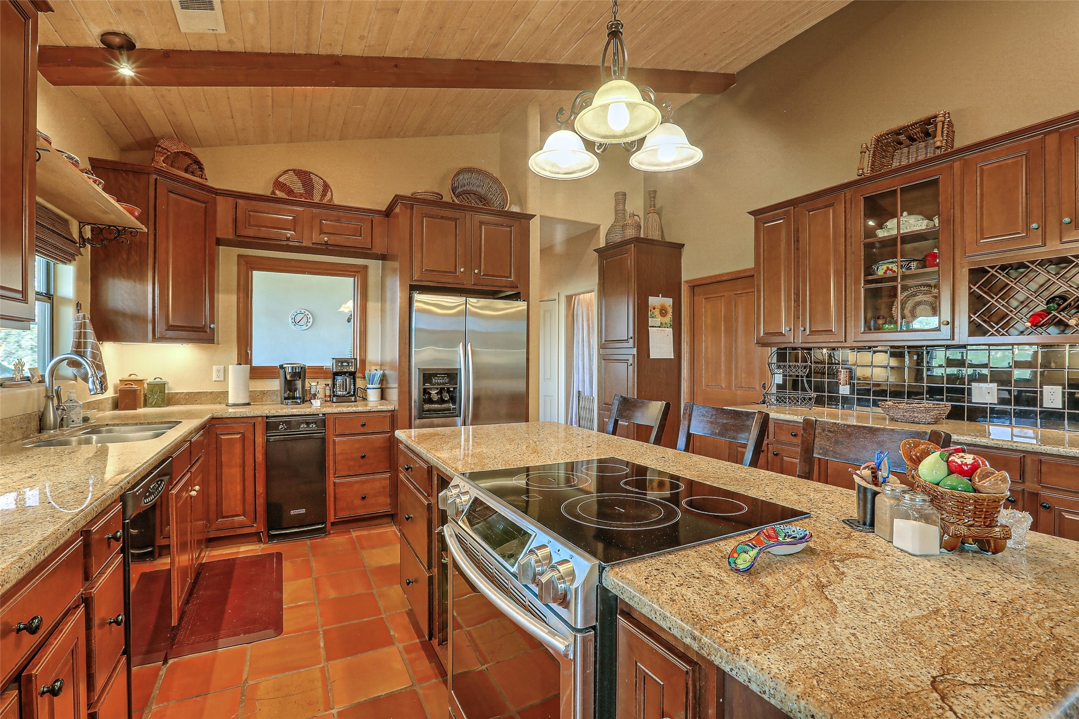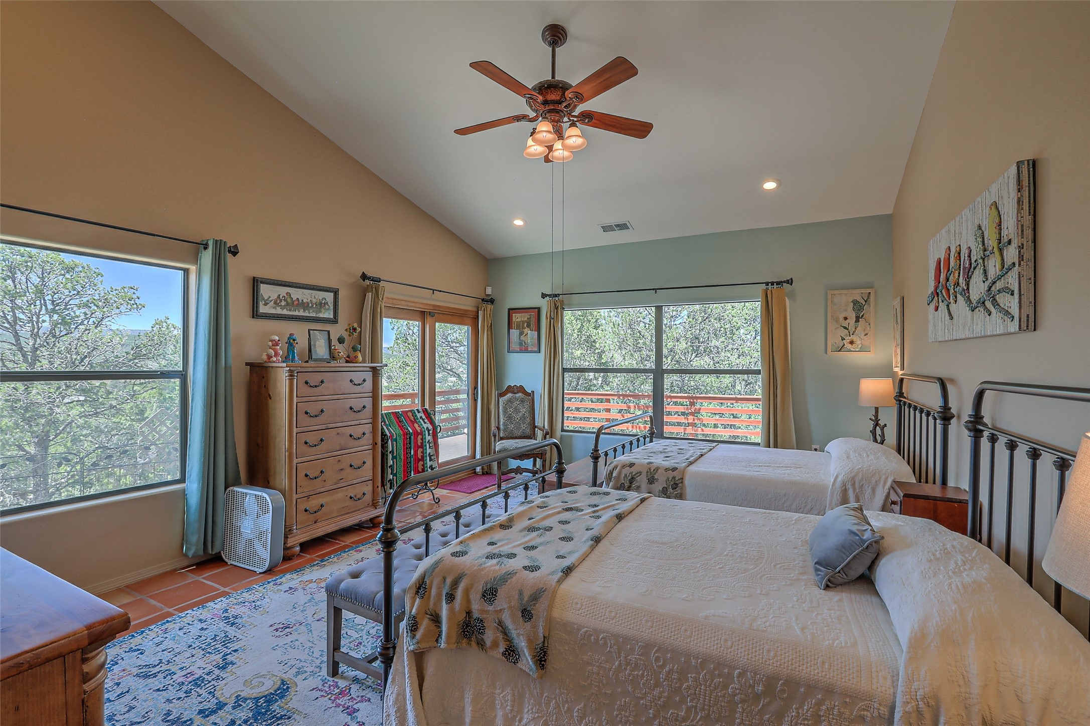 Namely apt as Casa Rio, with a beautiful meandering walk to the cliff of the Pecos River, this country home is also a short drive into Pecos local sites. Enjoy the night-sky! Enclosed Atrium. 7.5 acreage of this property with a new 280' studio/garage for your sheer talent--20x14 building constructed in 2022,concrete slab, underground electric, LED lighting, insulated, & 8/12 pitch metal roof with attic storage. Casa Rio has an added 10X10 Deck Extension & Railings to match existing deck. Hike by Foot & Equestrian Trails to the cliff along the Pecos River. The trail runs along the riverbank on BLM property 1/2 mile to a meadow on river front. Approximately 5 miles of adjoining public foot & equestrian trails around the property. The RV Site, a 30-Amp RV outlet installed at corner of house near water spicket & septic cleanout to allow for full hook-up RV Site. And there is a Dog Yard!!! Directly outside the primary bedroom. The water well is 100' deep and taps into 280' deep aquifer. An added surge protector, Sub Drive Circuit board was replaced 12.09.21. Roof includes all metal vent flashings reworked & sealed with "NP1" (high grade) caulk. Added "Dektite" neoprene plumbing vent flashings to all PVC pipes. All vents were painted to match. An added metal chimney cap. The fireplace was remodeled with a "Blaze King" wood-burning insert installed by Dreamstyle Remodeling on 03.18.20. 300-gallon propane tank usually filled twice a year, approximately $870.00+ each time. 2-3 cords of local wood a year. Internet service is Plateau or Hughsnet. New Fiberoptic install. Mora-San Miguel Electric Cooperative. The kitchen is a dream with all the amenities for cooking & storage. The gas range was replaced with an electric range, existing gas line is capped off. Primary bedroom suite is on the opposite end of the home from Jack&Jill bathroom w/2 bedrooms. Driveway, parking areas, & ground area around house & studio is sand/rock & does not get muddy. Enjoy the majesty!!