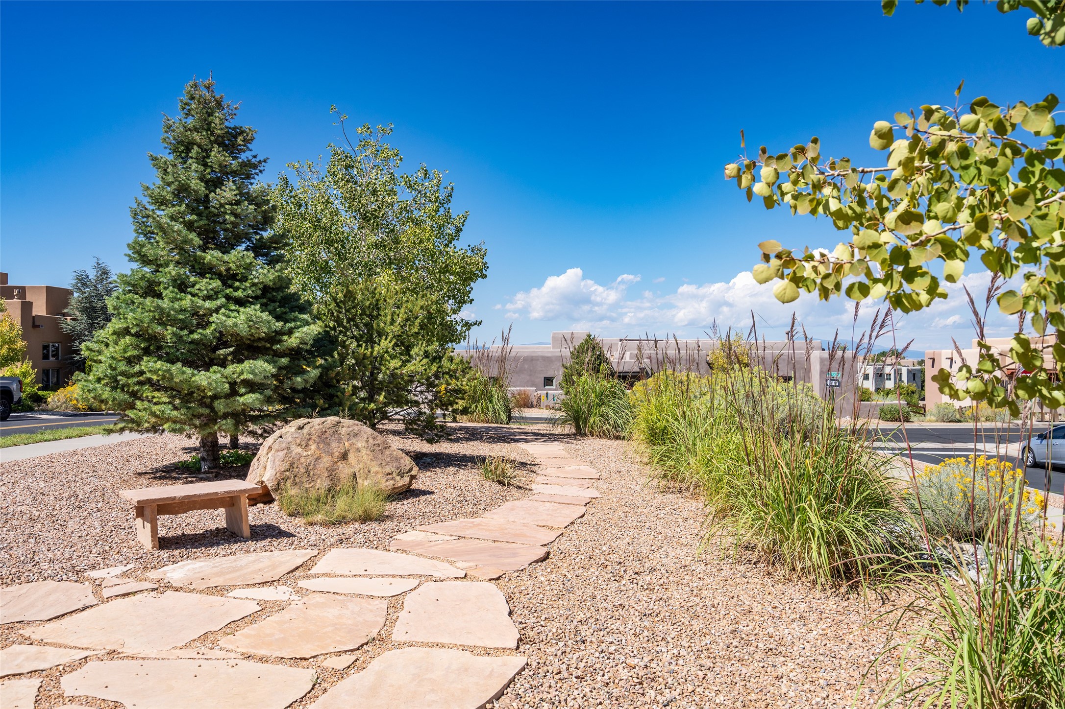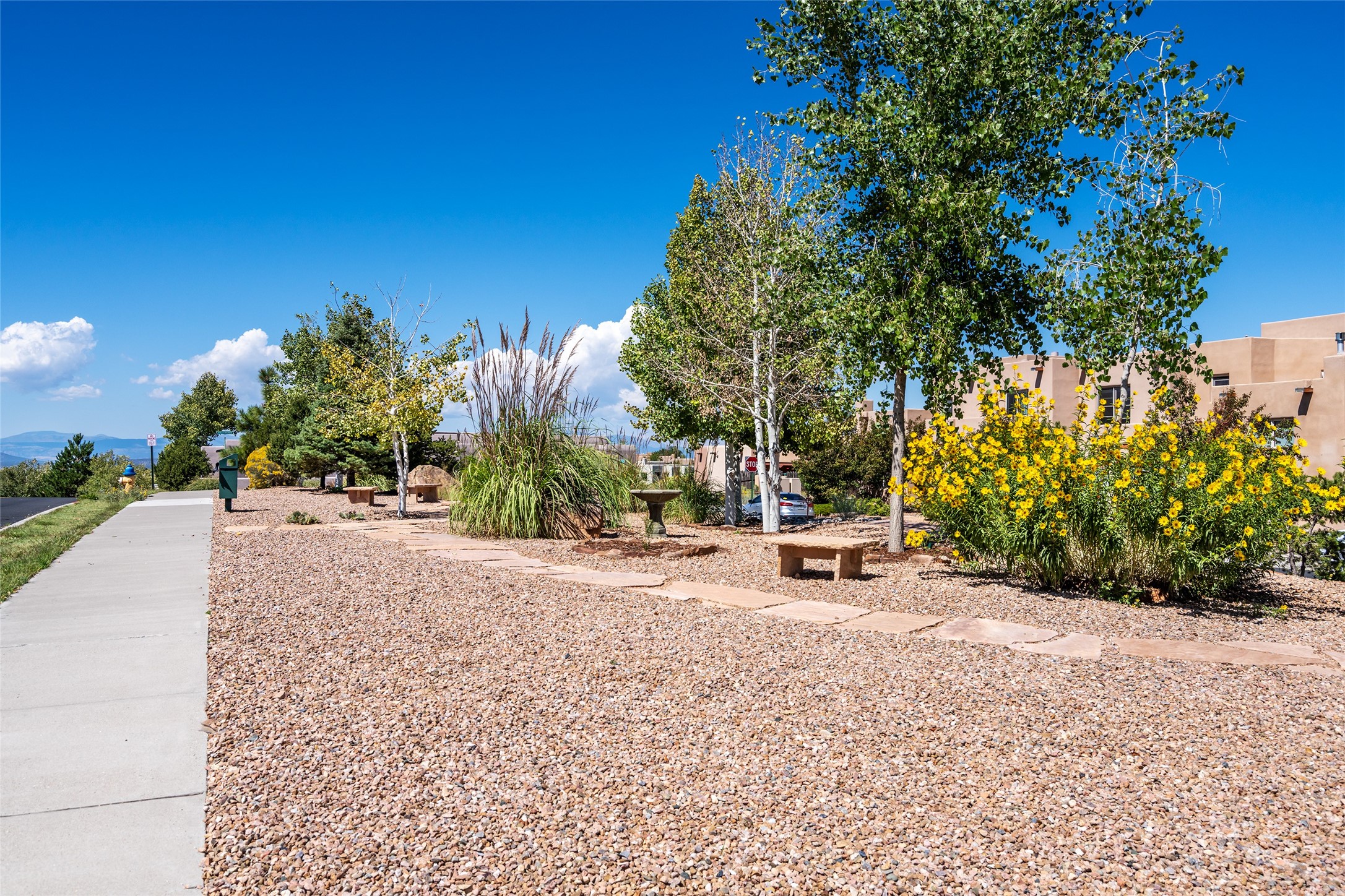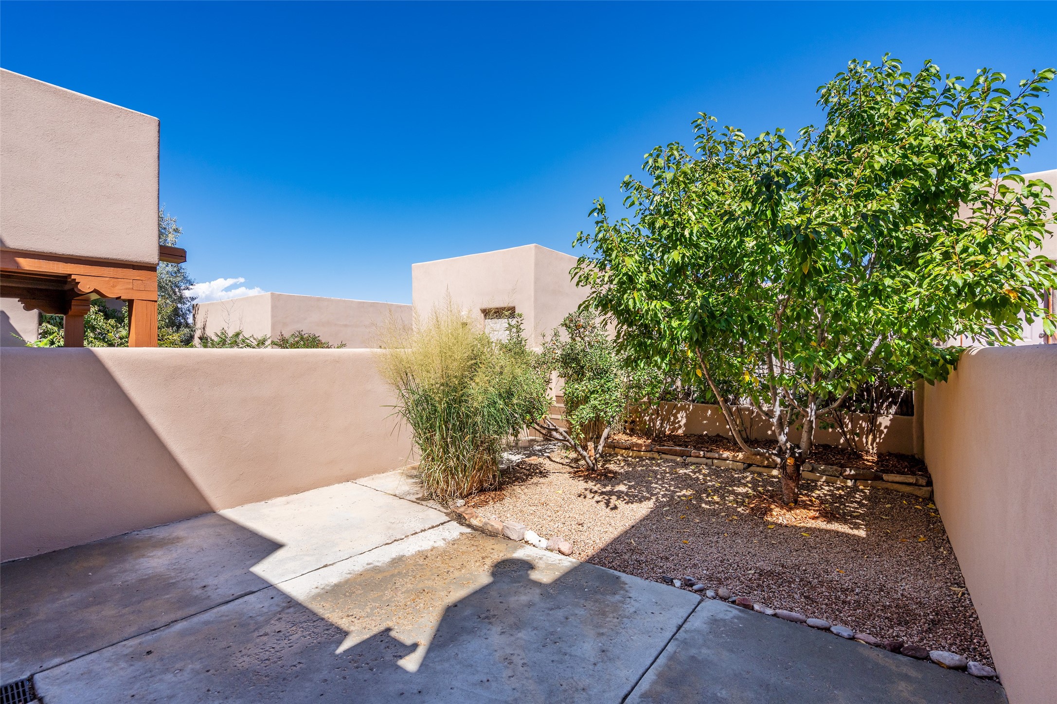 Adorable townhome in Aldea, awaiting its new owners! Introducing 10 Calle Plazuela, a 2-bedroom, 1.5 bathroom townhome nestled in the heart of Aldea de Santa Fe. Located 8 miles from the historical Santa Fe Plaza, this property presents an exceptional opportunity to live in a vibrant community surrounded by natural beauty and a plethora of amenities. As you step inside, you are greeted by an open and airy floor plan, thoughtfully designed to maximize space and functionality. On the main floor, enter an inviting living area, kitchen, bathroom, and laundry room with new floors and freshly painted walls. Upstairs, you will find both bedrooms with brand new carpet, an abundance of natural light and beautiful evening sunset views from the front bedroom. From the kitchen into the backyard is a courtyard with mature trees, including an apple tree. A private patio awaits, ideal for al fresco dining or enjoying a morning cup of coffee. The meticulously landscaped courtyard offers a serene retreat where you can relax and rejuvenate amidst the picturesque surroundings. 10 Calle Plazuela is ideally located within the desirable Aldea community, known for its stunning views, 13 miles of walking trails, and a sense of tranquility. Aldea residents enjoy access to a community event plaza, clubhouse, tennis courts, and basketball courts, fostering a sense of community and an active lifestyle. Schedule a tour today!