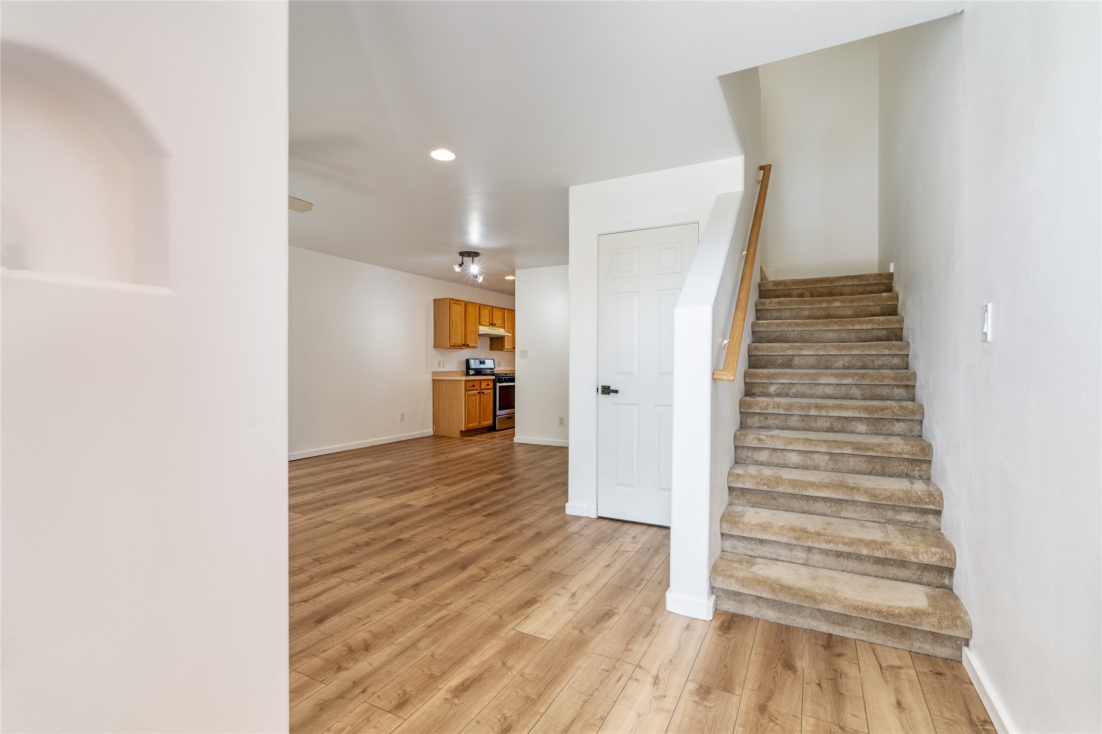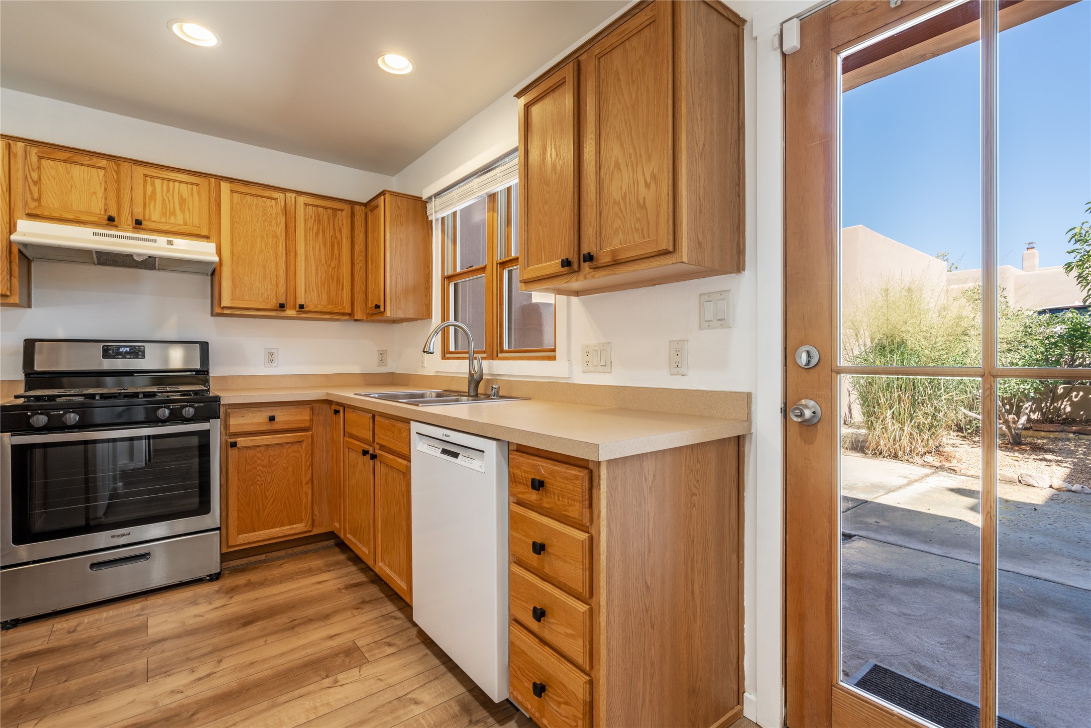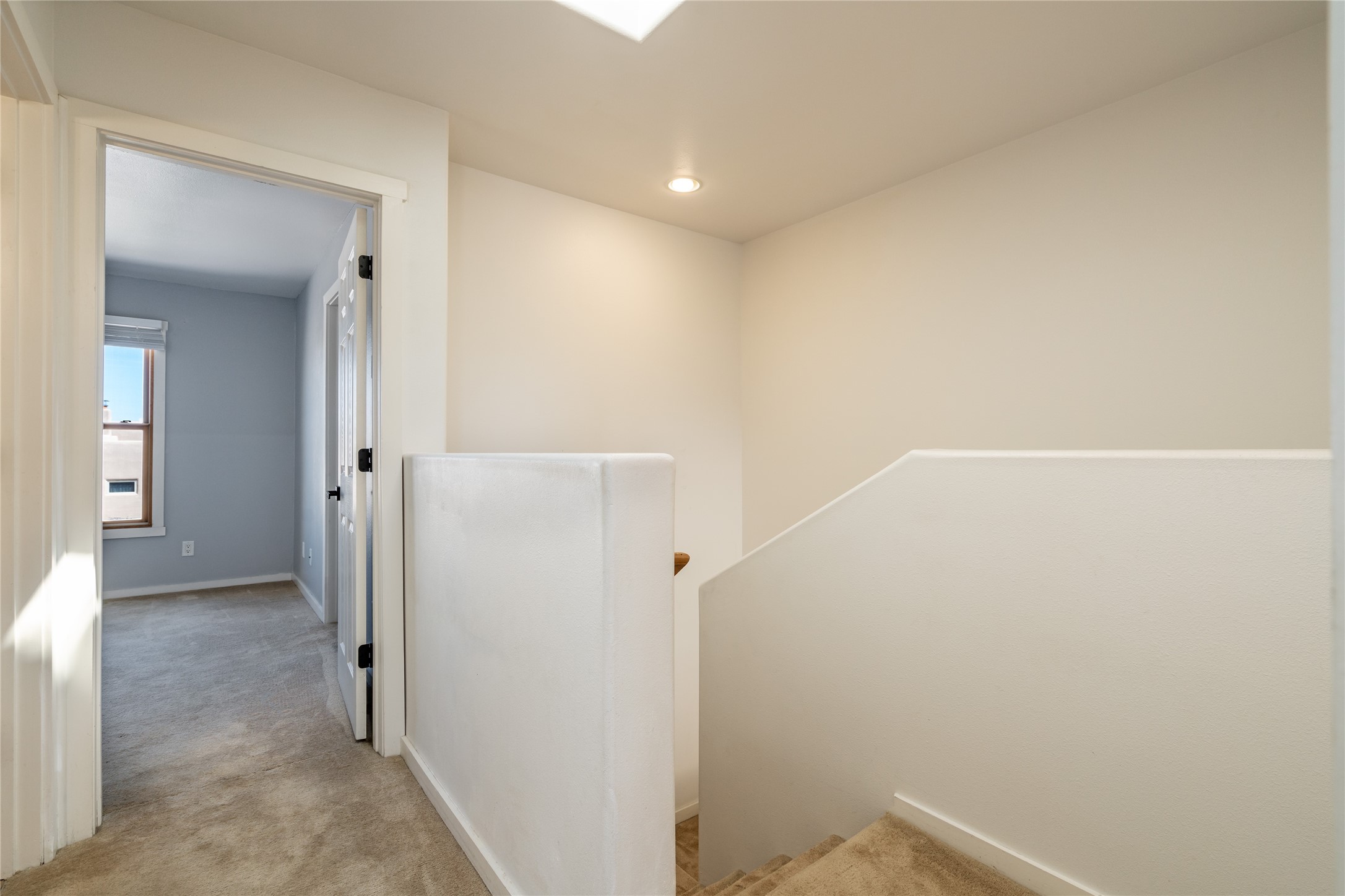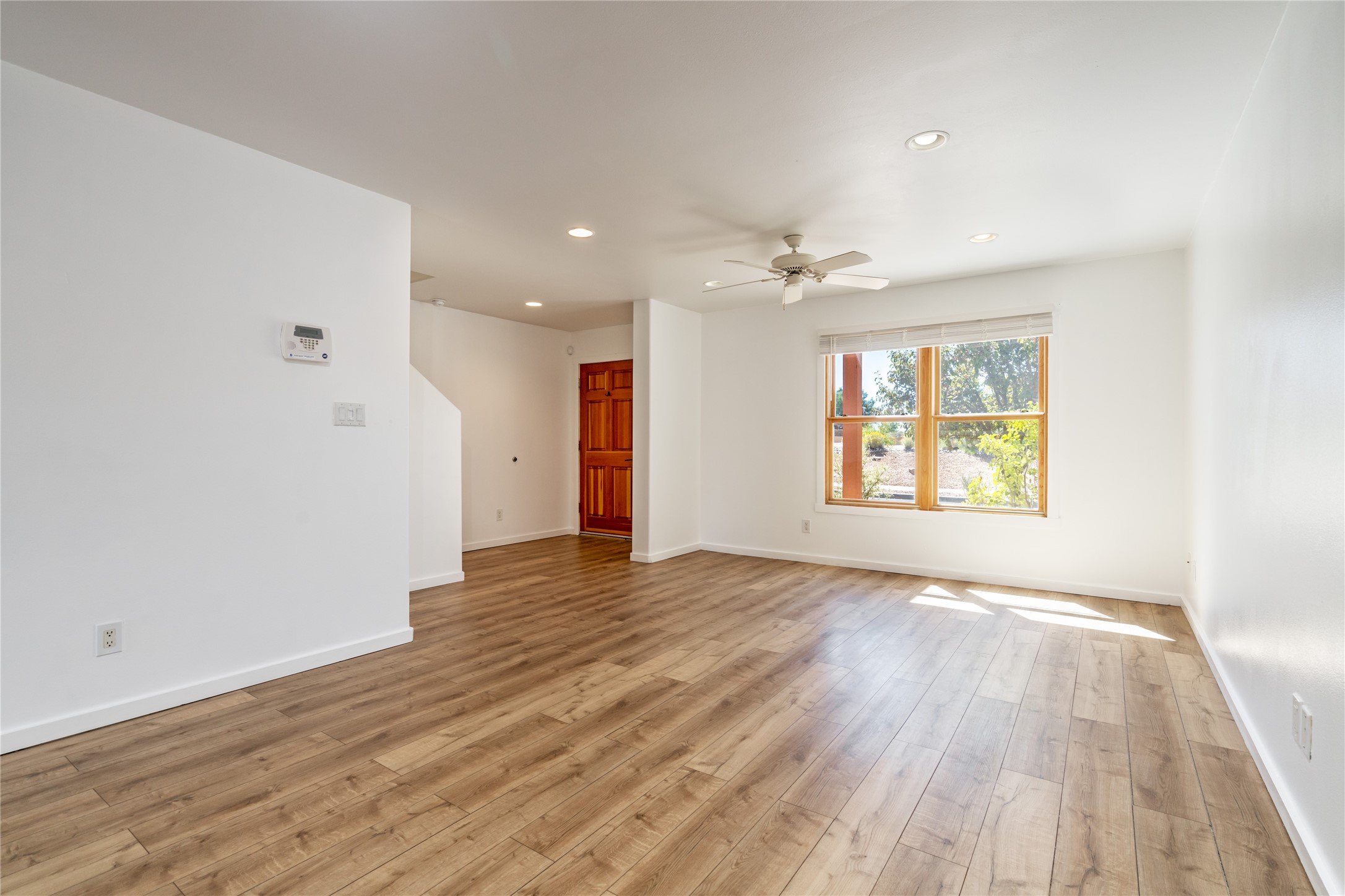 Adorable townhome in Aldea, awaiting its new owners! Introducing 10 Calle Plazuela, a 2-bedroom, 1.5 bathroom townhome nestled in the heart of Aldea de Santa Fe. Located 8 miles from the historical Santa Fe Plaza, this property presents an exceptional opportunity to live in a vibrant community surrounded by natural beauty and a plethora of amenities. As you step inside, you are greeted by an open and airy floor plan, thoughtfully designed to maximize space and functionality. On the main floor, enter an inviting living area, kitchen, bathroom, and laundry room with new floors and freshly painted walls. Upstairs, you will find both bedrooms with brand new carpet, an abundance of natural light and beautiful evening sunset views from the front bedroom. From the kitchen into the backyard is a courtyard with mature trees, including an apple tree. A private patio awaits, ideal for al fresco dining or enjoying a morning cup of coffee. The meticulously landscaped courtyard offers a serene retreat where you can relax and rejuvenate amidst the picturesque surroundings. 10 Calle Plazuela is ideally located within the desirable Aldea community, known for its stunning views, 13 miles of walking trails, and a sense of tranquility. Aldea residents enjoy access to a community event plaza, clubhouse, tennis courts, and basketball courts, fostering a sense of community and an active lifestyle. Schedule a tour today!