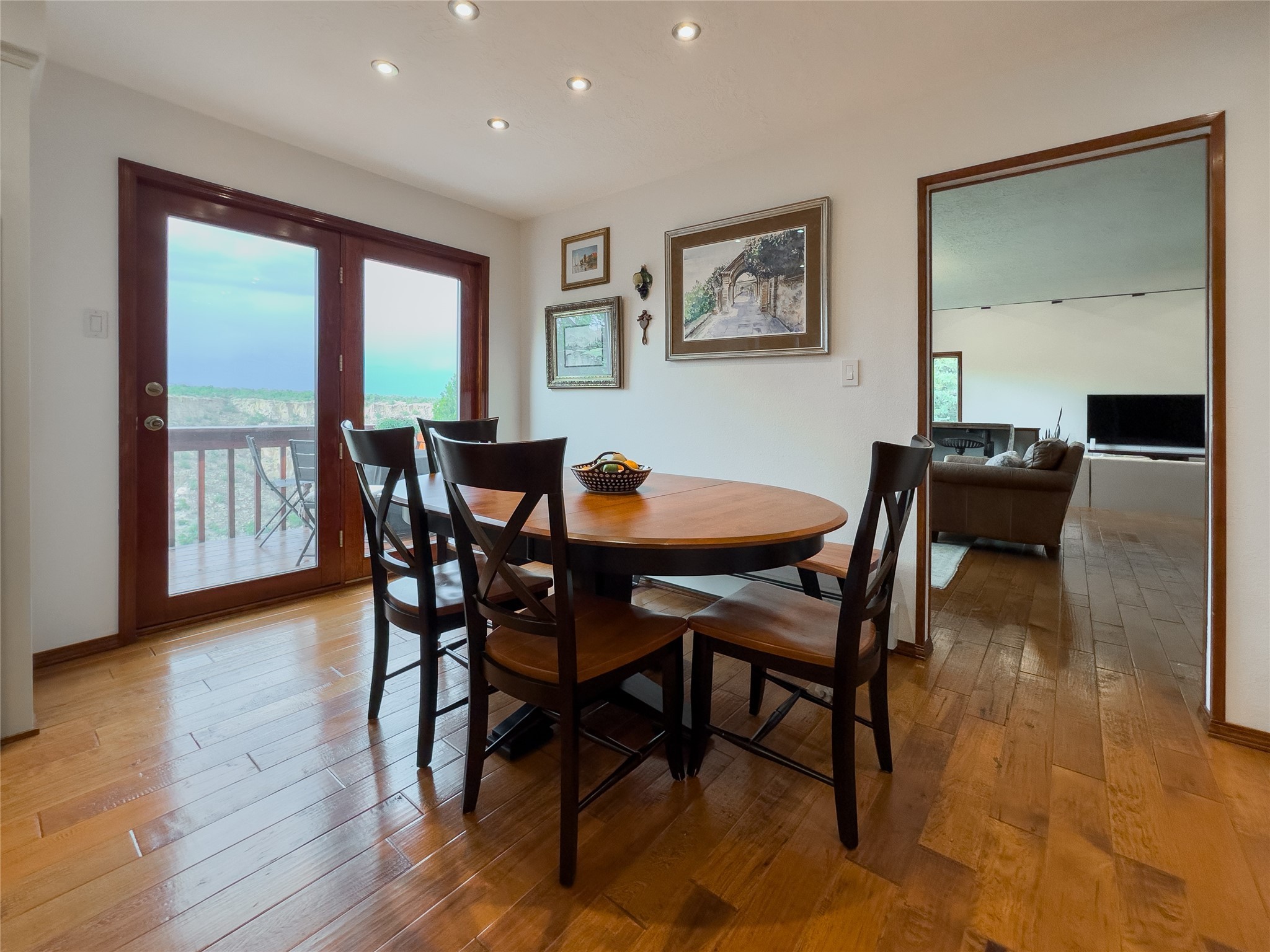 Expansive views of the Sangre De Cristos mountains and morning sunrises is just the beginning of the story about this beautiful custom home. An elegantly warm designed home with cathedral beamed ceilings in the large family room with built in bookshelves and a sitting area that feels as if you are sitting right on the canyon. Large beams accent the living space with rich wood floors and separate entertaining spaces. The large kitchen features, painted cabinets, center island with eat at bar, granite countertops, eat in breakfast nook, double ovens, tons of cabinets and counter space. It is definitely the heart of the home. Off the kitchen you have french doors out to the deck where barbecuing and dinner entertaining are a must while watching the sunset on the canyon. A main level bedroom with its own bathroom is a nice features of this home and upstairs lends itself to a loft area and office area with another outdoor sitting area, two large additional bedrooms with walk in closets and a beautifully designed full bathroom that feeds both bedrooms. The owners suite is nicely situated with an additional deck, two large closets, an amazing bathroom suite with a soaking tub and a large separate shower, it feels like you are at a spa. Don't forget the downstairs walk out basement with tons of room, extra 5th bedroom and a designer bathroom. Every detail of this home was thoughtfully designed and the 3 car garage lends to extra workshop space and there is room for RV parking on the driveway with an additional circular driveway for easy access to the entry. This is a special home and is really a must see for those that desire views, location and wildlife with plenty of room for all.