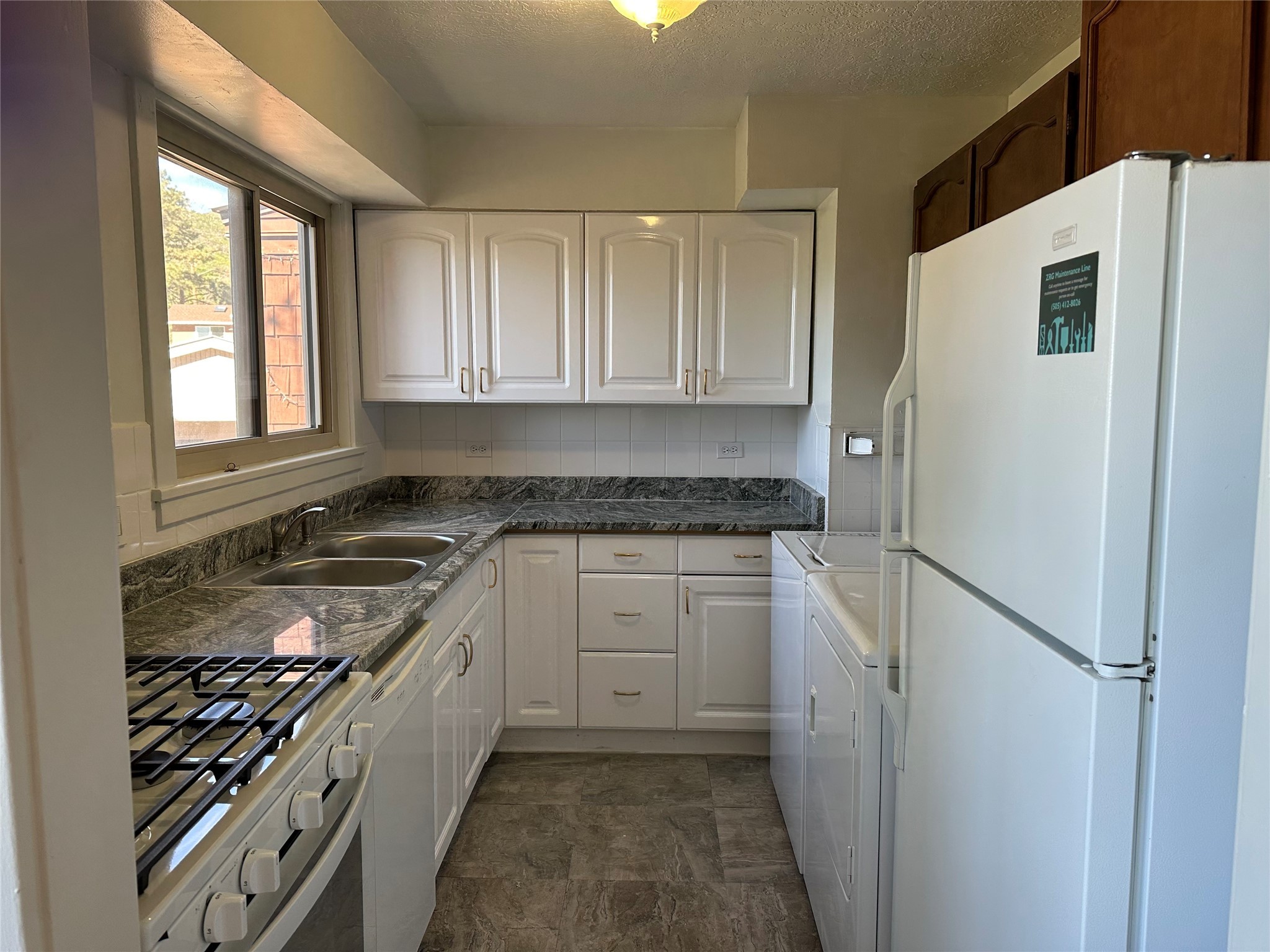 Nicely renovated and updated quad condo on upper Alabama. Features new granite counters, stove, hardwood floors, fresh paint, and wood burning stove. New TPO roof with lifetime warranty to be assigned to buyer. Just minutes to LANL, schools, hospital, and shopping. Unit has separate back yard, large basement storage, and two assigned off-street parking spaces. No monthly condo dues - each unit just pays 1/4 of common insurance policy annually. New condo docs with survey on file with Title Guaranty. Broker owner