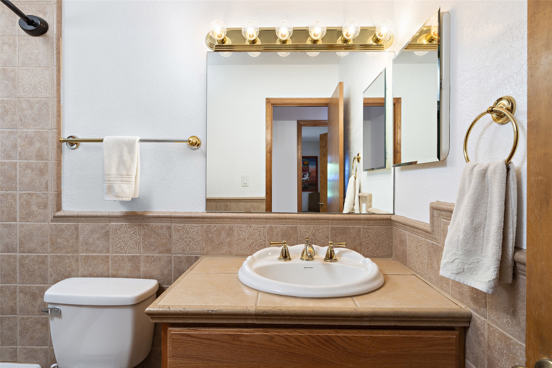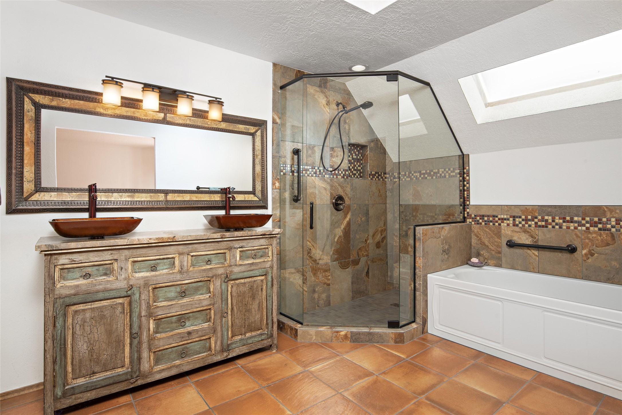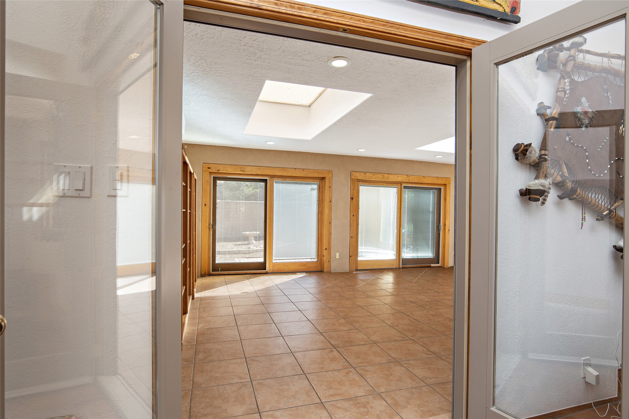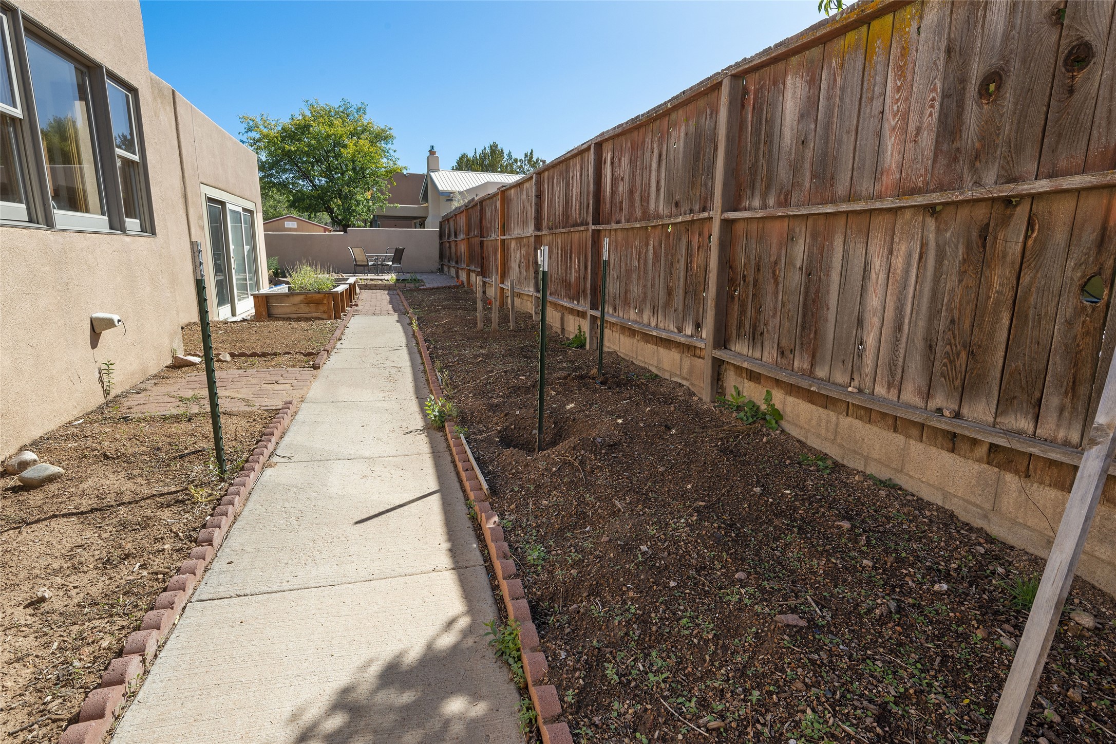 It's a great home if you commute to Los Alamos or Albuquerque. This three-bedroom, two-bathroom, well-cared-for home is on a large lot in a centrally located neighborhood with no HOA. The house has an upgraded Kitchen, and in 2019, the sizeable primary bathroom was beautifully upgraded with two glass bowl sinks, a walk-in shower, and a tub. The house is completely tiled, and the living, sun, dining rooms, and Kitchen flow nicely for entertaining or large gatherings. The garden area in the backyard has been enriched with 100 bags of Black Gold in the two raised garden beds. The fenced backyard is private with many places to enjoy the evenings, entertain, dine alfresco and Bar-B-Que! There is a private walled deck off of the primary bedroom. Take a look!