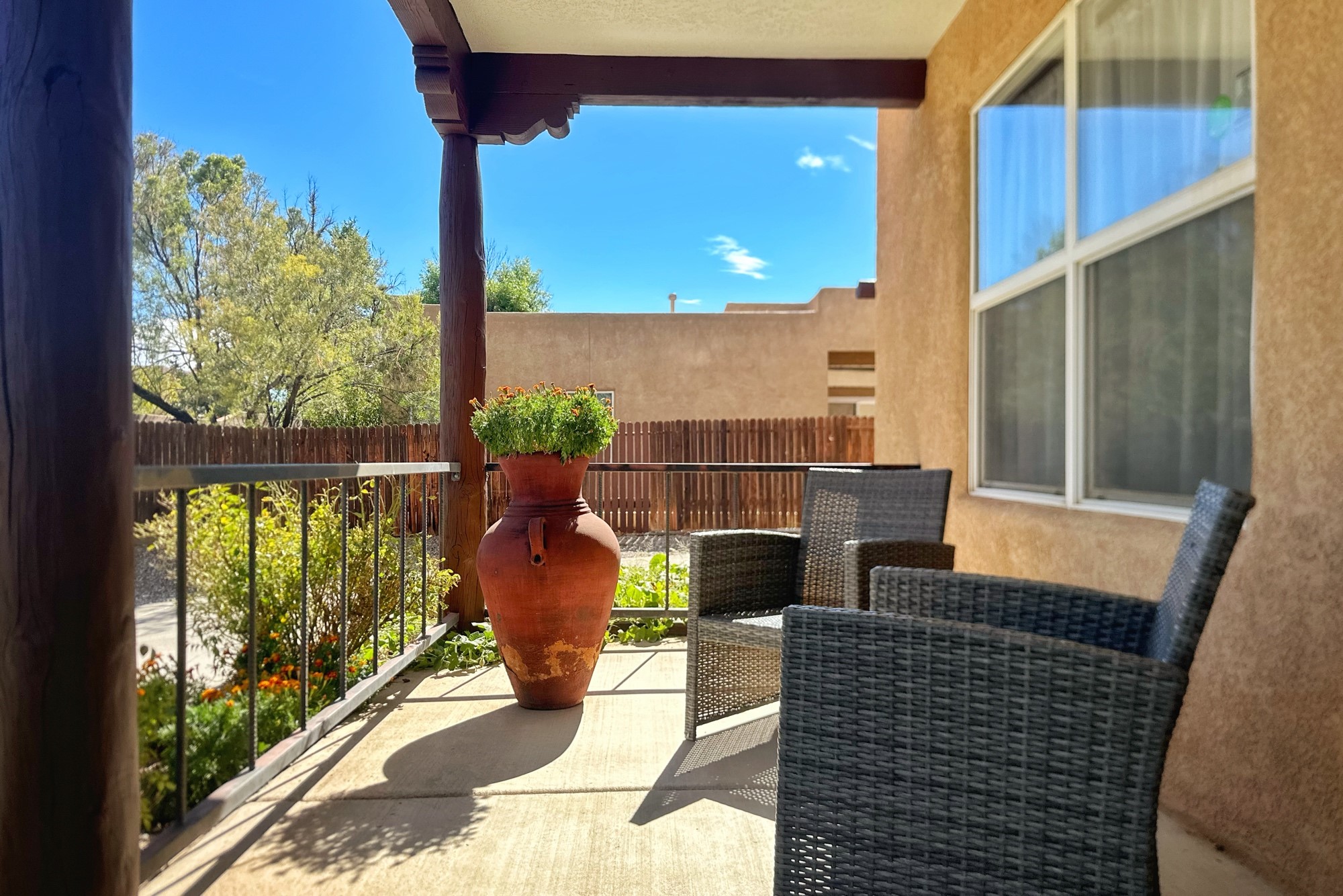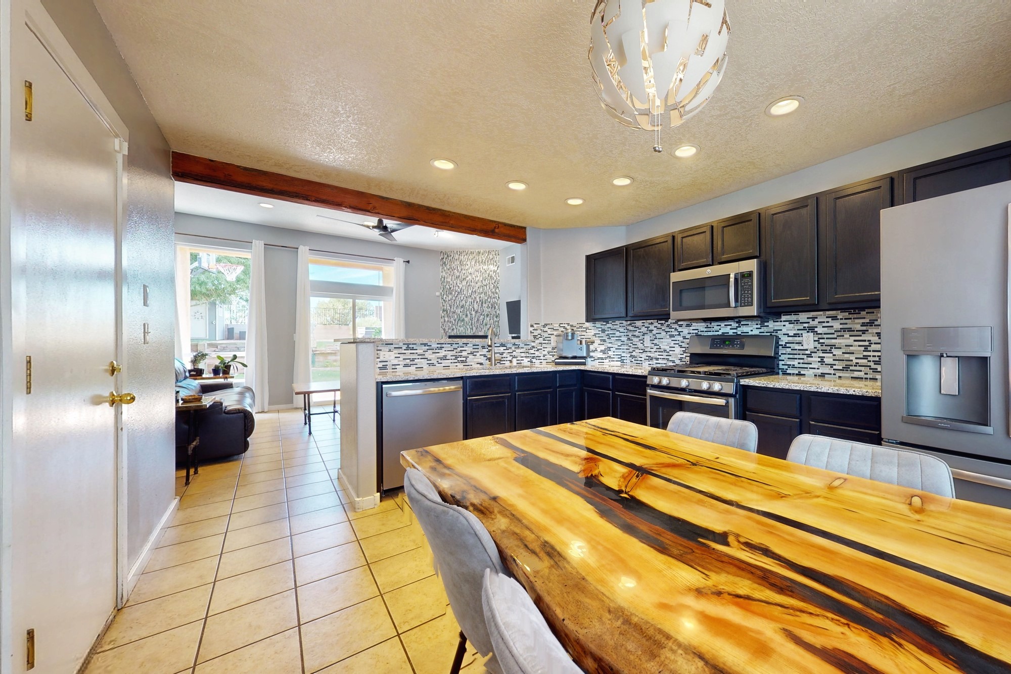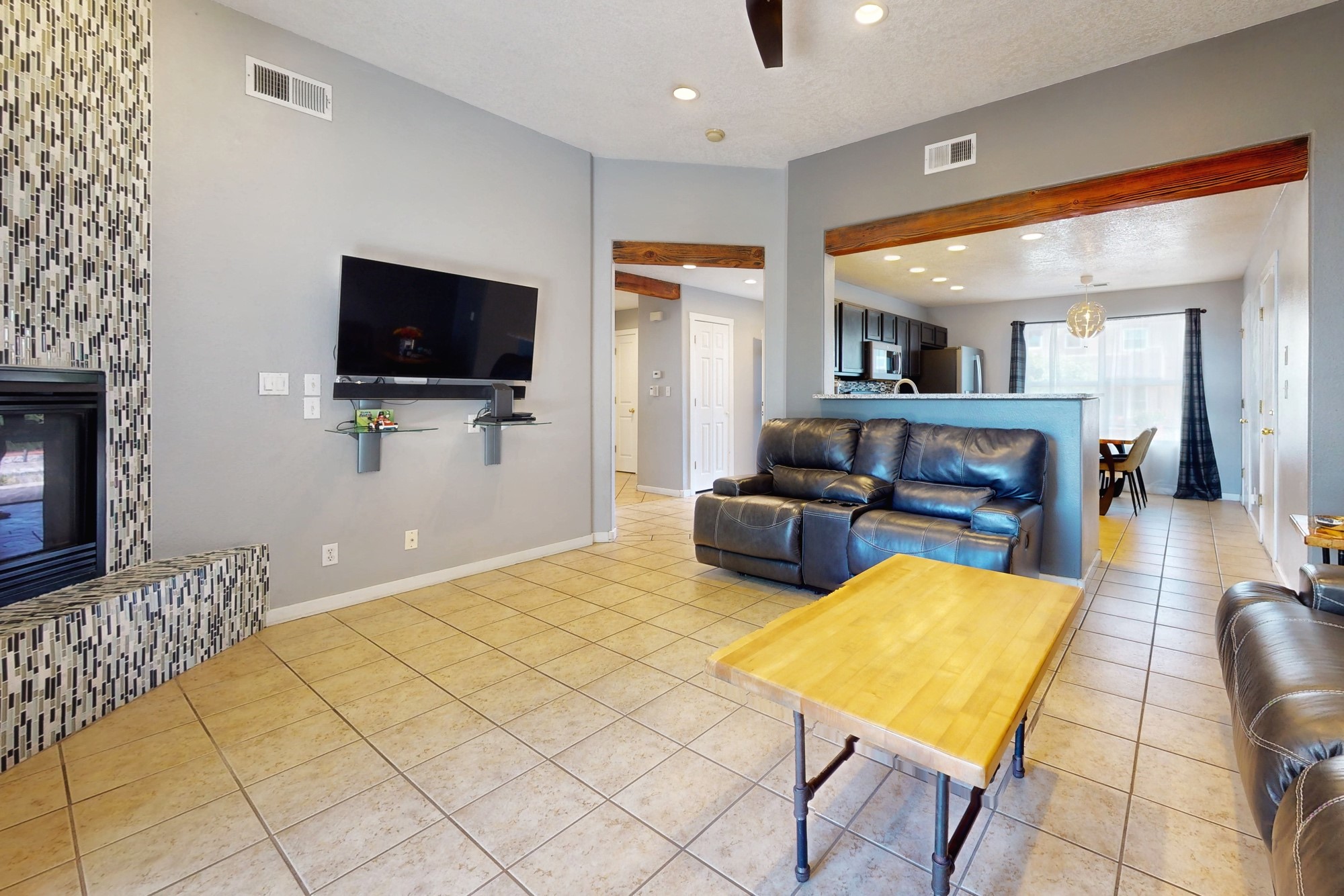 Don't Miss Out on this Exceptional Golf Course Home! Spacious and open, this 3-bedroom, 2-bathroom home offers the perfect blend of comfort and style. Enjoy an upgraded kitchen and bathrooms with granite countertops and custom tile work. Ceiling fans in all rooms along with added recessed lighting offer the custom touch you are looking for. The open-concept design connects the living space with the kitchen and dining area, perfect for entertaining friends and family. Tiled floors throughout the main living areas and kitchen, accentuated by a cozy fireplace. Natural light floods the space, creating a warm and inviting ambiance. The eat-in kitchen boasts a good-sized pantry for all your storage needs. Outdoor living has been thoughtfully designed and expands the living space of the home to enjoy it to its fullest! Fully landscaped with mature trees and a drip system. Completing the package is a finished and heated 2-car garage, keeping your vehicles safe and providing extra storage space. Nothing is needed here but a proud new owner.