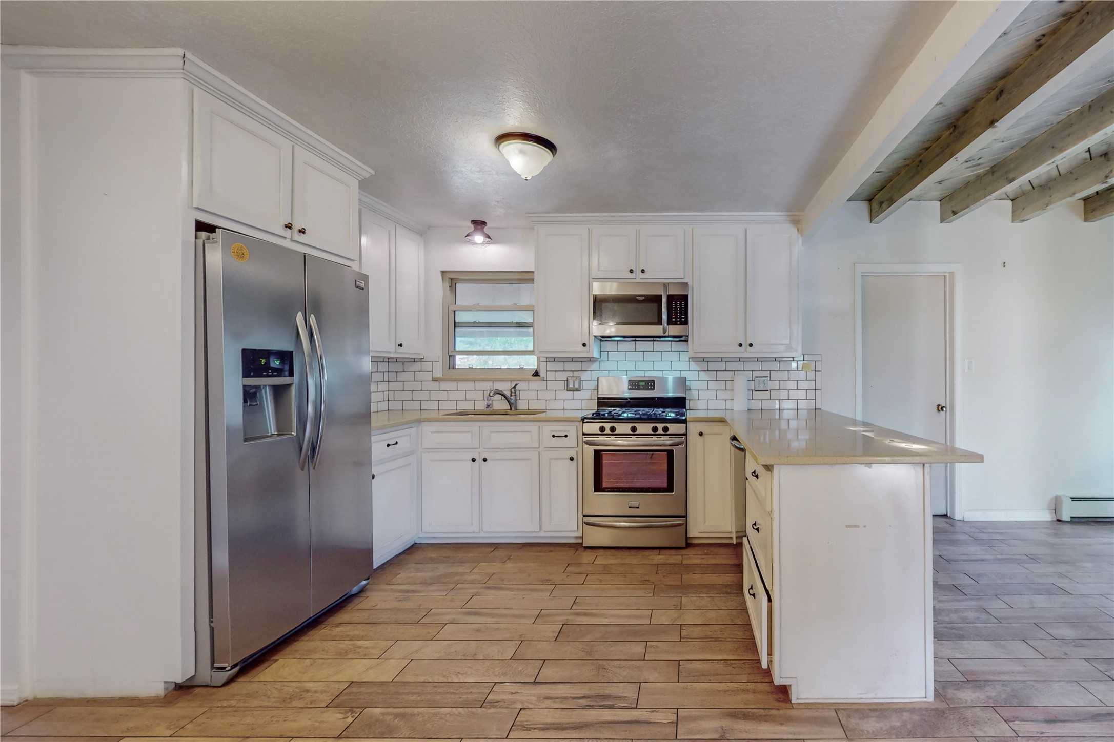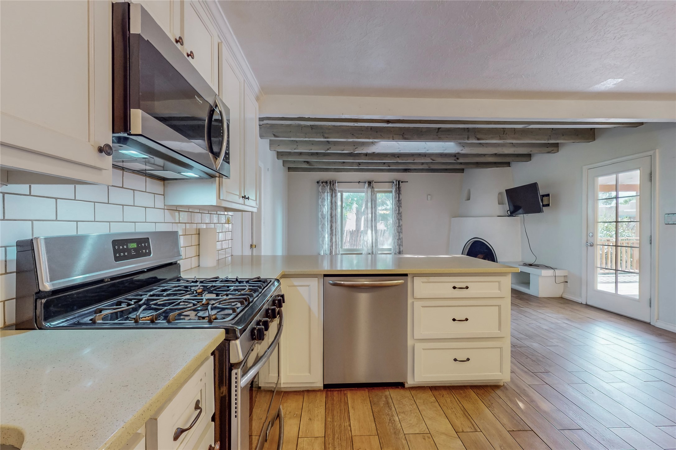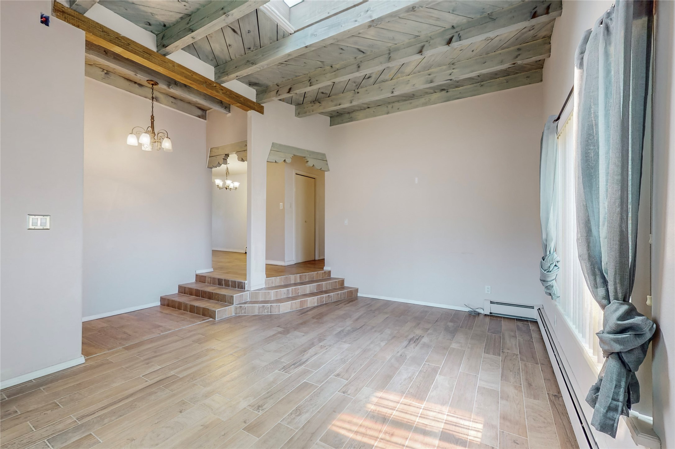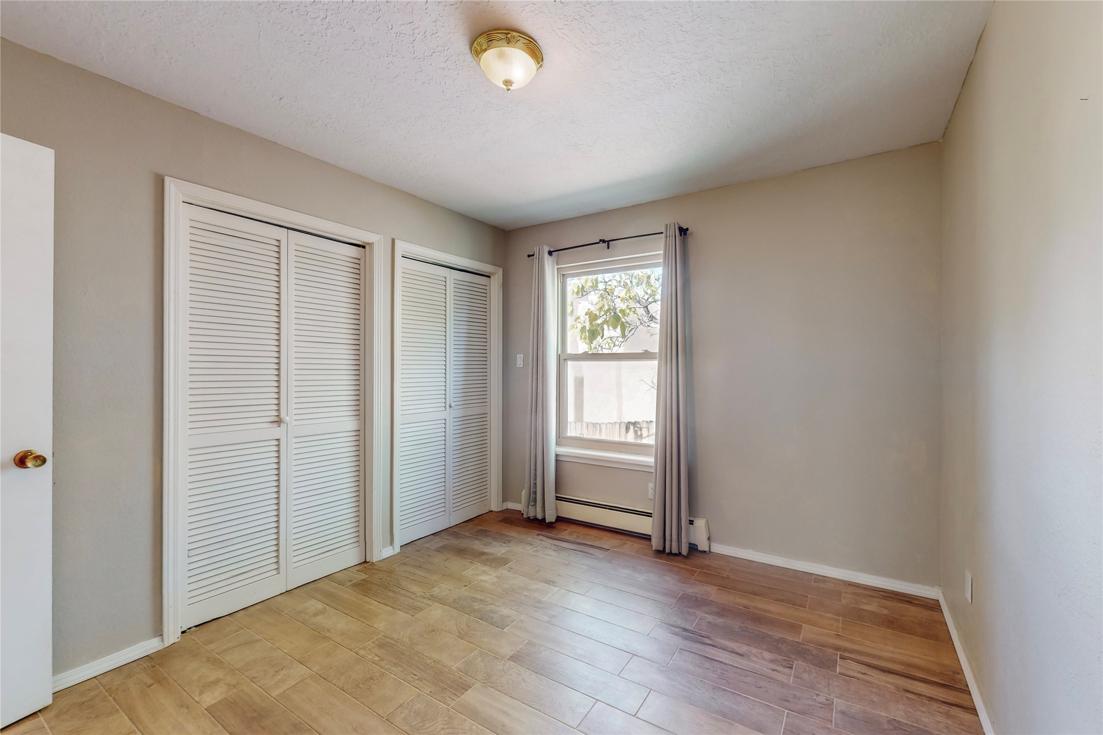 Surprisingly private location in Pueblos de Rodeo, a quiet backwater subdivision of Santa Fe. This lovely light home shaded by tall trees, has three bedrooms, two full baths with tile floors and lots of windows. There is a sunken den area separated from the main living area ideal for quiet meditation or reading. The family room with kiva fireplace for cheery winter nights is open to the kitchen and dining areas flows to an expansive deck and big privately fenced back yard. A large 2 car garage sits back off the road allowing for extra parking. It is conveniently close to recreation centers and lots of shopping areas, parks and trails.