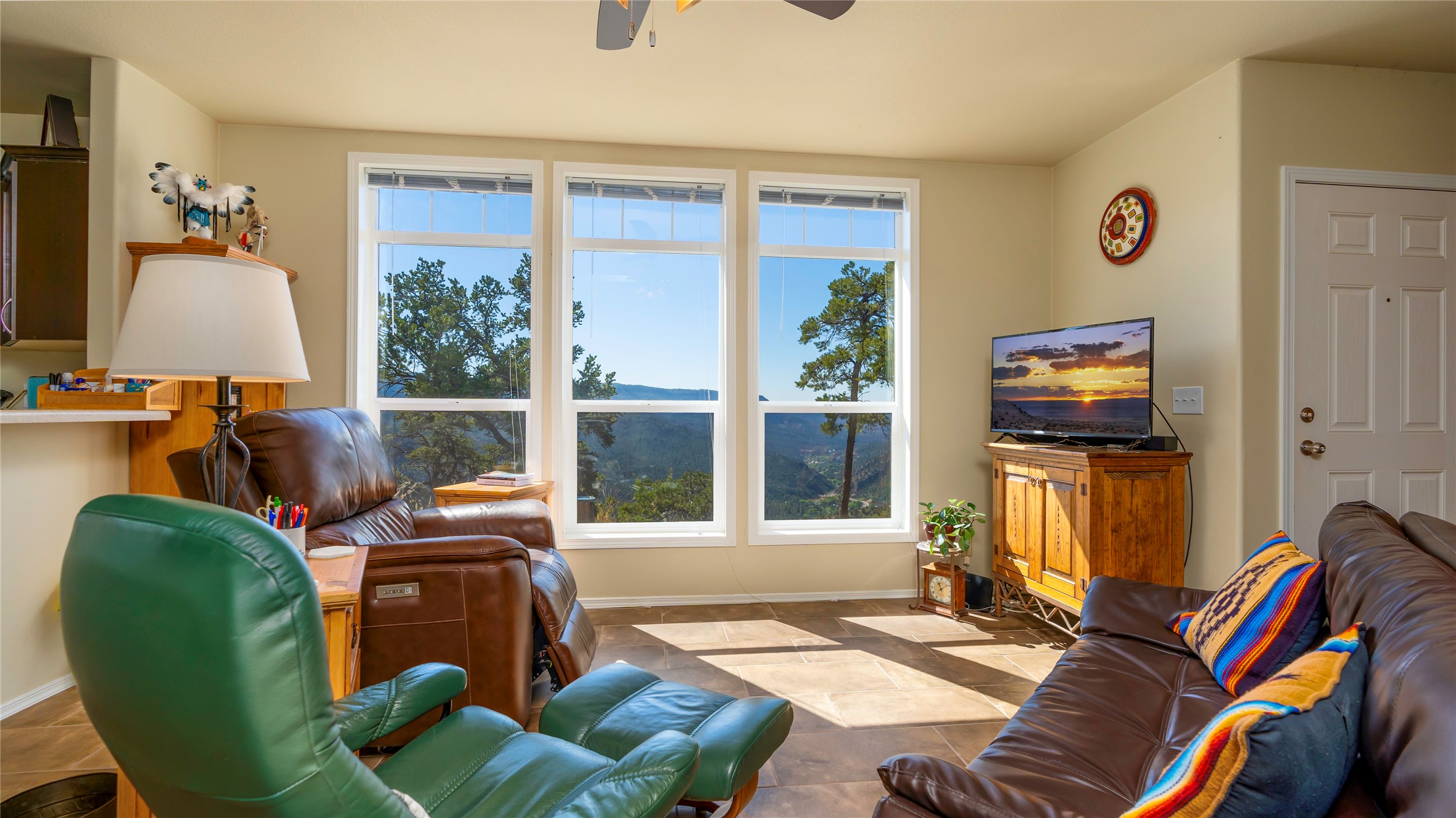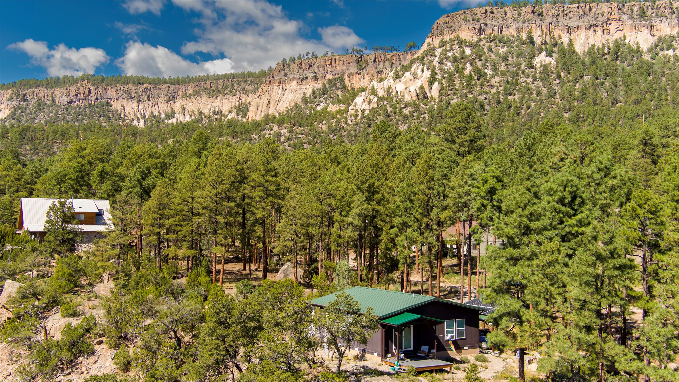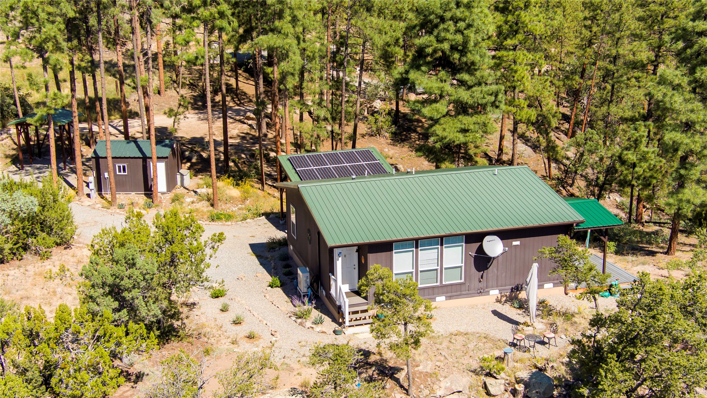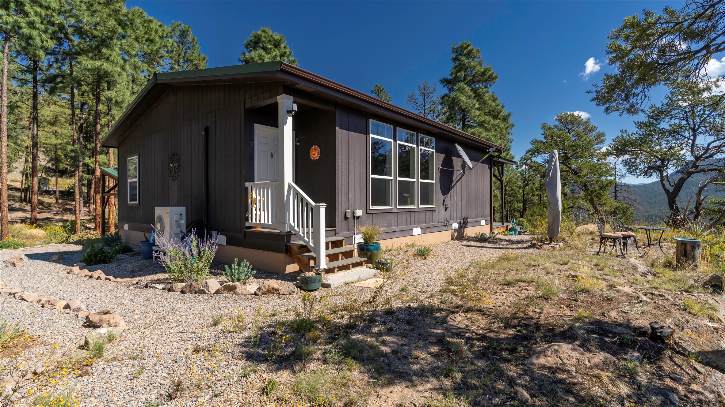 Jaw dropping views & cute & cozy as can be! This home is top of the line & meticulously maintained! Nestled on just over an acre in the highly desirable Cool Pines subdivision including 2 lots & bordered by Santa Fe Natl.Forest. 1,038 square ft with 2 spacious bedrooms & 2 baths. Open concept floorplan with 8.5' ceilings make for an open & airy space connecting the living, dining, & kitchen areas. Enjoy the panoramic views of the Jemez Valley down below. 200-amp electrical system & new mini-splits heating/cooling system. Save money on utility bills with the owned solar 3KW grid-tied solar electric system with emergency day time backup. Did I mention the dreamy covered deck? Too many extras to list (but check the documents section)! WHAT A DEAL!! Get it before it is GONE!
