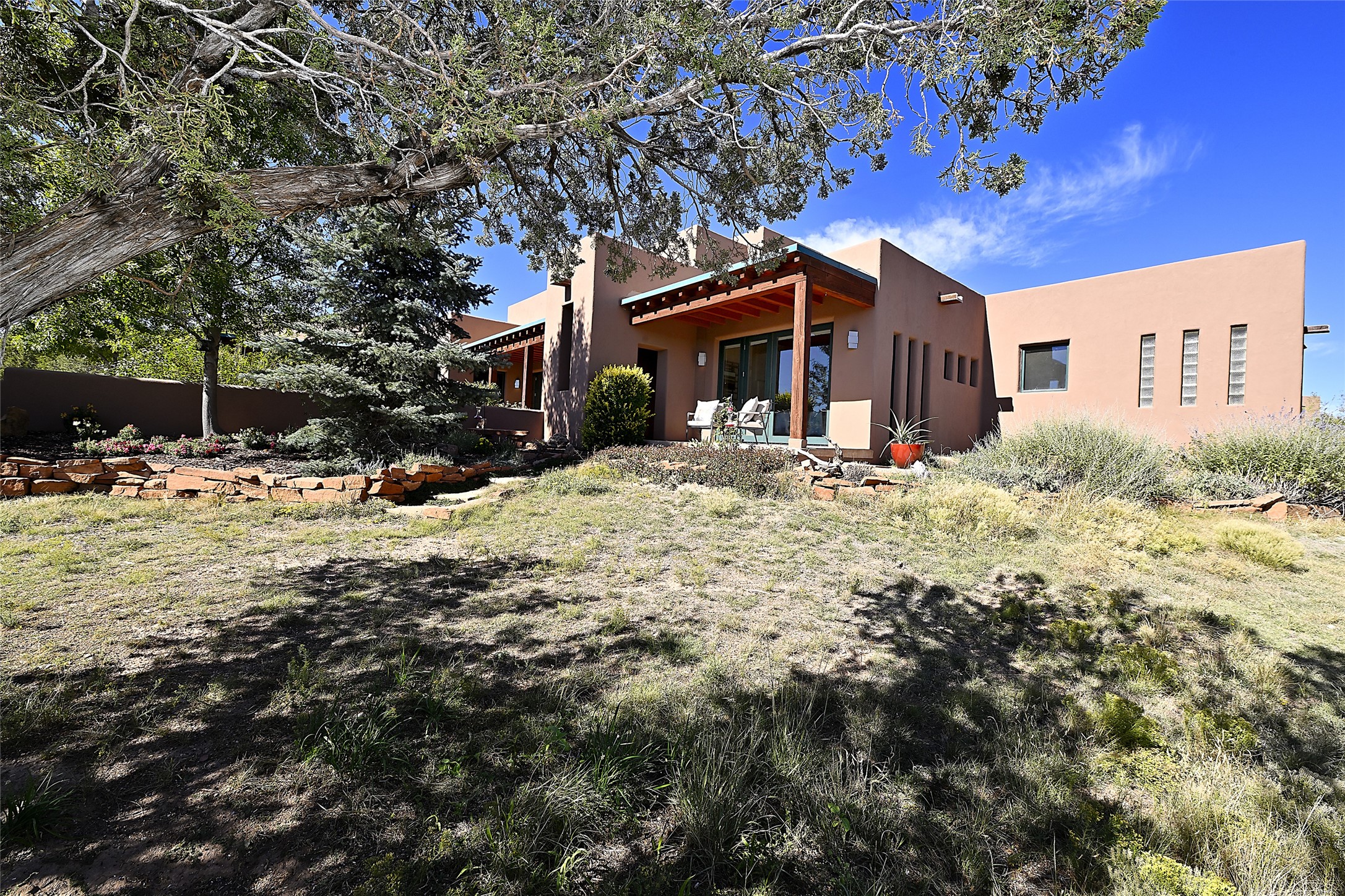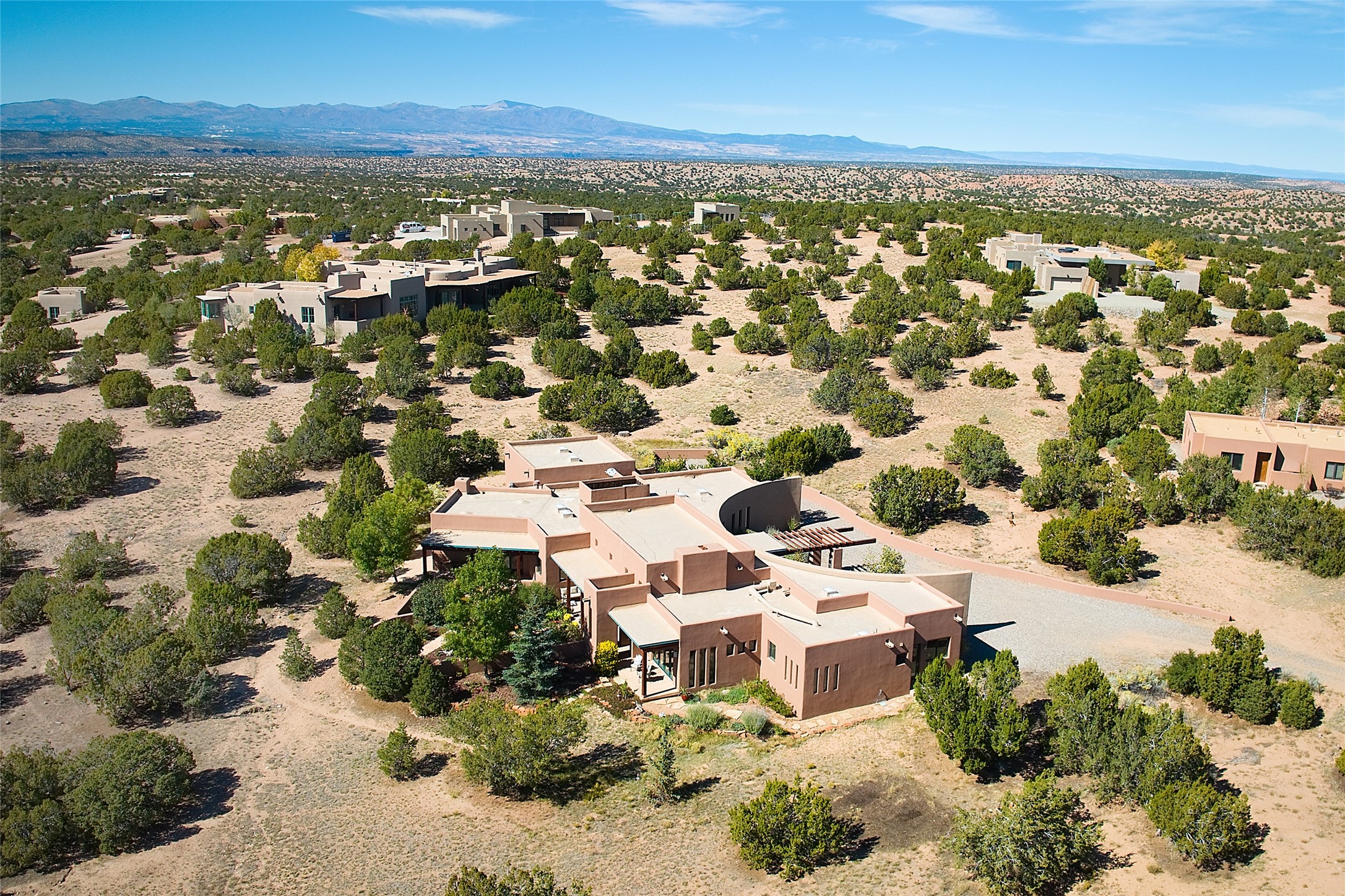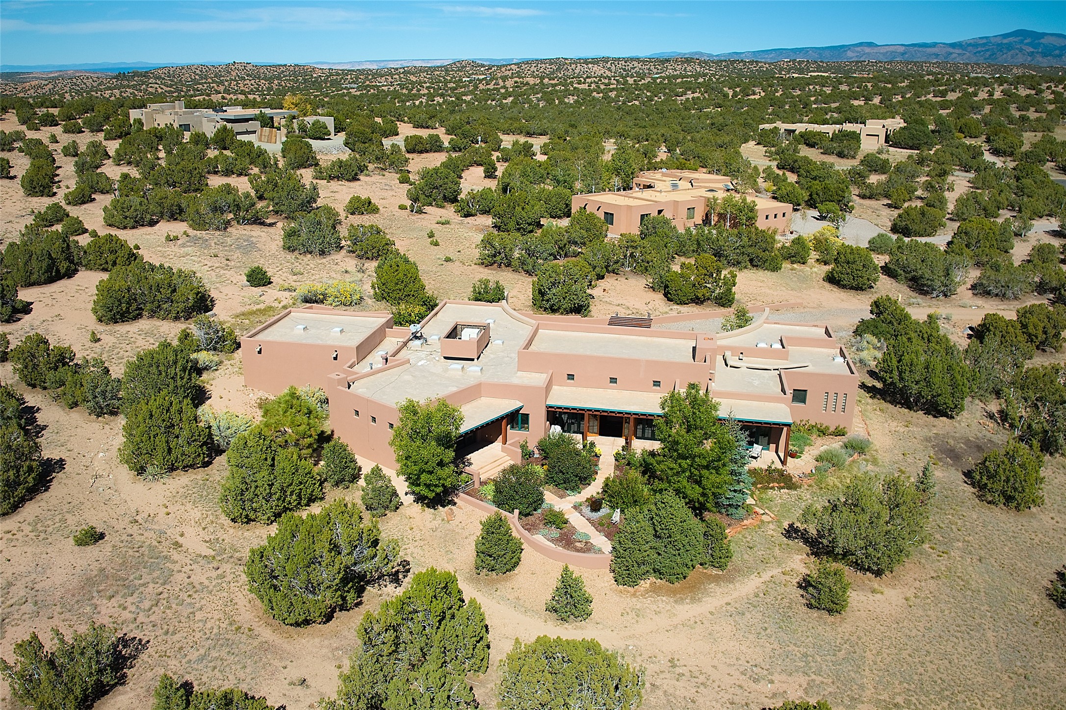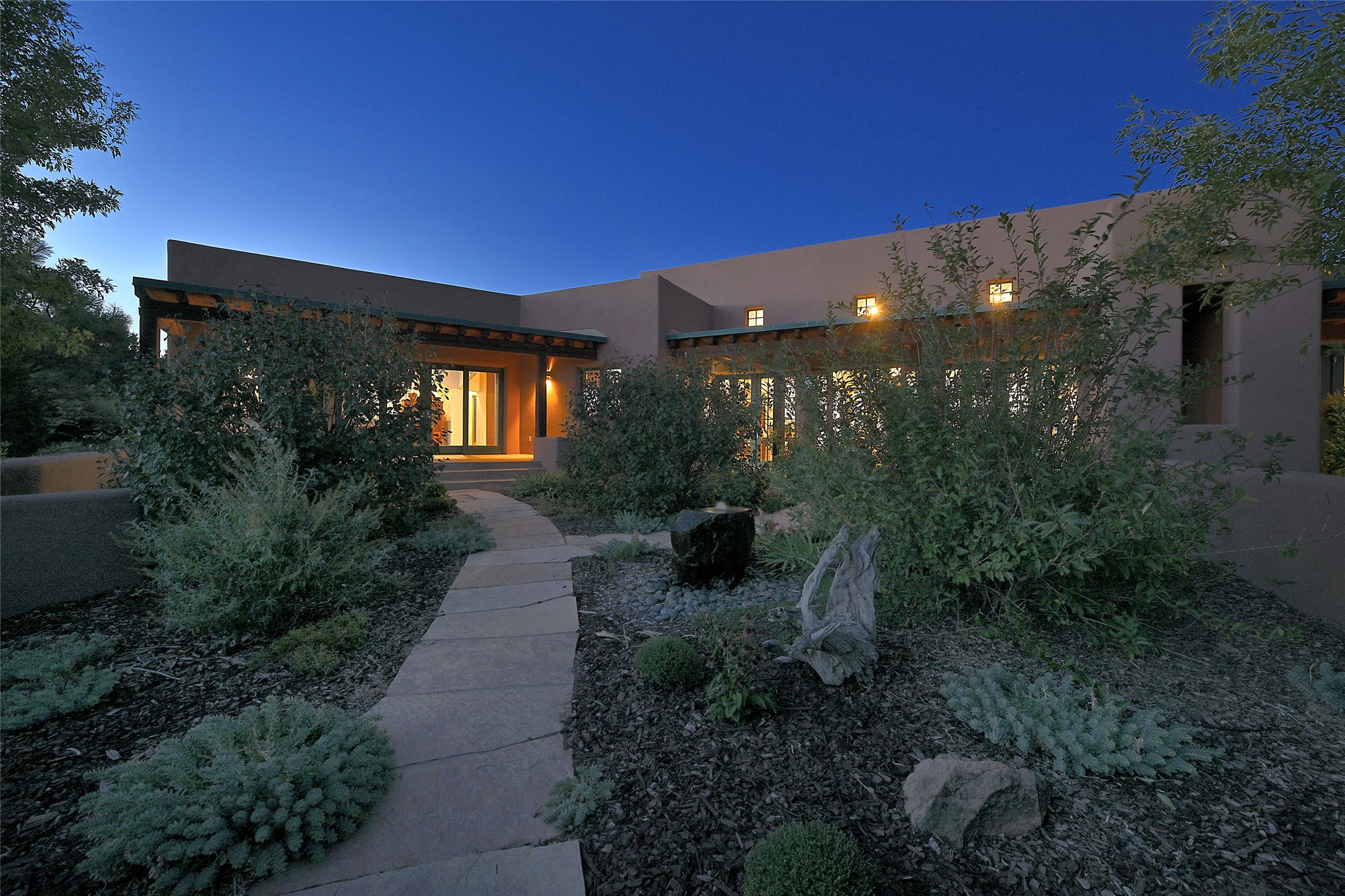 This exceptional home achieves the delicate balance between the softness of a traditional ambiance and the sleek lines of contemporary design. It welcomes residents and guests with a sense of warmth and comfort while maintaining an up-to-the-minute aesthetic. The house harmoniously fuses these two design sensibilities, ensuring that everyone who steps through its doors feels instantly at home. This thoughtfully designed home is distinguished by a great room featuring a massive fireplace that serves as a focal point. These spaces naturally flow through to incredible gardens, making it an enchanting retreat. Floor to-ceiling glass doors and windows create a continuous visual connection with nature, allowing the beauty of the outdoors to become an integral part of the living experience. To further enhance its appeal, the home is designed with three unique guest rooms, each located in separate wings for privacy. The pice de rsistance is the glorious primary suite, complete with a true walk-in shower, a soaking tub, and a custom-fitted walk-in closet. Finally, the heart of this home is the professional chef's kitchen, which opens to an adjacent informal living and eating areas, where family and friends can come together in a warm and welcoming atmosphere. Enjoy all the amenities of The Club at Las Campanas or choose to live a tranquil secluded life at home with friends and family with only a 10 minute drive to the famous galleries and restaurants of downtown Santa Fe.