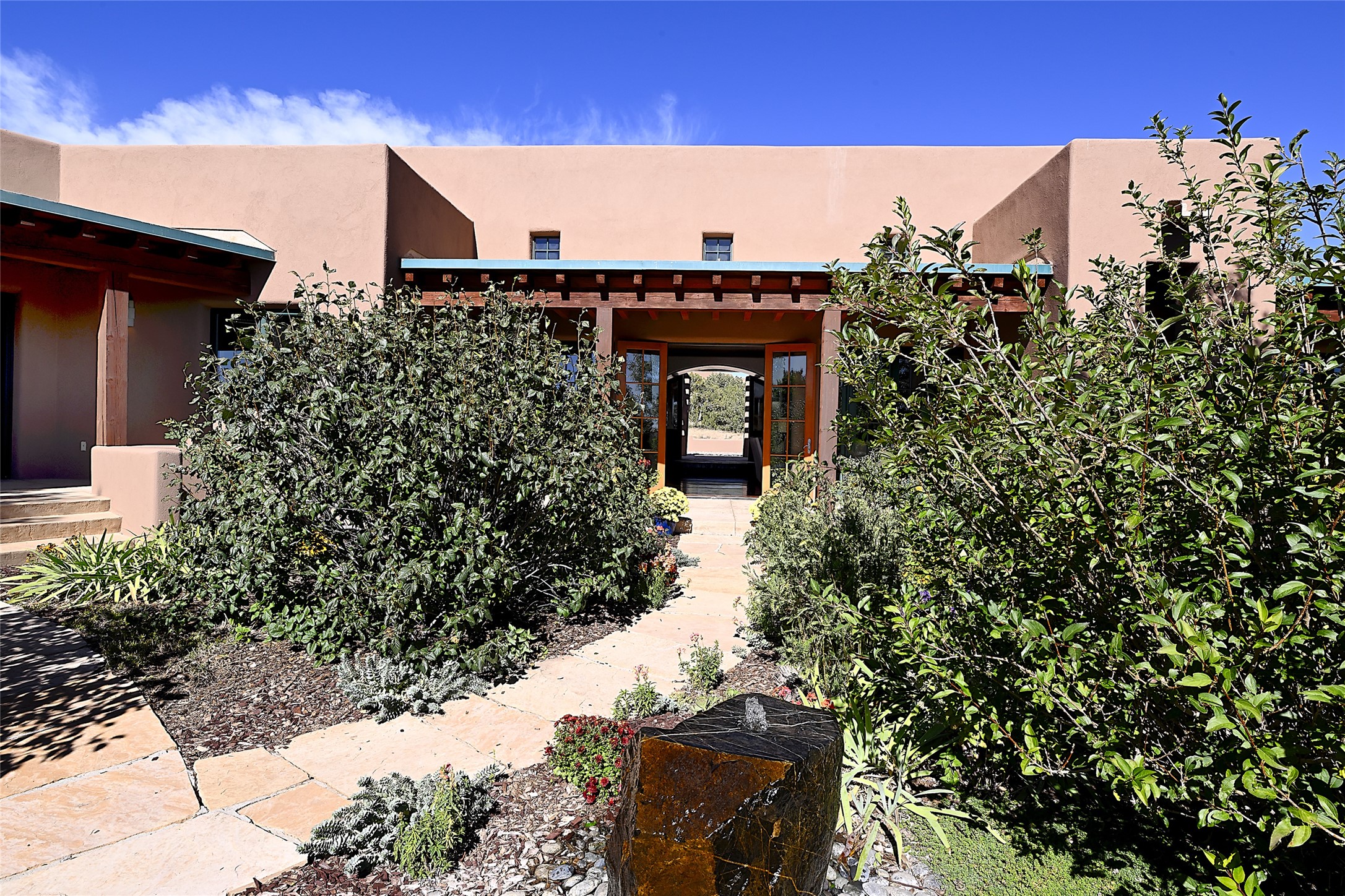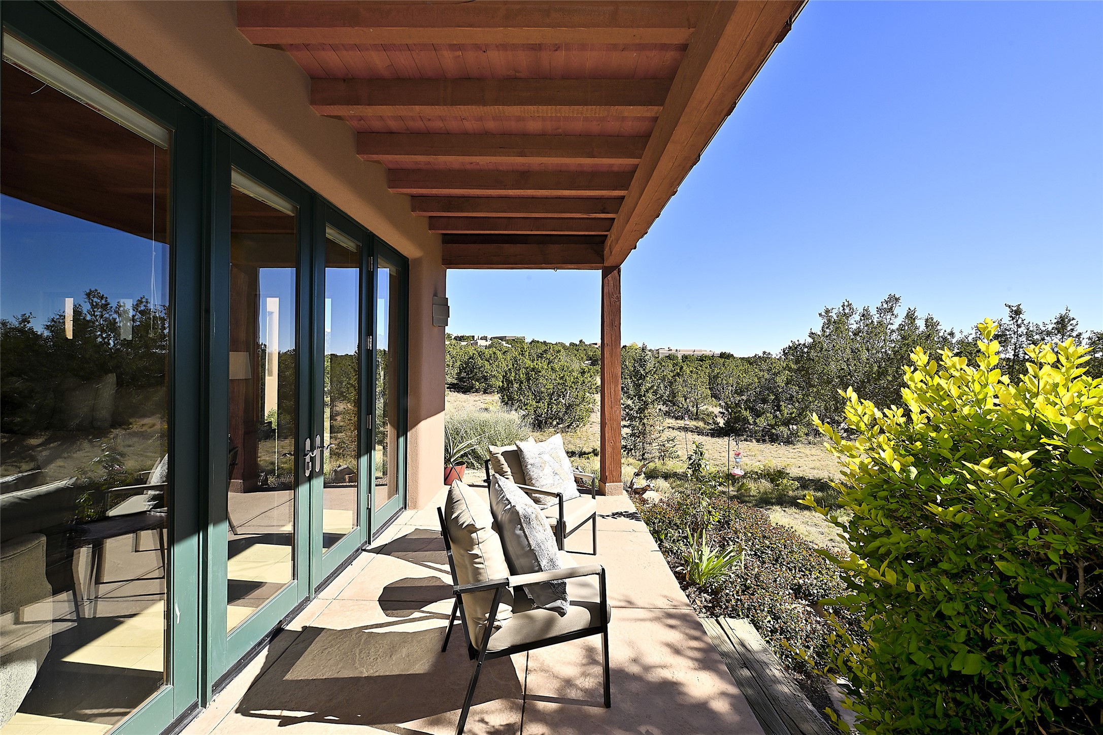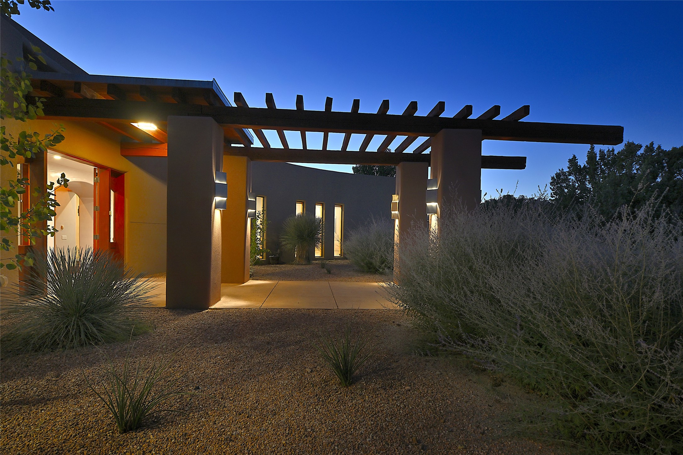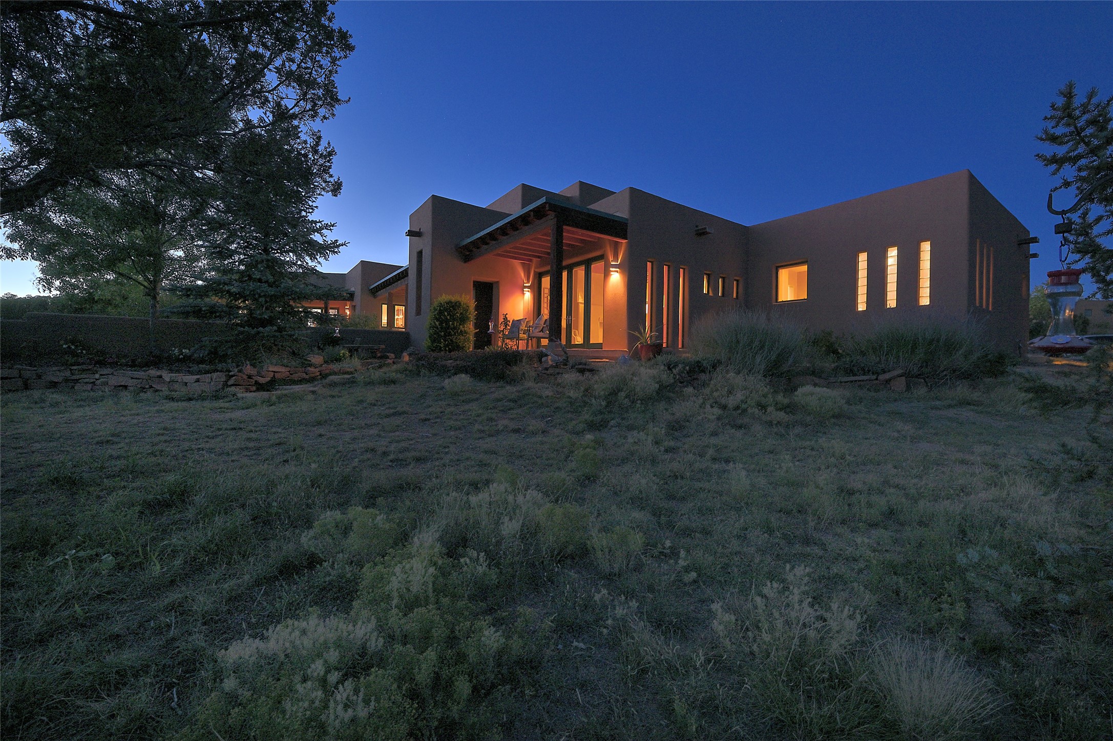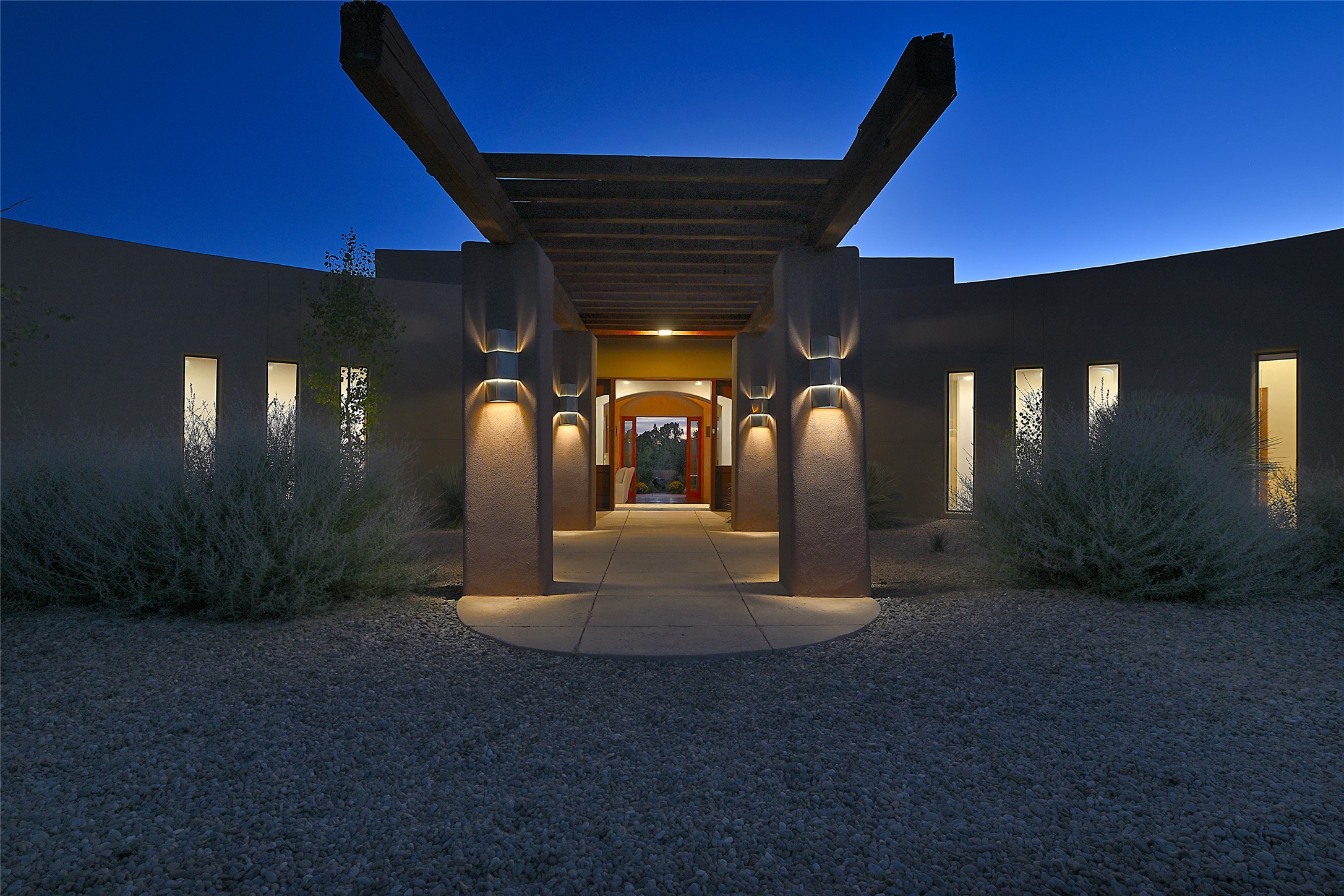 This exceptional home achieves the delicate balance between the softness of a traditional ambiance and the sleek lines of contemporary design. It welcomes residents and guests with a sense of warmth and comfort while maintaining an up-to-the-minute aesthetic. The house harmoniously fuses these two design sensibilities, ensuring that everyone who steps through its doors feels instantly at home. This thoughtfully designed home is distinguished by a great room featuring a massive fireplace that serves as a focal point. These spaces naturally flow through to incredible gardens, making it an enchanting retreat. Floor to-ceiling glass doors and windows create a continuous visual connection with nature, allowing the beauty of the outdoors to become an integral part of the living experience. To further enhance its appeal, the home is designed with three unique guest rooms, each located in separate wings for privacy. The pice de rsistance is the glorious primary suite, complete with a true walk-in shower, a soaking tub, and a custom-fitted walk-in closet. Finally, the heart of this home is the professional chef's kitchen, which opens to an adjacent informal living and eating areas, where family and friends can come together in a warm and welcoming atmosphere. Enjoy all the amenities of The Club at Las Campanas or choose to live a tranquil secluded life at home with friends and family with only a 10 minute drive to the famous galleries and restaurants of downtown Santa Fe.