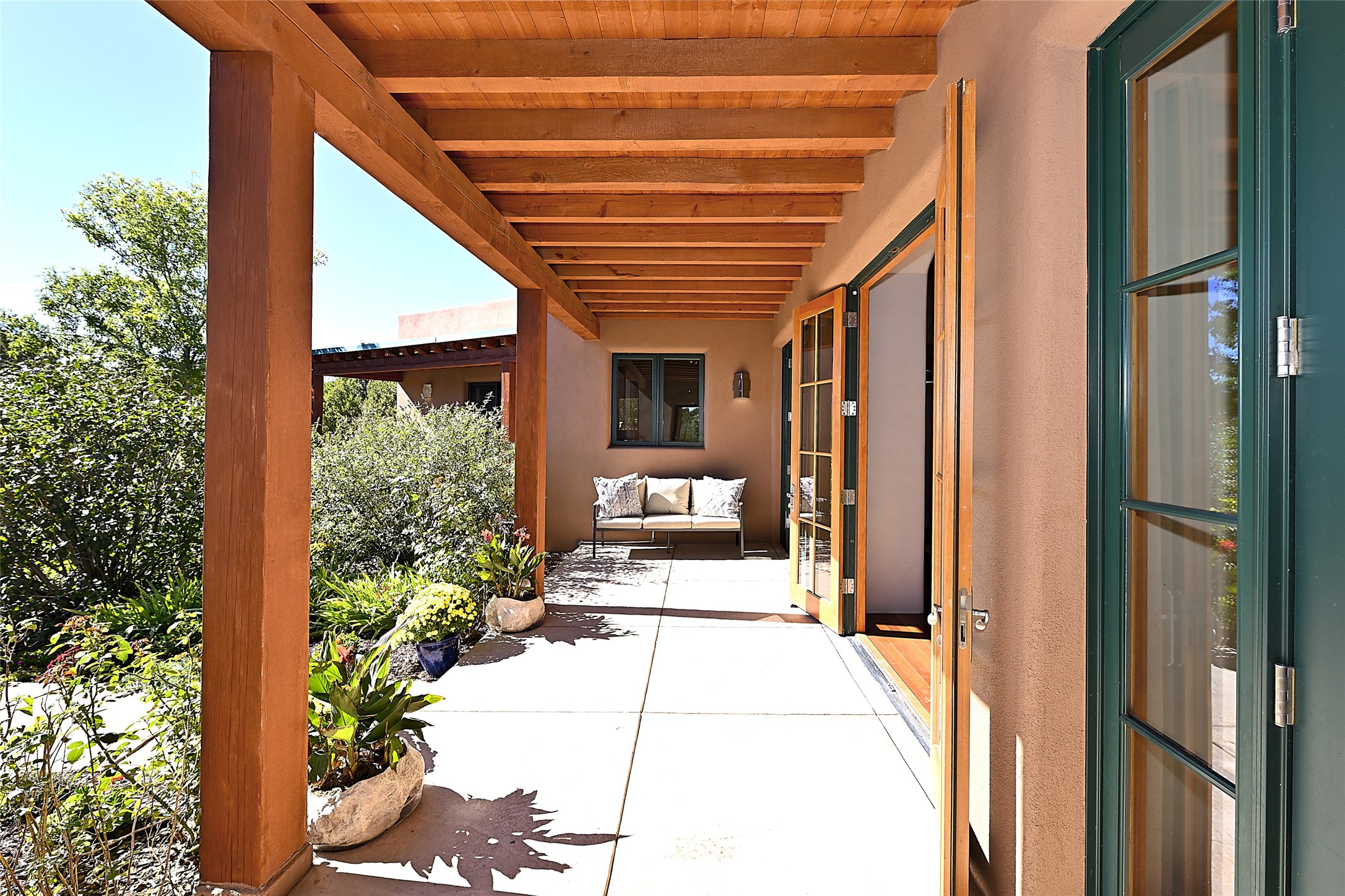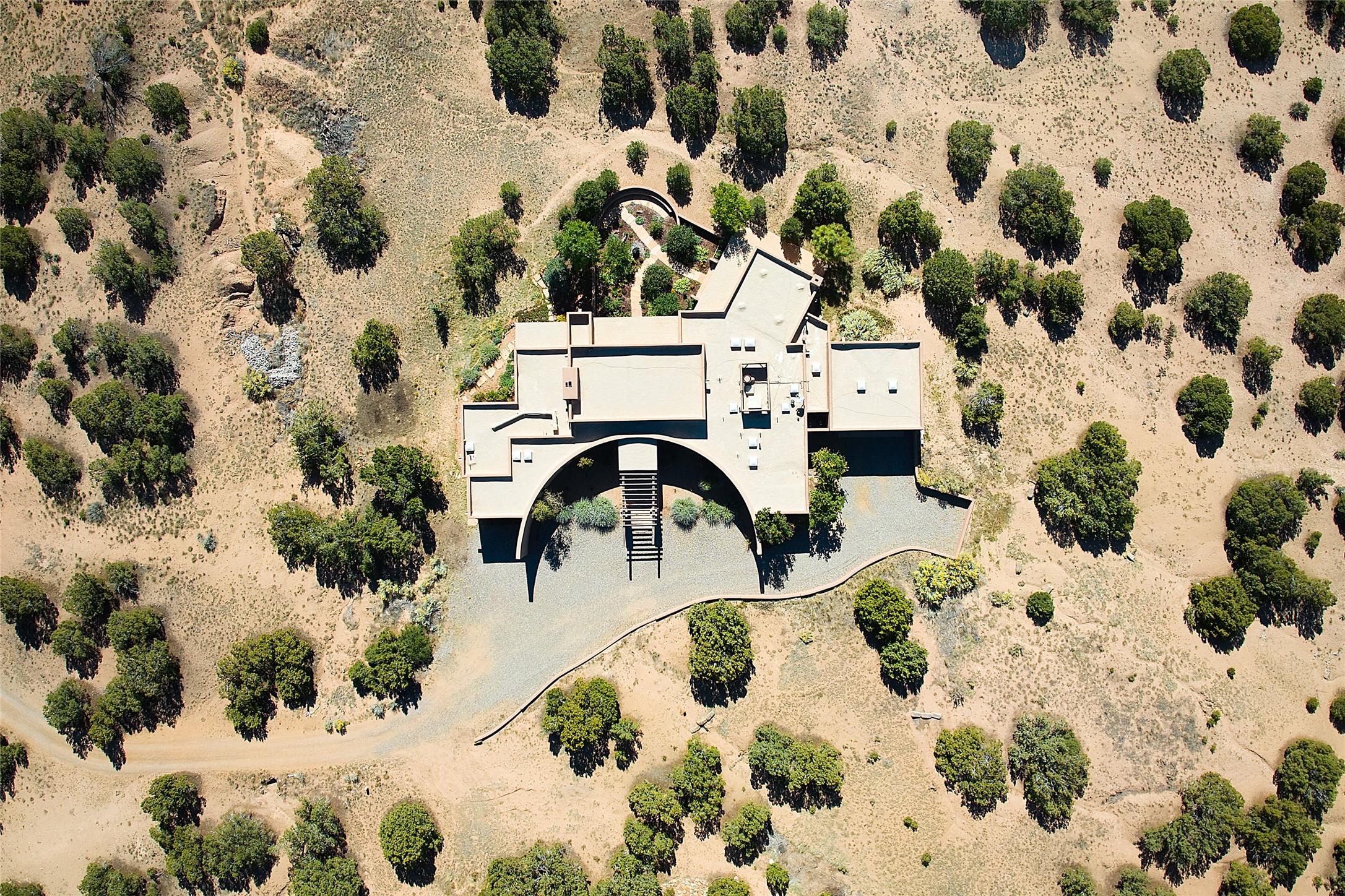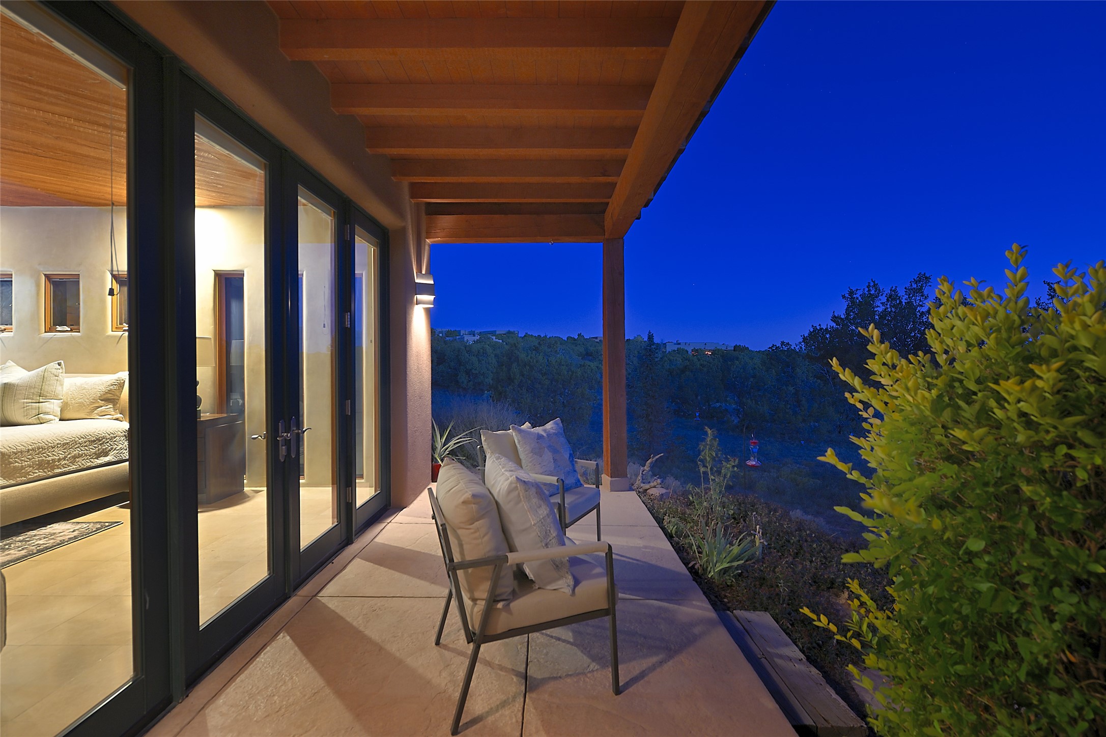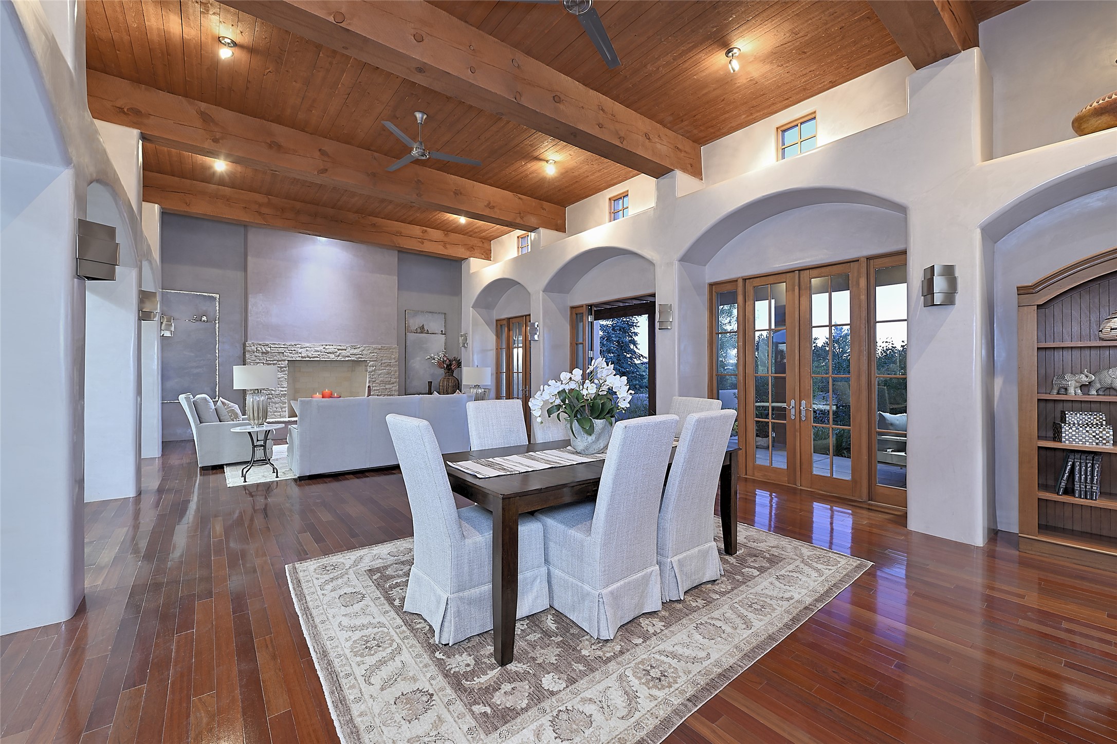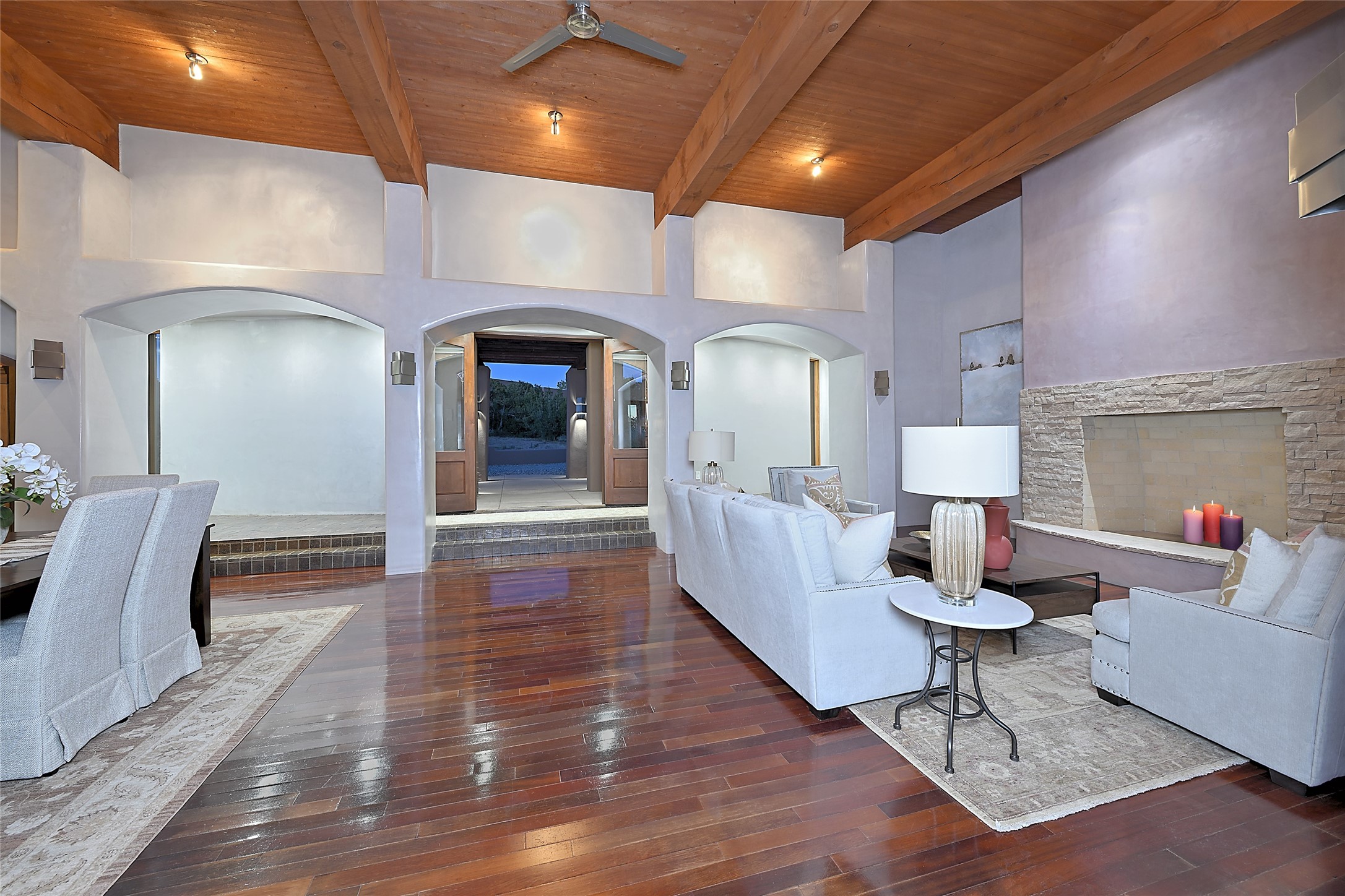 This exceptional home achieves the delicate balance between the softness of a traditional ambiance and the sleek lines of contemporary design. It welcomes residents and guests with a sense of warmth and comfort while maintaining an up-to-the-minute aesthetic. The house harmoniously fuses these two design sensibilities, ensuring that everyone who steps through its doors feels instantly at home. This thoughtfully designed home is distinguished by a great room featuring a massive fireplace that serves as a focal point. These spaces naturally flow through to incredible gardens, making it an enchanting retreat. Floor to-ceiling glass doors and windows create a continuous visual connection with nature, allowing the beauty of the outdoors to become an integral part of the living experience. To further enhance its appeal, the home is designed with three unique guest rooms, each located in separate wings for privacy. The pice de rsistance is the glorious primary suite, complete with a true walk-in shower, a soaking tub, and a custom-fitted walk-in closet. Finally, the heart of this home is the professional chef's kitchen, which opens to an adjacent informal living and eating areas, where family and friends can come together in a warm and welcoming atmosphere. Enjoy all the amenities of The Club at Las Campanas or choose to live a tranquil secluded life at home with friends and family with only a 10 minute drive to the famous galleries and restaurants of downtown Santa Fe.