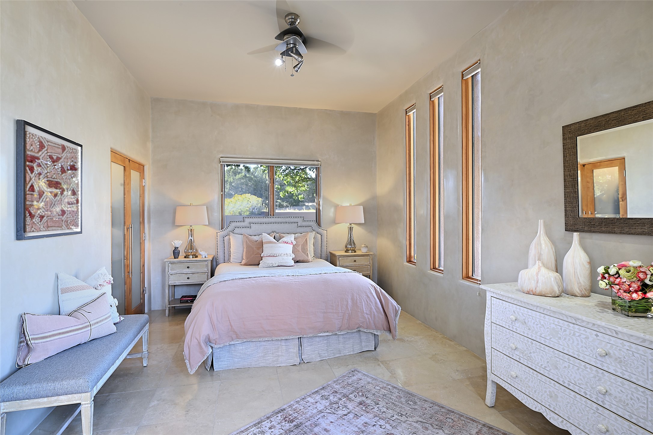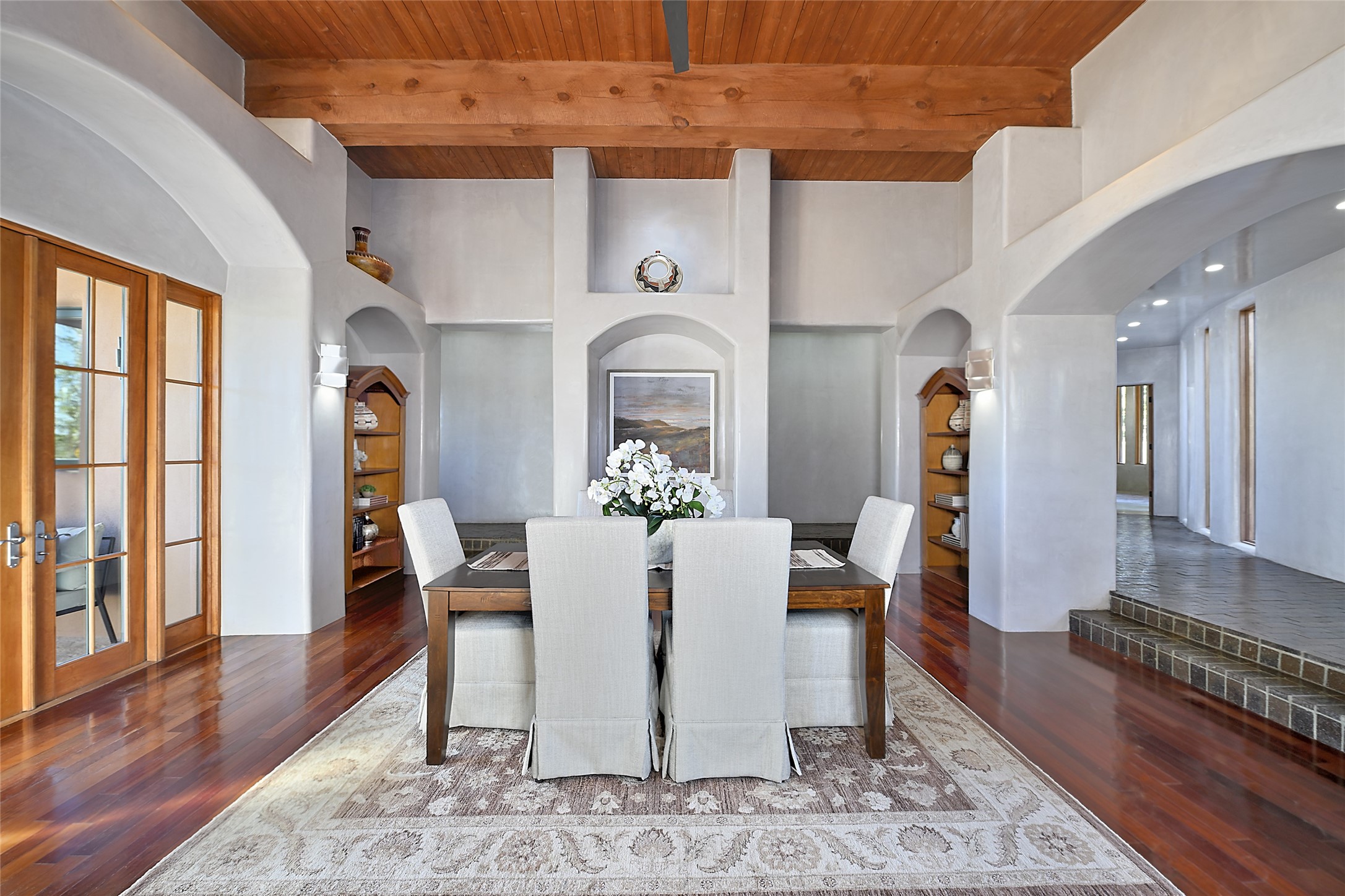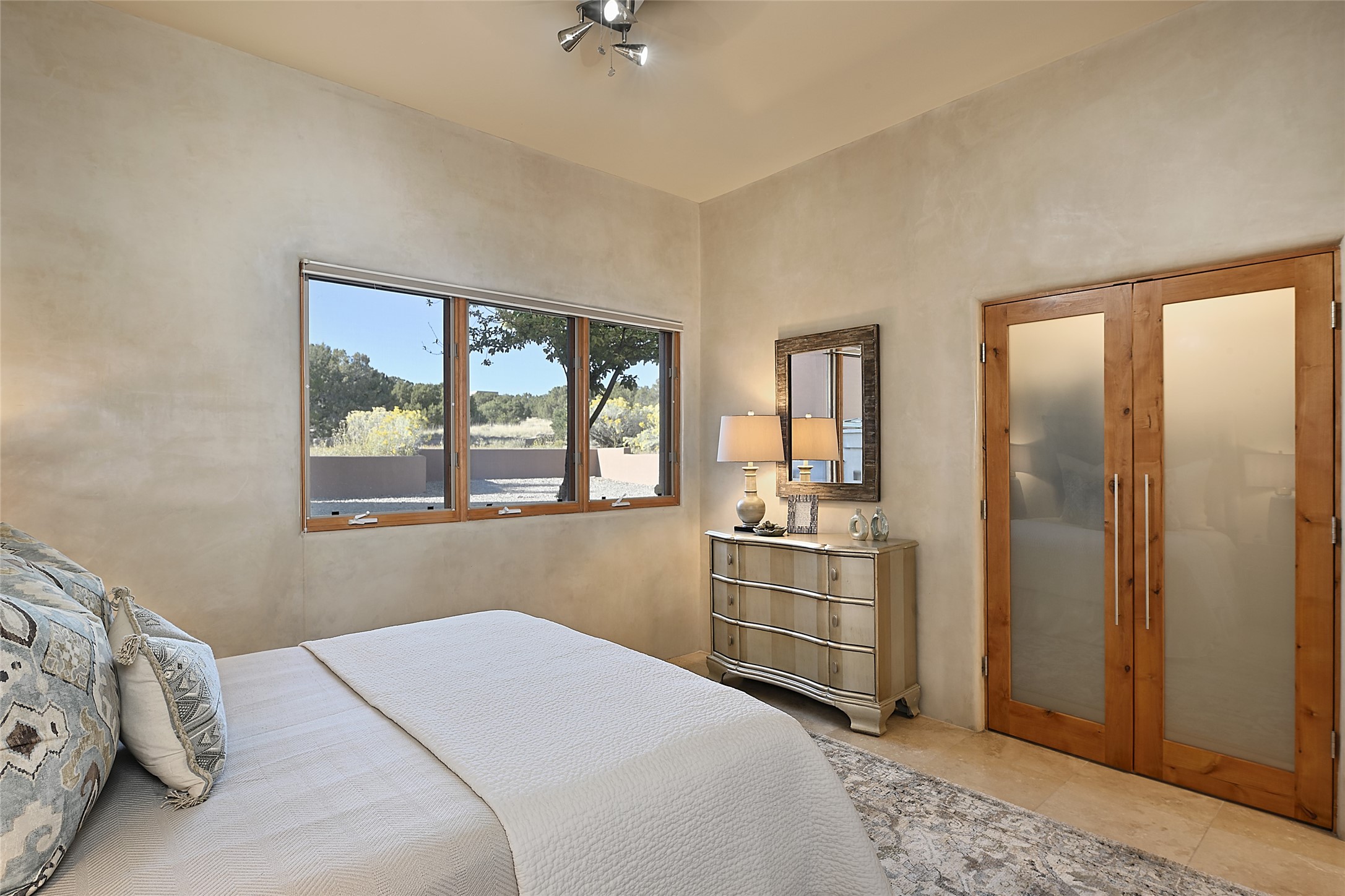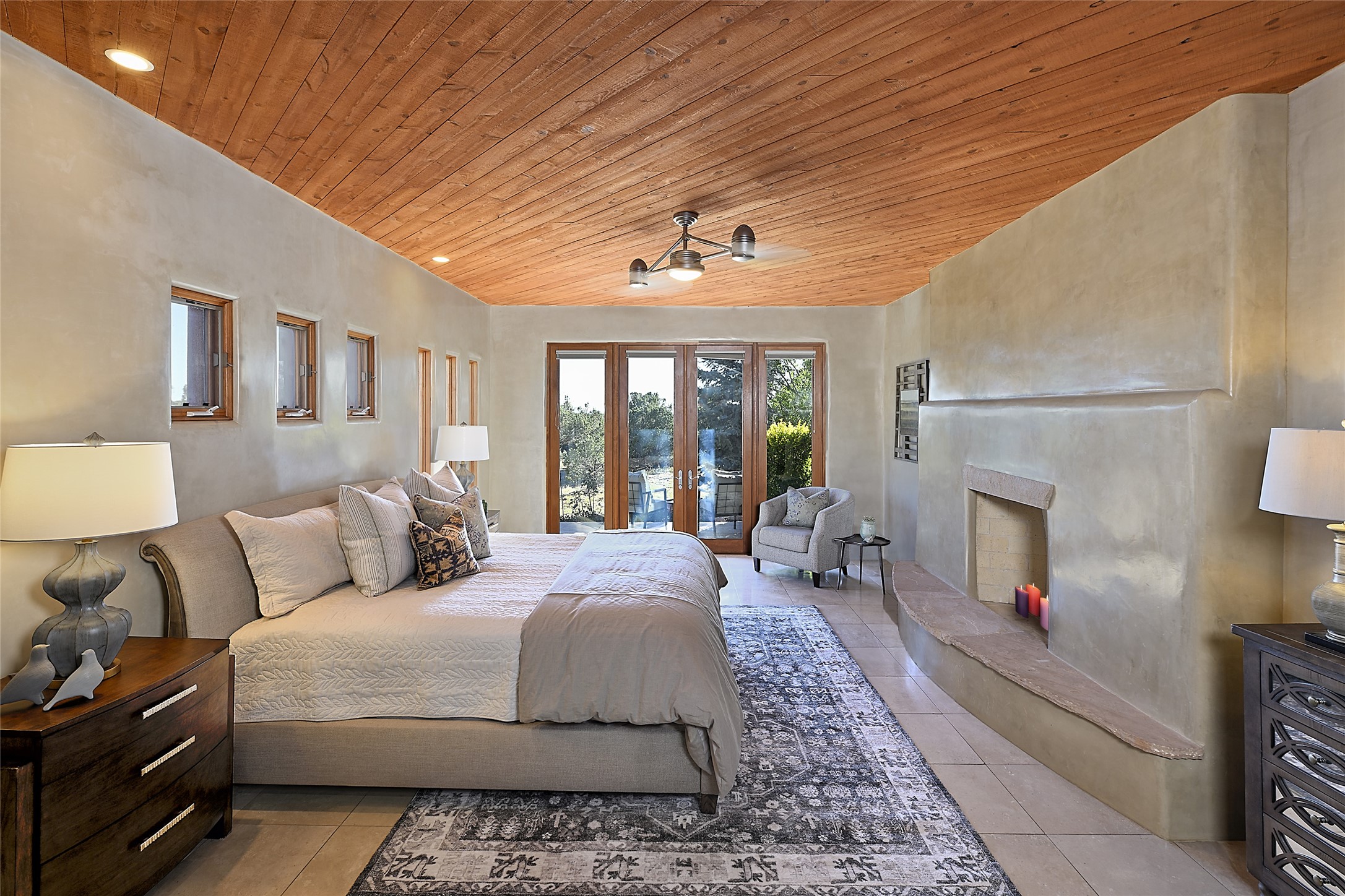 This exceptional home achieves the delicate balance between the softness of a traditional ambiance and the sleek lines of contemporary design. It welcomes residents and guests with a sense of warmth and comfort while maintaining an up-to-the-minute aesthetic. The house harmoniously fuses these two design sensibilities, ensuring that everyone who steps through its doors feels instantly at home. This thoughtfully designed home is distinguished by a great room featuring a massive fireplace that serves as a focal point. These spaces naturally flow through to incredible gardens, making it an enchanting retreat. Floor to-ceiling glass doors and windows create a continuous visual connection with nature, allowing the beauty of the outdoors to become an integral part of the living experience. To further enhance its appeal, the home is designed with three unique guest rooms, each located in separate wings for privacy. The pice de rsistance is the glorious primary suite, complete with a true walk-in shower, a soaking tub, and a custom-fitted walk-in closet. Finally, the heart of this home is the professional chef's kitchen, which opens to an adjacent informal living and eating areas, where family and friends can come together in a warm and welcoming atmosphere. Enjoy all the amenities of The Club at Las Campanas or choose to live a tranquil secluded life at home with friends and family with only a 10 minute drive to the famous galleries and restaurants of downtown Santa Fe.