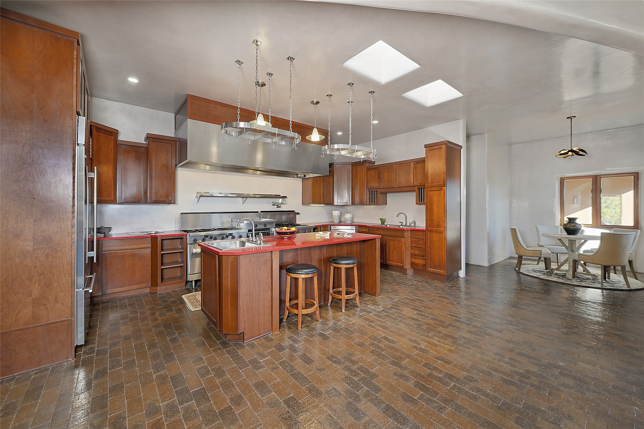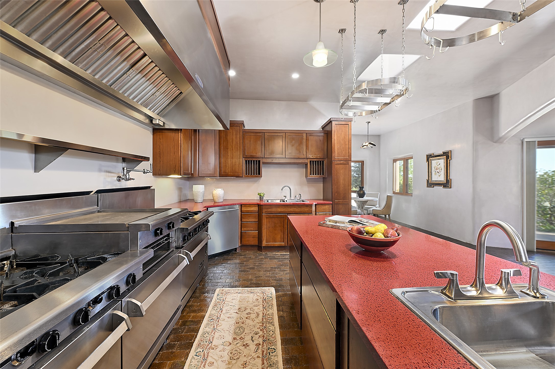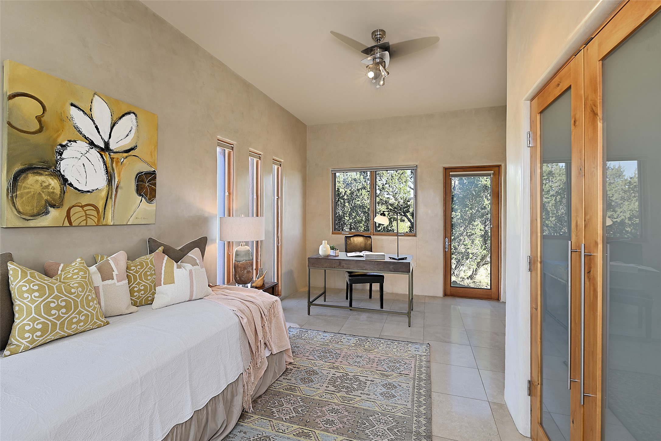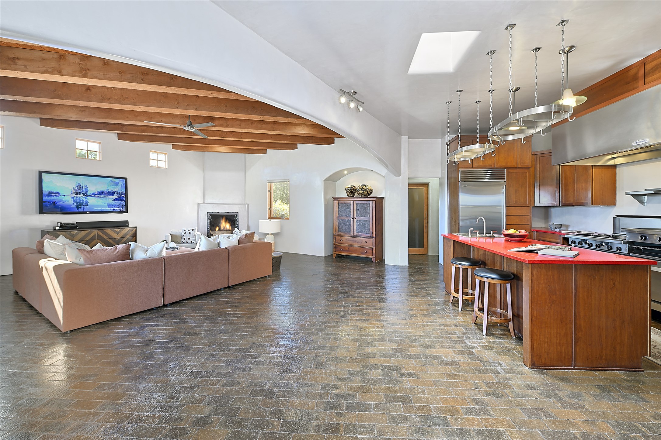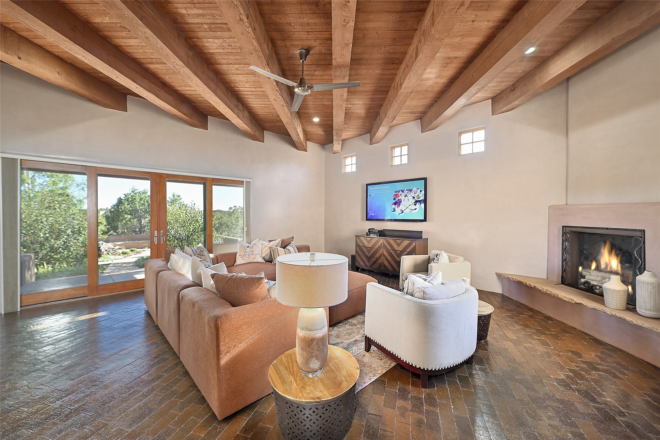This exceptional home achieves the delicate balance between the softness of a traditional ambiance and the sleek lines of contemporary design. It welcomes residents and guests with a sense of warmth and comfort while maintaining an up-to-the-minute aesthetic. The house harmoniously fuses these two design sensibilities, ensuring that everyone who steps through its doors feels instantly at home. This thoughtfully designed home is distinguished by a great room featuring a massive fireplace that serves as a focal point. These spaces naturally flow through to incredible gardens, making it an enchanting retreat. Floor to-ceiling glass doors and windows create a continuous visual connection with nature, allowing the beauty of the outdoors to become an integral part of the living experience. To further enhance its appeal, the home is designed with three unique guest rooms, each located in separate wings for privacy. The pice de rsistance is the glorious primary suite, complete with a true walk-in shower, a soaking tub, and a custom-fitted walk-in closet. Finally, the heart of this home is the professional chef's kitchen, which opens to an adjacent informal living and eating areas, where family and friends can come together in a warm and welcoming atmosphere. Enjoy all the amenities of The Club at Las Campanas or choose to live a tranquil secluded life at home with friends and family with only a 10 minute drive to the famous galleries and restaurants of downtown Santa Fe.