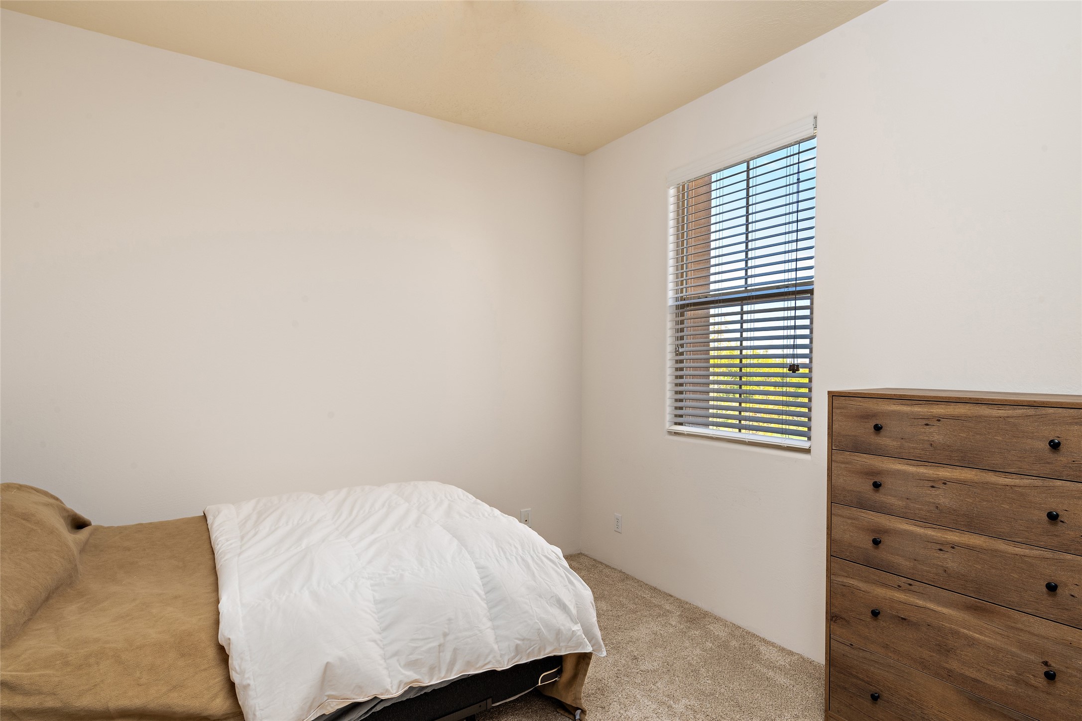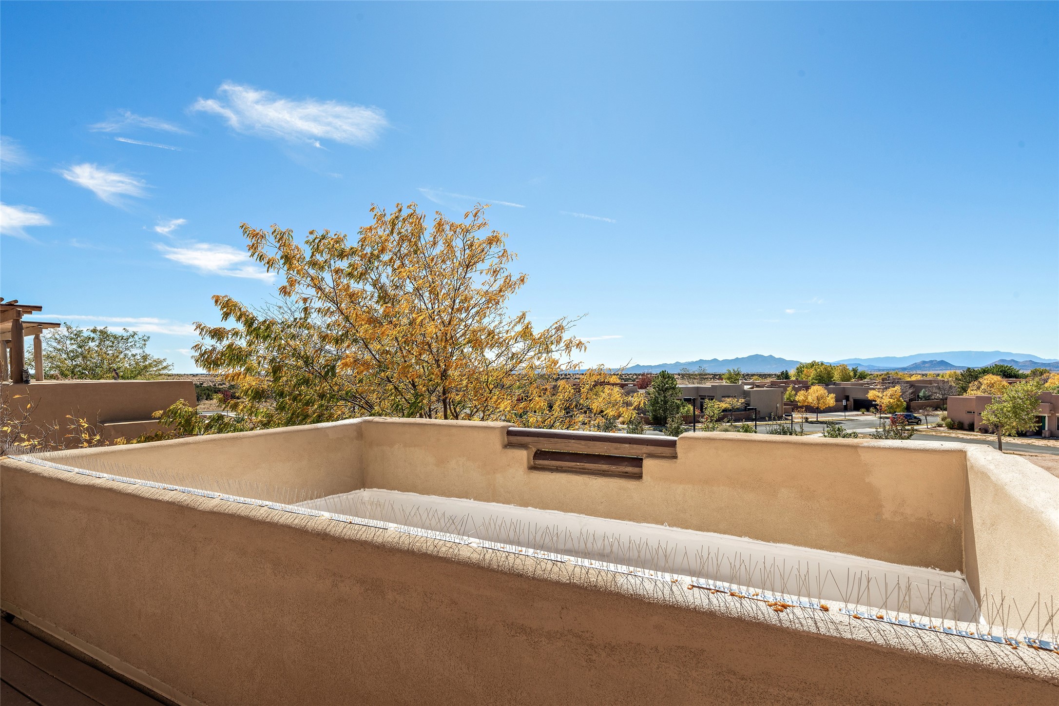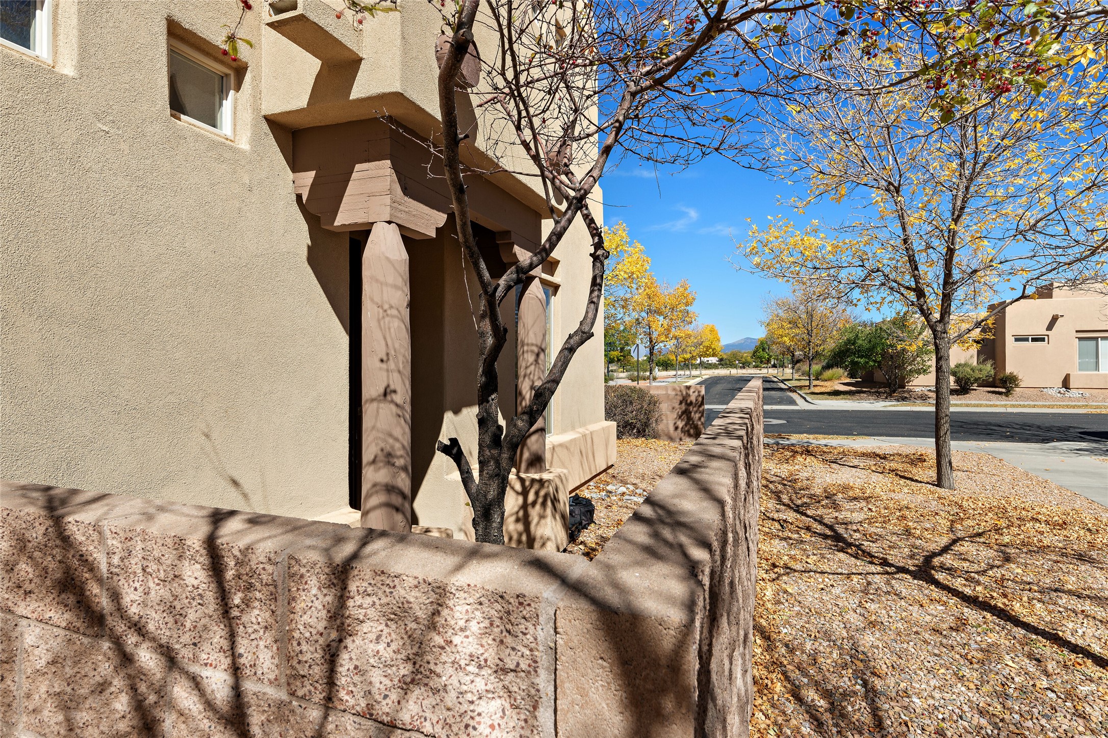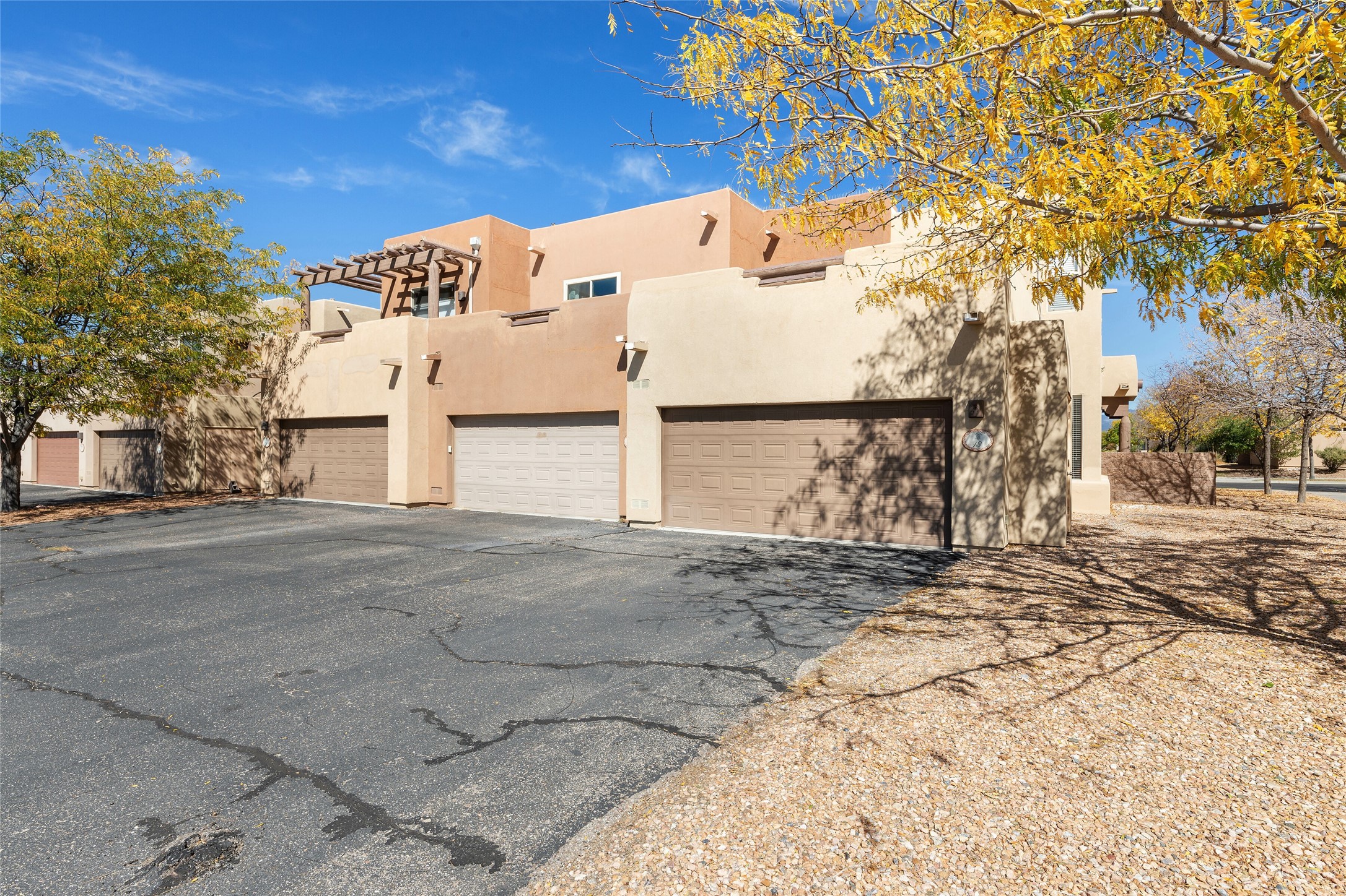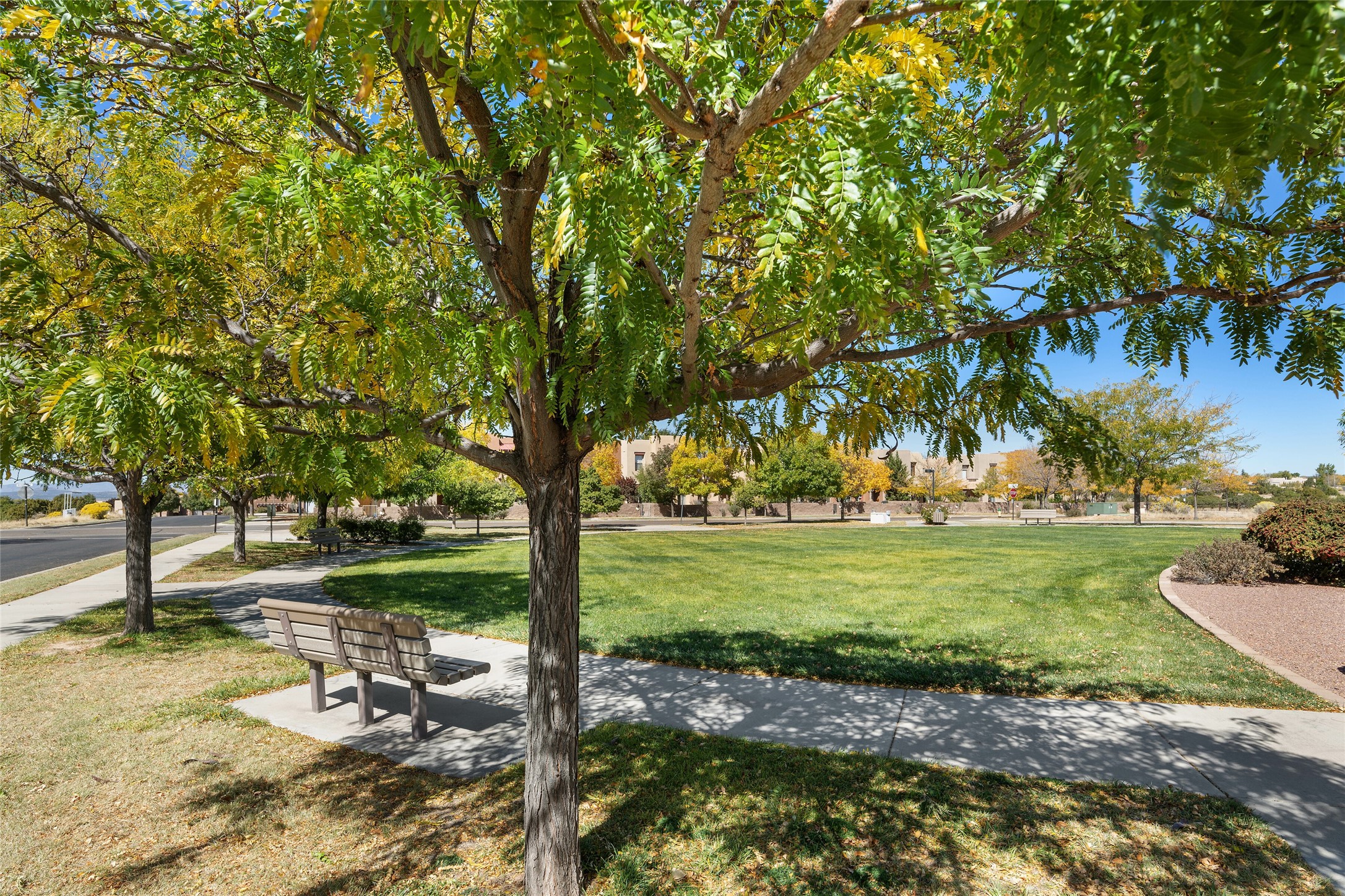 This desirable end unit located on a lovely park in Rancho Viejo, has two bedrooms, 2 and 1/2 baths and a flexroom that can serve as a den or office space. It was built with many upgrades and has tile floors in the downstairs, nice cabinets, T&G ceilings with vigas, a gas kiva fireplace and much more. The primary suite has a private deck with wonderful views. The current owners put in new washer/dryer and kitchen appliances in 2019 (with exception of dishwasher). The courtyard exterior space is low maintenance and has great possibilities and views of the park.
