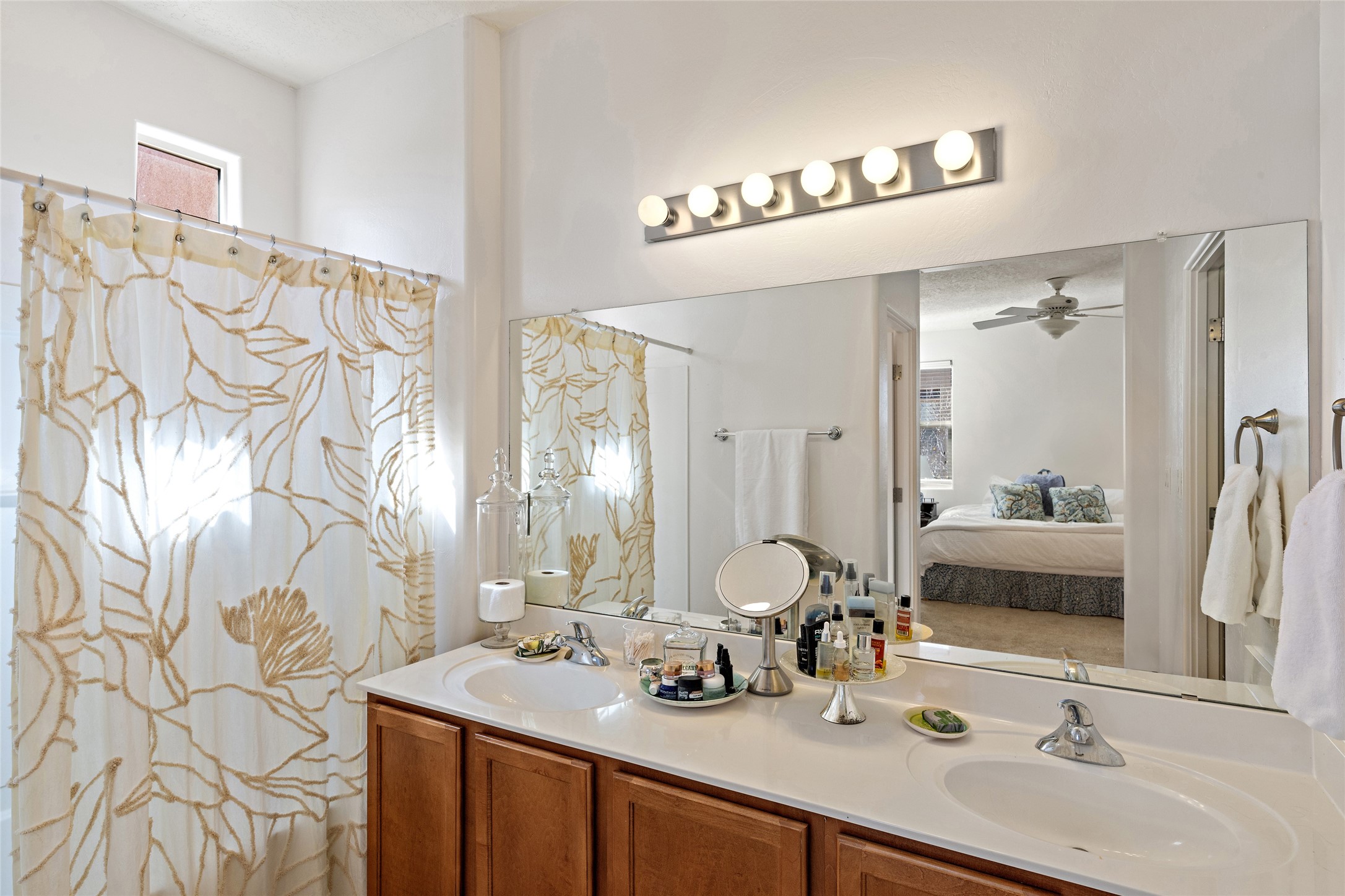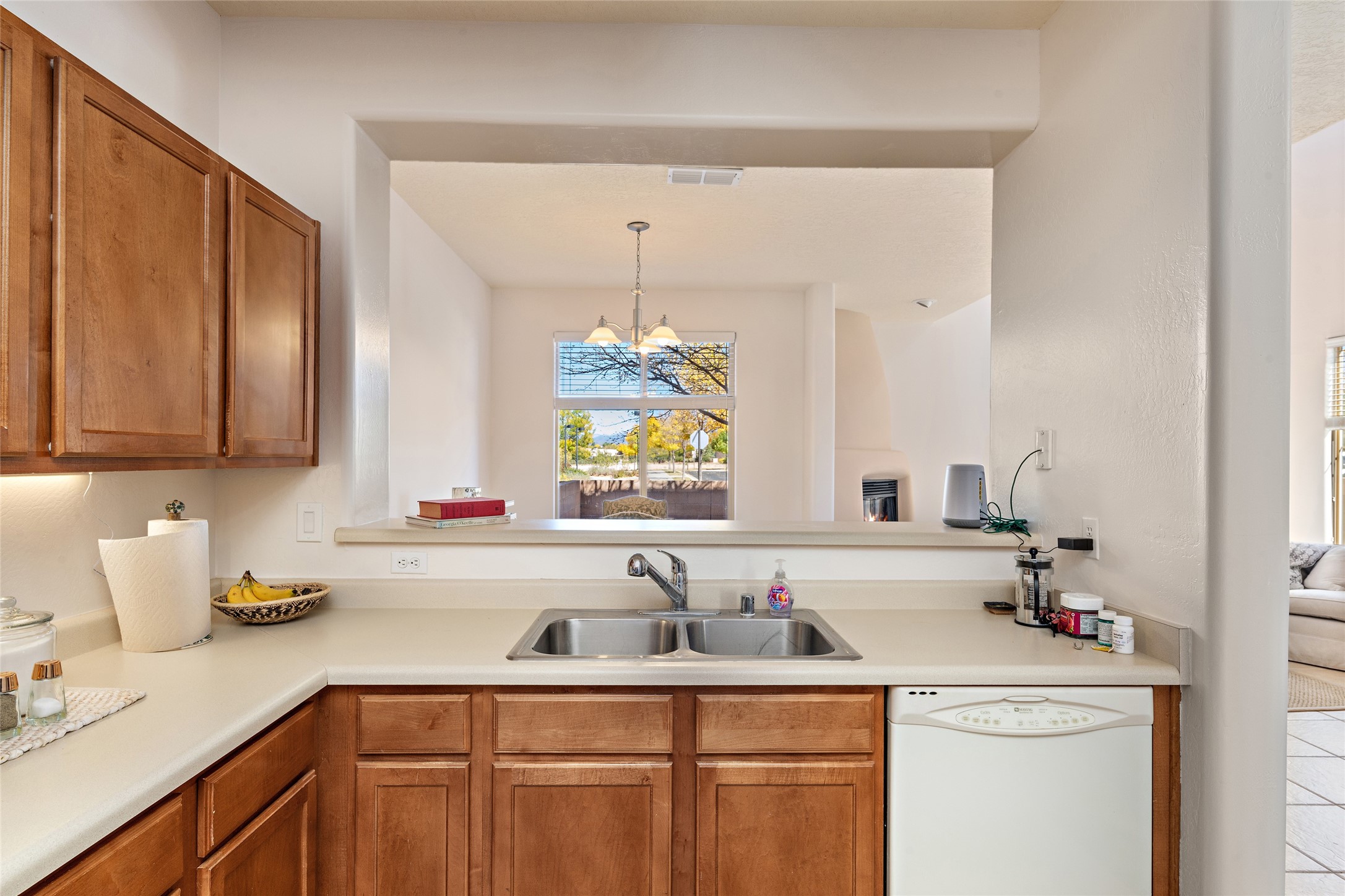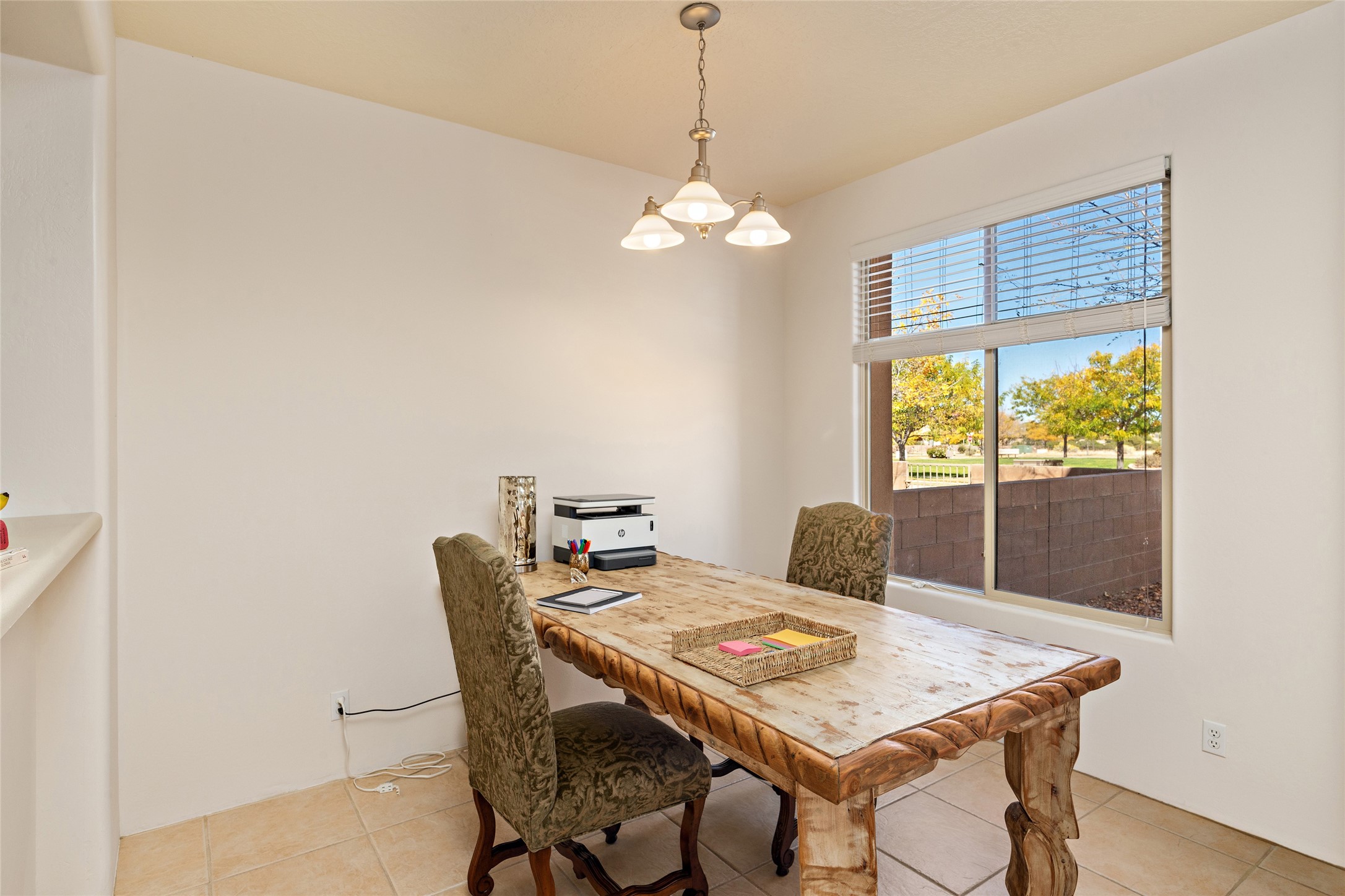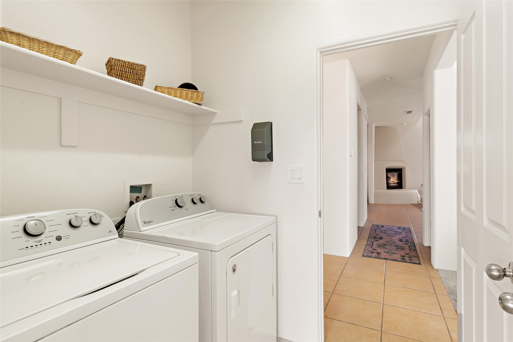 This desirable end unit located on a lovely park in Rancho Viejo, has two bedrooms, 2 and 1/2 baths and a flexroom that can serve as a den or office space. It was built with many upgrades and has tile floors in the downstairs, nice cabinets, T&G ceilings with vigas, a gas kiva fireplace and much more. The primary suite has a private deck with wonderful views. The current owners put in new washer/dryer and kitchen appliances in 2019 (with exception of dishwasher). The courtyard exterior space is low maintenance and has great possibilities and views of the park.