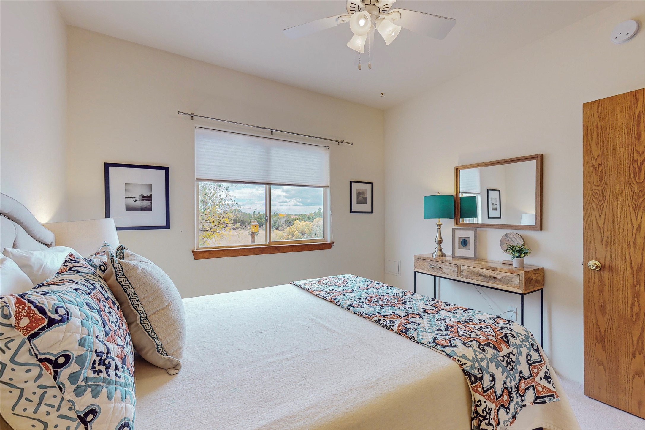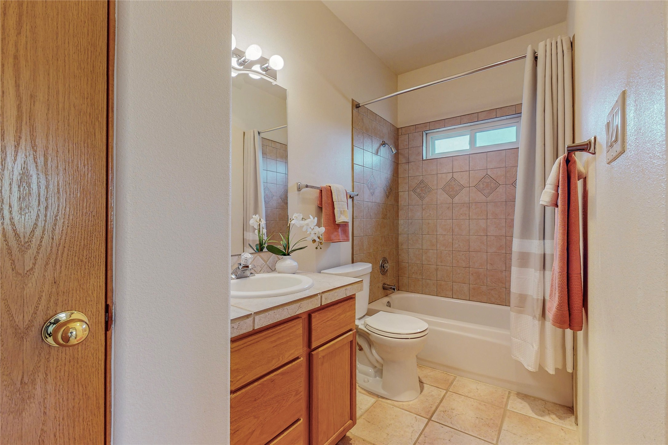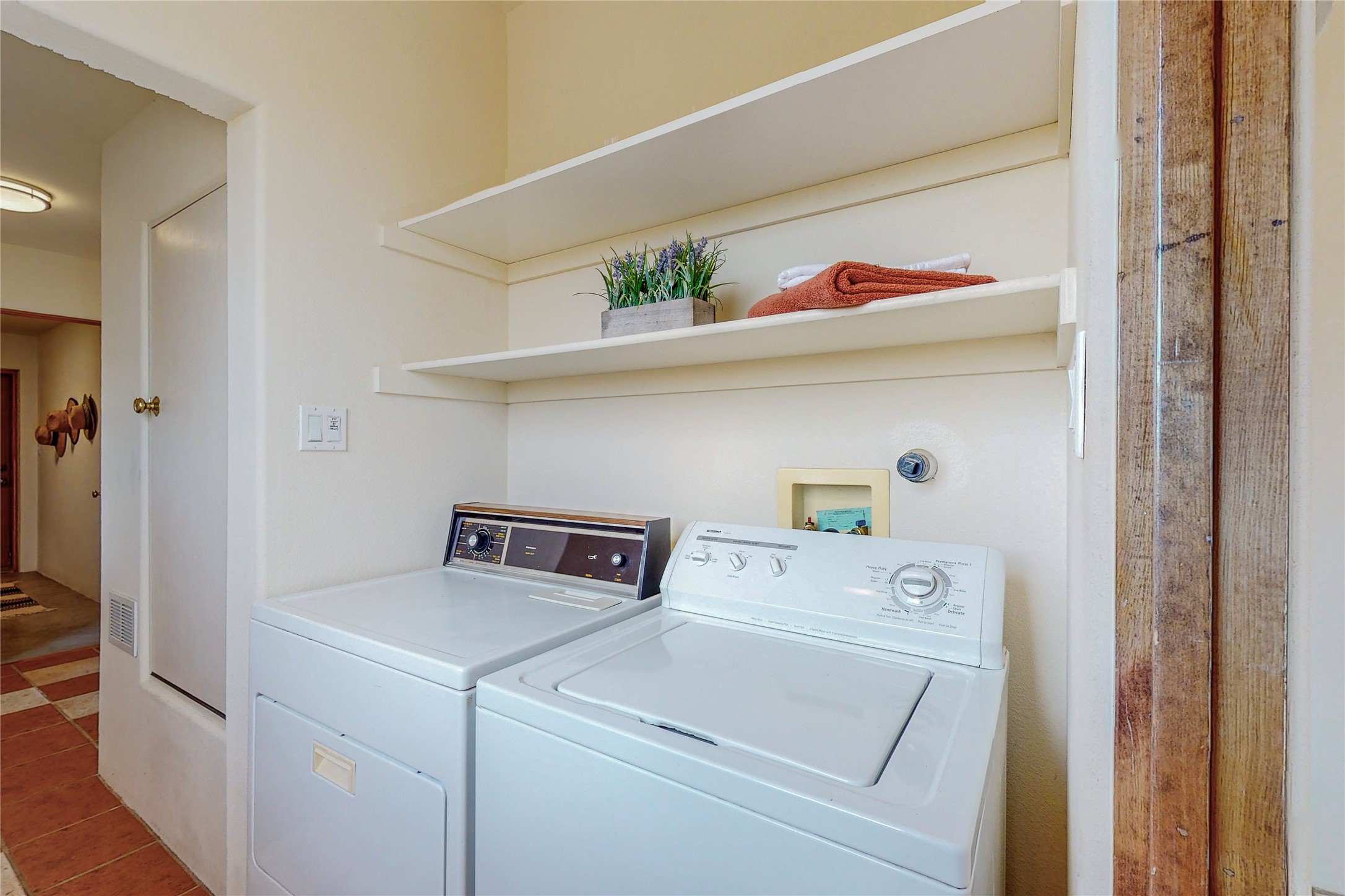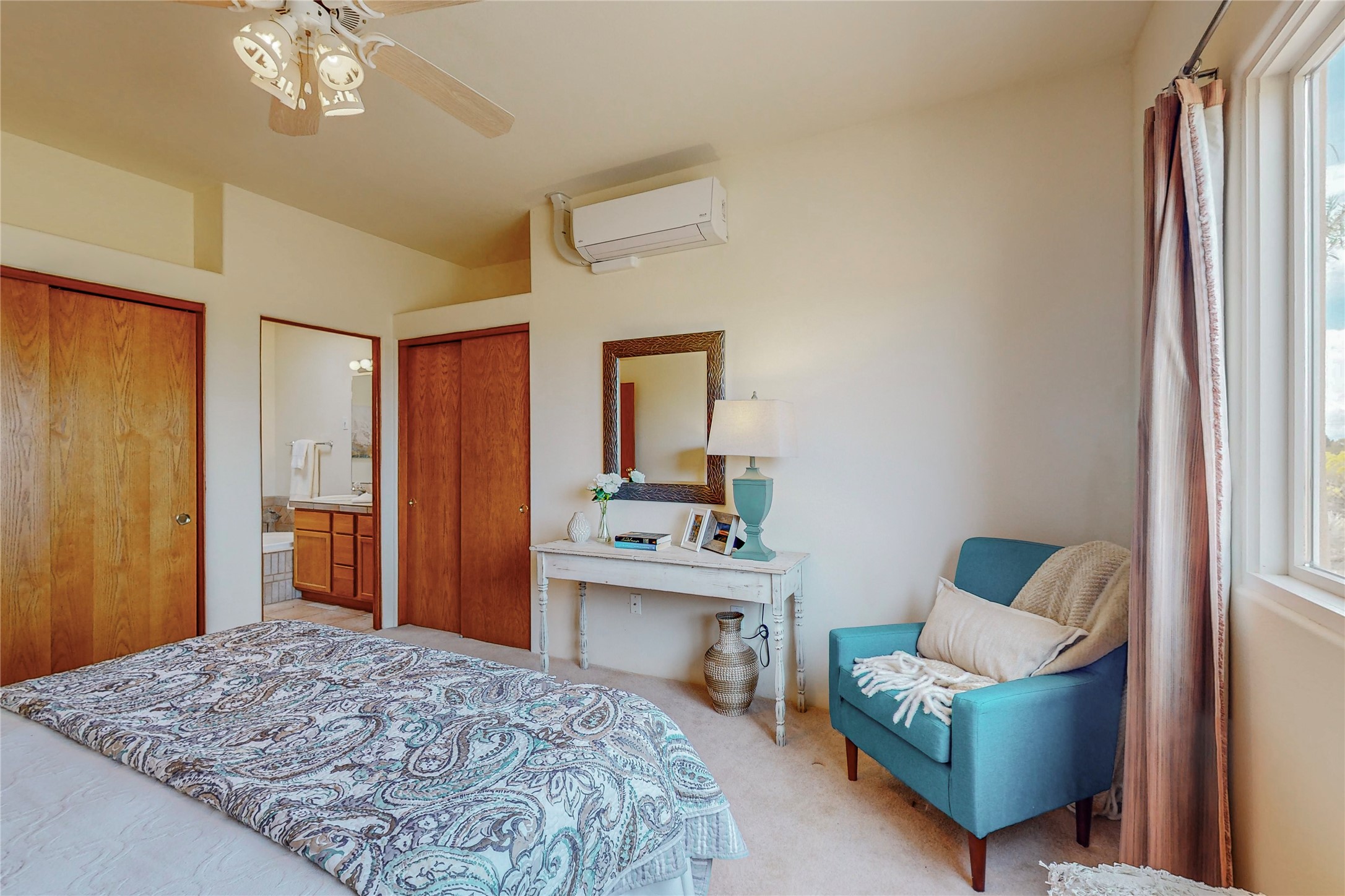 Located in the community of Eldorado, this Santa Fe-style single-story home includes an open floor plan, 3 bedrooms, 2 bathrooms, 1 car garage. The living room is graced with lofty ceilings and enhanced with vigas. A gas burning fireplace and the adjoining kitchen and dining area offers a practical space for both cooking and hosting gatherings. The primary suite includes dual closets, a roomy bathroom with dual sinks, a walk-in shower, and a soaking tub. The flexible floor plan offers versatility, with the option to use the second bedroom as an office, and the third bedroom as a media room or exercise room. With the back portal used for relaxing and entertaining, this serene location provides awe-inspiring 360 panoramic views, including stunning sunsets over the Jemez mountains to the west, views of the Sangre de Cristo Mountains to the east, and boundless vistas to the south, all the way to the Sandia Mountains in Albuquerque. The property boasts several enhancements: recently installed septic system, 3 mini splits for efficient heating and cooling, an upgraded boiler for radiant heat, a fresh-water tank, and a new refrigerator. This charming Eldorado property offers a lifestyle that seamlessly combines modern comforts with the natural beauty and tranquility of the community. With versatile living spaces, stunning views, and thoughtful amenities, it's a place to call home.