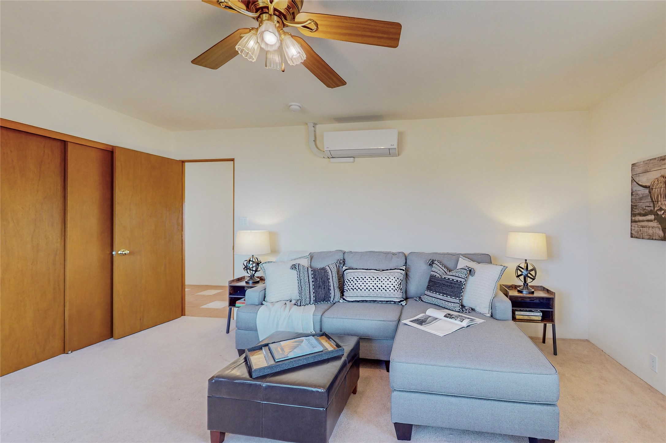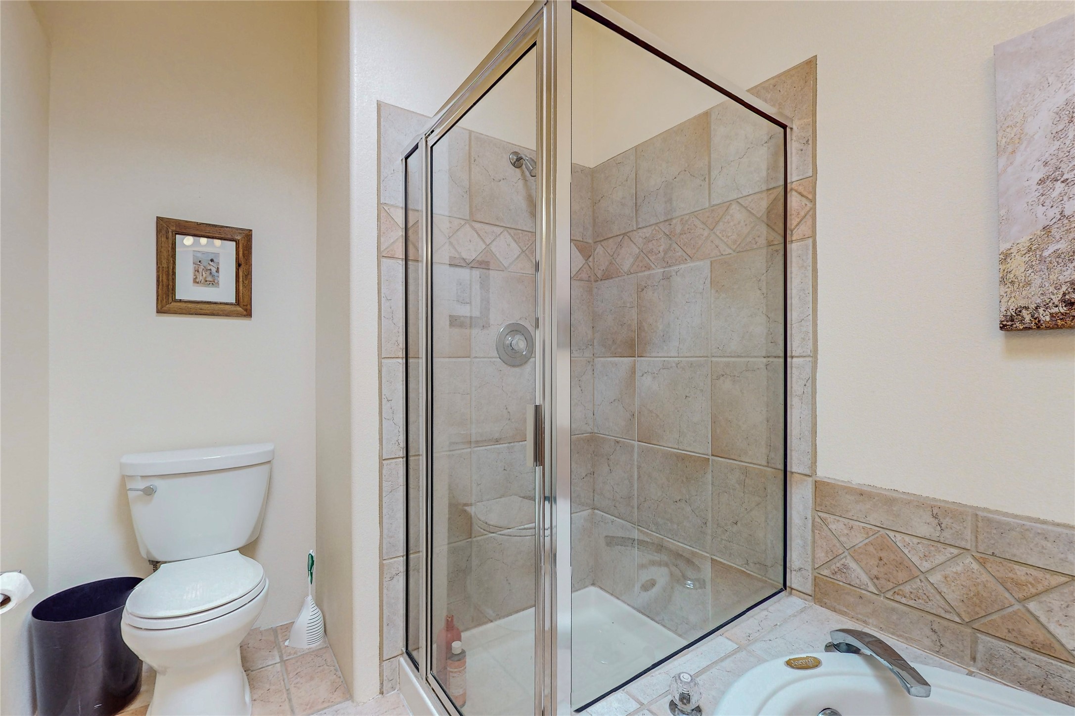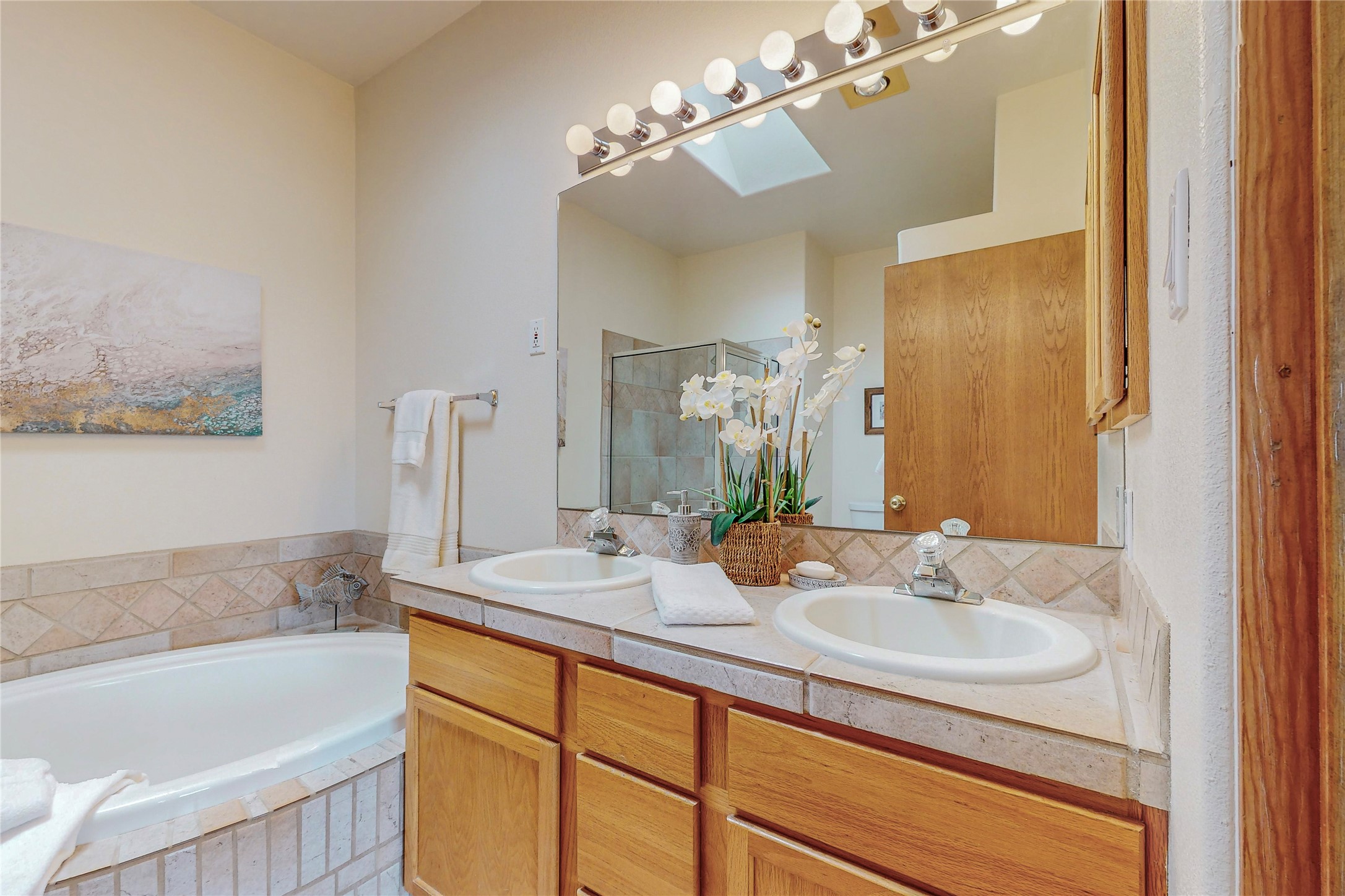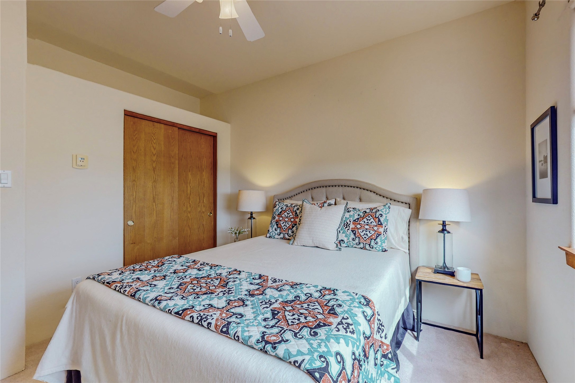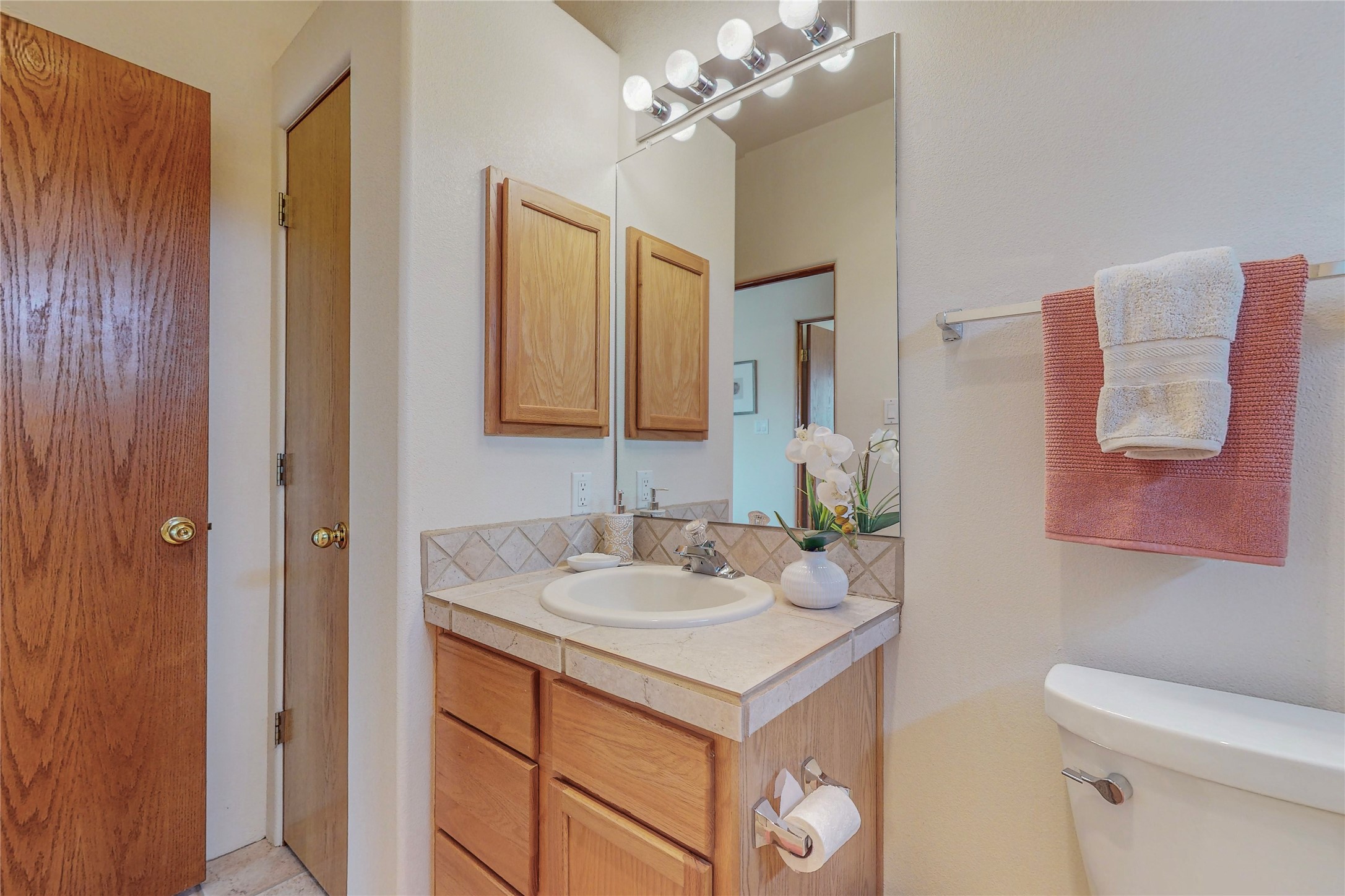 Located in the community of Eldorado, this Santa Fe-style single-story home includes an open floor plan, 3 bedrooms, 2 bathrooms, 1 car garage. The living room is graced with lofty ceilings and enhanced with vigas. A gas burning fireplace and the adjoining kitchen and dining area offers a practical space for both cooking and hosting gatherings. The primary suite includes dual closets, a roomy bathroom with dual sinks, a walk-in shower, and a soaking tub. The flexible floor plan offers versatility, with the option to use the second bedroom as an office, and the third bedroom as a media room or exercise room. With the back portal used for relaxing and entertaining, this serene location provides awe-inspiring 360 panoramic views, including stunning sunsets over the Jemez mountains to the west, views of the Sangre de Cristo Mountains to the east, and boundless vistas to the south, all the way to the Sandia Mountains in Albuquerque. The property boasts several enhancements: recently installed septic system, 3 mini splits for efficient heating and cooling, an upgraded boiler for radiant heat, a fresh-water tank, and a new refrigerator. This charming Eldorado property offers a lifestyle that seamlessly combines modern comforts with the natural beauty and tranquility of the community. With versatile living spaces, stunning views, and thoughtful amenities, it's a place to call home.