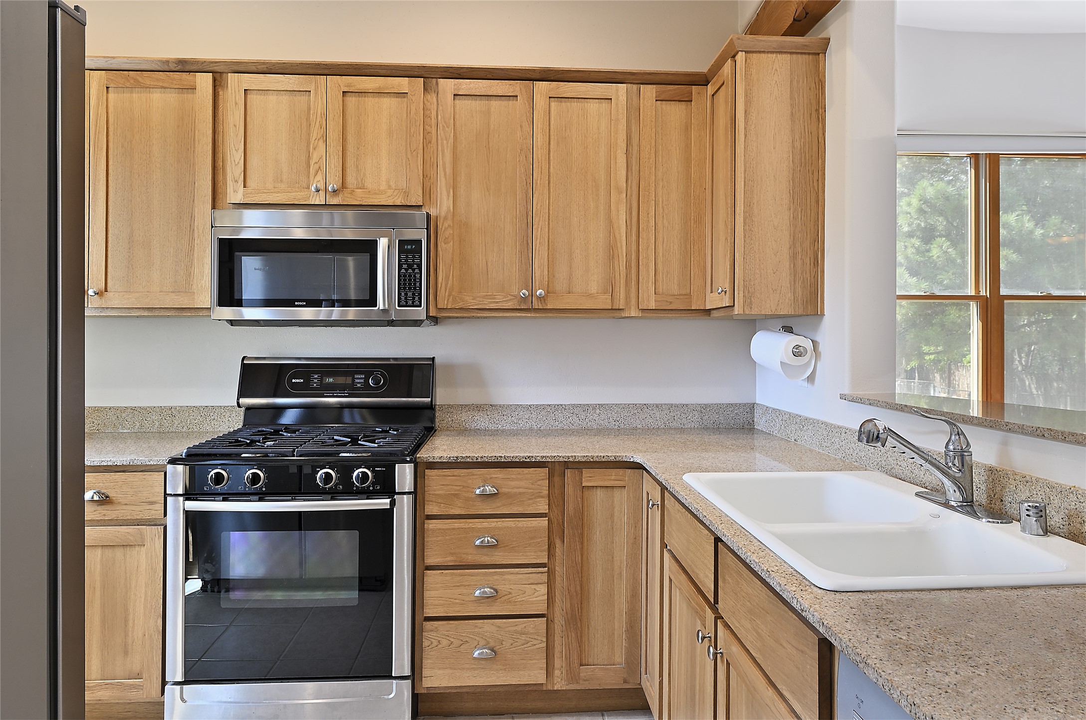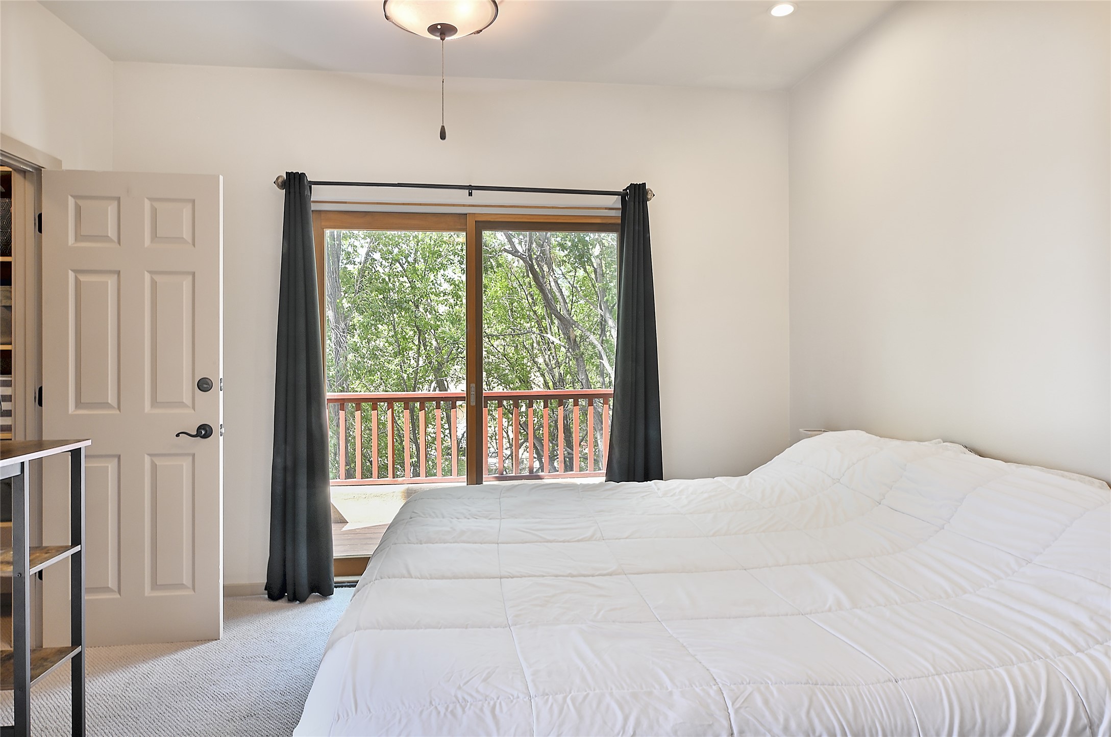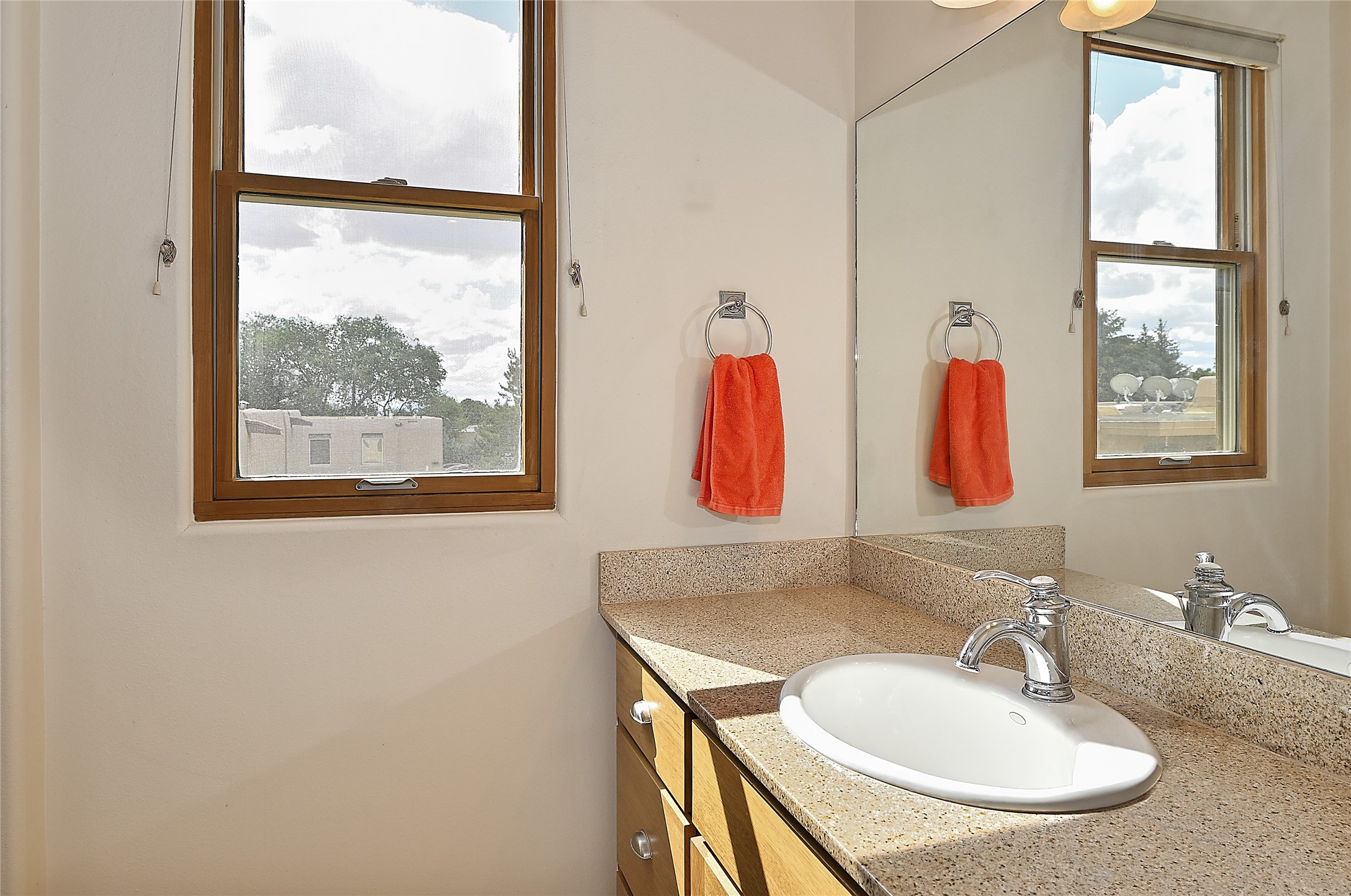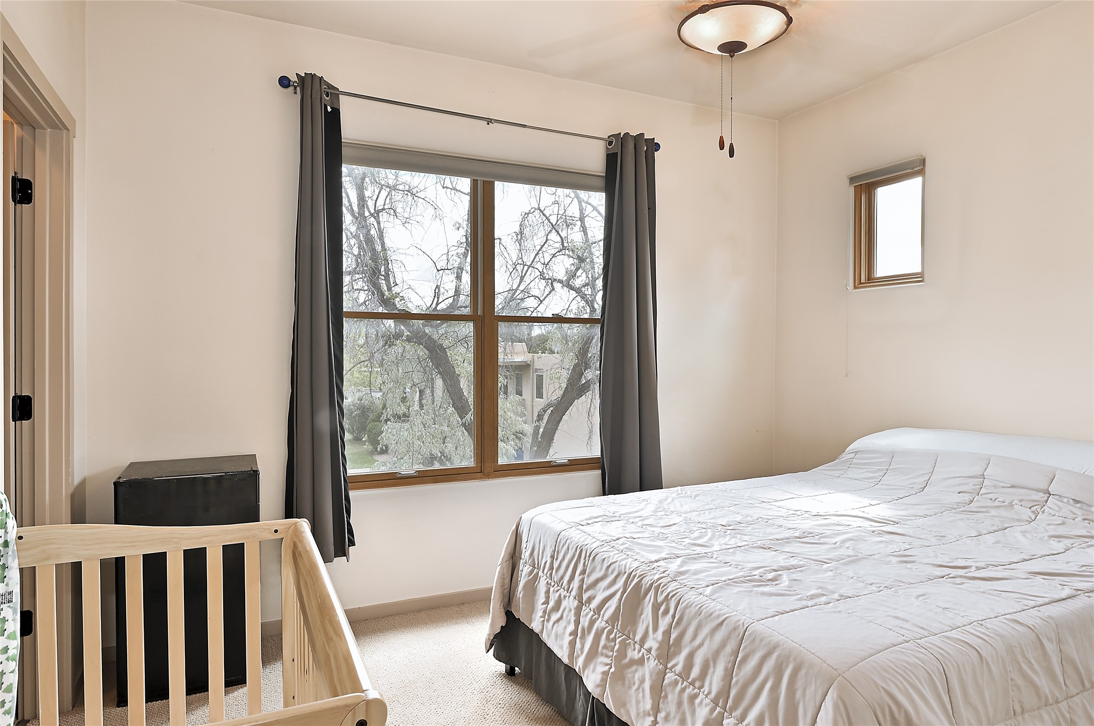 2 bedroom 2.5 bath end unit, 2-story condo with grassy areas in front and back and a shady side yard. Open concept living and dining with fireplace, vigas and beams, and access to an outdoor patio. Kitchen is appointed with granite countertops, Bosch/Whirlpool appliances, and double sink. Primary suite features a deck with Sangre de Cristo views and an ensuite bath with jetted tub. Second bedroom with ensuite bath offers flex space as a studio/office. Central air and heat. Designated parking space. The San Mateo Condo Community has a gated entrance and 11 acres of landscaped property with mature trees. Community facilities include a clubhouse, gym, and pool. Centrally located in the heart of Santa Fe close to shopping, dining, transportation, and many cultural amenities.