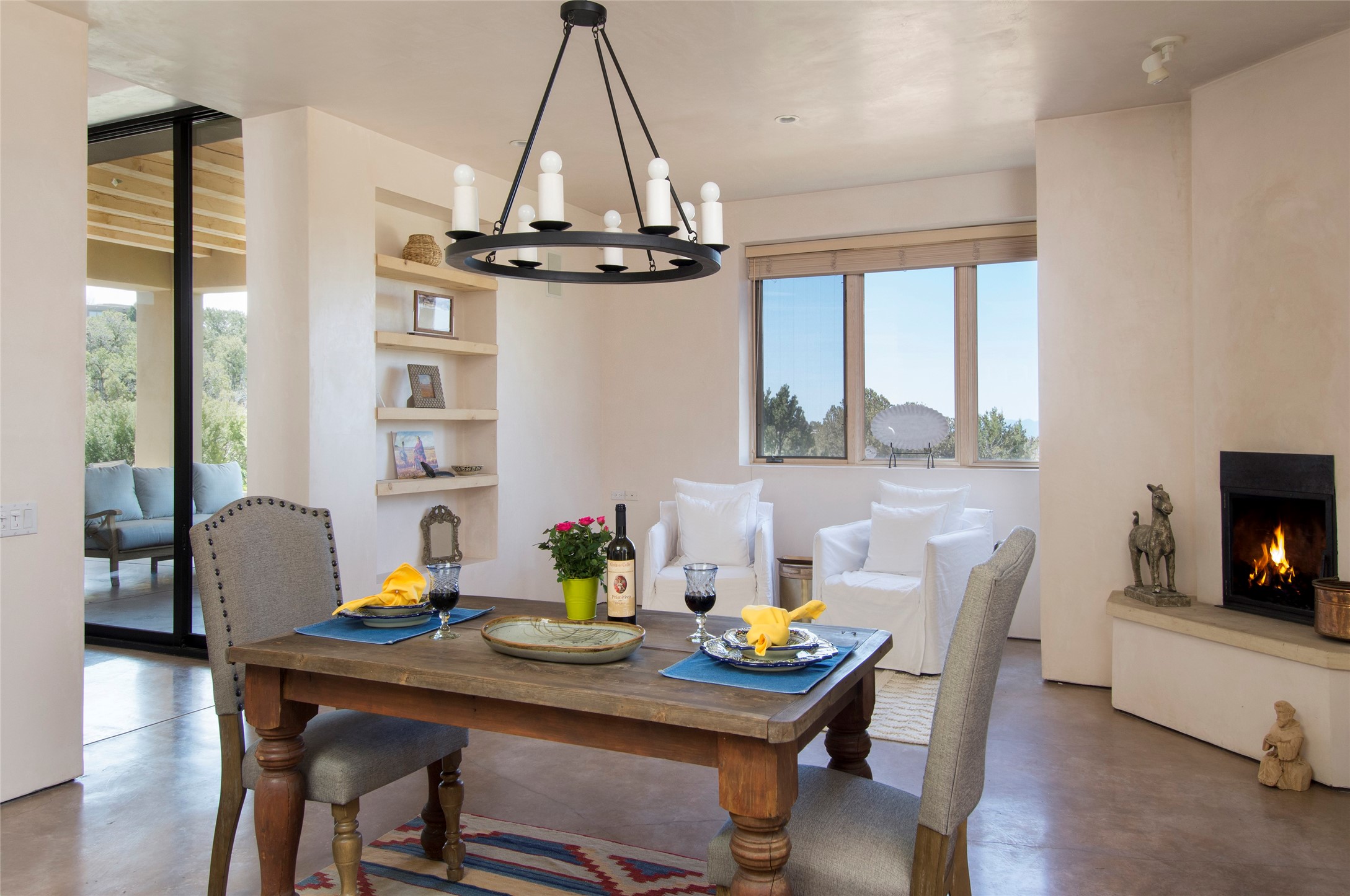 A Stunning, soft contemporary home nestled in the captivating landscapes of Santa Fe. As you approach the property you are greeted by a stunning faade that seamlessly blends modern elements with the timeless charm of the Southwest. The well-thought-out floor plan is designed to maximize natural light and showcase the picturesque surroundings at every turn. The main living area exudes elegance while maintaining a warm and inviting atmosphere. Adjacent to the living area, you'll find a meticulously designed gourmet kitchen, equipped with state-of-the-art appliances, ample counter space, and storage solutions. The bedrooms in this soft contemporary home are thoughtfully placed to ensure privacy and tranquility. Each bedroom offers an oasis of comfort. The covered outdoor portal provides a seamless extension of the living space and offers a sanctuary to relax and rejuvenate. It is a perfect spot for al fresco dining, morning coffee, or simply basking in the tranquility of the surrounding landscape. In summary, this home combines modern architectural elements with a deep appreciation for its natural surroundings. With its thoughtfully crafted floor plan, captivating views, and inviting outdoor spaces, it offers a tranquil haven where you can truly appreciate the beauty and serenity of Santa Fe.