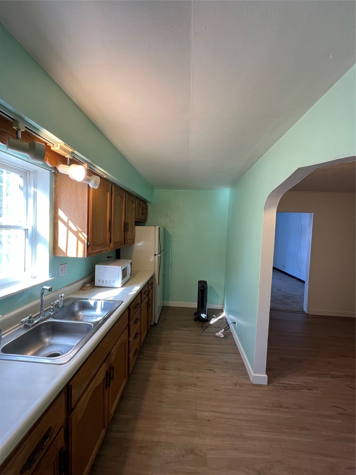 This charming one family owned property is located conveniently on Fairview Lane in Espanola. The home has 2 bedrooms and 1 bathroom, with a covered front porch and walled front yard and an enclosed back porch with plenty of space for your needs. There is a separate electric, gas, and sewer hookup for a mobile home providing investment income opportunities. The home has a private well, with the ability to connect to City water. Gas meter to be installed for main home. Property is being sold "As Is."