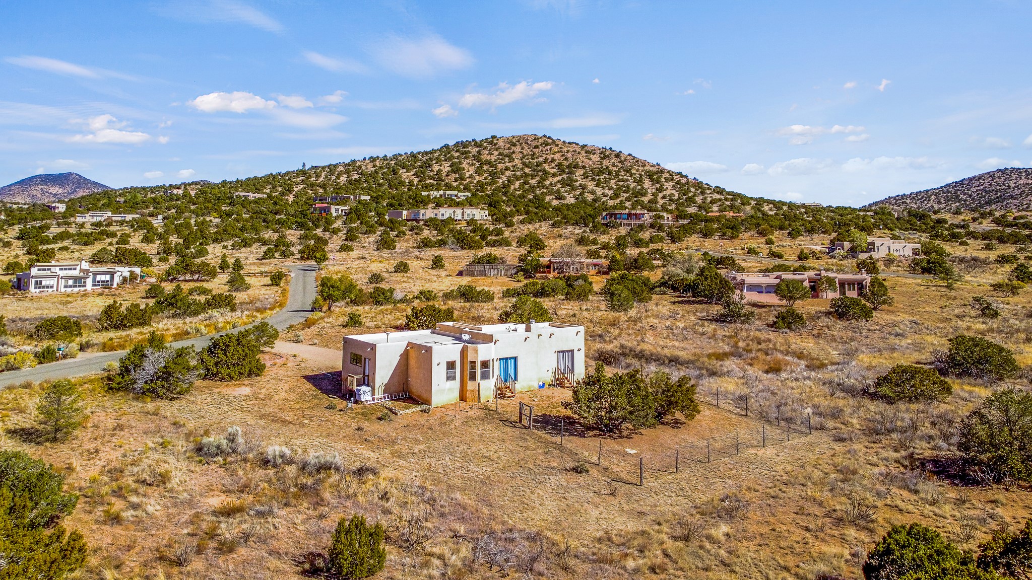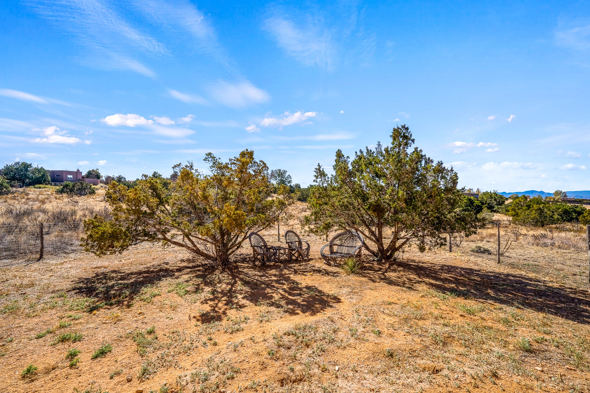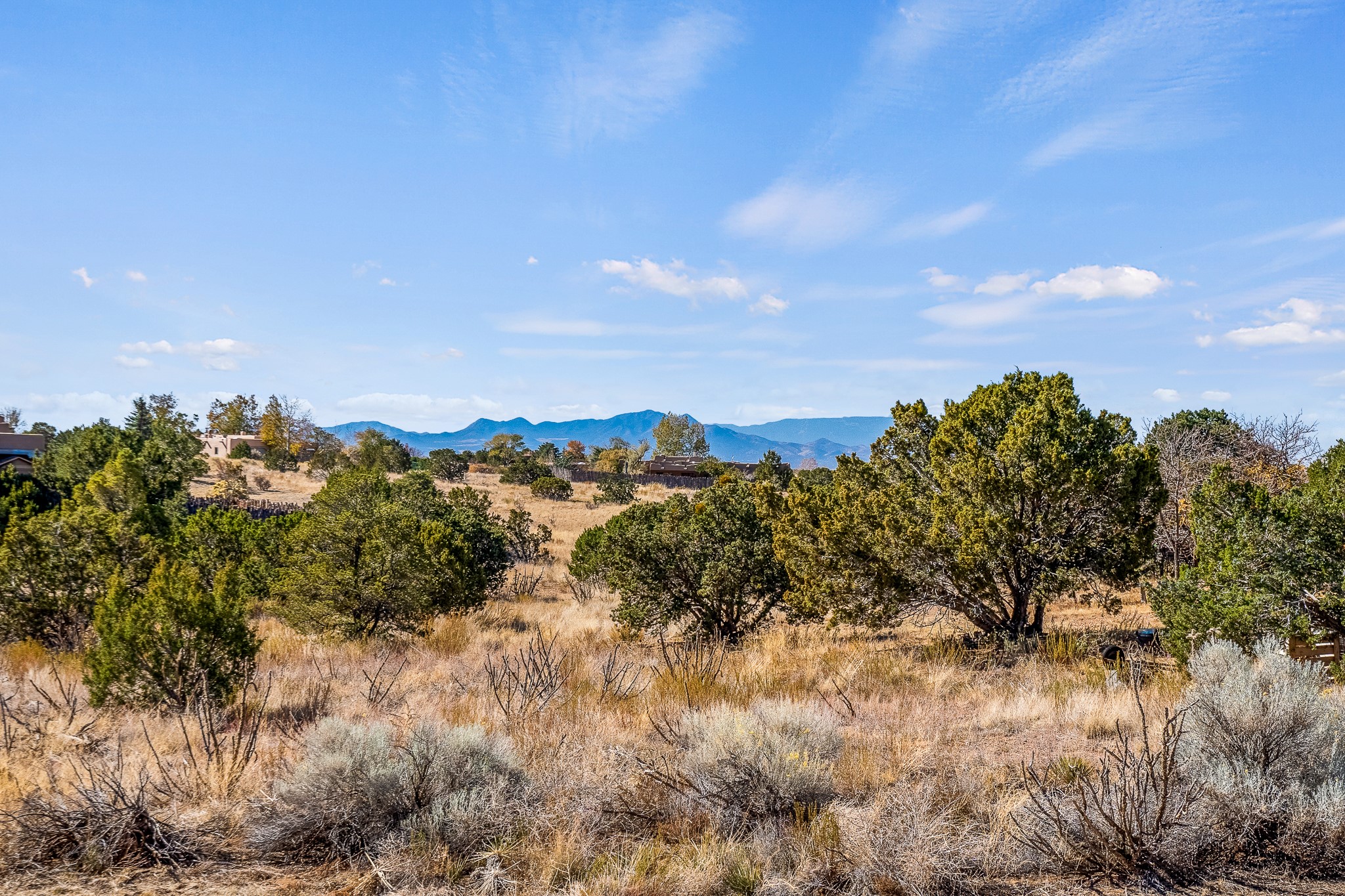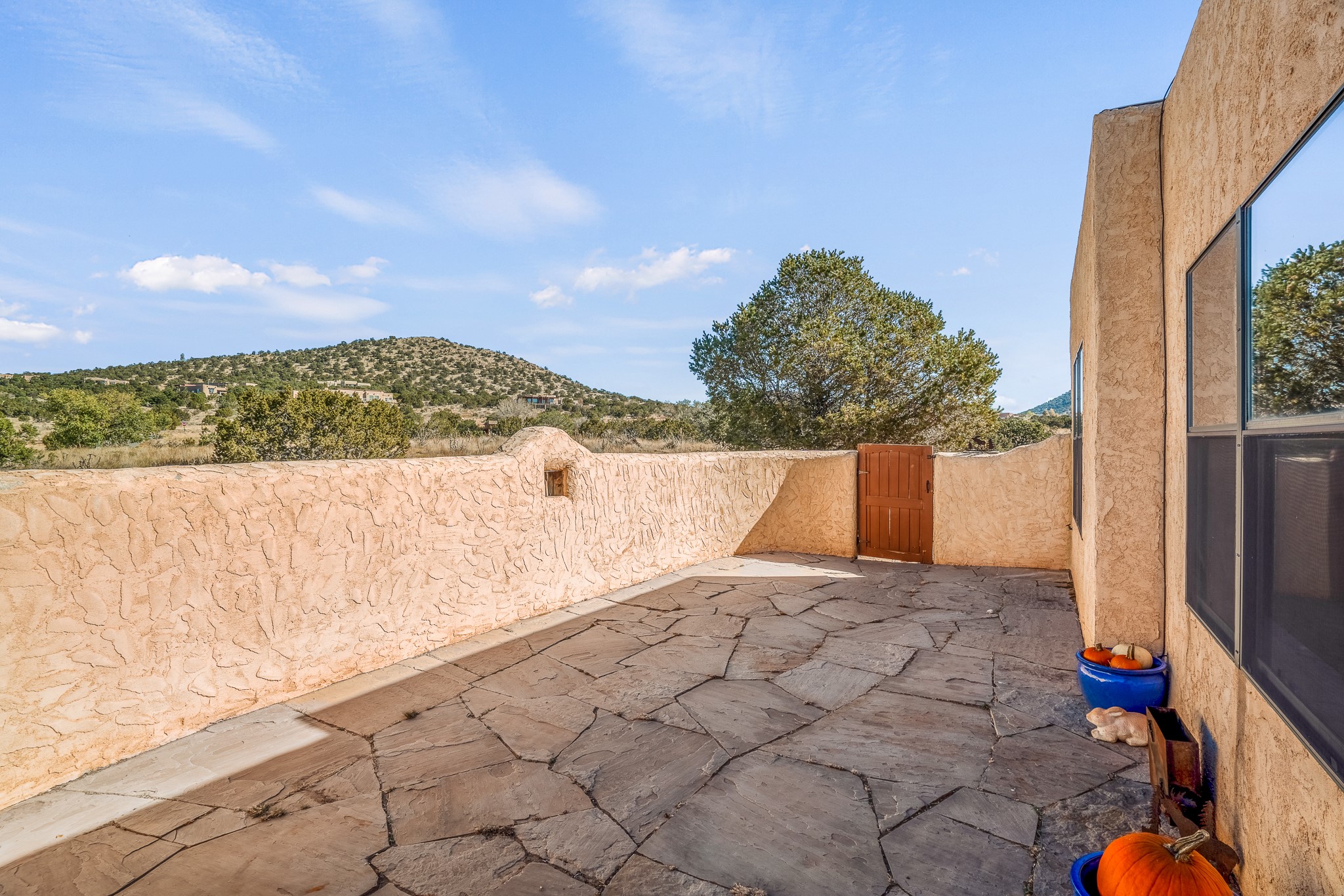 Welcome to a sunny, eco-friendly haven on 1.64 acres, three bedrooms and 1 3/4 baths. This passive solar home captures the essence of Southwestern living, offering picturesque views of the majestic Sandia Mountains and the serene Eldorado hills. Step inside to an inviting open-concept layout, where a cozy living room with a warming fireplace beckons you. The dining area, nestled within a bay window, creates the perfect spot for family meals or entertaining. The spacious kitchen features ample cabinetry and flows seamlessly, making it kitchen enjoy your cooking! Convenience is at your fingertips with a pantry/laundry room, complete with a sink, and direct access to the 600 sq. ft. 2-car garage/workshop.Begin each day with a peaceful view toward the Sandia Mountains from the primary bedroom. The sense of open space surrounding this property creates a tranquil environment. Ideally located, this home is a stone's throw from the Community Center, shopping, restaurants, and the Eldorado Community School. Access to 285 makes the daily commute very convenient. Notable updates include a new TPO roof in 2019, adding to this home's value and peace of mind. Don't miss this opportunity to own a piece of our Santa Fe paradise. Your dream home awaits.