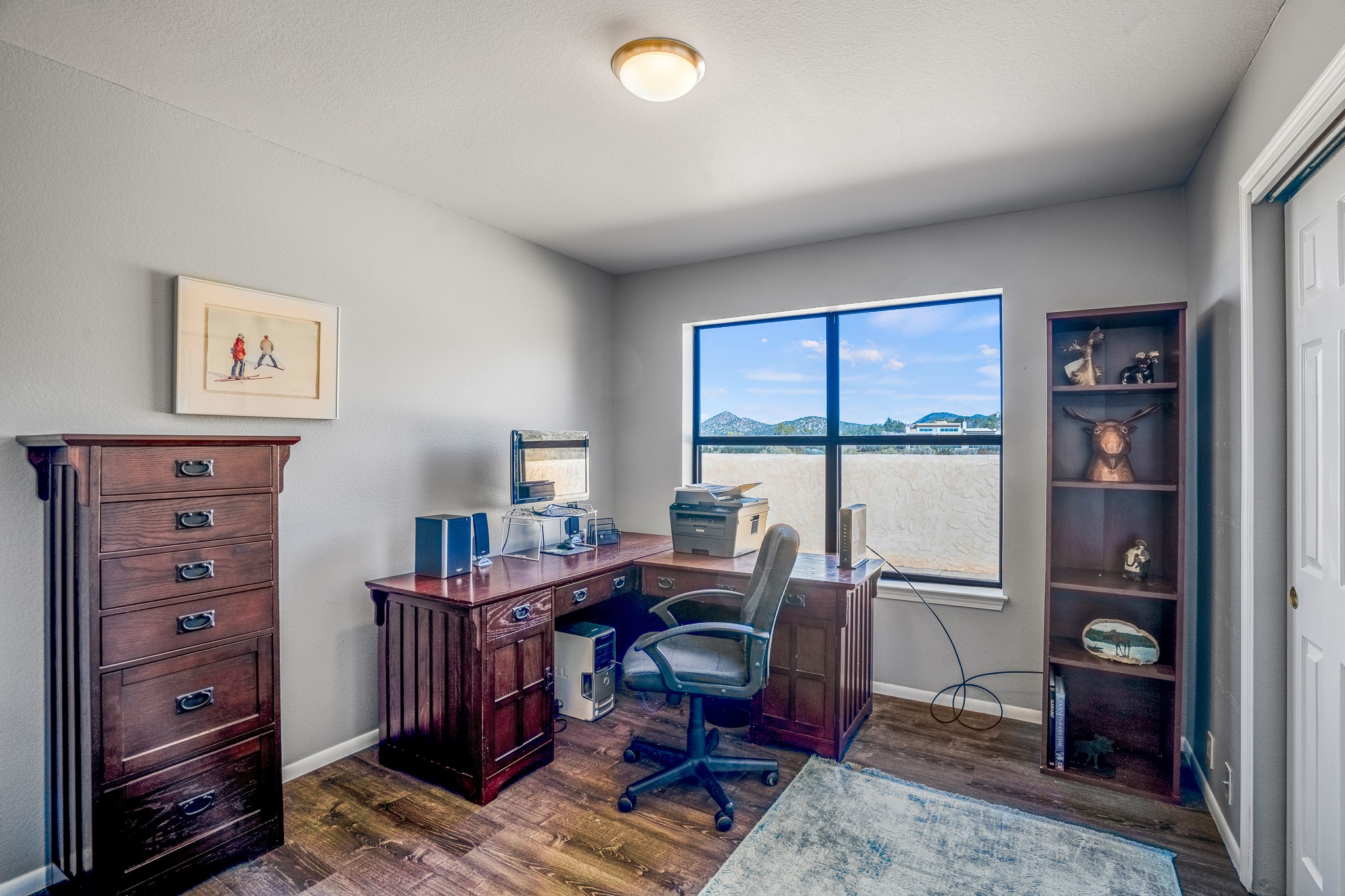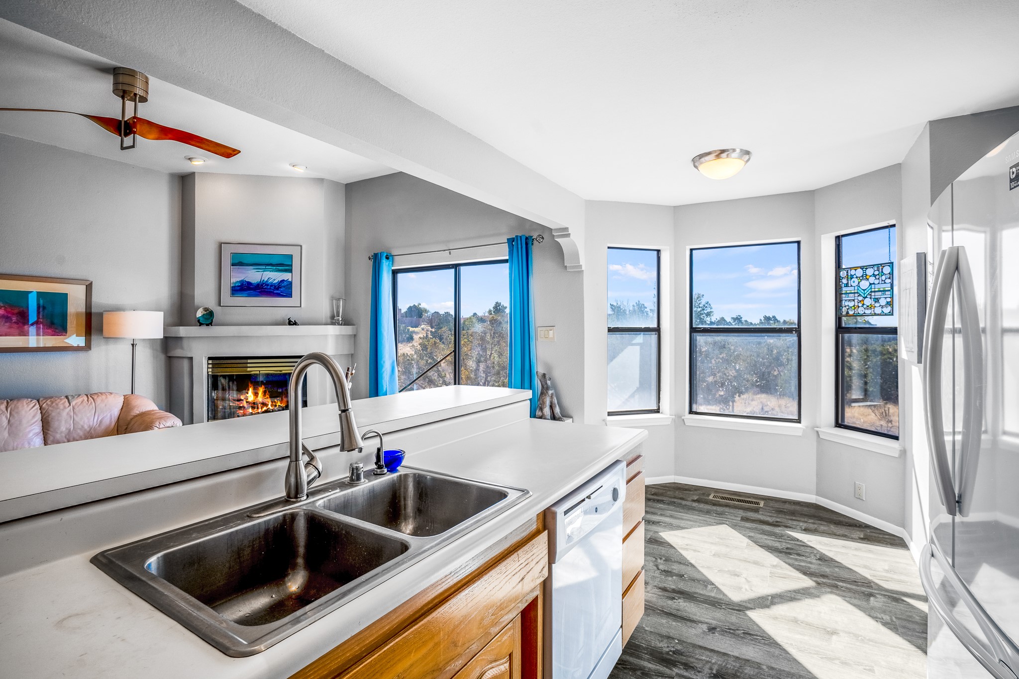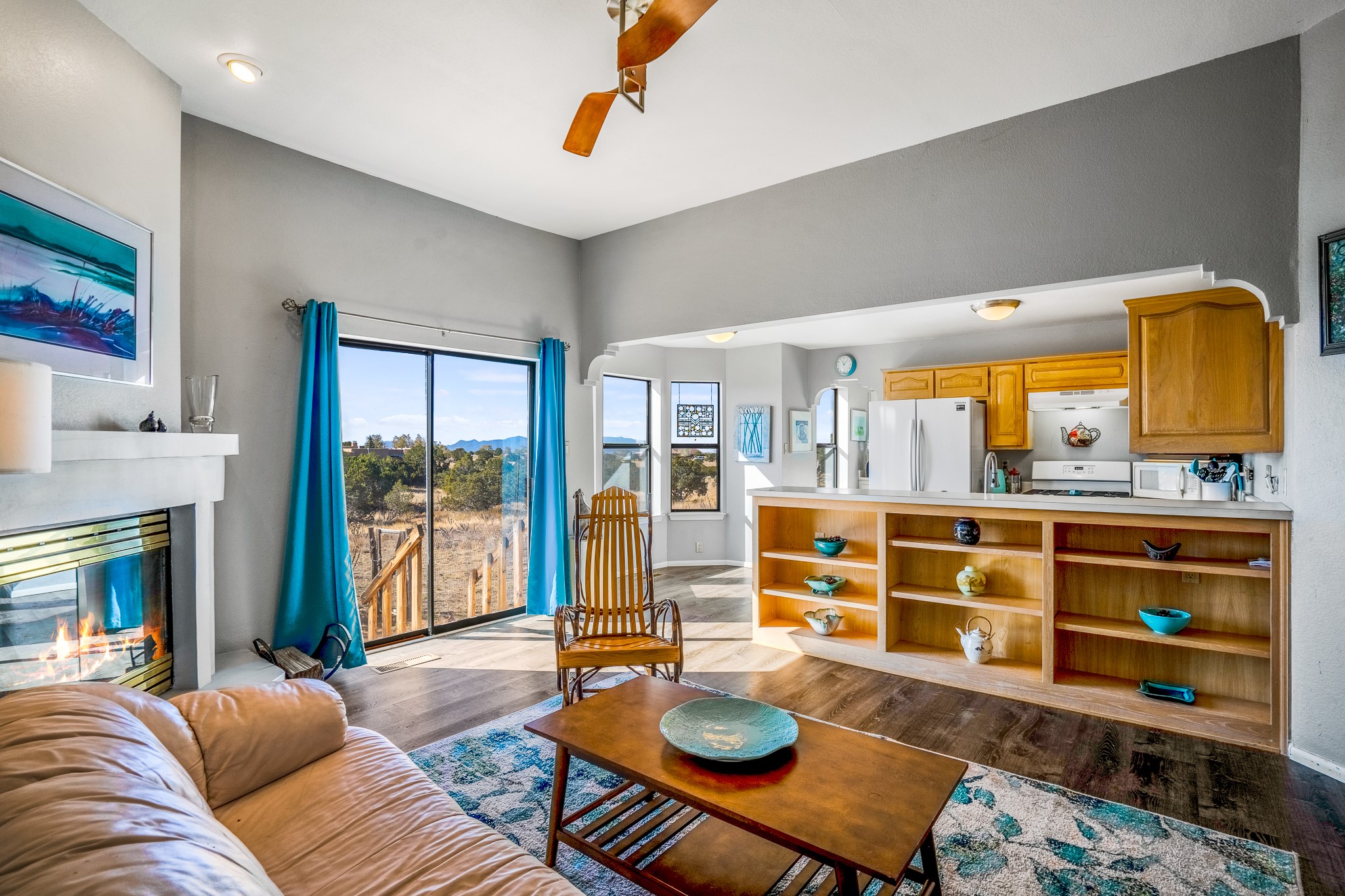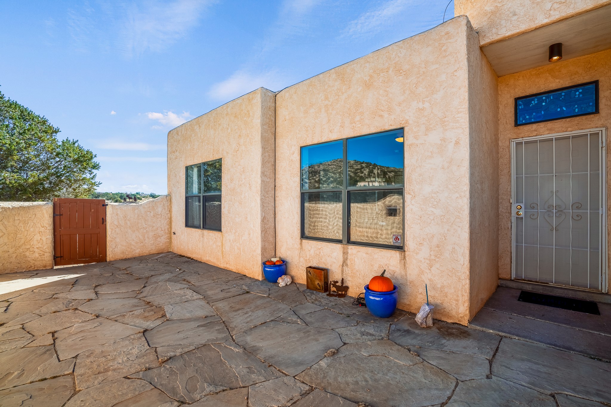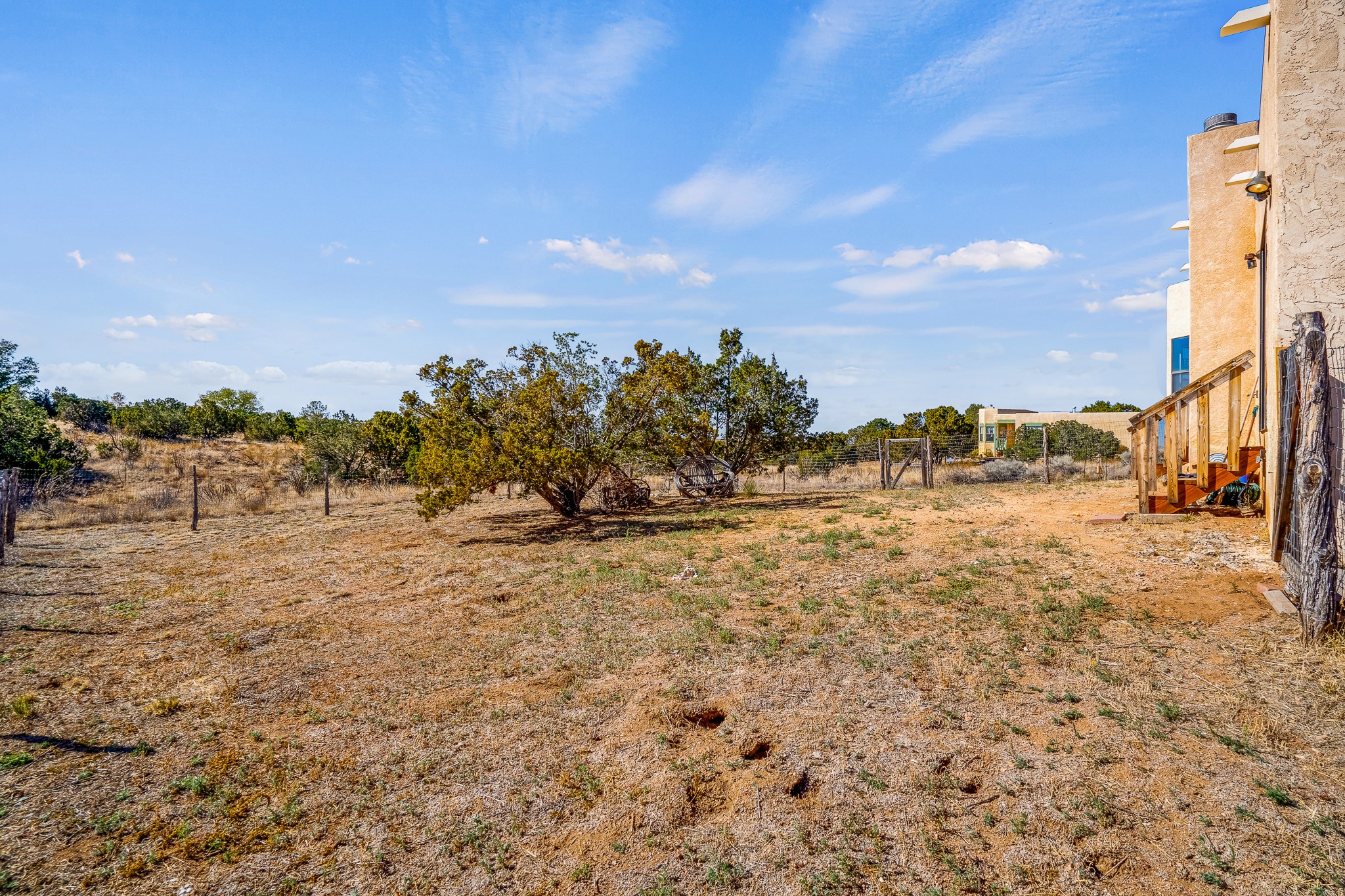 Welcome to a sunny, eco-friendly haven on 1.64 acres, three bedrooms and 1 3/4 baths. This passive solar home captures the essence of Southwestern living, offering picturesque views of the majestic Sandia Mountains and the serene Eldorado hills. Step inside to an inviting open-concept layout, where a cozy living room with a warming fireplace beckons you. The dining area, nestled within a bay window, creates the perfect spot for family meals or entertaining. The spacious kitchen features ample cabinetry and flows seamlessly, making it kitchen enjoy your cooking! Convenience is at your fingertips with a pantry/laundry room, complete with a sink, and direct access to the 600 sq. ft. 2-car garage/workshop.Begin each day with a peaceful view toward the Sandia Mountains from the primary bedroom. The sense of open space surrounding this property creates a tranquil environment. Ideally located, this home is a stone's throw from the Community Center, shopping, restaurants, and the Eldorado Community School. Access to 285 makes the daily commute very convenient. Notable updates include a new TPO roof in 2019, adding to this home's value and peace of mind. Don't miss this opportunity to own a piece of our Santa Fe paradise. Your dream home awaits.