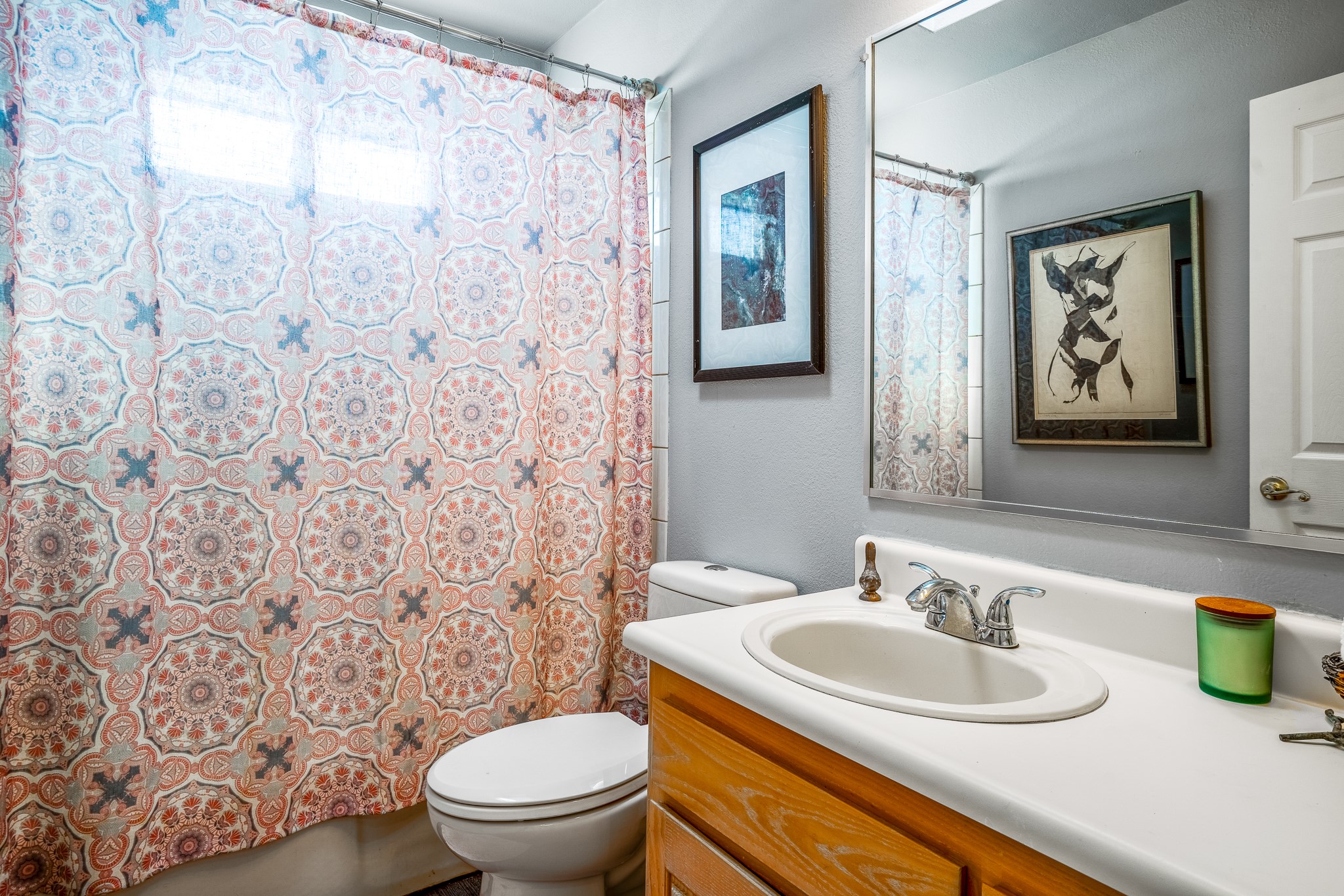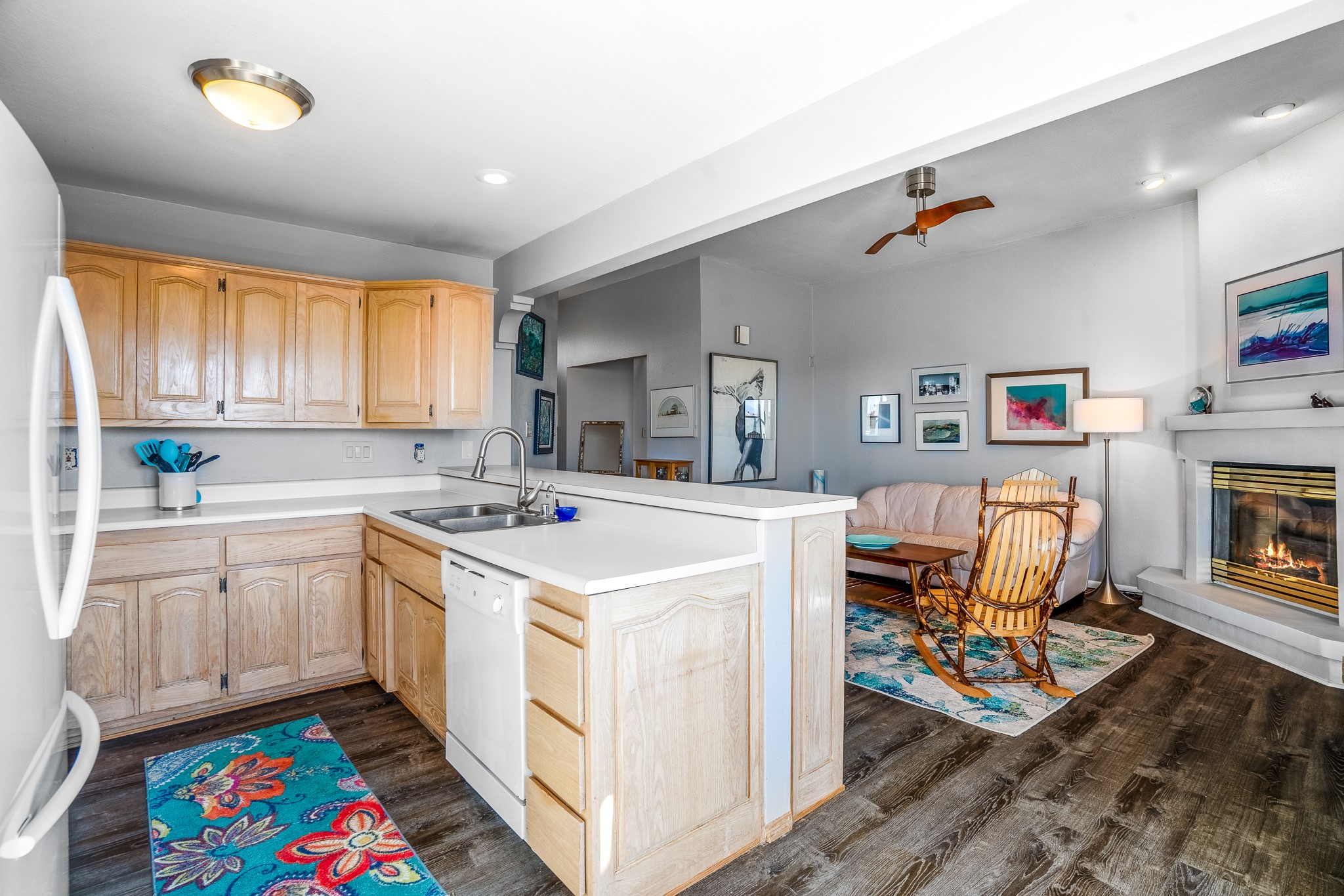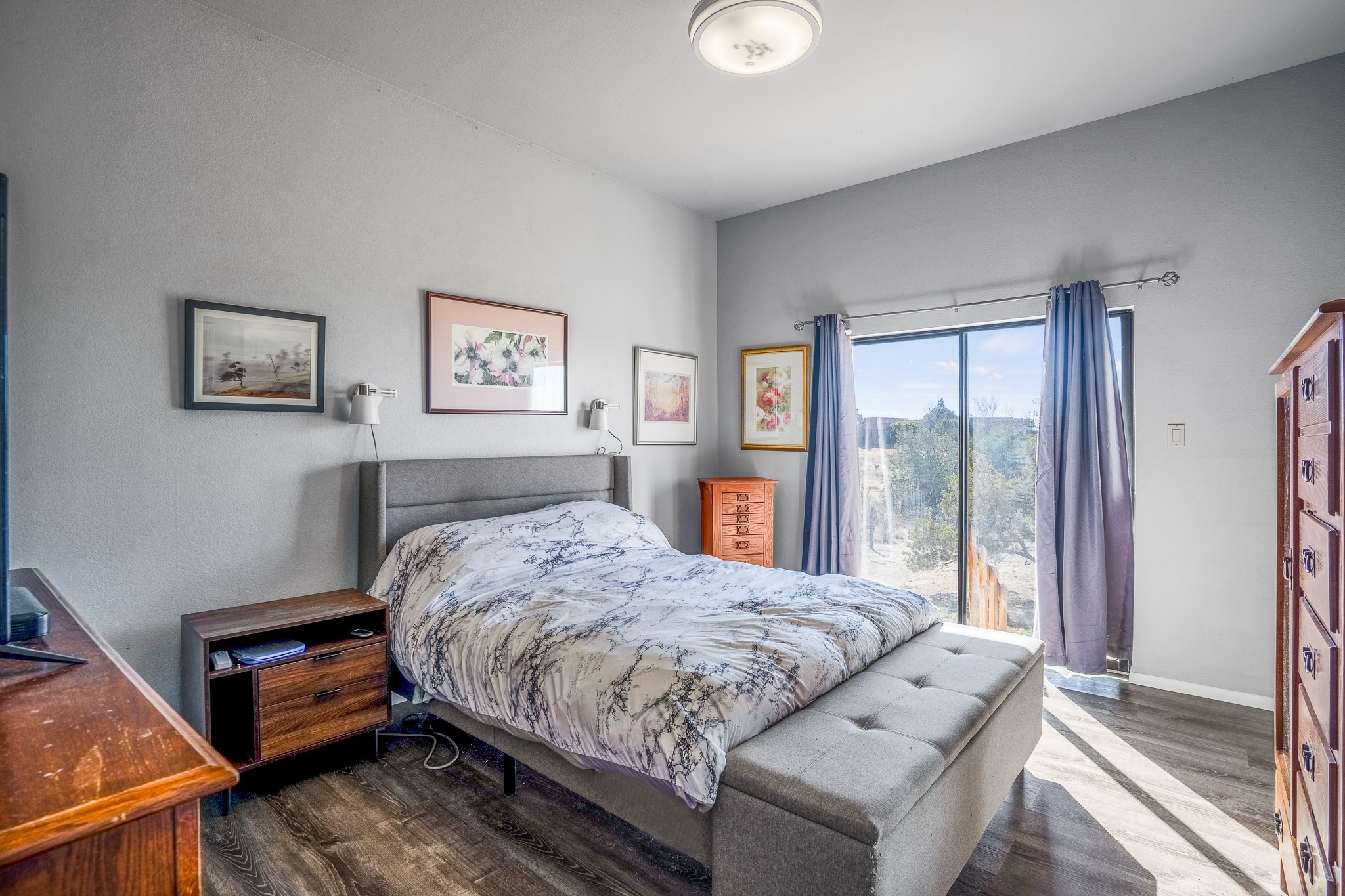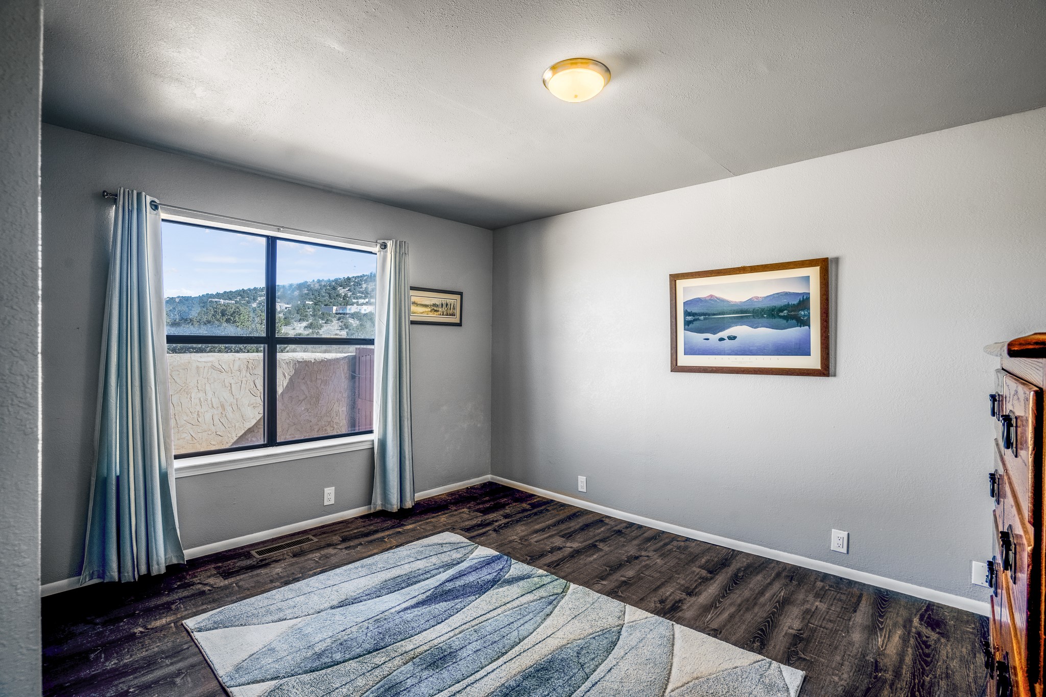 Welcome to a sunny, eco-friendly haven on 1.64 acres, three bedrooms and 1 3/4 baths. This passive solar home captures the essence of Southwestern living, offering picturesque views of the majestic Sandia Mountains and the serene Eldorado hills. Step inside to an inviting open-concept layout, where a cozy living room with a warming fireplace beckons you. The dining area, nestled within a bay window, creates the perfect spot for family meals or entertaining. The spacious kitchen features ample cabinetry and flows seamlessly, making it kitchen enjoy your cooking! Convenience is at your fingertips with a pantry/laundry room, complete with a sink, and direct access to the 600 sq. ft. 2-car garage/workshop.Begin each day with a peaceful view toward the Sandia Mountains from the primary bedroom. The sense of open space surrounding this property creates a tranquil environment. Ideally located, this home is a stone's throw from the Community Center, shopping, restaurants, and the Eldorado Community School. Access to 285 makes the daily commute very convenient. Notable updates include a new TPO roof in 2019, adding to this home's value and peace of mind. Don't miss this opportunity to own a piece of our Santa Fe paradise. Your dream home awaits.