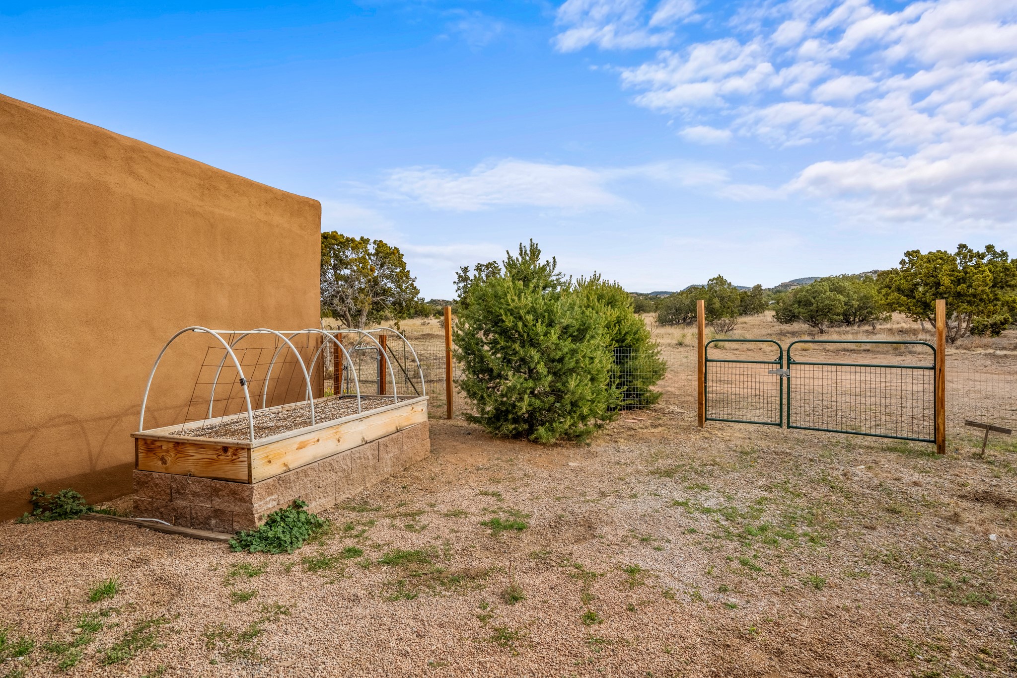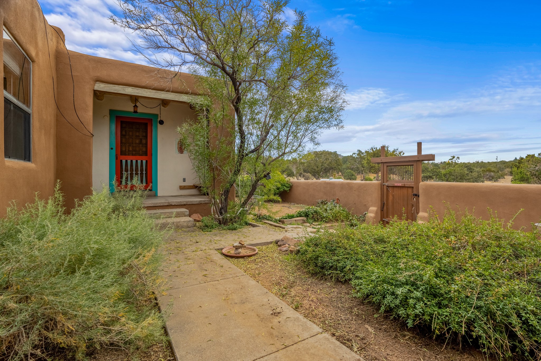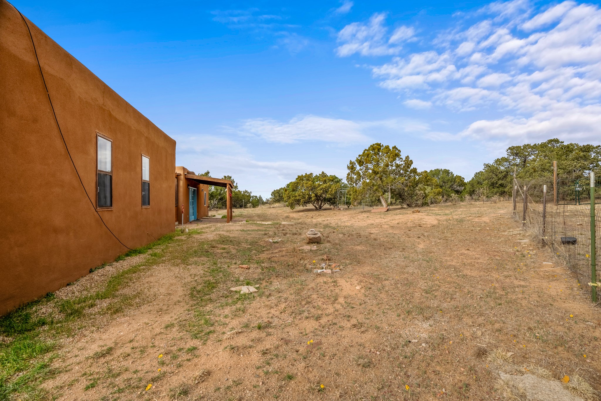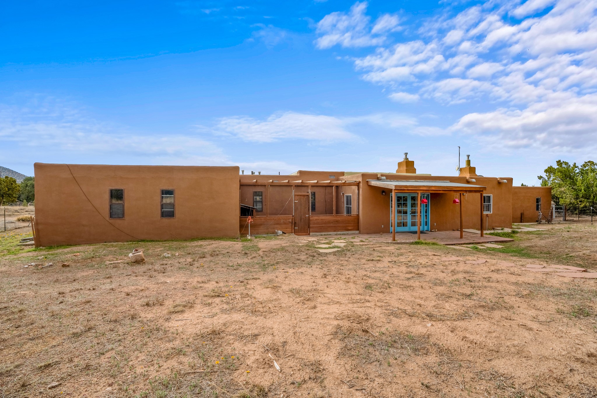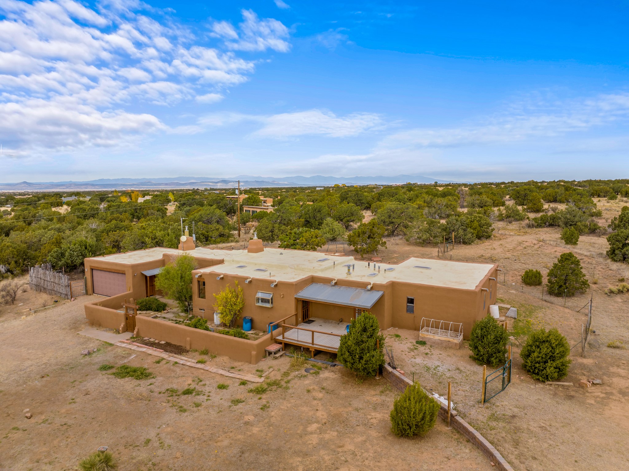 Nestled within the Sunlit Hills area of Santa Fe, this exceptional single-level home awaits its next chapter. Boasting 4 bedrooms, 2.5 baths, and a generous ~2,800 sq. ft. of living space, it sits majestically on a sprawling 5-acre lot, offering a canvas of possibilities. If your dreams include having a horse property and/or installing a a solar panel array to go greener, this is your chance to bring those dreams to life.Step inside and find a warm and inviting interior where an open living area takes center stage. The kitchen features recent updates, namely new marble countertops, sink, and range, making meal preparation a delight. With a sunny family room to bask in the morning light, a charming front porch and courtyard to savor the Santa Fe evenings, a deck with a propane BBQ hookup for outdoor dining enjoyment, a raised bed for gardeners, and a private "Catio" safely located within a half-acre fenced dog yard for your furry companions, you'll find enchanting spaces for every moment.For those seeking convenience and storage, a storage shed is on hand, and the detached 2-car garage (also with addt'l storage) along with a divided driveway offers additional parking and level in direct access to the kitchen. The flexible floorplan and property holds enormous potential for you to shape as you desire, offering the perfect blend of comfort and opportunity. New roof, stucco, + other improvements done Summer/Fall '23.Make Sunlit Hills your home and experience the charm and potential it holds.