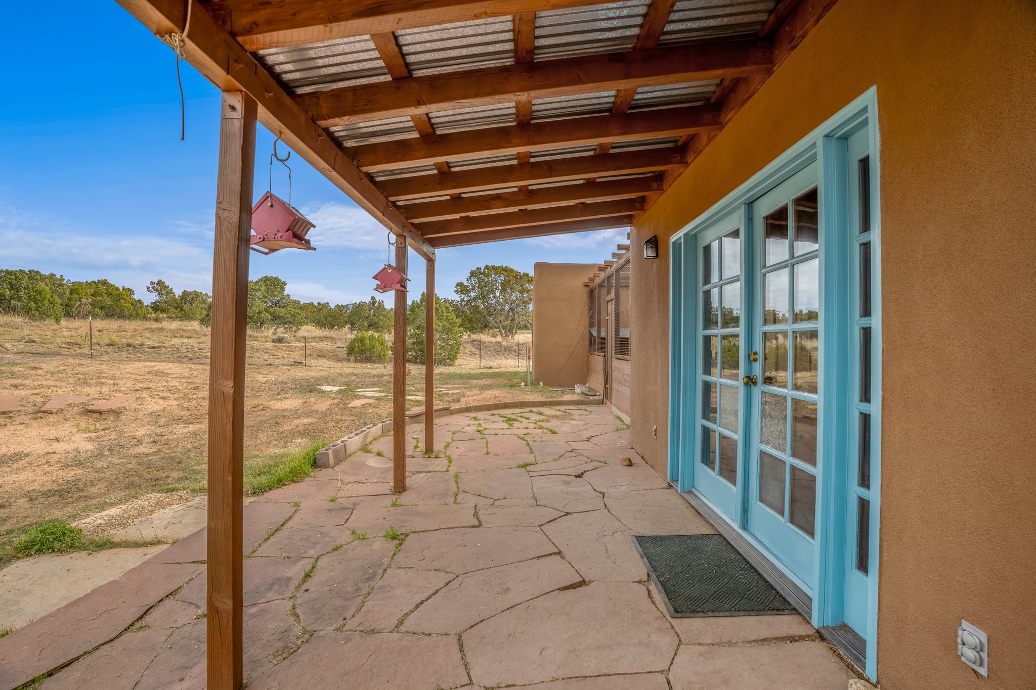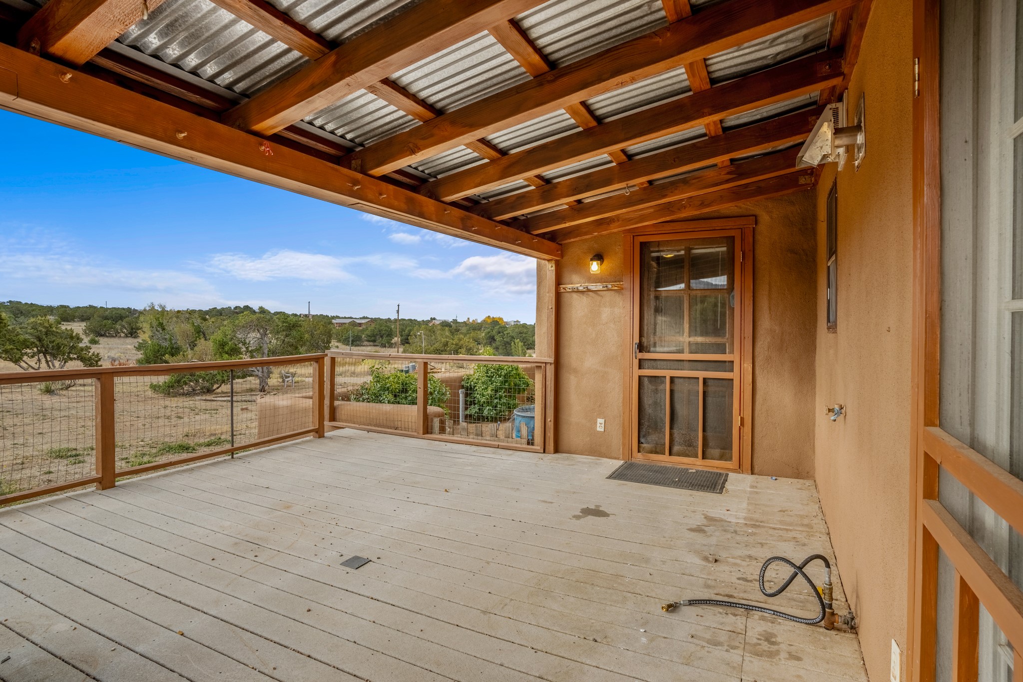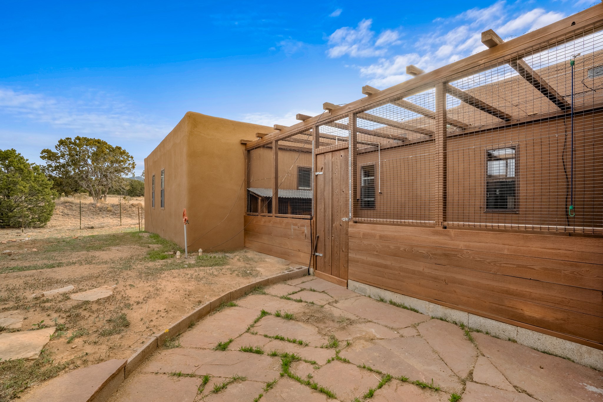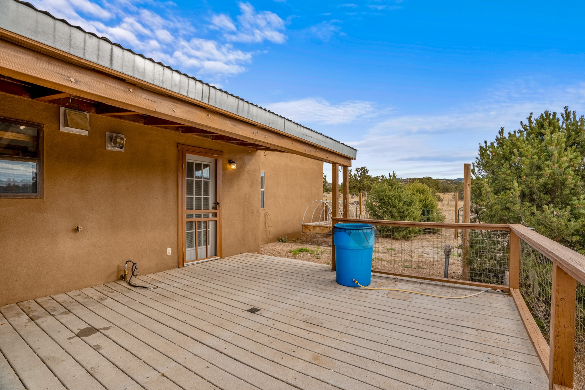 Nestled within the Sunlit Hills area of Santa Fe, this exceptional single-level home awaits its next chapter. Boasting 4 bedrooms, 2.5 baths, and a generous ~2,800 sq. ft. of living space, it sits majestically on a sprawling 5-acre lot, offering a canvas of possibilities. If your dreams include having a horse property and/or installing a a solar panel array to go greener, this is your chance to bring those dreams to life.Step inside and find a warm and inviting interior where an open living area takes center stage. The kitchen features recent updates, namely new marble countertops, sink, and range, making meal preparation a delight. With a sunny family room to bask in the morning light, a charming front porch and courtyard to savor the Santa Fe evenings, a deck with a propane BBQ hookup for outdoor dining enjoyment, a raised bed for gardeners, and a private "Catio" safely located within a half-acre fenced dog yard for your furry companions, you'll find enchanting spaces for every moment.For those seeking convenience and storage, a storage shed is on hand, and the detached 2-car garage (also with addt'l storage) along with a divided driveway offers additional parking and level in direct access to the kitchen. The flexible floorplan and property holds enormous potential for you to shape as you desire, offering the perfect blend of comfort and opportunity. New roof, stucco, + other improvements done Summer/Fall '23.Make Sunlit Hills your home and experience the charm and potential it holds.