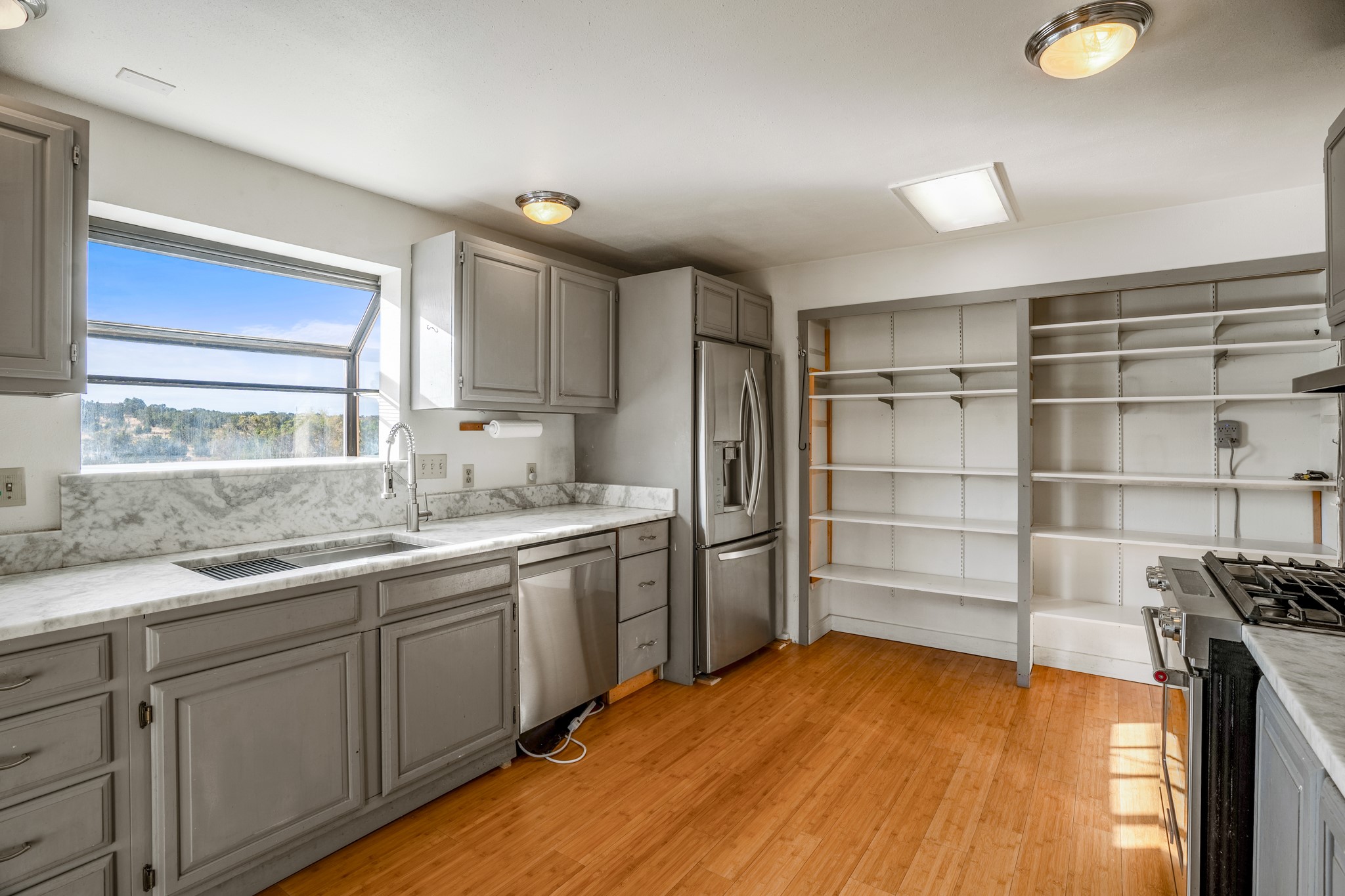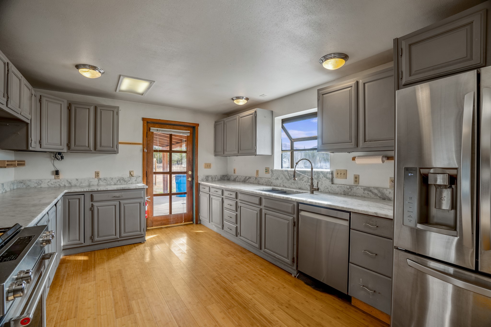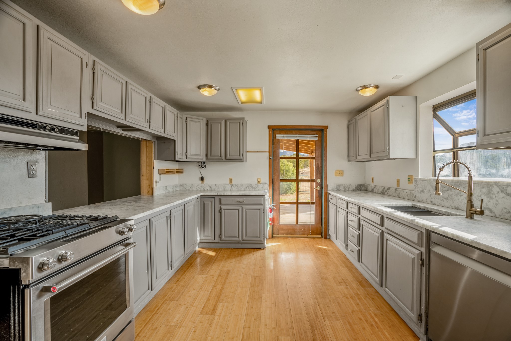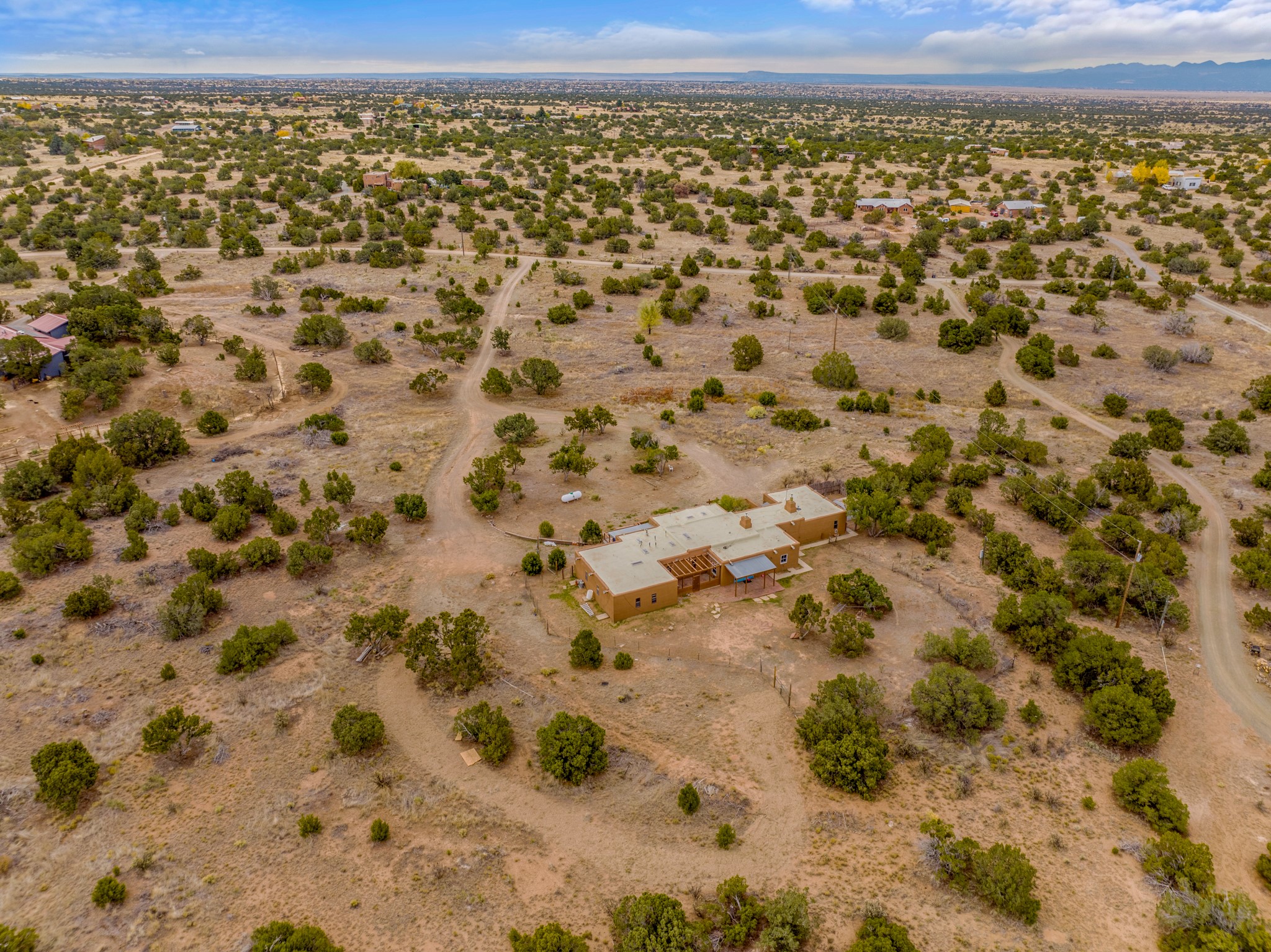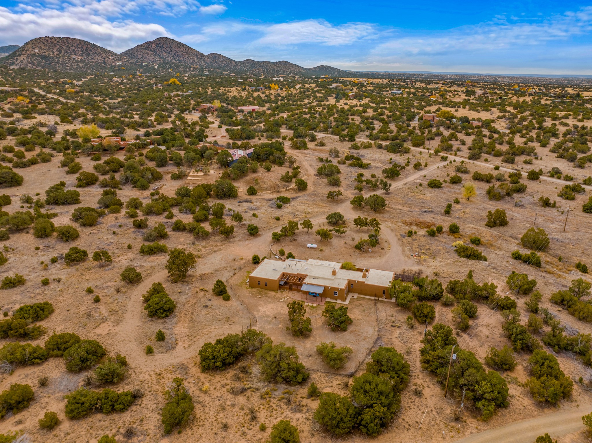 Nestled within the Sunlit Hills area of Santa Fe, this exceptional single-level home awaits its next chapter. Boasting 4 bedrooms, 2.5 baths, and a generous ~2,800 sq. ft. of living space, it sits majestically on a sprawling 5-acre lot, offering a canvas of possibilities. If your dreams include having a horse property and/or installing a a solar panel array to go greener, this is your chance to bring those dreams to life.Step inside and find a warm and inviting interior where an open living area takes center stage. The kitchen features recent updates, namely new marble countertops, sink, and range, making meal preparation a delight. With a sunny family room to bask in the morning light, a charming front porch and courtyard to savor the Santa Fe evenings, a deck with a propane BBQ hookup for outdoor dining enjoyment, a raised bed for gardeners, and a private "Catio" safely located within a half-acre fenced dog yard for your furry companions, you'll find enchanting spaces for every moment.For those seeking convenience and storage, a storage shed is on hand, and the detached 2-car garage (also with addt'l storage) along with a divided driveway offers additional parking and level in direct access to the kitchen. The flexible floorplan and property holds enormous potential for you to shape as you desire, offering the perfect blend of comfort and opportunity. New roof, stucco, + other improvements done Summer/Fall '23.Make Sunlit Hills your home and experience the charm and potential it holds.