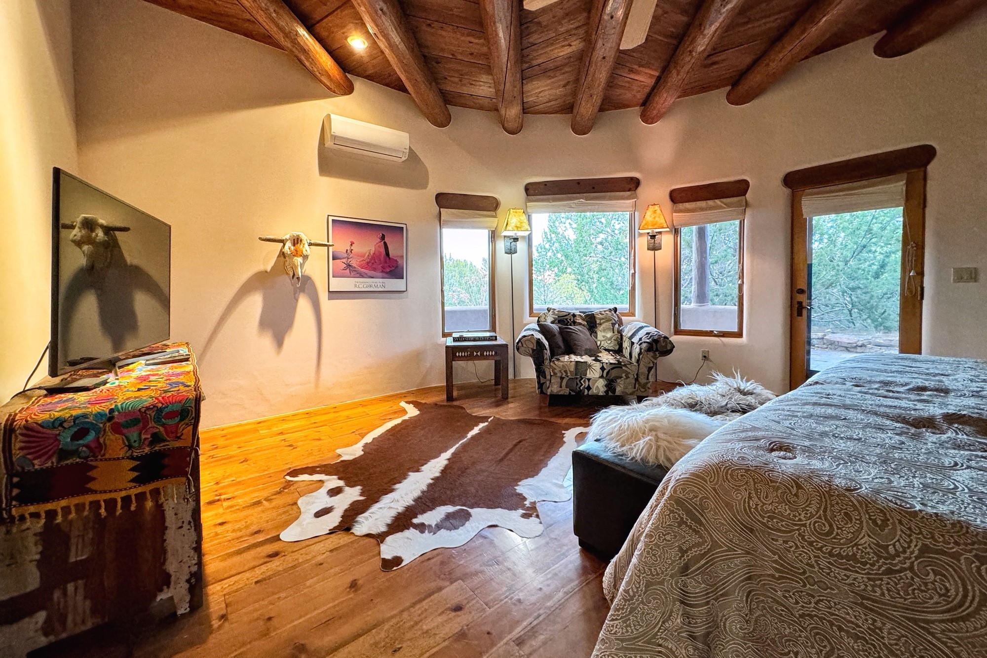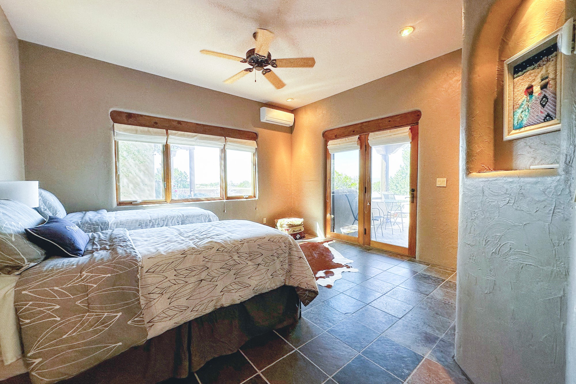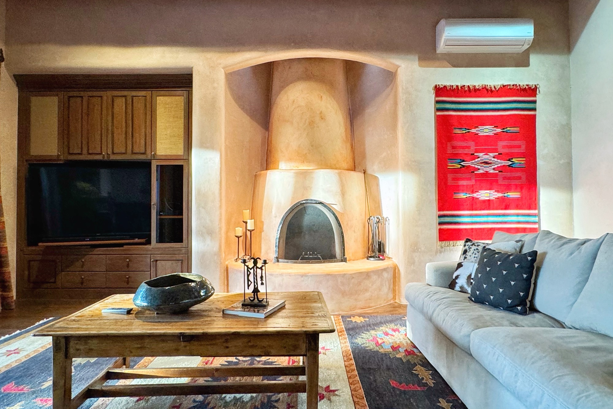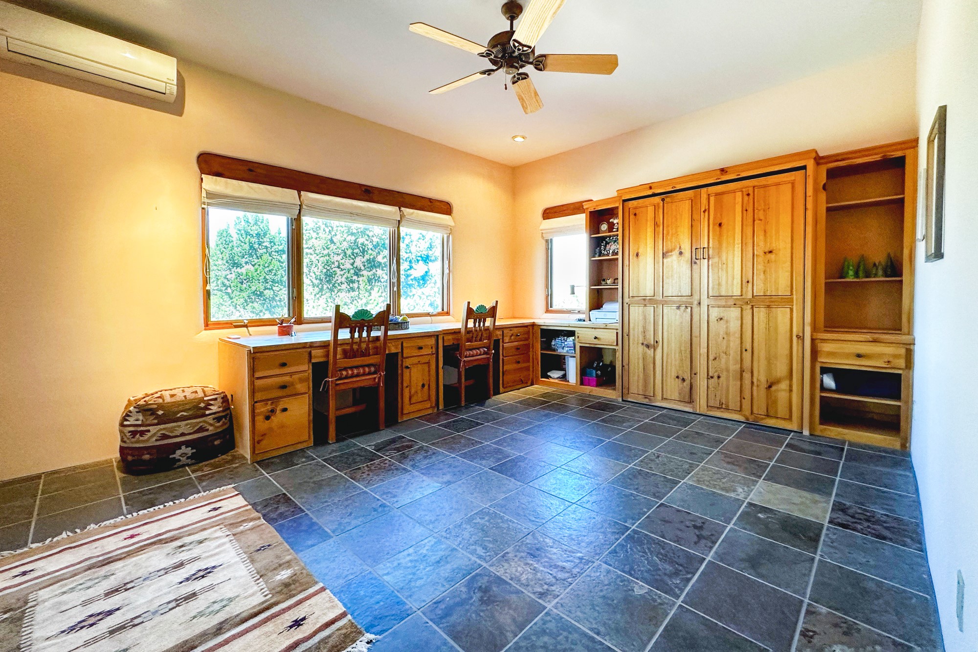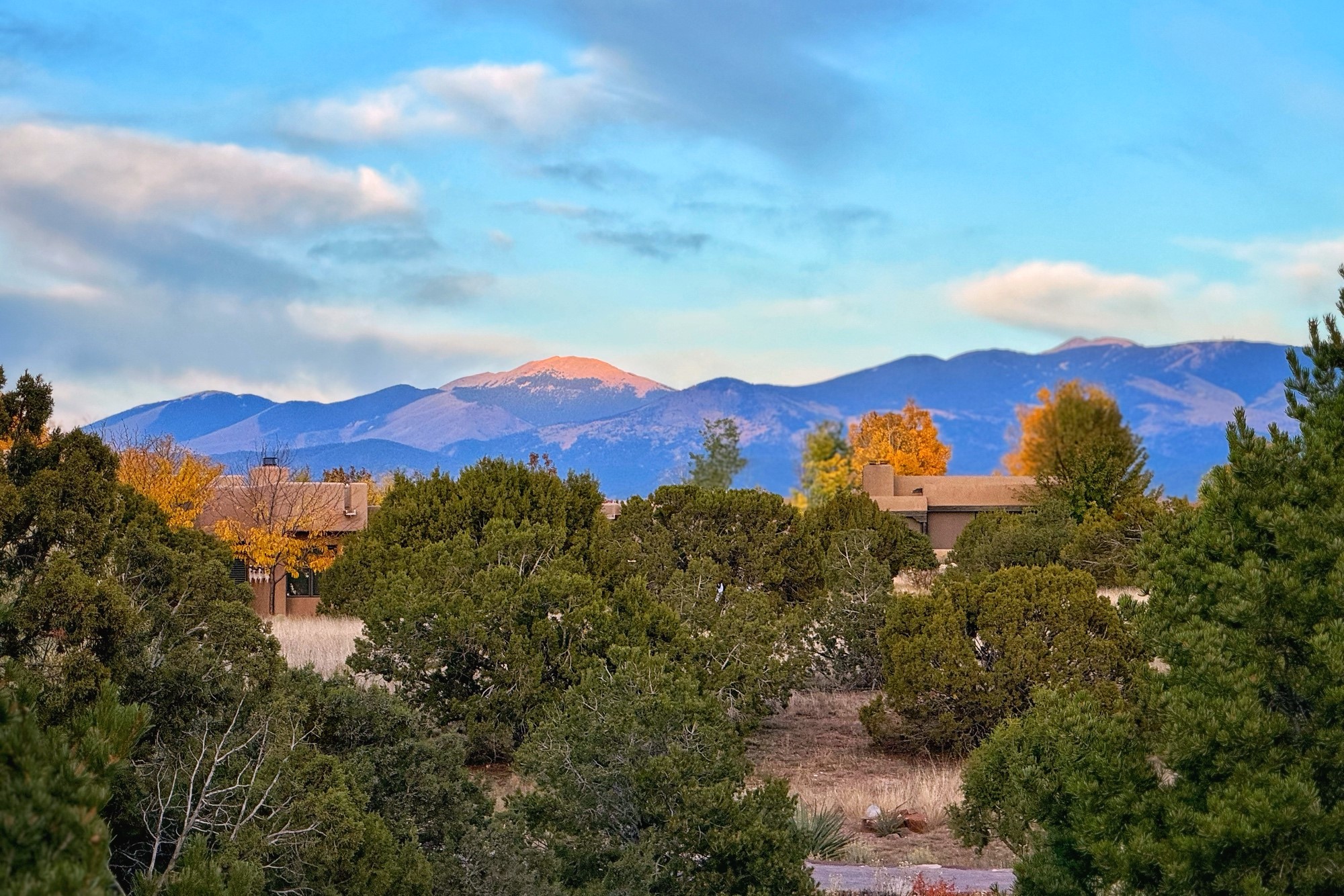 This extraordinary Santa Fe Estate is situated in the renowned Estate III of Las Campanas, offering the epitome of luxury and the comfort of Santa Fe Hacienda-style living. Upon arrival, a breathtaking courtyard welcomes you, with sweeping mountain vistas and expansive skies as your backdrop. The outdoor living spaces have been carefully designed to enhance your experience, featuring private portals, gardens, and patios, plus a cherished rooftop deck providing 360-degree views. In addition to the main house, a separate freshly painted 1,114 sq. ft. guesthouse awaits, complete with a full kitchen, washer and dryer, a custom murphy bed, a delightful portal, and patio for the ultimate in guest comfort, whether for short or extended stays. This custom-built home by Madera in 1998 boasts an array of features, including three Kiva fireplaces, soaring 16-foot ceilings, an inviting Chef's Kitchen with an eat-in area, formal dining space, and a combination of slate and wood flooring throughout. Brand new countertops in bathroom and kitchen. You'll find custom built-ins in every room, with bookshelves, desks, and a murphy bed thoughtfully incorporated in the office space. Traditional design elements like ceiling beams, vigas, latillas, lentils, and hand-carved doors adorn both the guesthouse and the main residence. Additional amenities include an oversized 3.5-car garage, radiant heating, and mini-splits throughout the property. The Club at Las Campanas membership is optional and subject to approval. Please note that there is not Kitech or Entran.