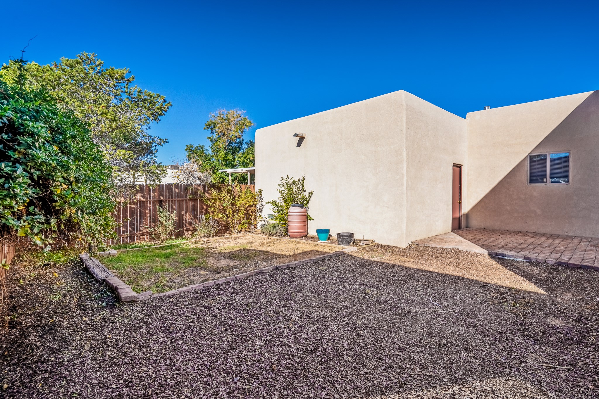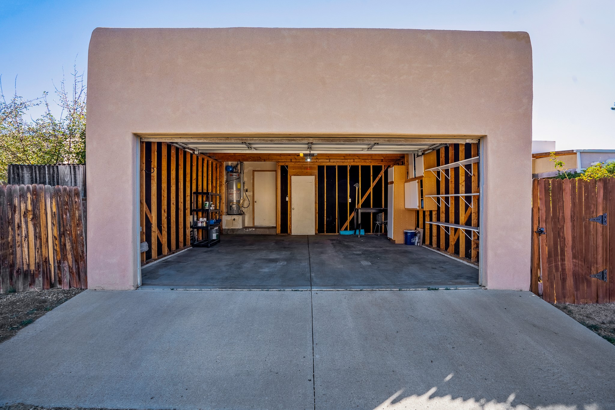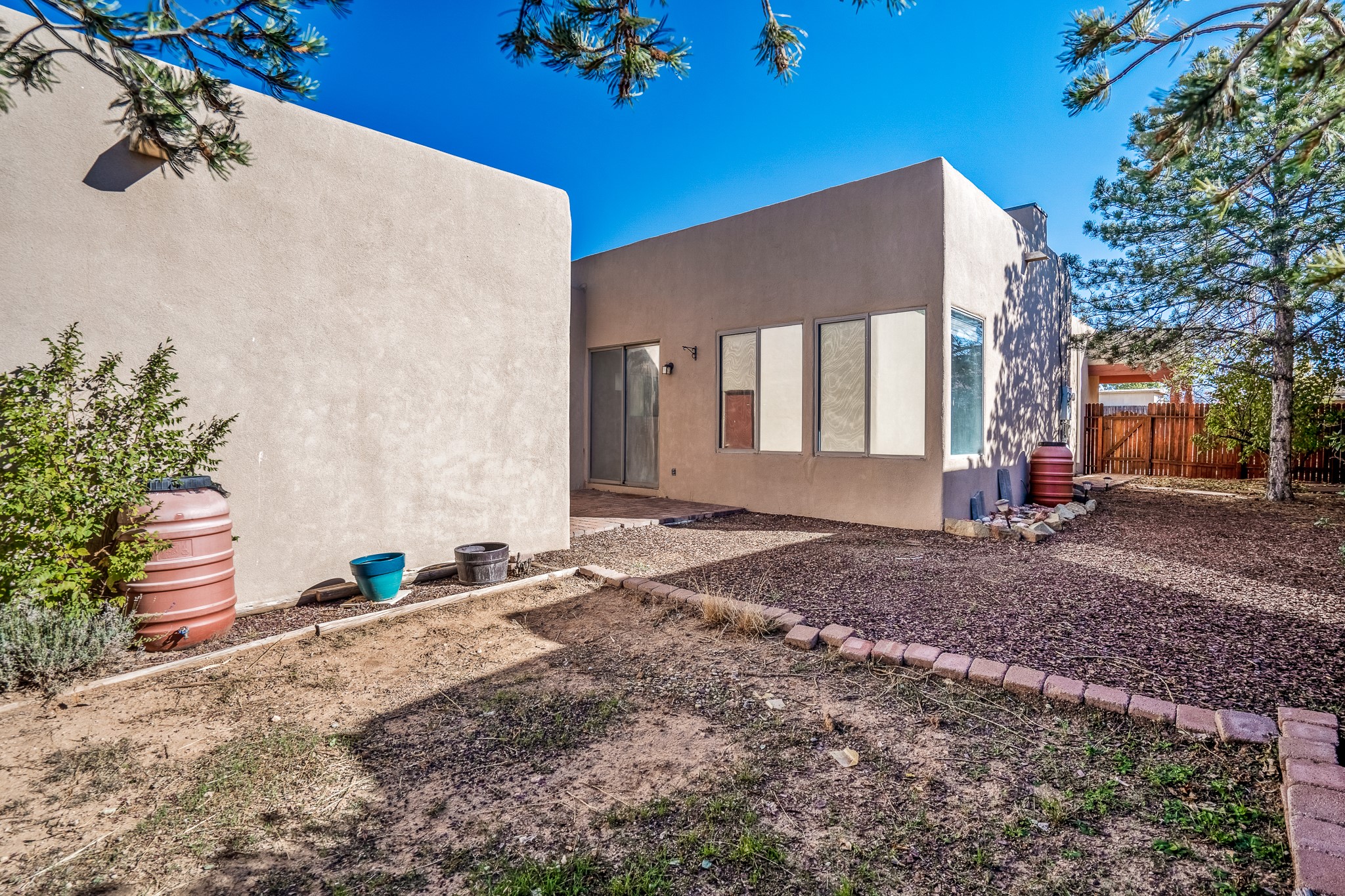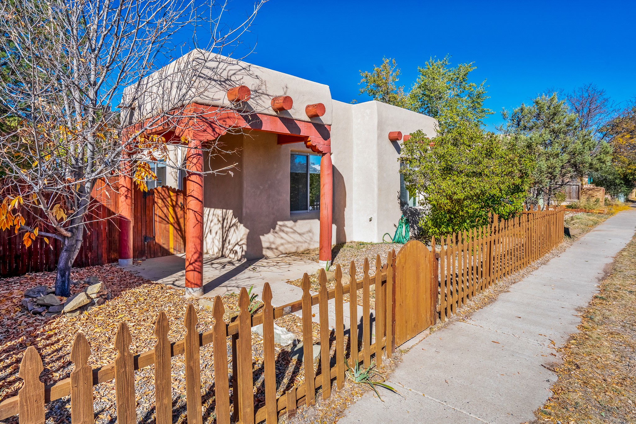 Come see this fantastic single level home with soaring ceilings and tons of natural light. The floor plan makes for easy living with a large kitchen / living room / dining space and three spacious bedrooms. The outdoor space is spacious yet manageable, allowing for easy indoor - outdoor living. There is even a large two car garage and central air. Located near shopping, schools, parks, walking trails, and easy access to 599, the Santa Fe Regional Airport and I-25.