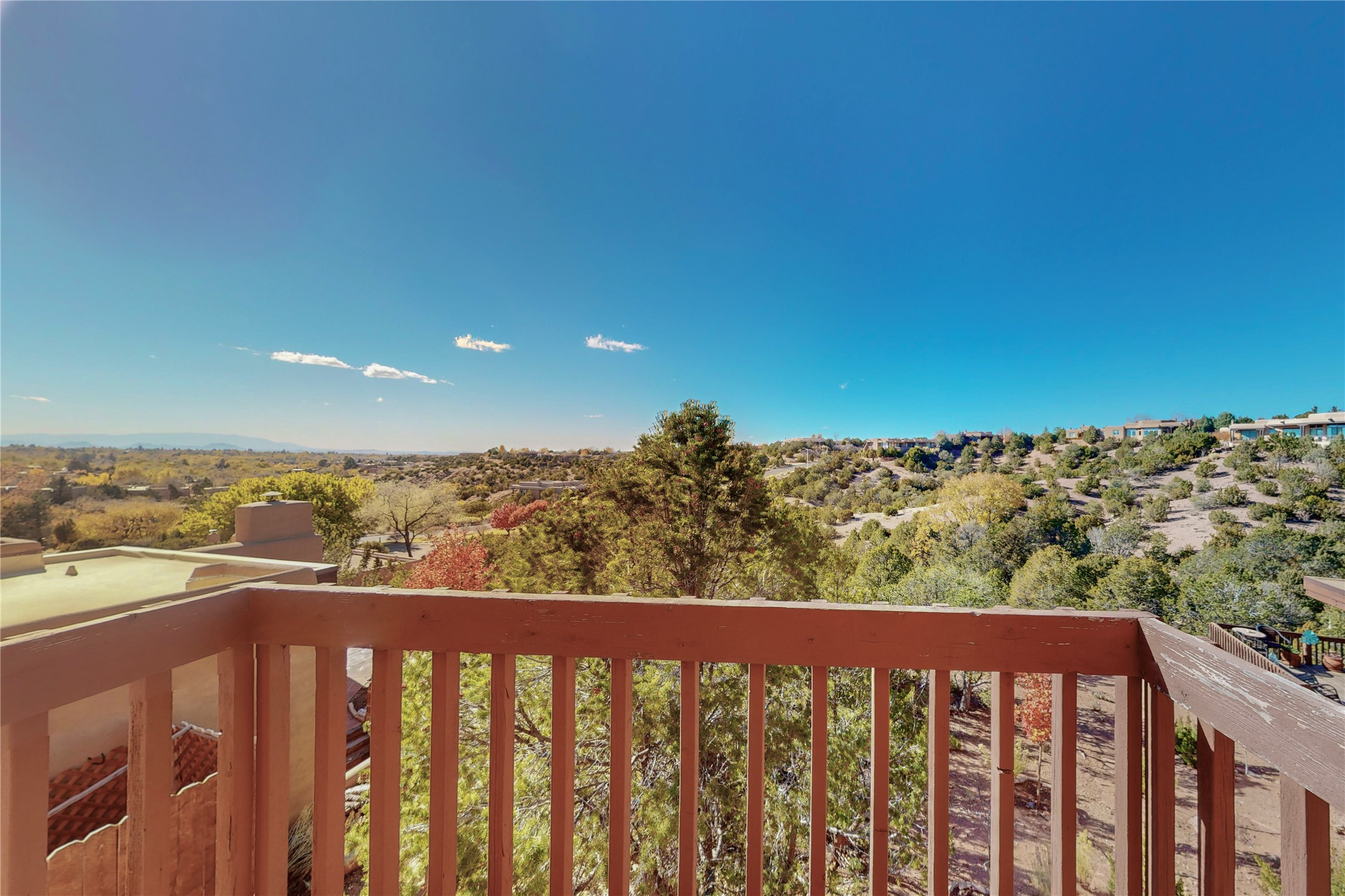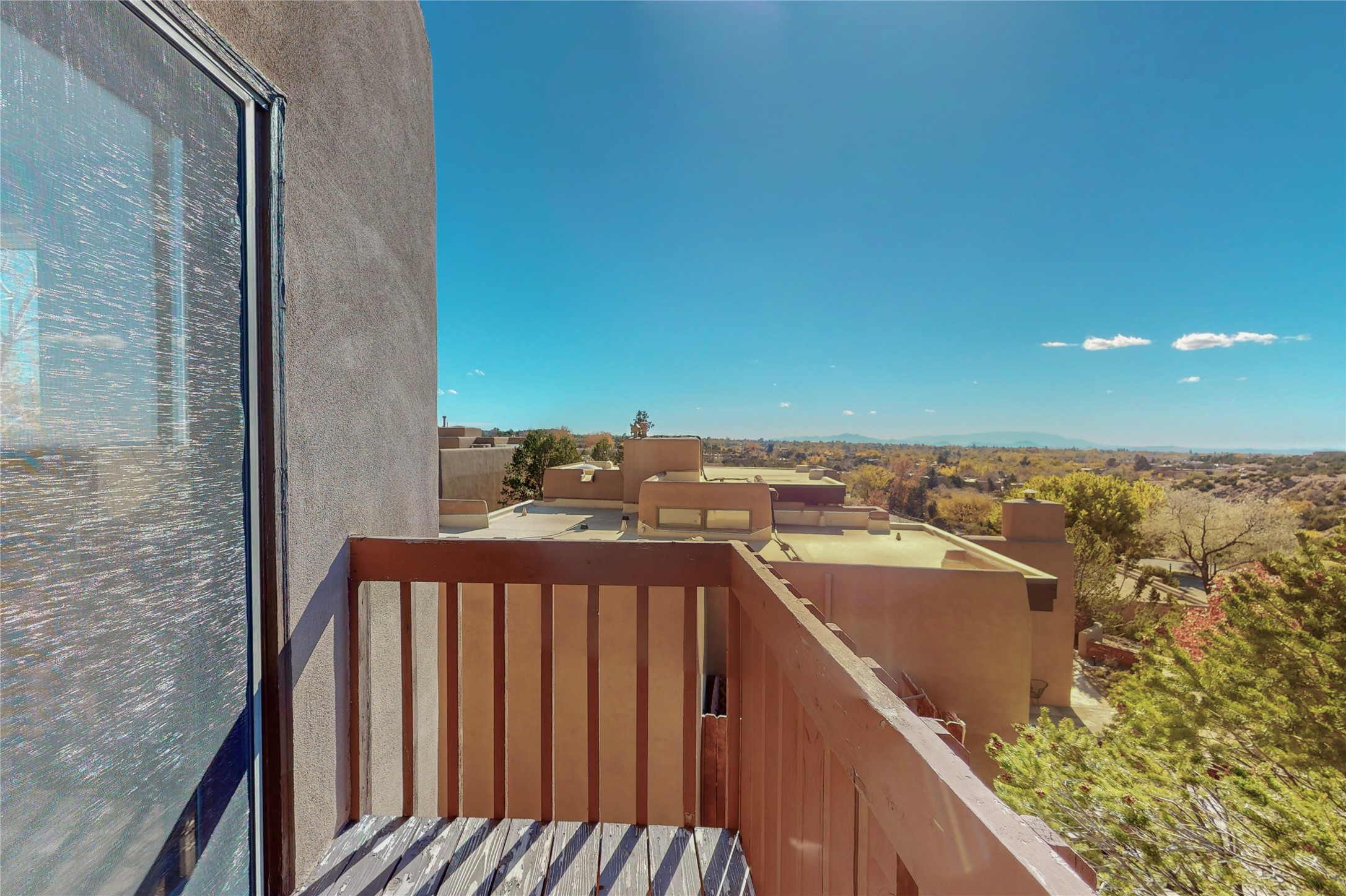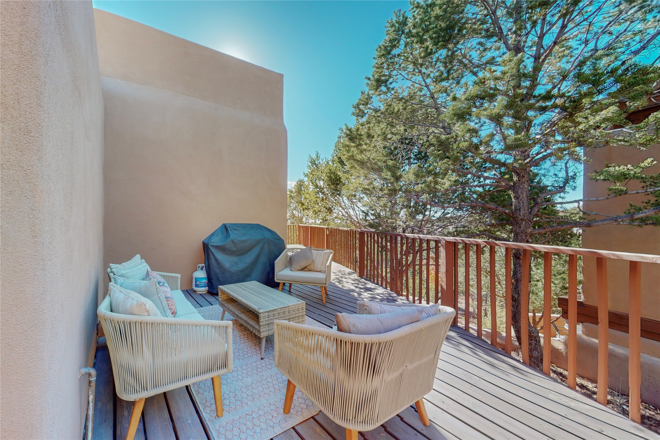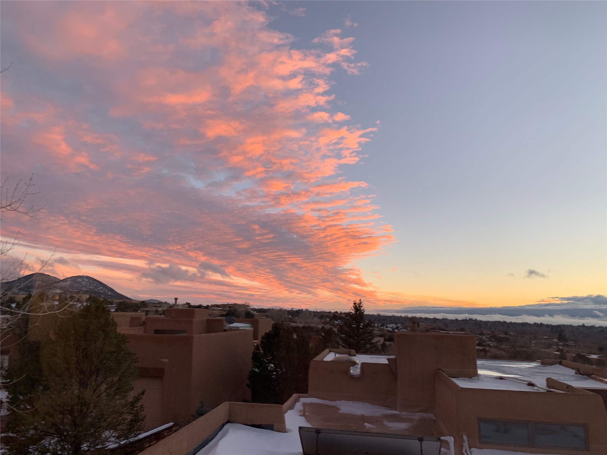 These homes are rarely available and so close to historic and downtown Santa Fe. This remodeled 2 story, 2 bedroom, 2 bath home has an open feeling with a lot of natural light. In keeping with the pueblo style, it has vigas, latillas and high ceilings. The home is on a cul-de-sac. Nice sunset views can be enjoyed from the back deck. There is formal and informal dining and a well-appointed spacious upgraded kitchen with a large pantry. An attached two car garage and Solar photovoltaic panels completes this offering. Estancia Primera has a clubhouse with a kitchen, an outdoor swimming pool, tennis and racquetball courts.