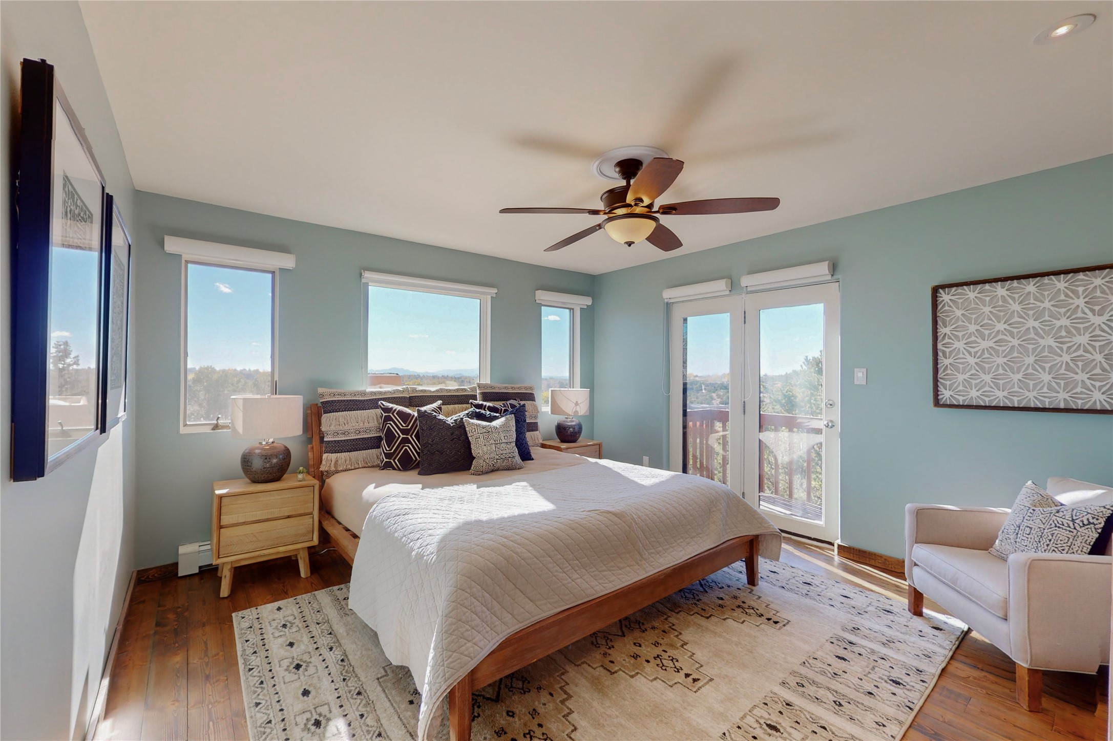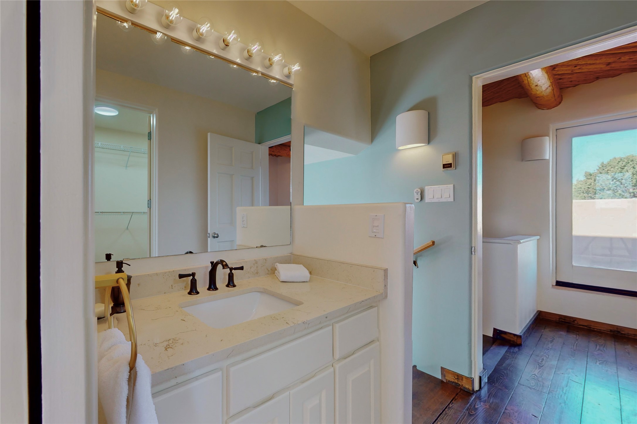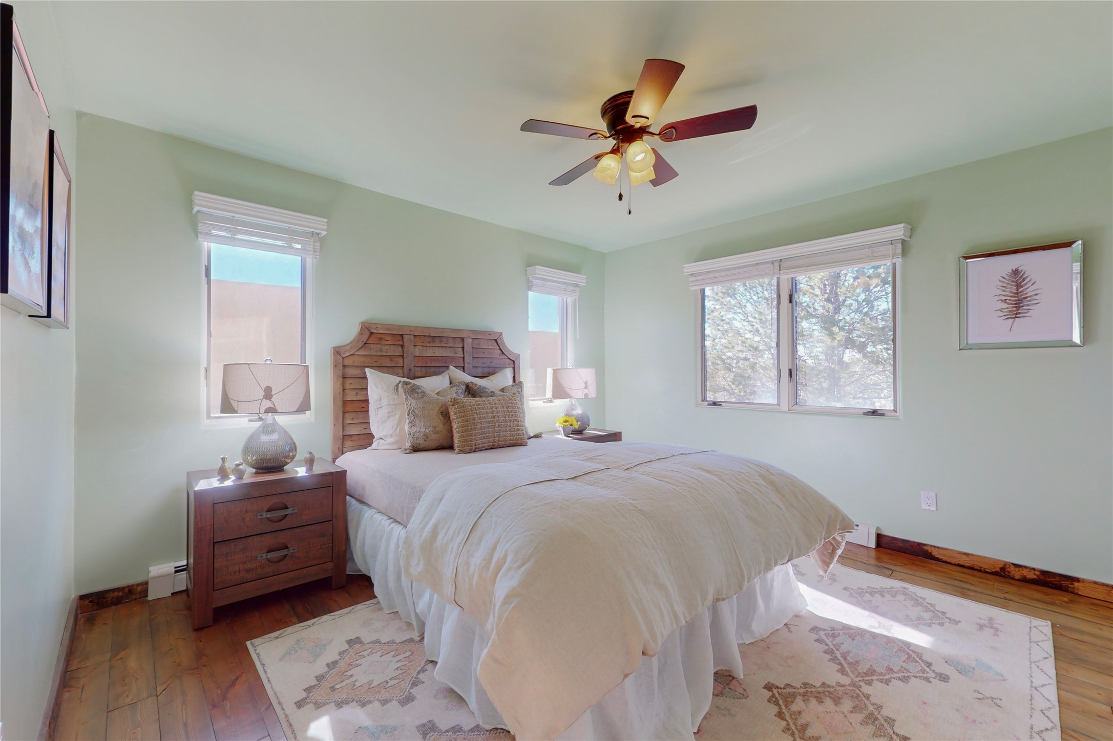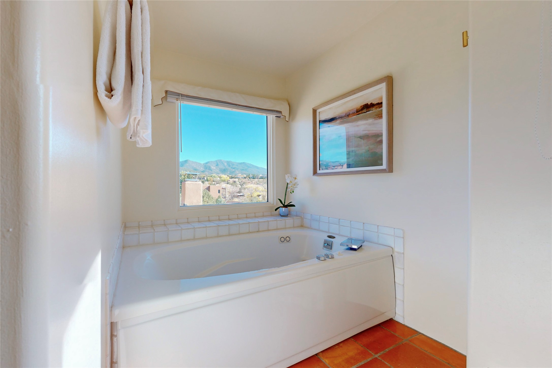 These homes are rarely available and so close to historic and downtown Santa Fe. This remodeled 2 story, 2 bedroom, 2 bath home has an open feeling with a lot of natural light. In keeping with the pueblo style, it has vigas, latillas and high ceilings. The home is on a cul-de-sac. Nice sunset views can be enjoyed from the back deck. There is formal and informal dining and a well-appointed spacious upgraded kitchen with a large pantry. An attached two car garage and Solar photovoltaic panels completes this offering. Estancia Primera has a clubhouse with a kitchen, an outdoor swimming pool, tennis and racquetball courts.