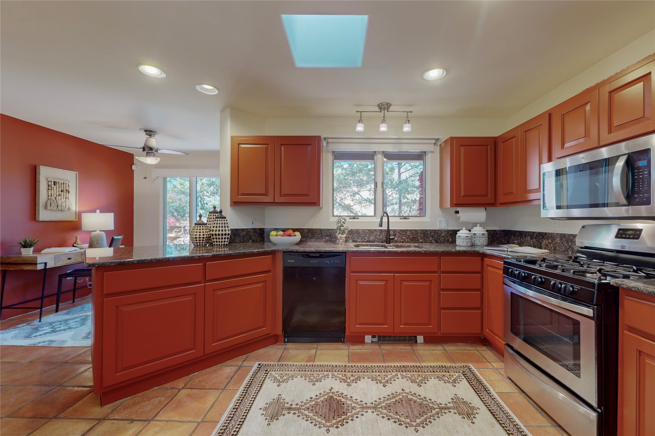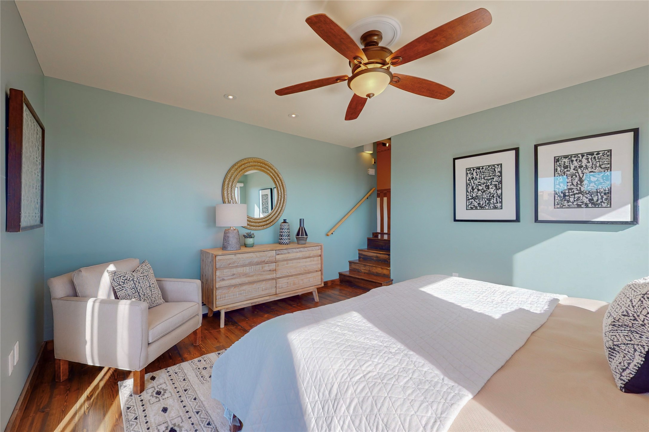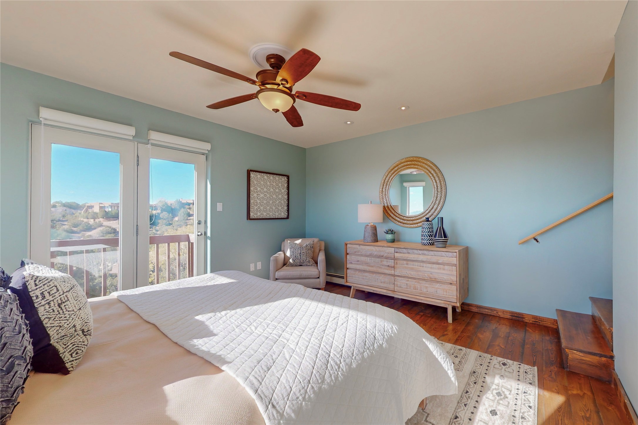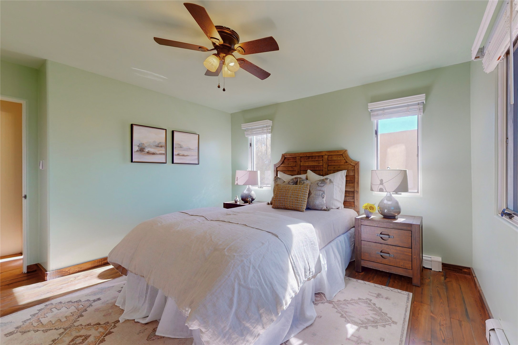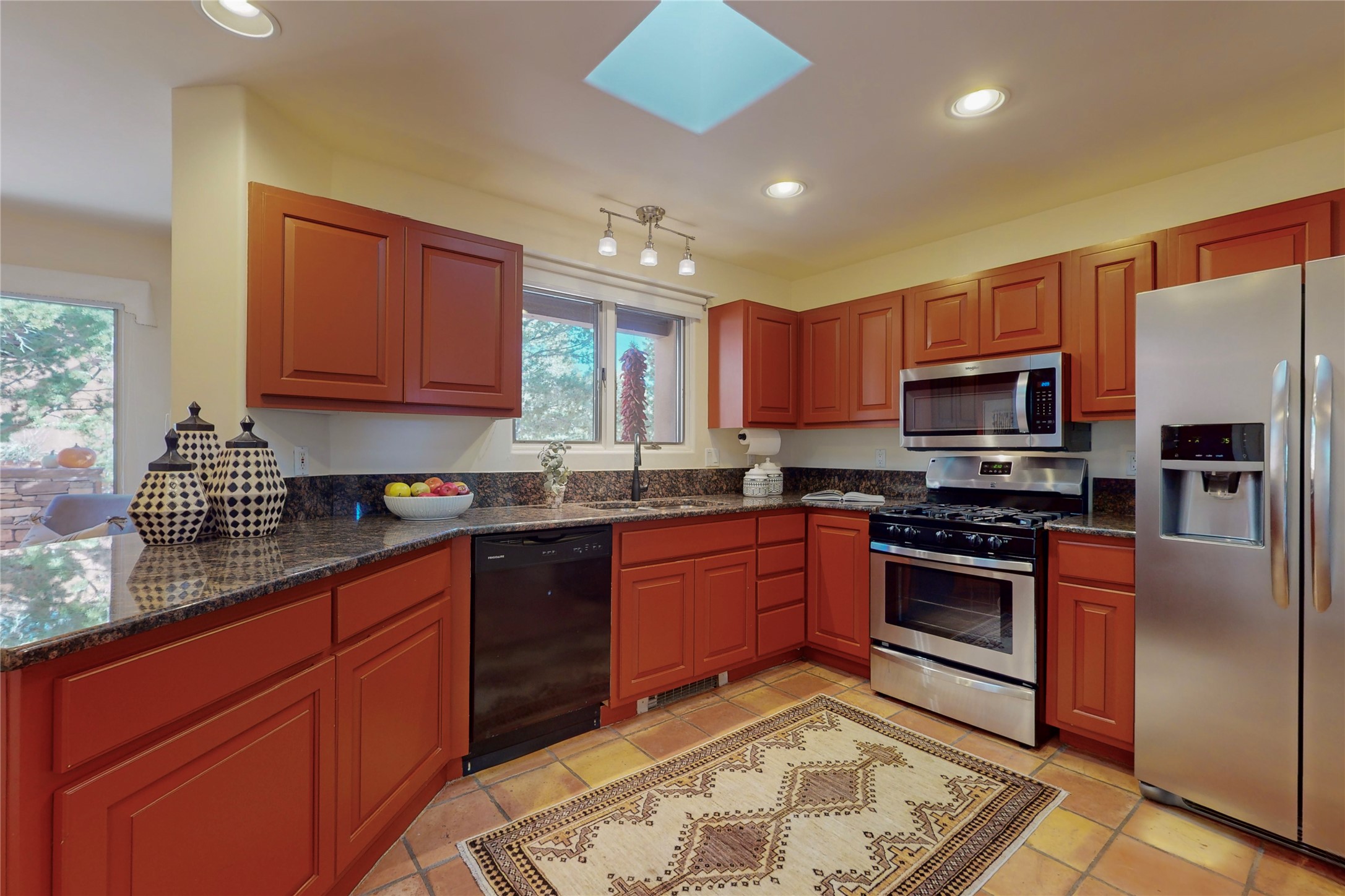 These homes are rarely available and so close to historic and downtown Santa Fe. This remodeled 2 story, 2 bedroom, 2 bath home has an open feeling with a lot of natural light. In keeping with the pueblo style, it has vigas, latillas and high ceilings. The home is on a cul-de-sac. Nice sunset views can be enjoyed from the back deck. There is formal and informal dining and a well-appointed spacious upgraded kitchen with a large pantry. An attached two car garage and Solar photovoltaic panels completes this offering. Estancia Primera has a clubhouse with a kitchen, an outdoor swimming pool, tennis and racquetball courts.