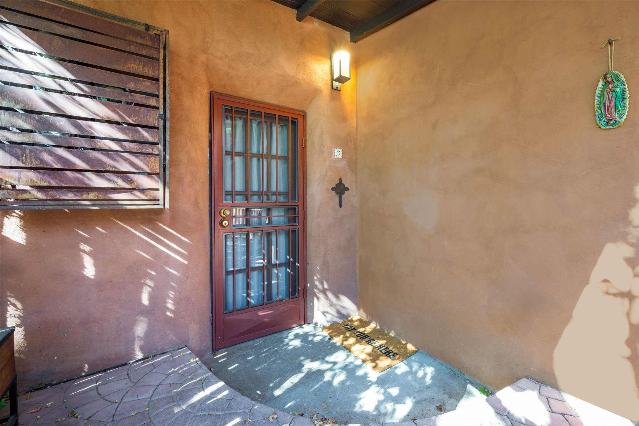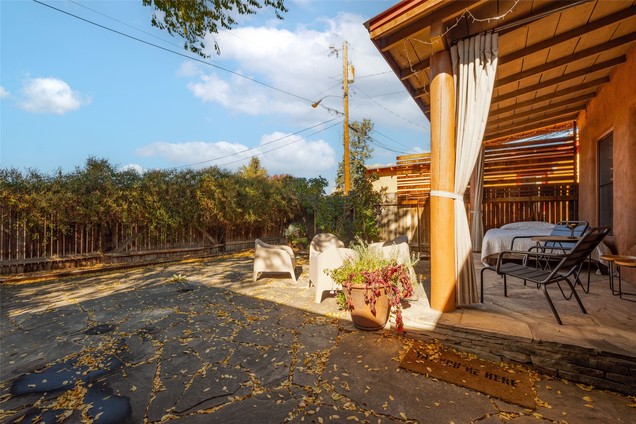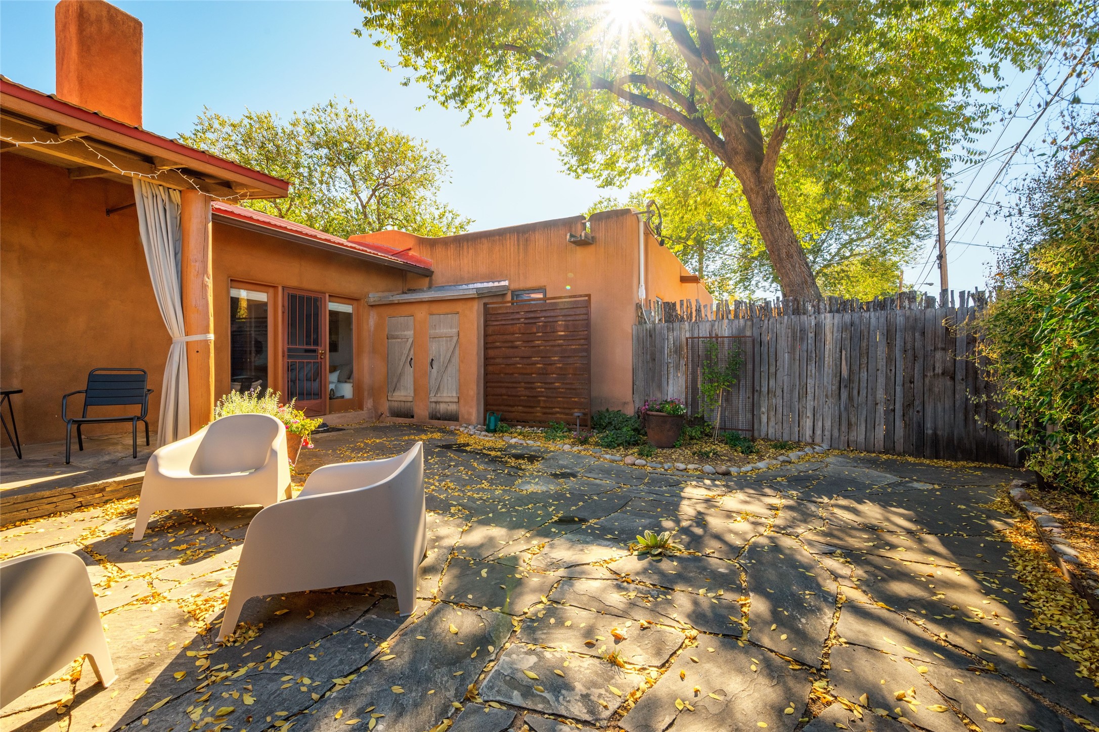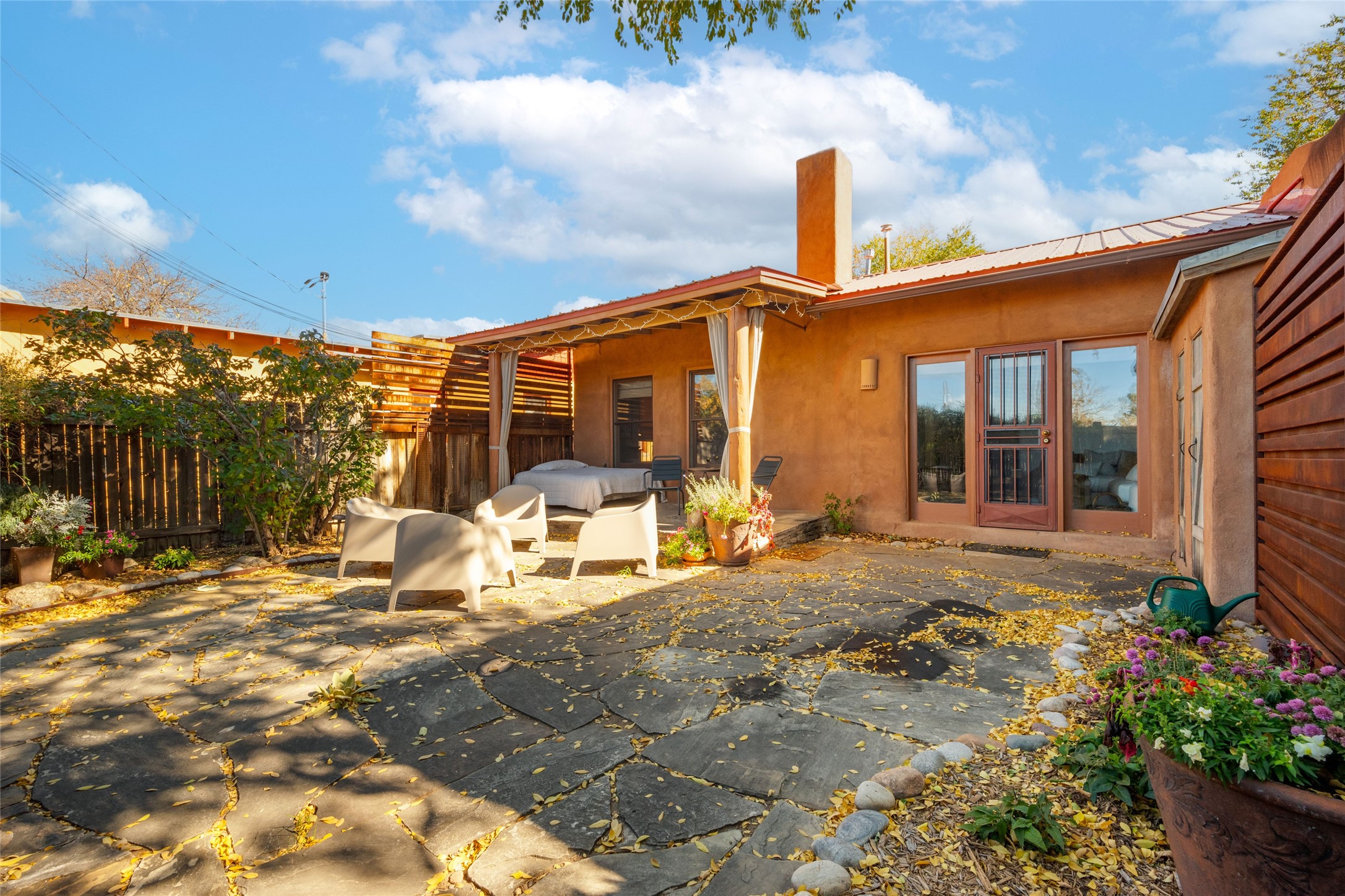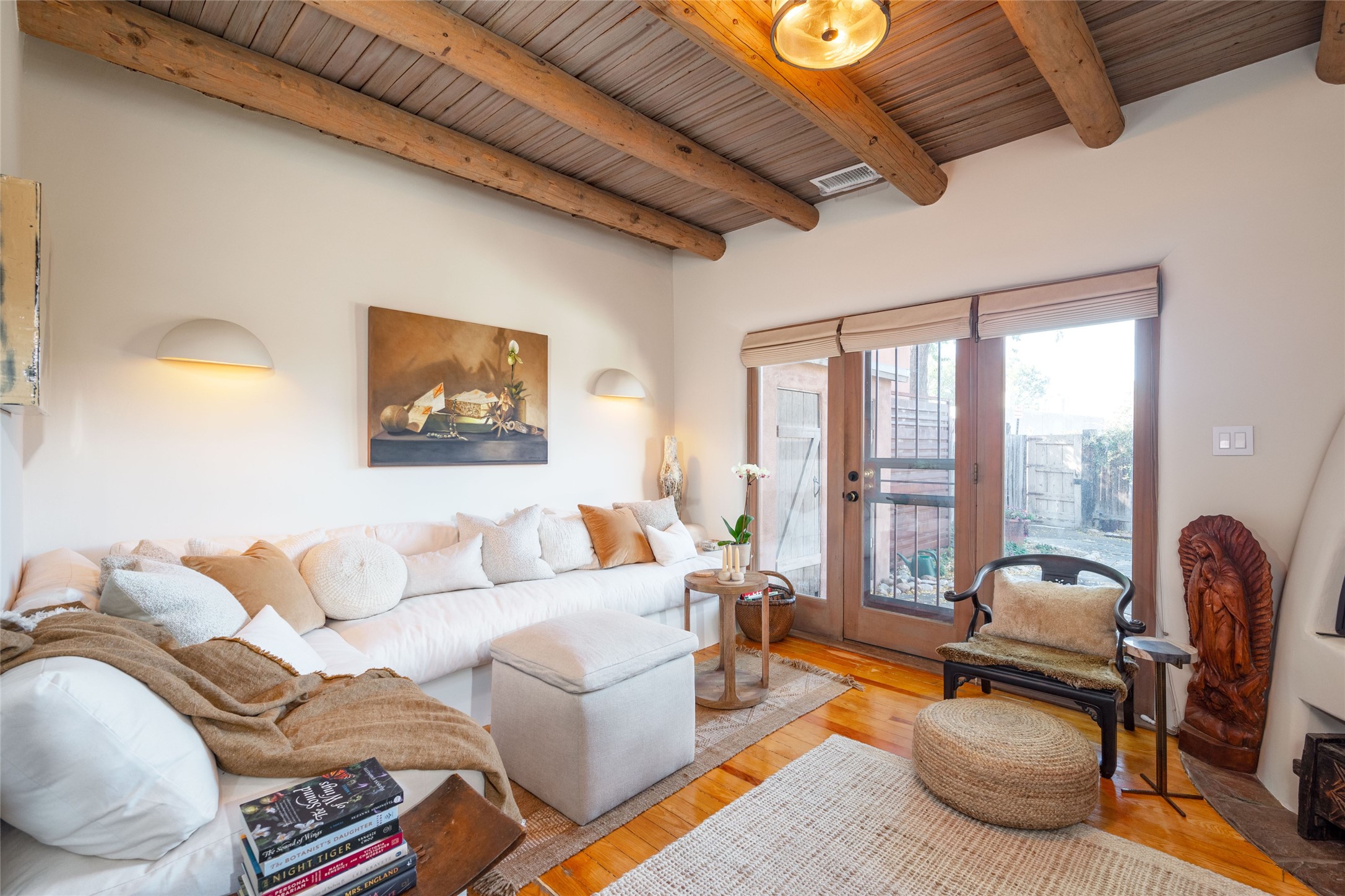 Enchanting, updated 1 bedroom 1 bath condo in the desirable, close-in Guadalupe Historic District. Single level, no interior steps. Iconic Santa Fe style with vigas and tongue and groove ceilings, kiva fireplace, bancos, and pine plank flooring. Updated chef's kitchen with quartz counters and plenty of storage. Spacious flagstone patio and garden area offer expanded living and dining. A perfect place for entertaining and enjoying the New Mexico skies. One reserved parking space. Coveted location close to the Santa Fe Railyard District, the historic Plaza and Museum Hill.