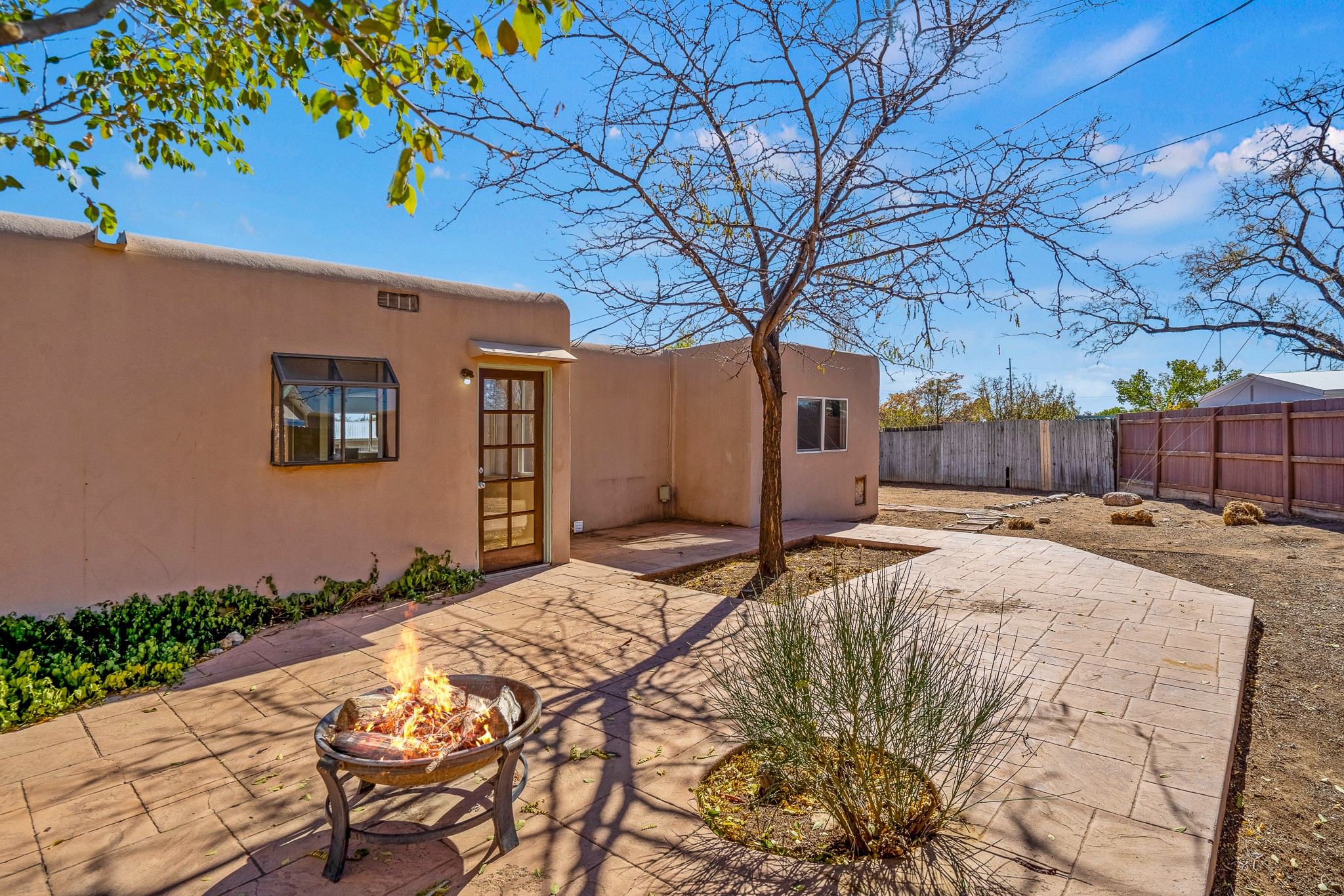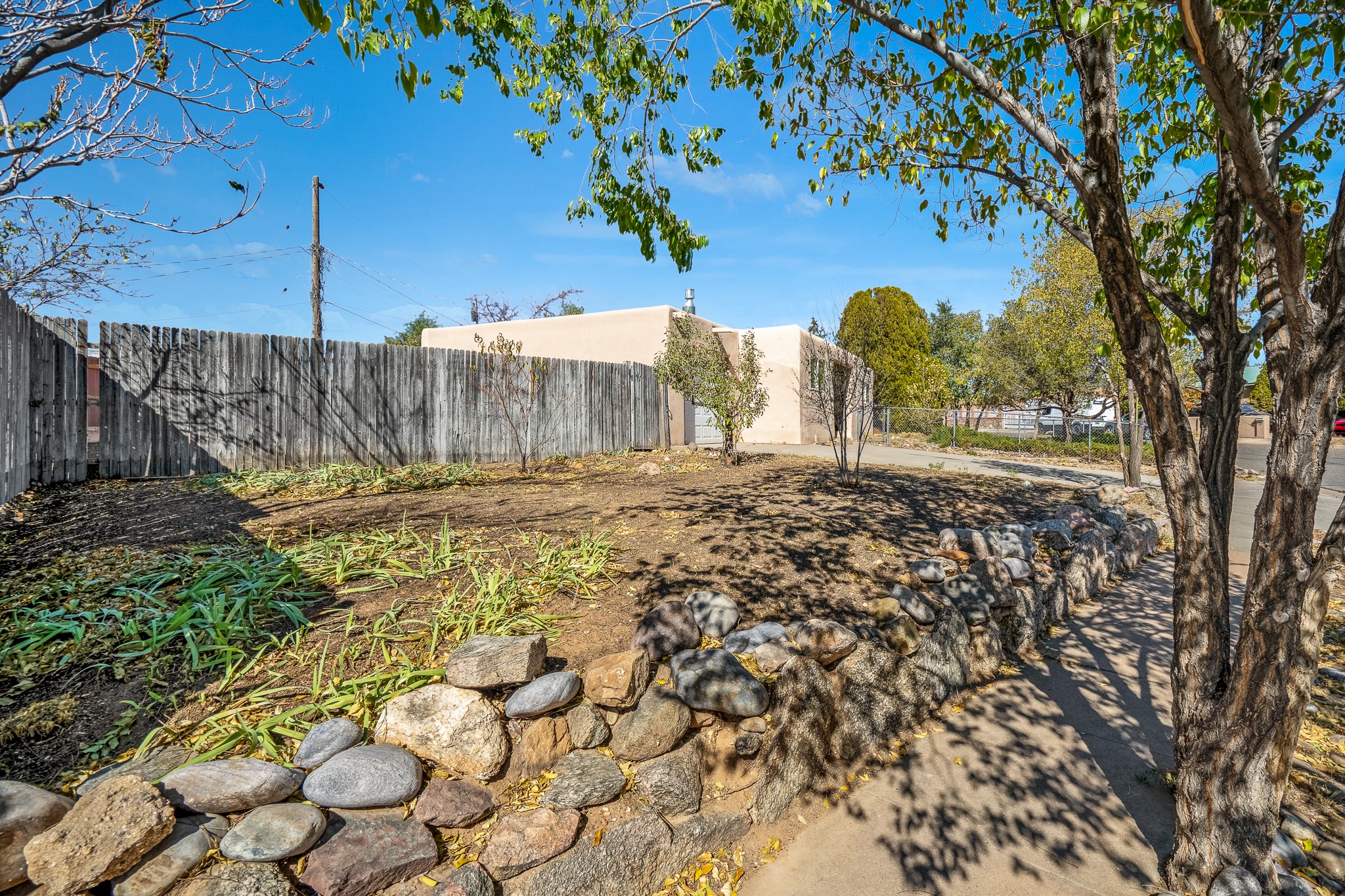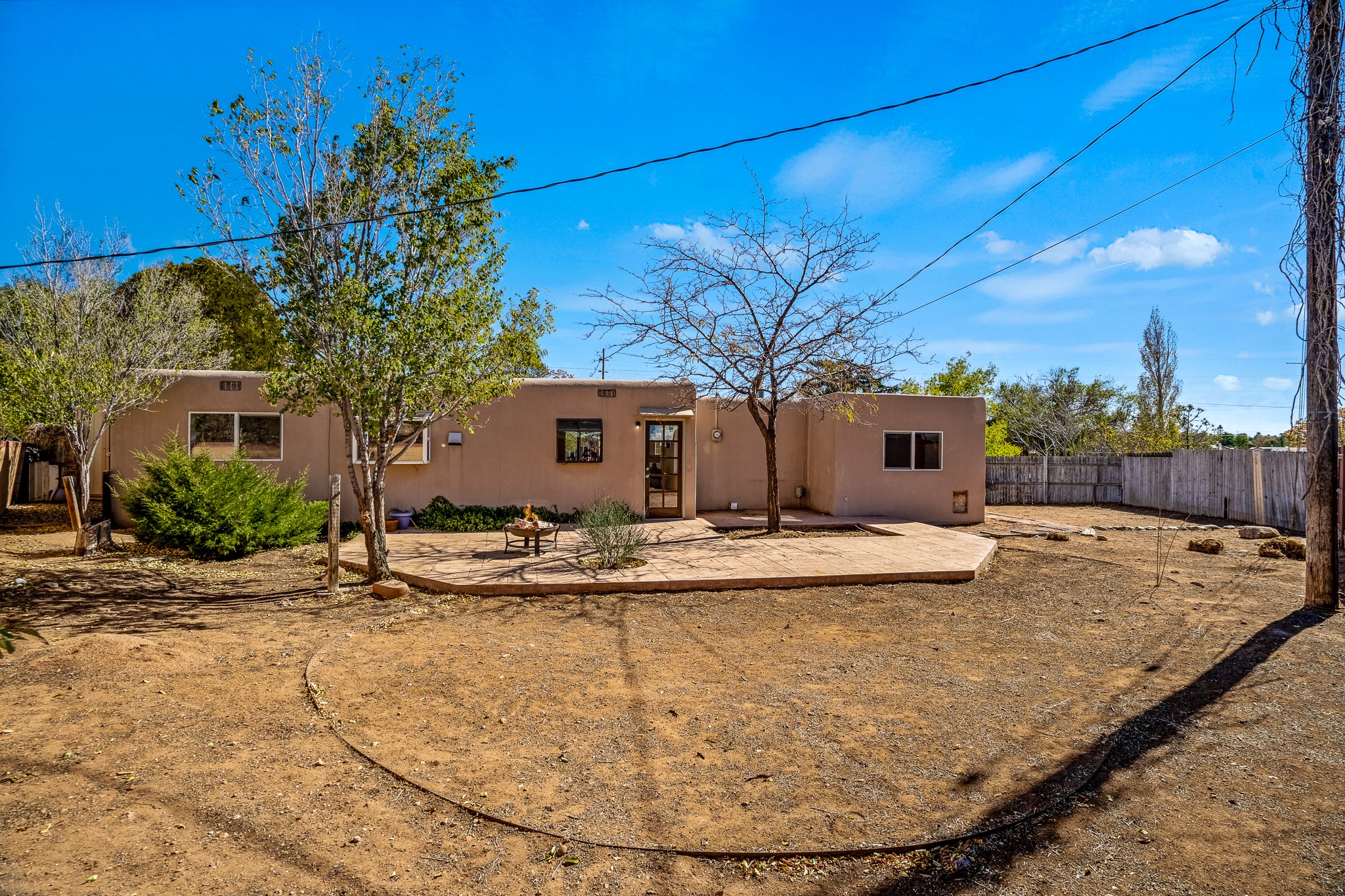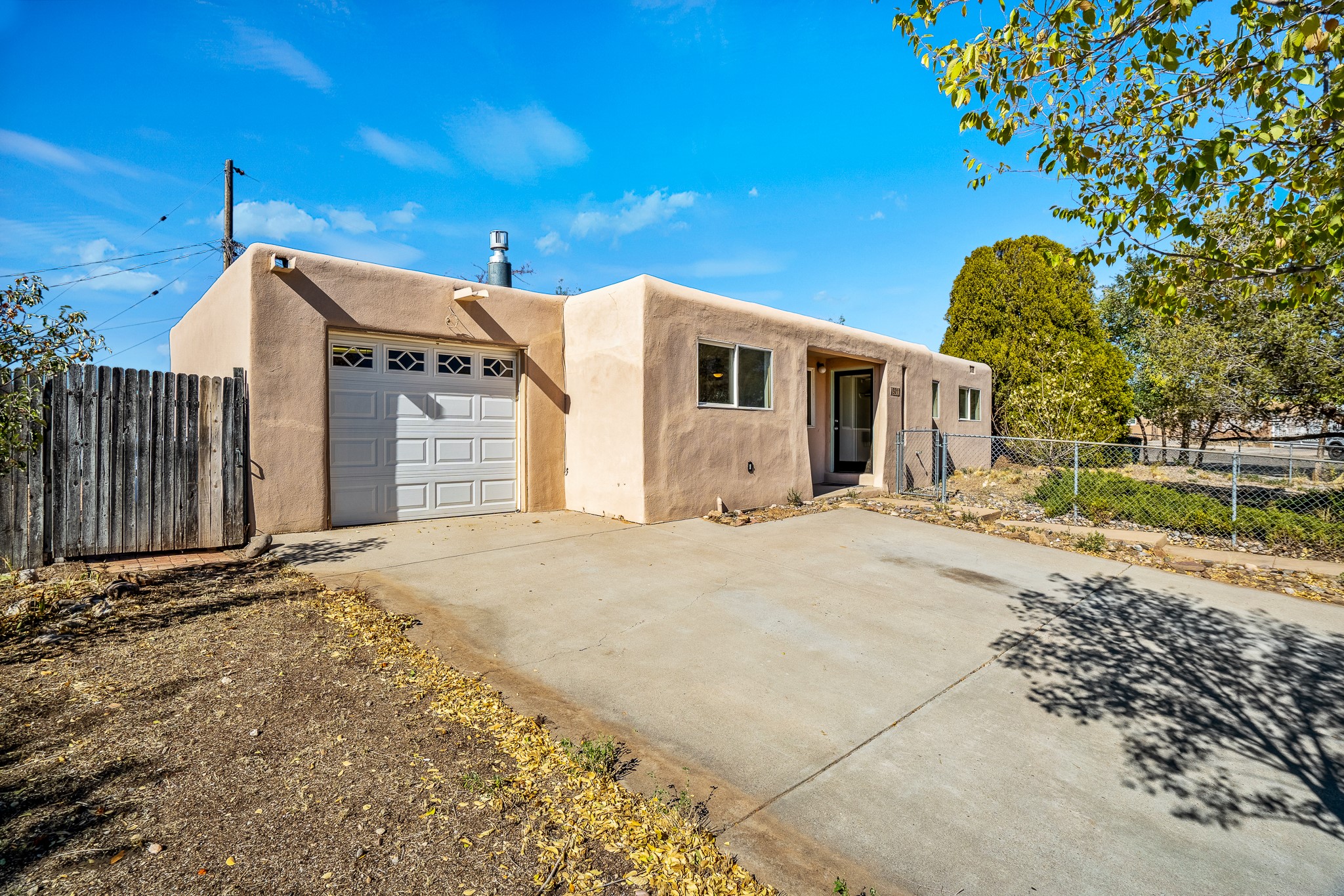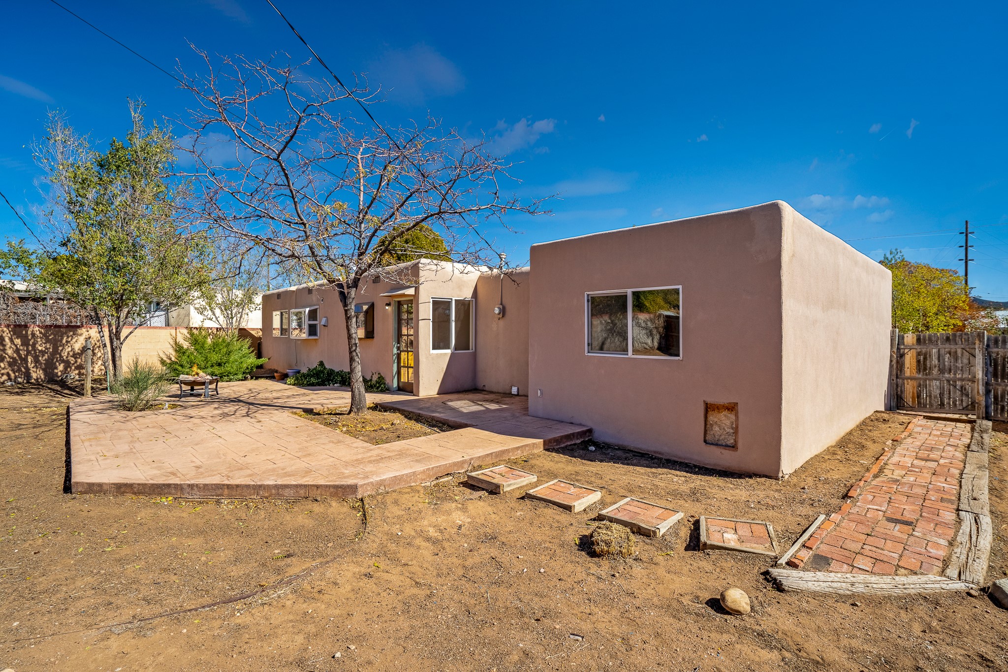 Open concept living/dining/kitchen welcomes you in to this well located 3 bedroom home. Tile floors throughout main areas and into bathroom. Stainless steel appliance package in kitchen is all 5 years old: includes refrigerator, dishwasher, electric oven, microwave, hot water heater- the garbage disposal has also been recently replaced. Lovely manufactured wood flooring has been added in the 3 bedrooms. Kitchen and bathroom have small bay windows above the sink in kitchen and tub in bath, which create extra light and lovely places for plants or decorations. Gas fireplace in living room. Single car attached garage makes for a great place for storage or another potential space if buyer wants to put in heating. The yard is very large - since the lot is on a curve of Siringo Rondo the size is .187 acres, or 8146 sq ft - much larger than the minimum lot size. Ample rear yard has lovely stamped concrete patio area with trees for shade and lots of room to plant. Western side yard is also deep and could easily be area for vegetable garden. When outdoors do not miss the shed that is out to the east side of the home - it is a great place to keep outdoor tools so they stay dry and out of the elements. Front yard has a lovely iris patch and another fenced in area that could work well for dogs . Home warranty provided by seller. Owner is New Mexico real estate broker.