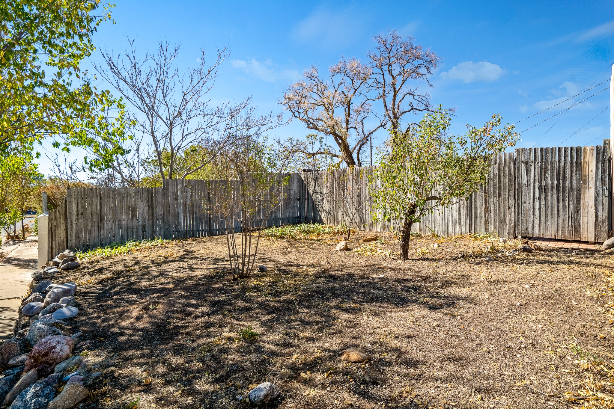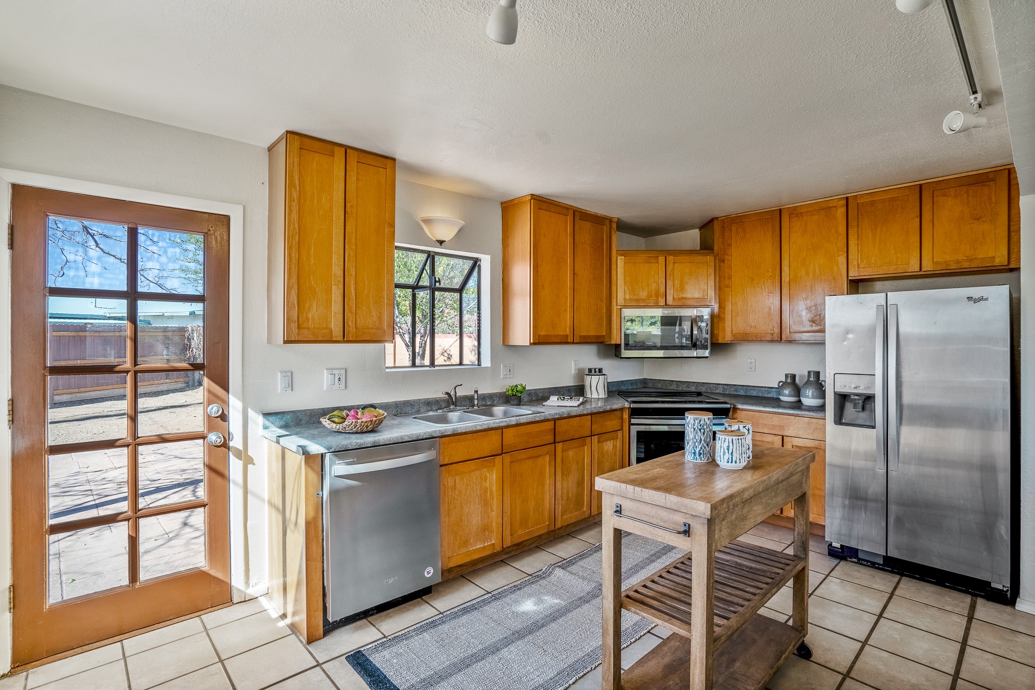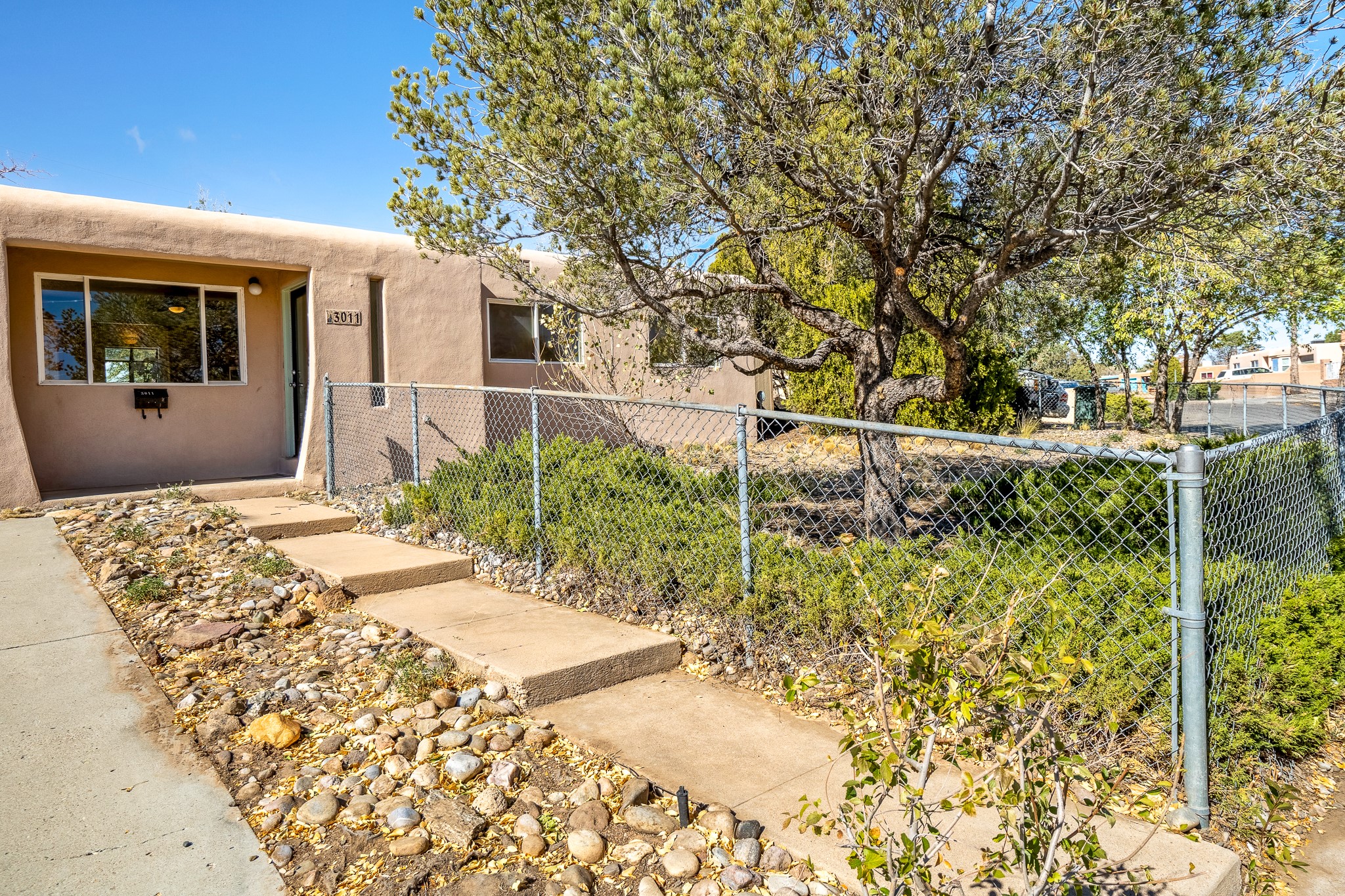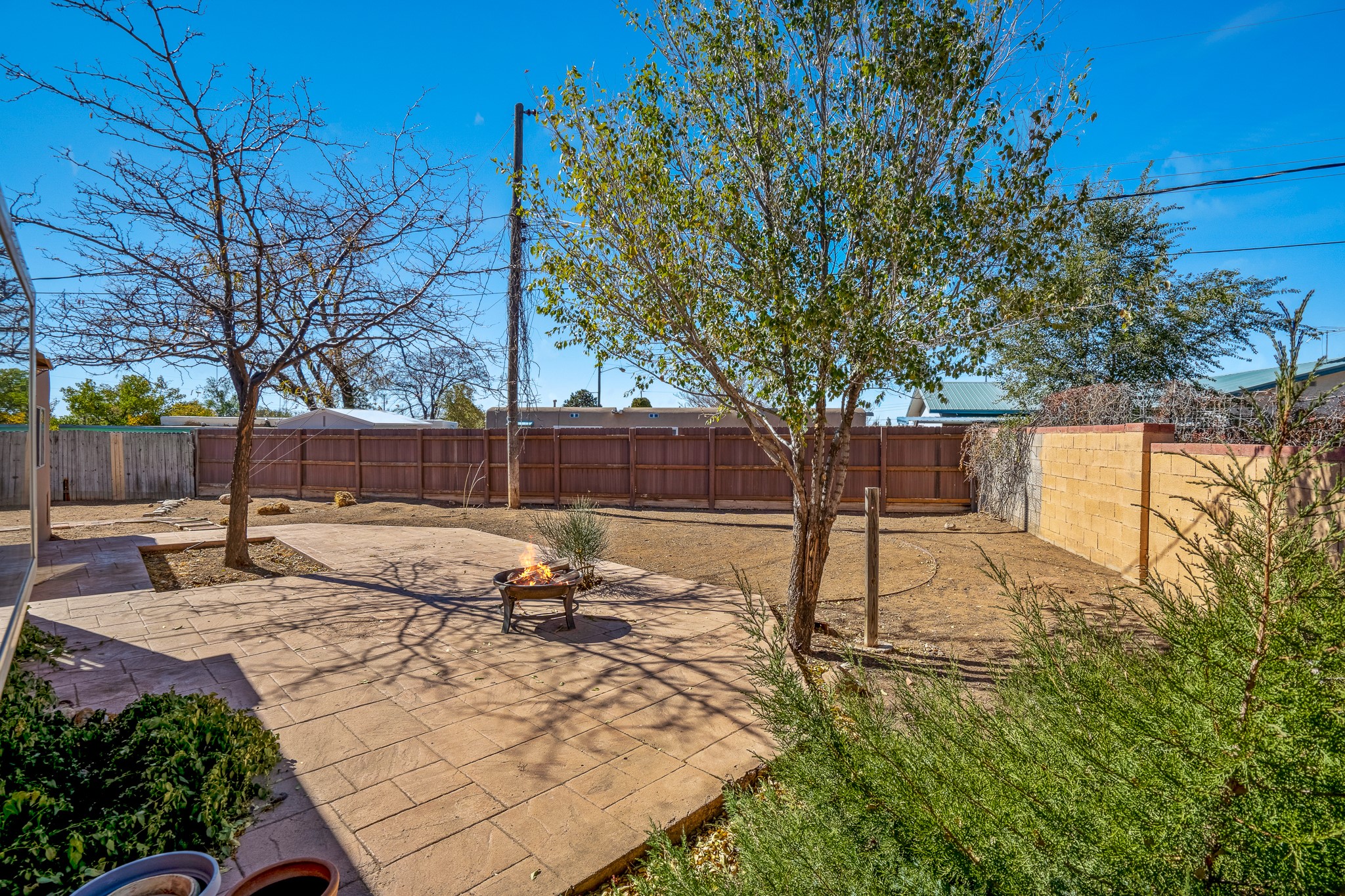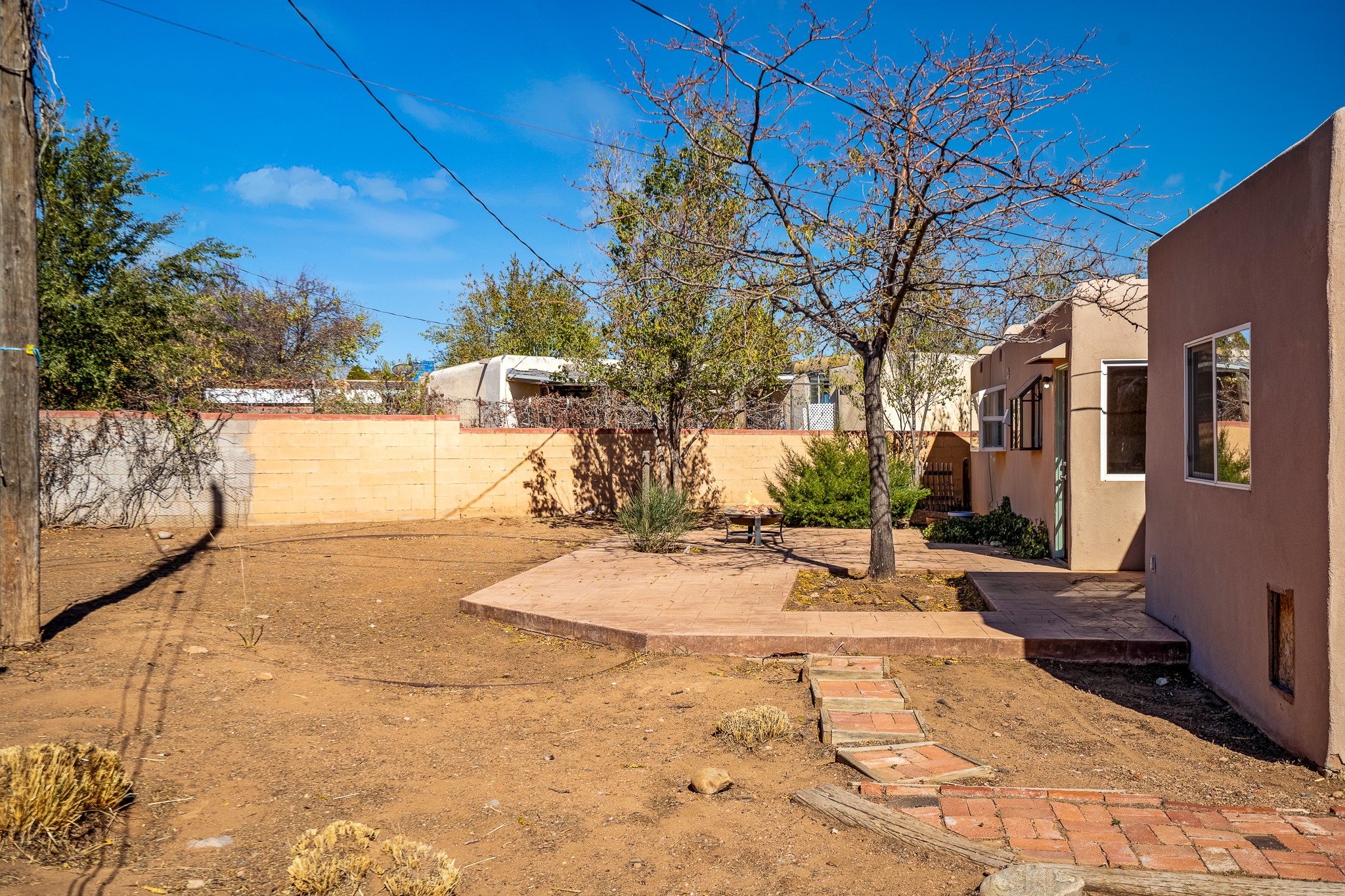 Open concept living/dining/kitchen welcomes you in to this well located 3 bedroom home. Tile floors throughout main areas and into bathroom. Stainless steel appliance package in kitchen is all 5 years old: includes refrigerator, dishwasher, electric oven, microwave, hot water heater- the garbage disposal has also been recently replaced. Lovely manufactured wood flooring has been added in the 3 bedrooms. Kitchen and bathroom have small bay windows above the sink in kitchen and tub in bath, which create extra light and lovely places for plants or decorations. Gas fireplace in living room. Single car attached garage makes for a great place for storage or another potential space if buyer wants to put in heating. The yard is very large - since the lot is on a curve of Siringo Rondo the size is .187 acres, or 8146 sq ft - much larger than the minimum lot size. Ample rear yard has lovely stamped concrete patio area with trees for shade and lots of room to plant. Western side yard is also deep and could easily be area for vegetable garden. When outdoors do not miss the shed that is out to the east side of the home - it is a great place to keep outdoor tools so they stay dry and out of the elements. Front yard has a lovely iris patch and another fenced in area that could work well for dogs . Home warranty provided by seller. Owner is New Mexico real estate broker.