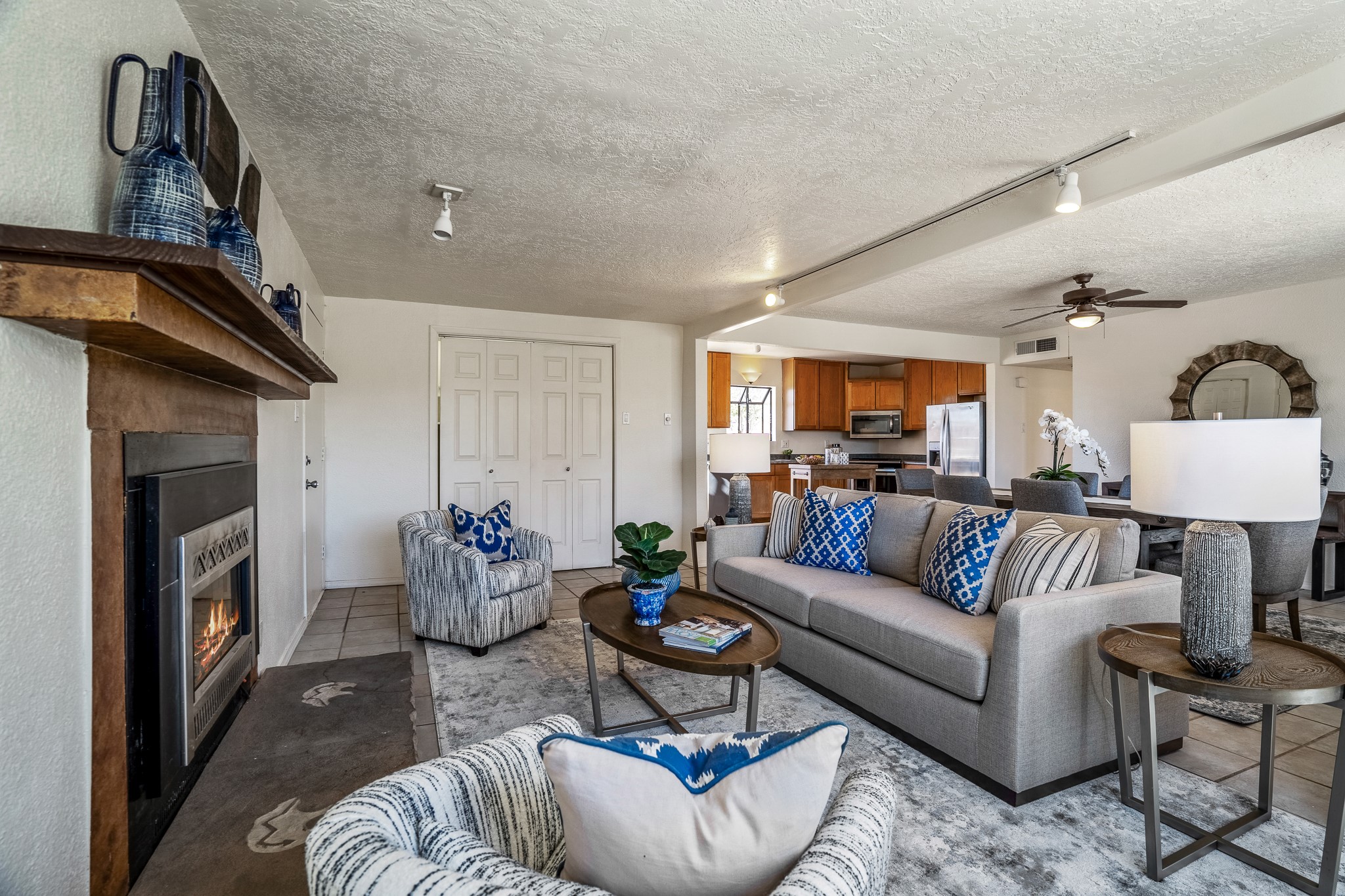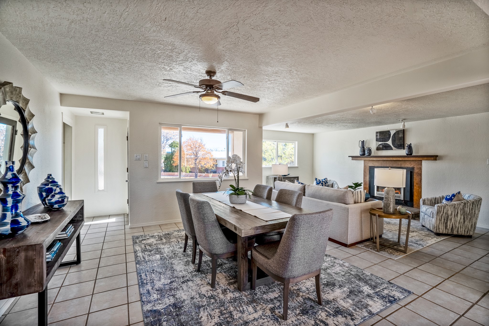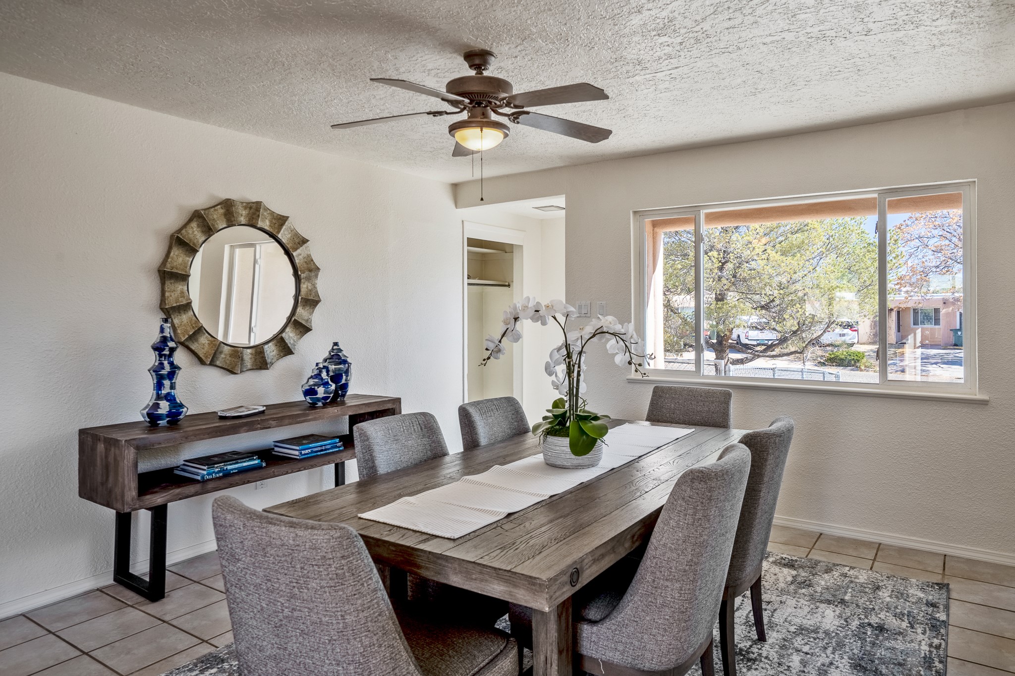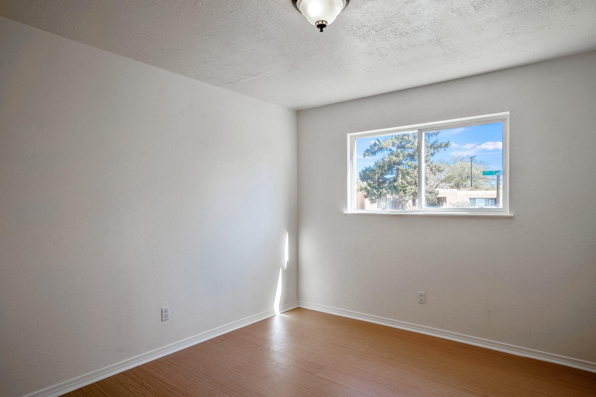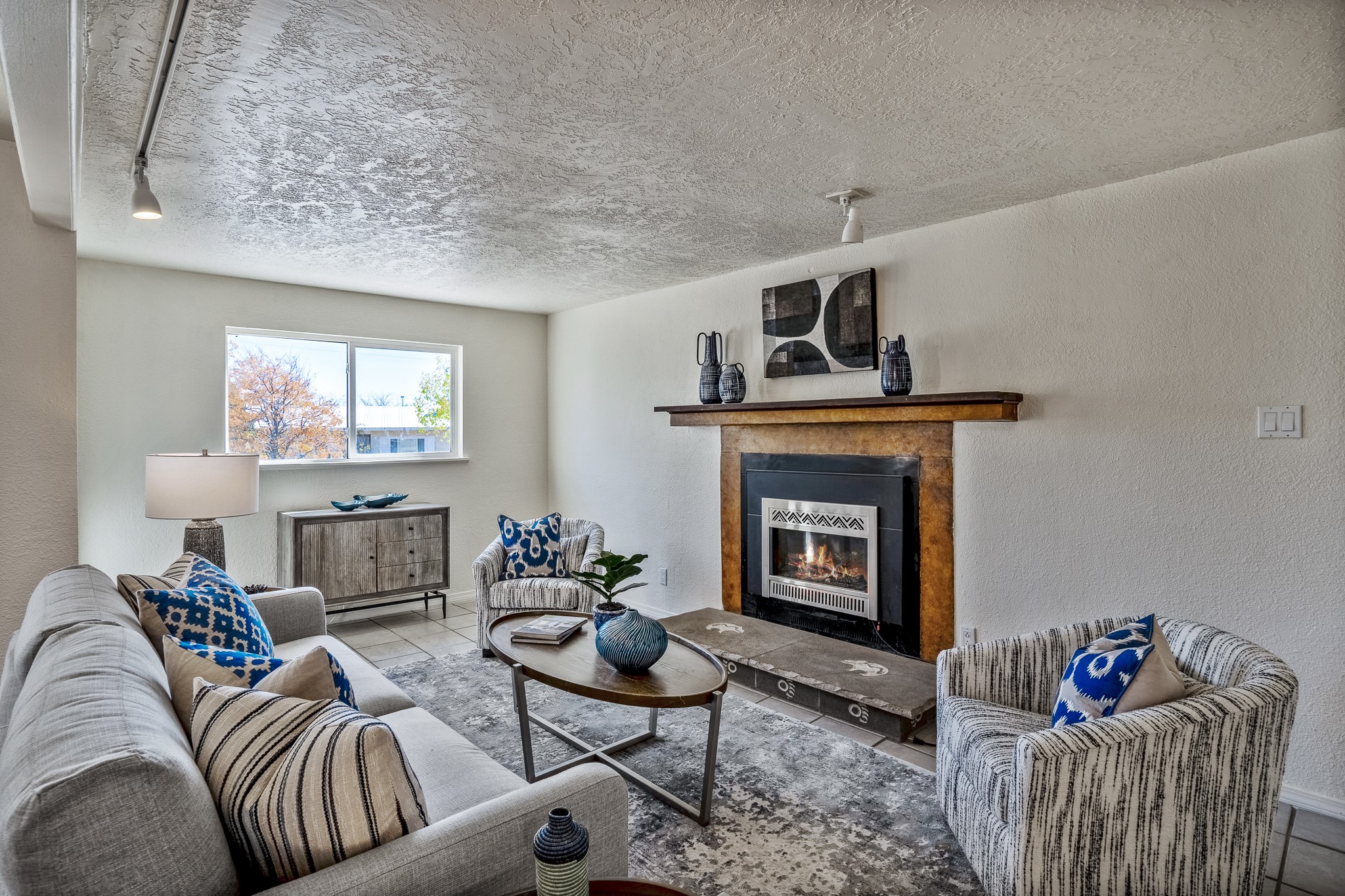 Open concept living/dining/kitchen welcomes you in to this well located 3 bedroom home. Tile floors throughout main areas and into bathroom. Stainless steel appliance package in kitchen is all 5 years old: includes refrigerator, dishwasher, electric oven, microwave, hot water heater- the garbage disposal has also been recently replaced. Lovely manufactured wood flooring has been added in the 3 bedrooms. Kitchen and bathroom have small bay windows above the sink in kitchen and tub in bath, which create extra light and lovely places for plants or decorations. Gas fireplace in living room. Single car attached garage makes for a great place for storage or another potential space if buyer wants to put in heating. The yard is very large - since the lot is on a curve of Siringo Rondo the size is .187 acres, or 8146 sq ft - much larger than the minimum lot size. Ample rear yard has lovely stamped concrete patio area with trees for shade and lots of room to plant. Western side yard is also deep and could easily be area for vegetable garden. When outdoors do not miss the shed that is out to the east side of the home - it is a great place to keep outdoor tools so they stay dry and out of the elements. Front yard has a lovely iris patch and another fenced in area that could work well for dogs . Home warranty provided by seller. Owner is New Mexico real estate broker.
