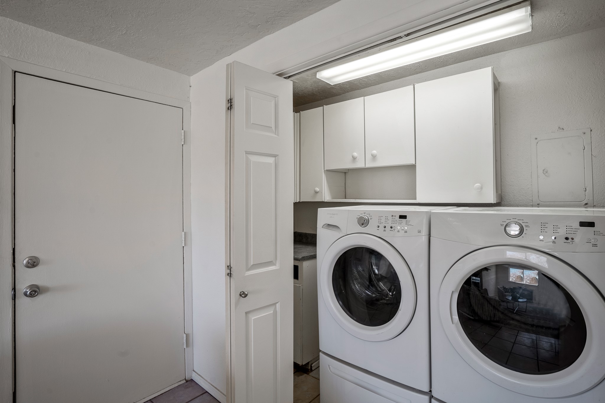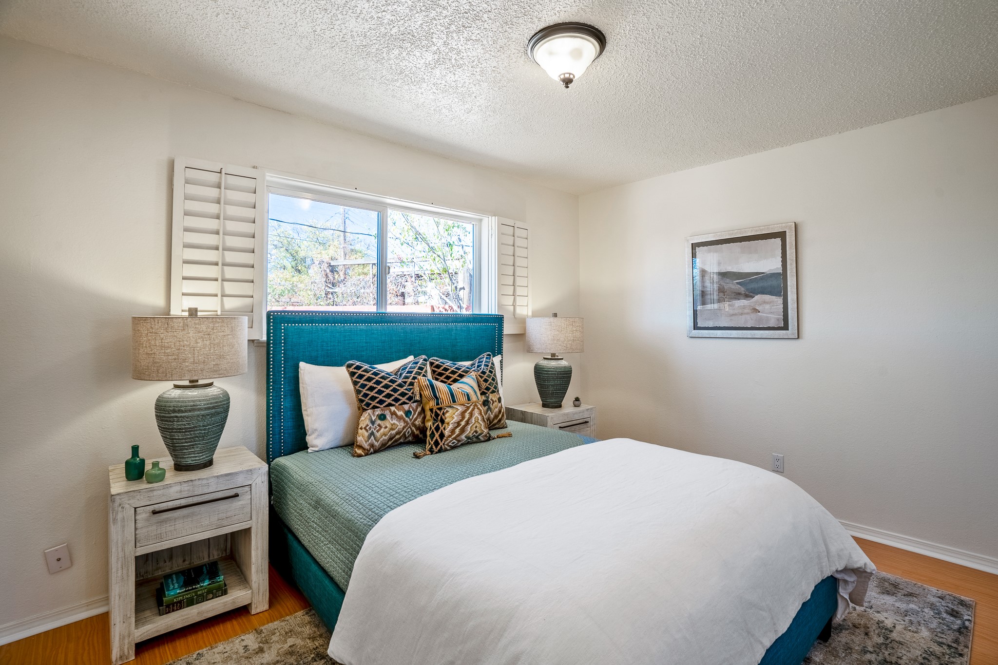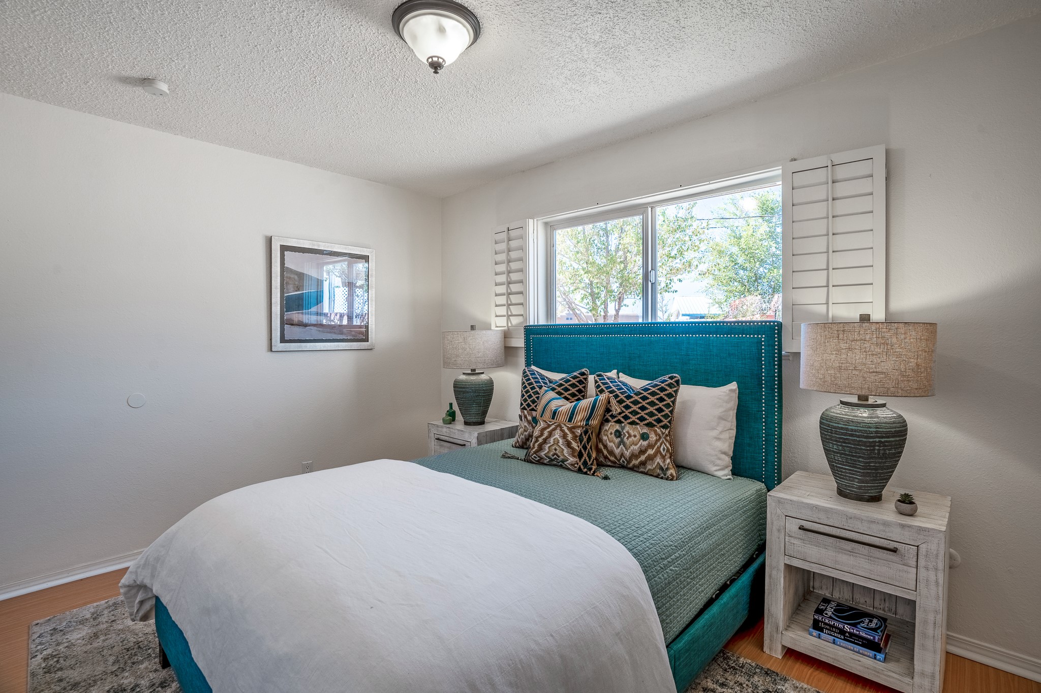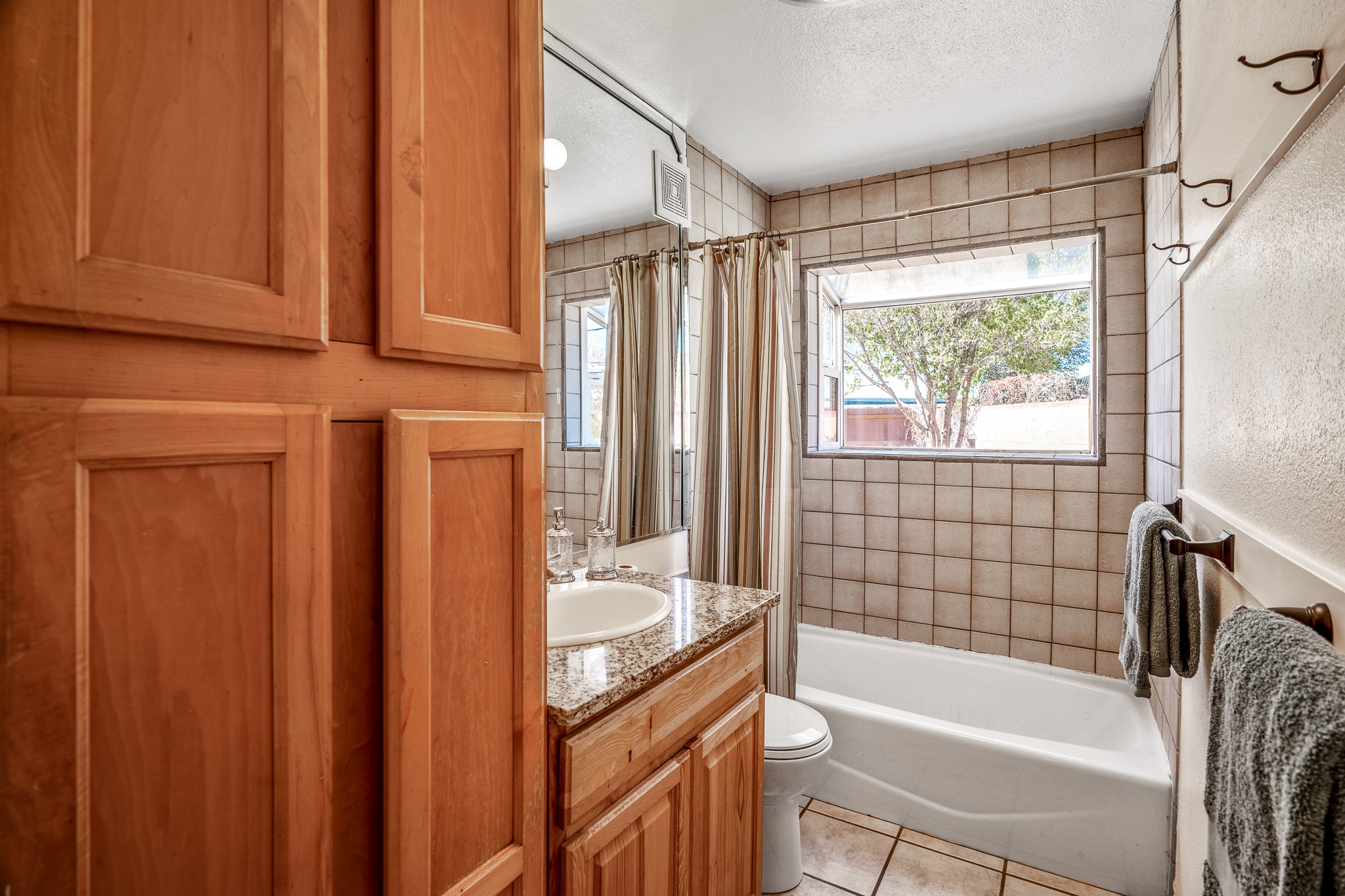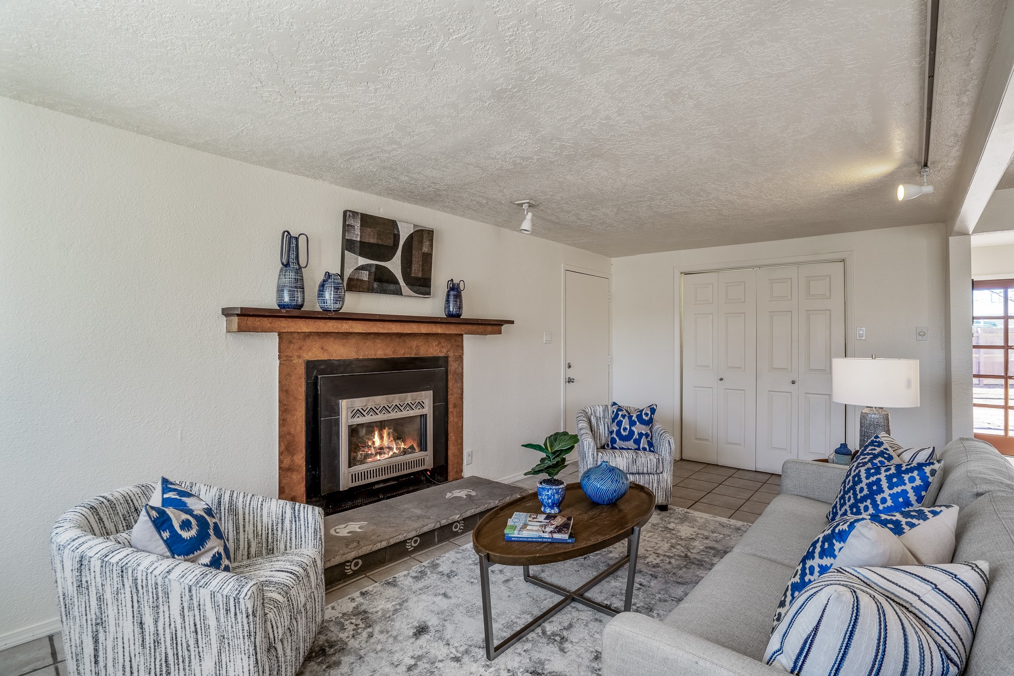 Open concept living/dining/kitchen welcomes you in to this well located 3 bedroom home. Tile floors throughout main areas and into bathroom. Stainless steel appliance package in kitchen is all 5 years old: includes refrigerator, dishwasher, electric oven, microwave, hot water heater- the garbage disposal has also been recently replaced. Lovely manufactured wood flooring has been added in the 3 bedrooms. Kitchen and bathroom have small bay windows above the sink in kitchen and tub in bath, which create extra light and lovely places for plants or decorations. Gas fireplace in living room. Single car attached garage makes for a great place for storage or another potential space if buyer wants to put in heating. The yard is very large - since the lot is on a curve of Siringo Rondo the size is .187 acres, or 8146 sq ft - much larger than the minimum lot size. Ample rear yard has lovely stamped concrete patio area with trees for shade and lots of room to plant. Western side yard is also deep and could easily be area for vegetable garden. When outdoors do not miss the shed that is out to the east side of the home - it is a great place to keep outdoor tools so they stay dry and out of the elements. Front yard has a lovely iris patch and another fenced in area that could work well for dogs . Home warranty provided by seller. Owner is New Mexico real estate broker.