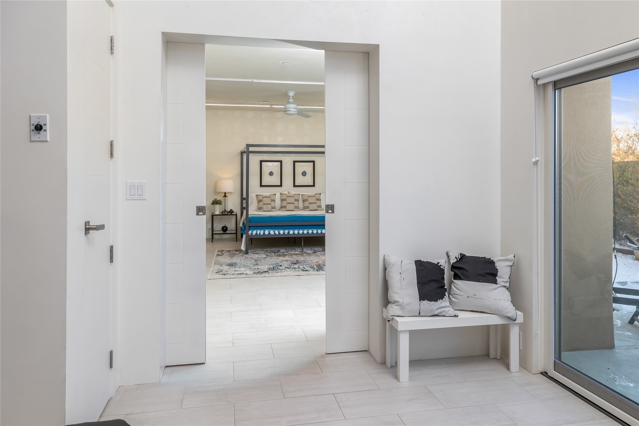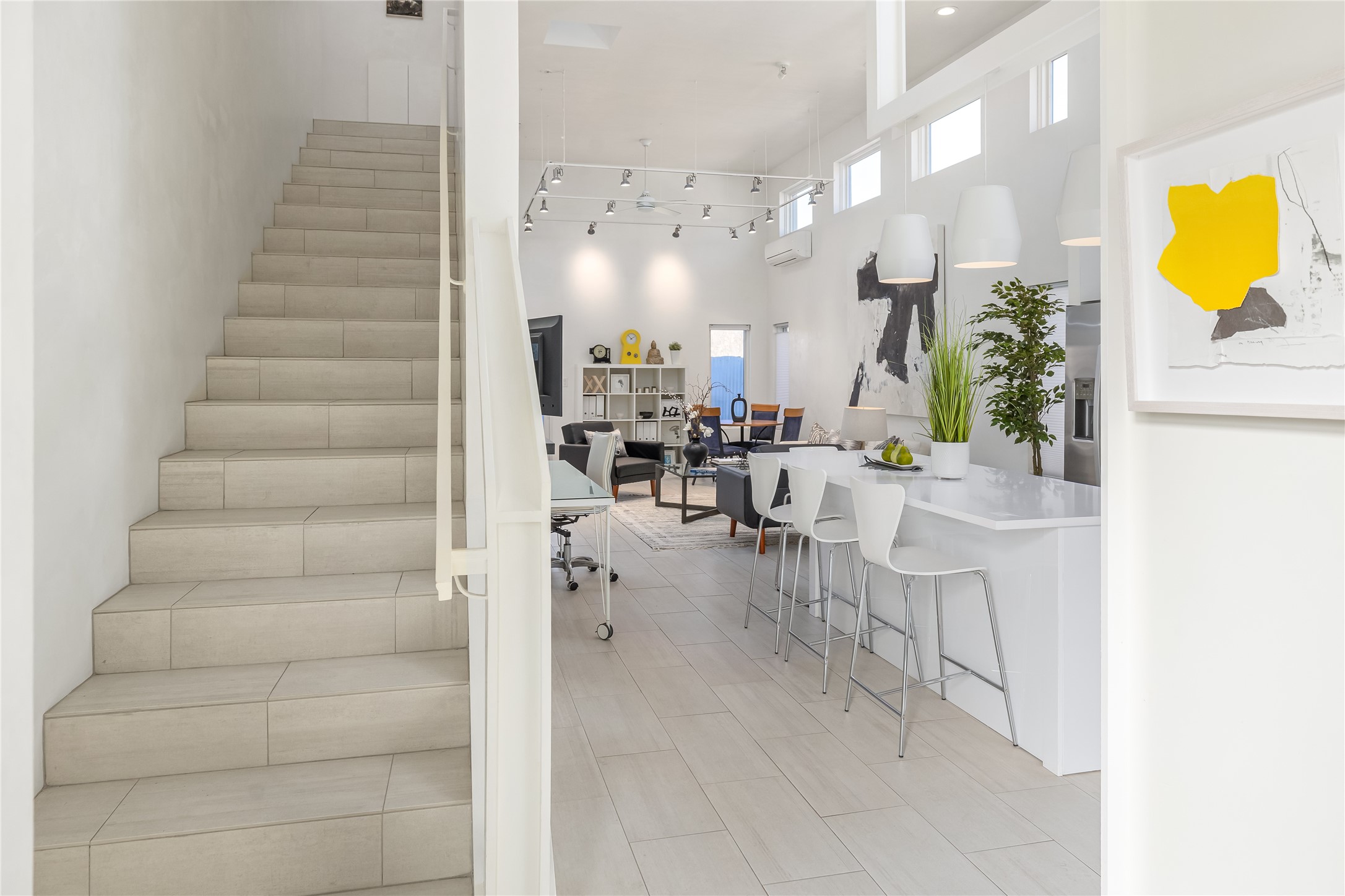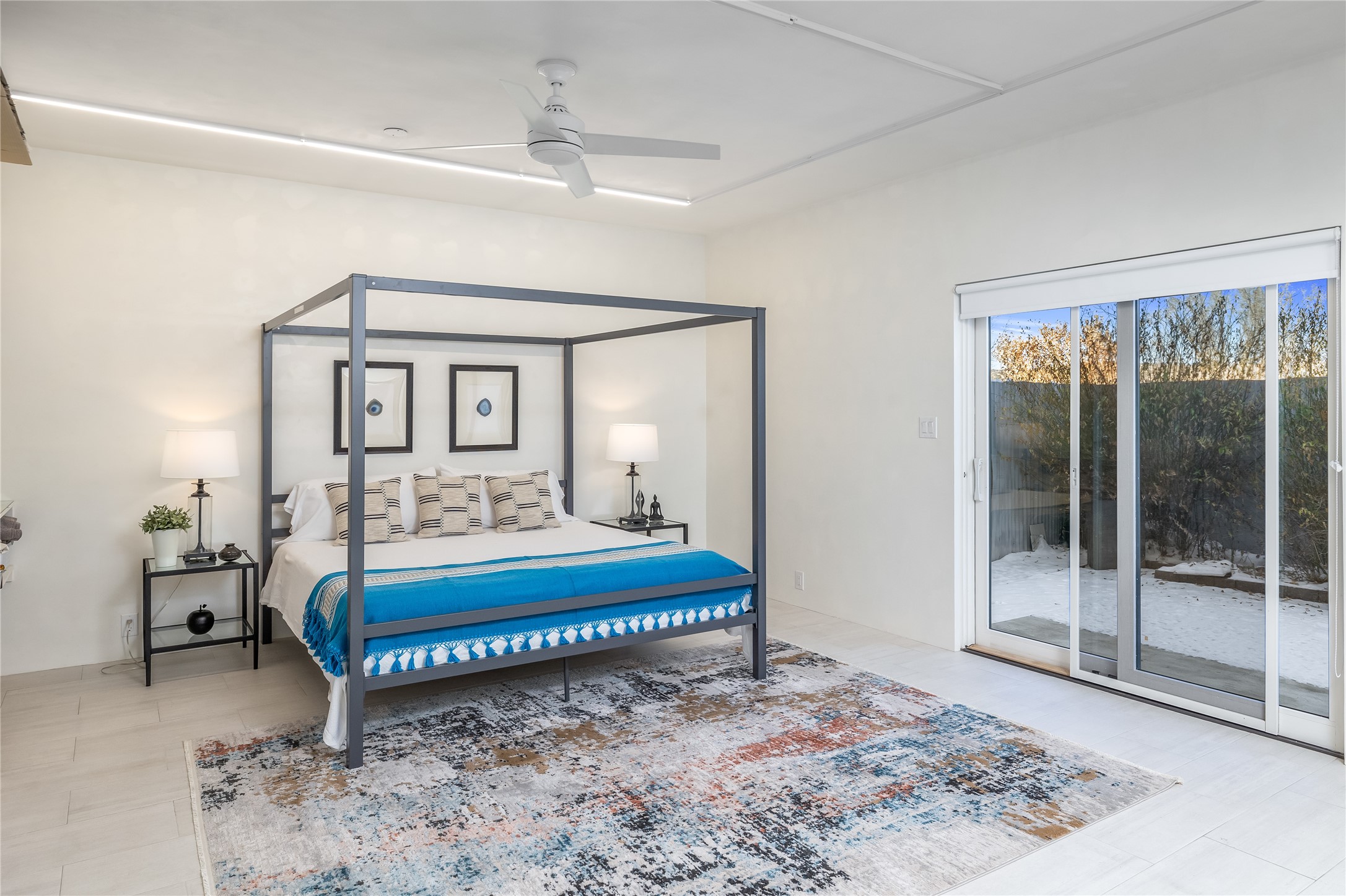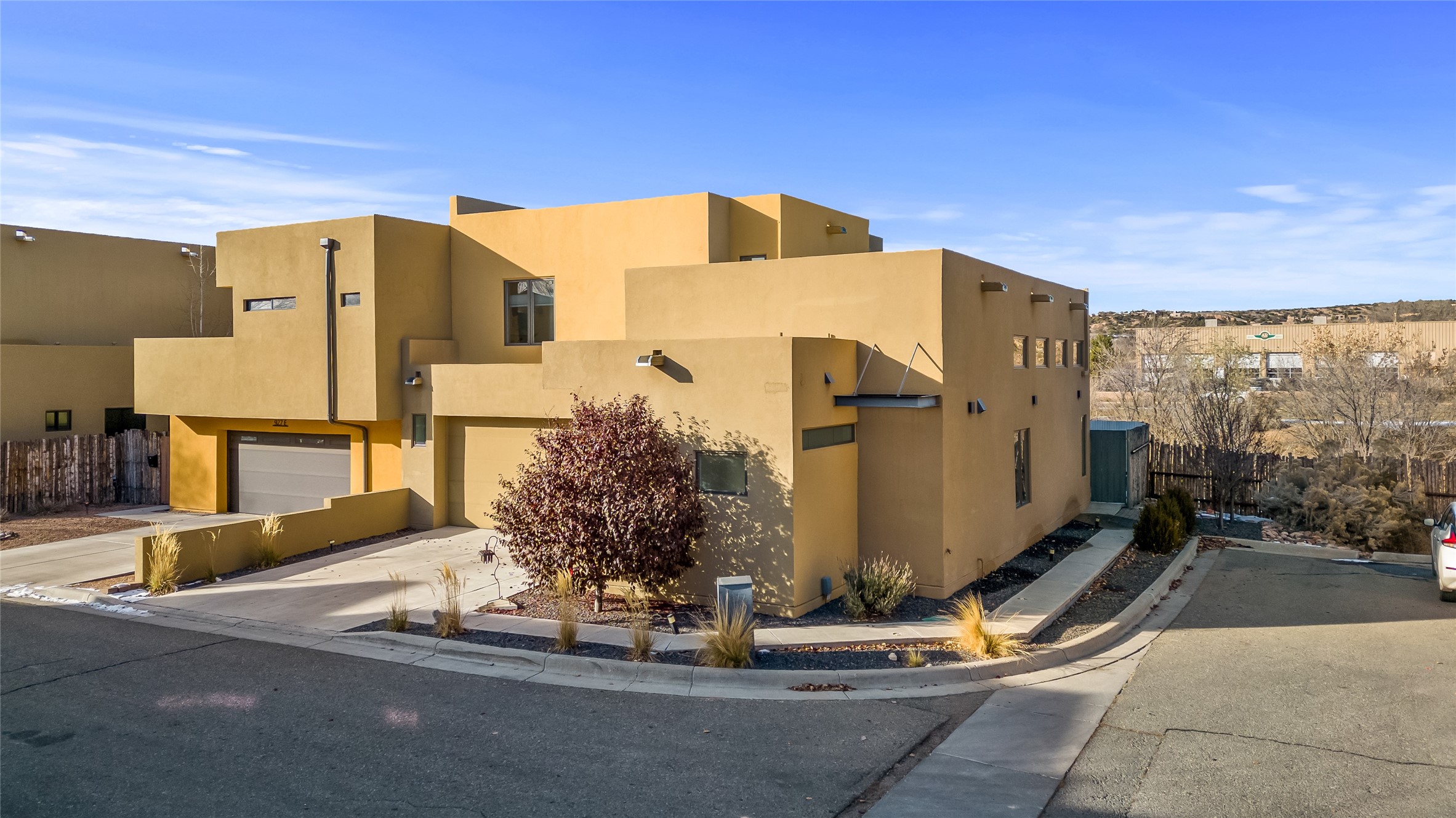 Experience exceptionally stylish Santa Fe living in this contemporary, two-story, 1,914-square-foot condominium that was custom-built for the current owner in 2018. Located in the private, no outlet drive in the desirable Rio Sendero Condo Complex, this 3 bedroom, 3 bath home is nestled against the Santa Fe River Trail that accesses Downtown (1.2 miles) and closely connects to two of Santa Fe's most valued areas: The Santa Fe Railyard Area with its world-class galleries, and the vibrant, ever-popular Santa Fe Farmers Market (1.1 miles). For daily needs, the Solano Shopping Center with a co-op grocery store is .05 miles away. At home, the open-plan kitchen and living areas boast beautiful 14-foot ceilings and private patio access. In the kitchen, you will enjoy gathering around a large kitchen island surrounded by luxury custom cabinetry. The downstairs bedroom (currently being used as an artist studio) also opens to a private outdoor space. Upstairs, the larger of the two bedrooms (both ensuite) sports a modern metal balcony with mountain and river views. This eco-friendly Silver-rated Green home features radiant floor heat and 2 Mitsubishi mini-splits units for optimal temperature control. Refined white plaster walls, custom artist-designed lighting, Pella windows, and light grey tile flooring throughout speak of quality construction and remarkable attention to detail. Too many upgrades to list here, see the Buyer Instructions for more features. This end unit is a must-see! Pre-inspected. Neither Listing Brokers nor Seller warrants the square footage of the home or lot. If the size of the home or lot is of material consideration to the Buyer, then the Buyer should have them measured. Tax Levy is from the Assessor website.