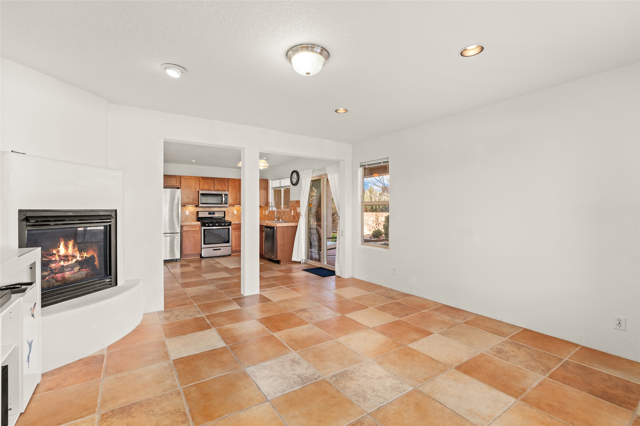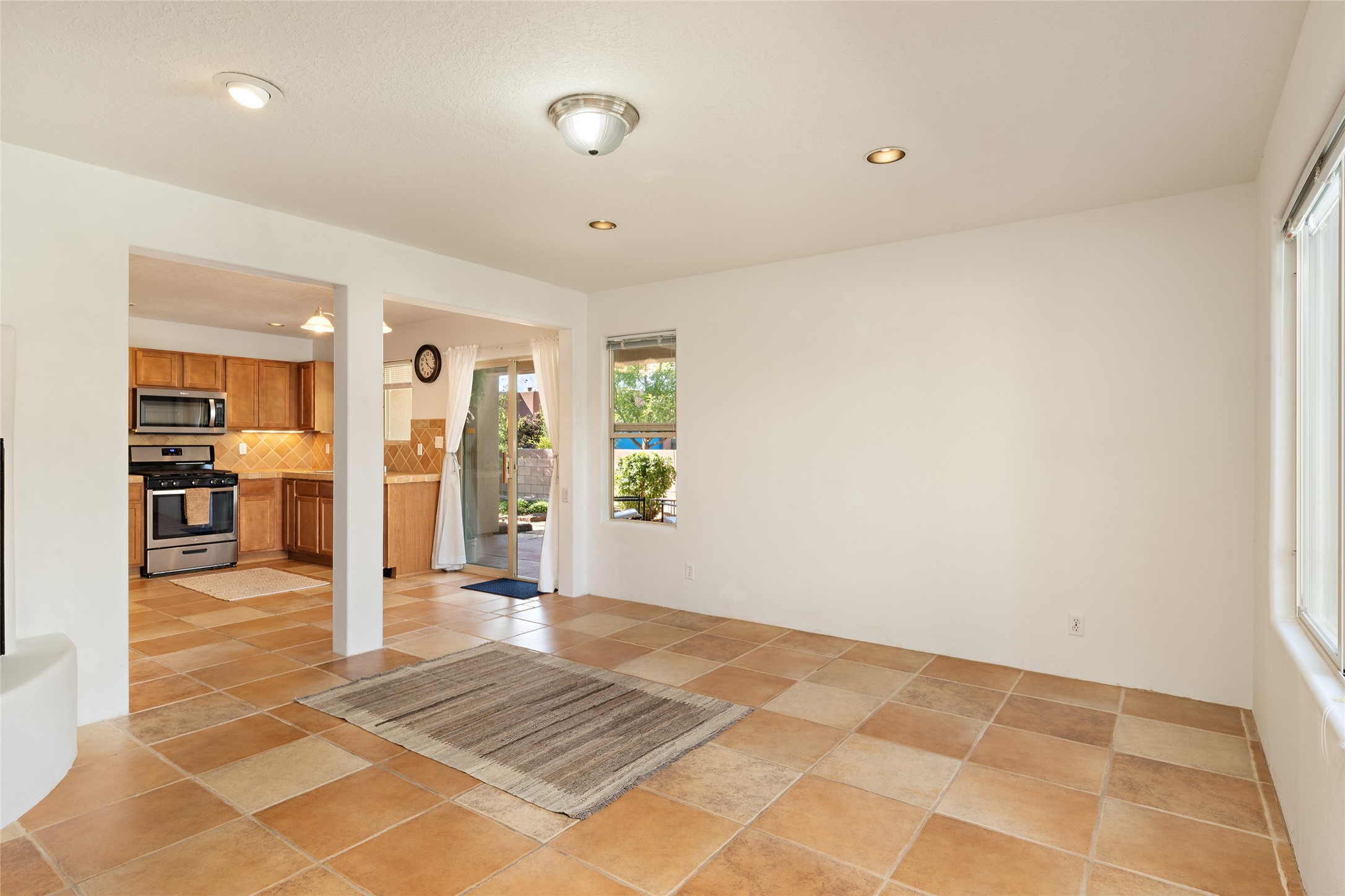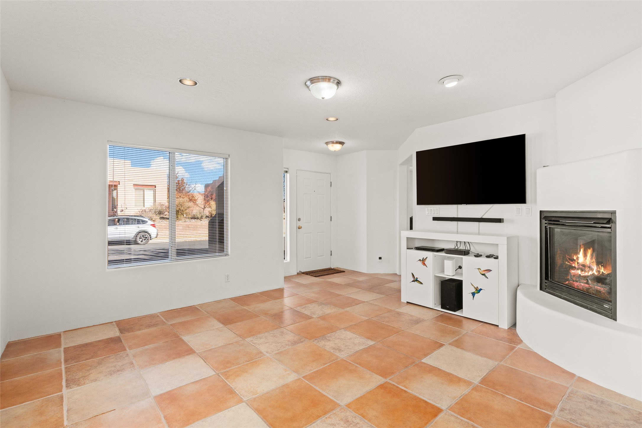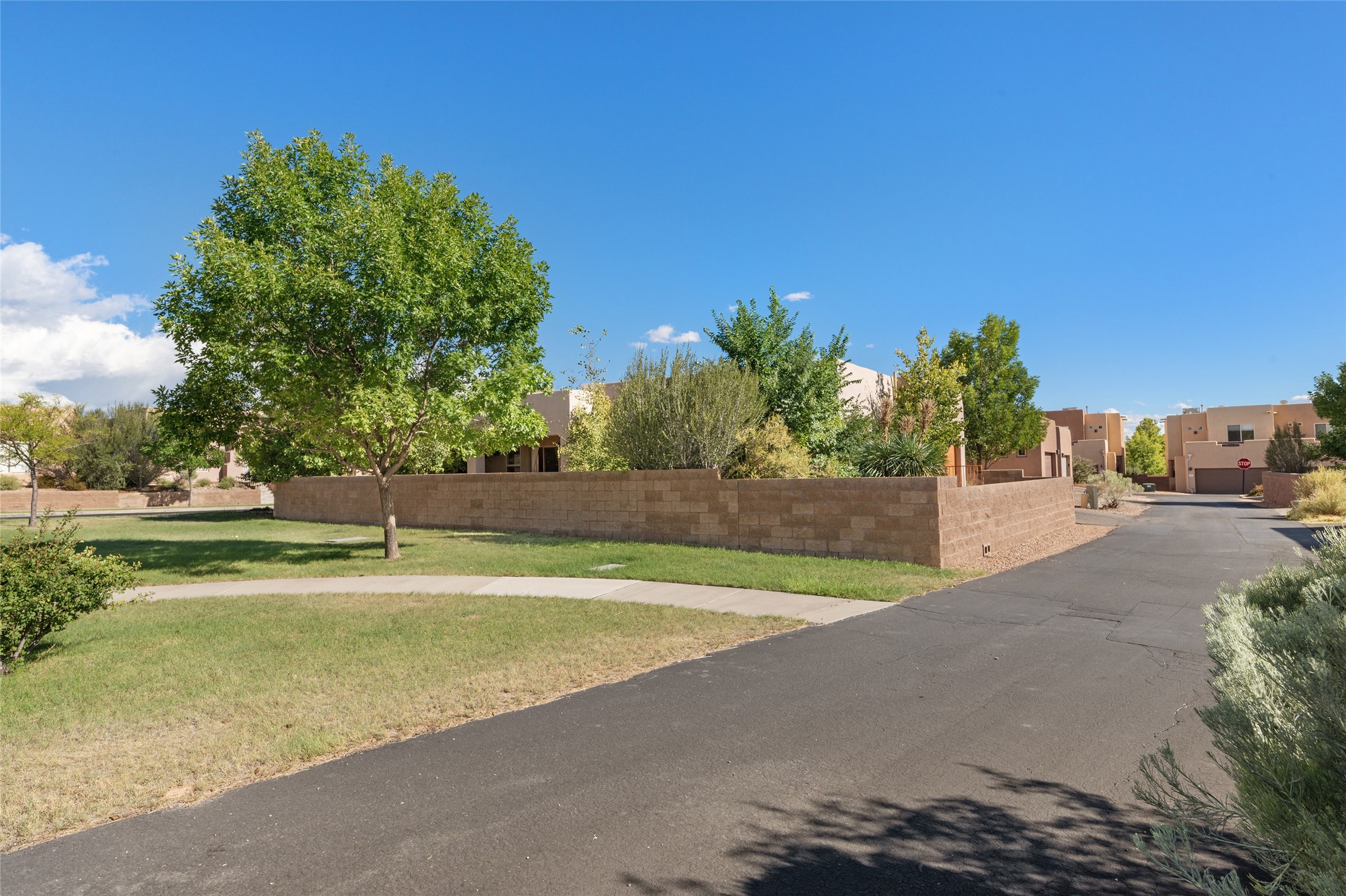 Best of Rancho Vieja! Single-level 3 Bedroom/ 2 Bath Home with Formal Dining or Study, and 2 car garage. This Pecos floor plan home is situated across from a small park which creates green open space! Well designed for quality living with natural light. Great room with a gas fireplace, opens to the Kitchen. Patio doors access from kitchen to the private and spacious north courtyard boasting a covered portal, view of the park, and plenty of area within the landscaped courtyard for gardening or a pet to enjoy. Kitchen has Stainless appliances, a large, double-door pantry, and tile counter tops. At present the fourth Bedroom or office is set up beautifully as a formal dining room. The Primary Bedroom is separate and large enough for a sitting area! A garden style bath that includes a soaking tub with shower, walk-in closet, double sinks & compartmented water closet. The two spacious secondary Bedrooms are both adjacent to a good size full Bath. The Laundry Room is adjacent to the 2-car Garage, which has finished walls. In-floor radiant heat as well as an evaporative cooler. The landscaping and the irrigation system were recently upgraded by the Owner to create a pleasant oasis to relax, and to enjoy. A great property and floor plan to entertain in, both inside or out. Rancho Viejo is a Master-Planned community with miles of trails to venture out on bike or on foot plus there are several parks to enjoy! E-Z access to the Community College, and schools. Presbyterian Hospital, Santa Fe Place Mall and 1-25 are just minutes away. A great place to call home!