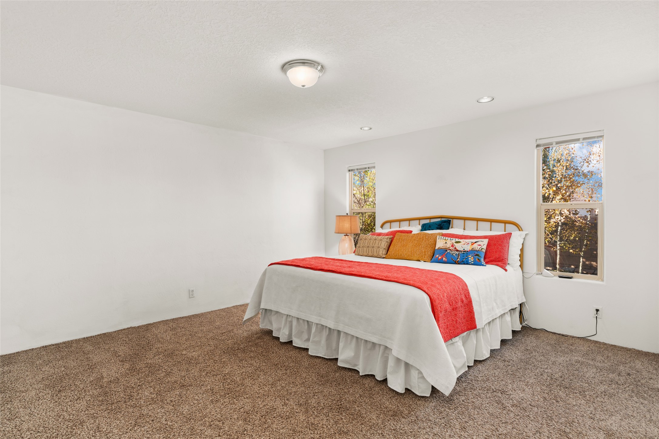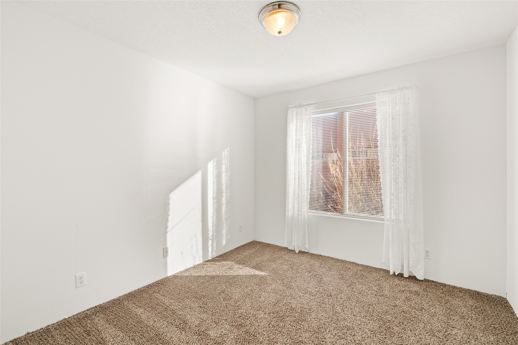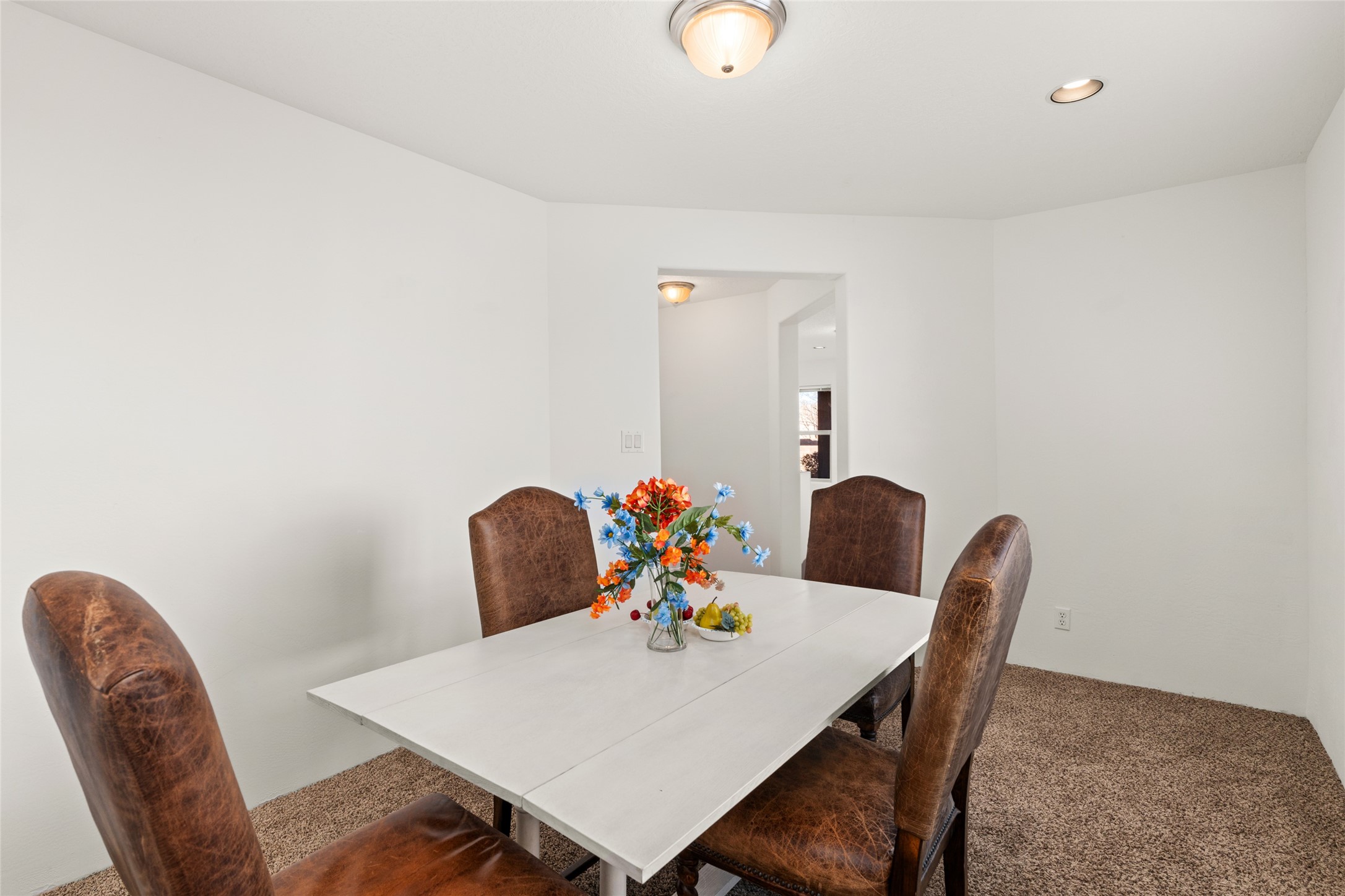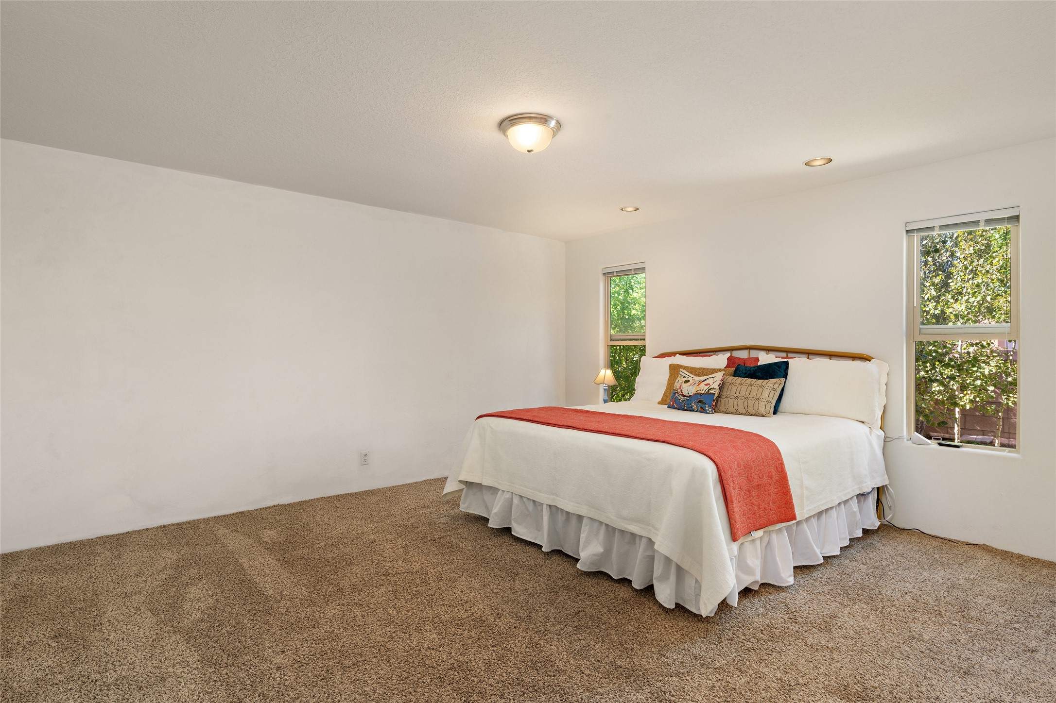 Best of Rancho Vieja! Single-level 3 Bedroom/ 2 Bath Home with Formal Dining or Study, and 2 car garage. This Pecos floor plan home is situated across from a small park which creates green open space! Well designed for quality living with natural light. Great room with a gas fireplace, opens to the Kitchen. Patio doors access from kitchen to the private and spacious north courtyard boasting a covered portal, view of the park, and plenty of area within the landscaped courtyard for gardening or a pet to enjoy. Kitchen has Stainless appliances, a large, double-door pantry, and tile counter tops. At present the fourth Bedroom or office is set up beautifully as a formal dining room. The Primary Bedroom is separate and large enough for a sitting area! A garden style bath that includes a soaking tub with shower, walk-in closet, double sinks & compartmented water closet. The two spacious secondary Bedrooms are both adjacent to a good size full Bath. The Laundry Room is adjacent to the 2-car Garage, which has finished walls. In-floor radiant heat as well as an evaporative cooler. The landscaping and the irrigation system were recently upgraded by the Owner to create a pleasant oasis to relax, and to enjoy. A great property and floor plan to entertain in, both inside or out. Rancho Viejo is a Master-Planned community with miles of trails to venture out on bike or on foot plus there are several parks to enjoy! E-Z access to the Community College, and schools. Presbyterian Hospital, Santa Fe Place Mall and 1-25 are just minutes away. A great place to call home!