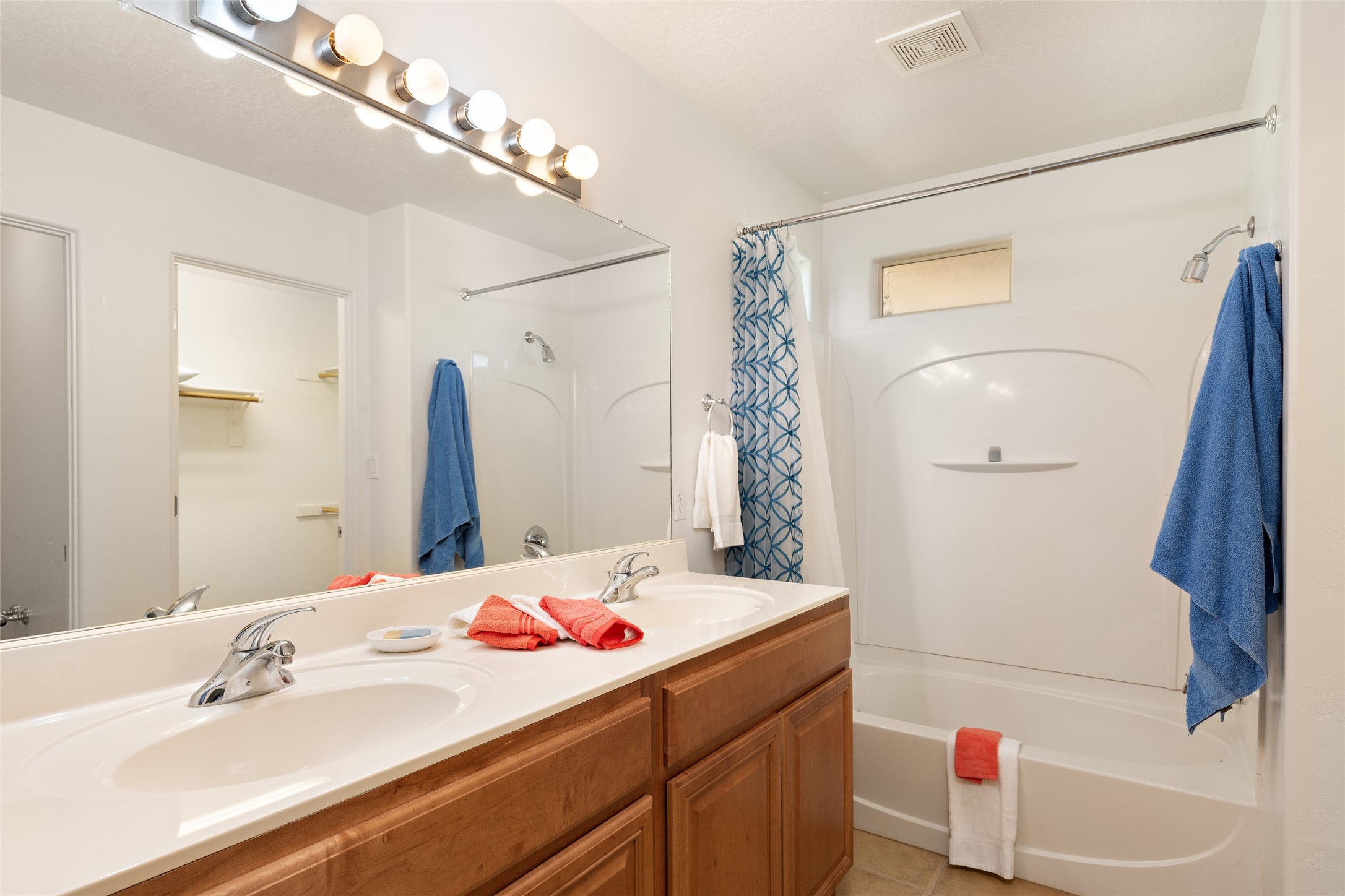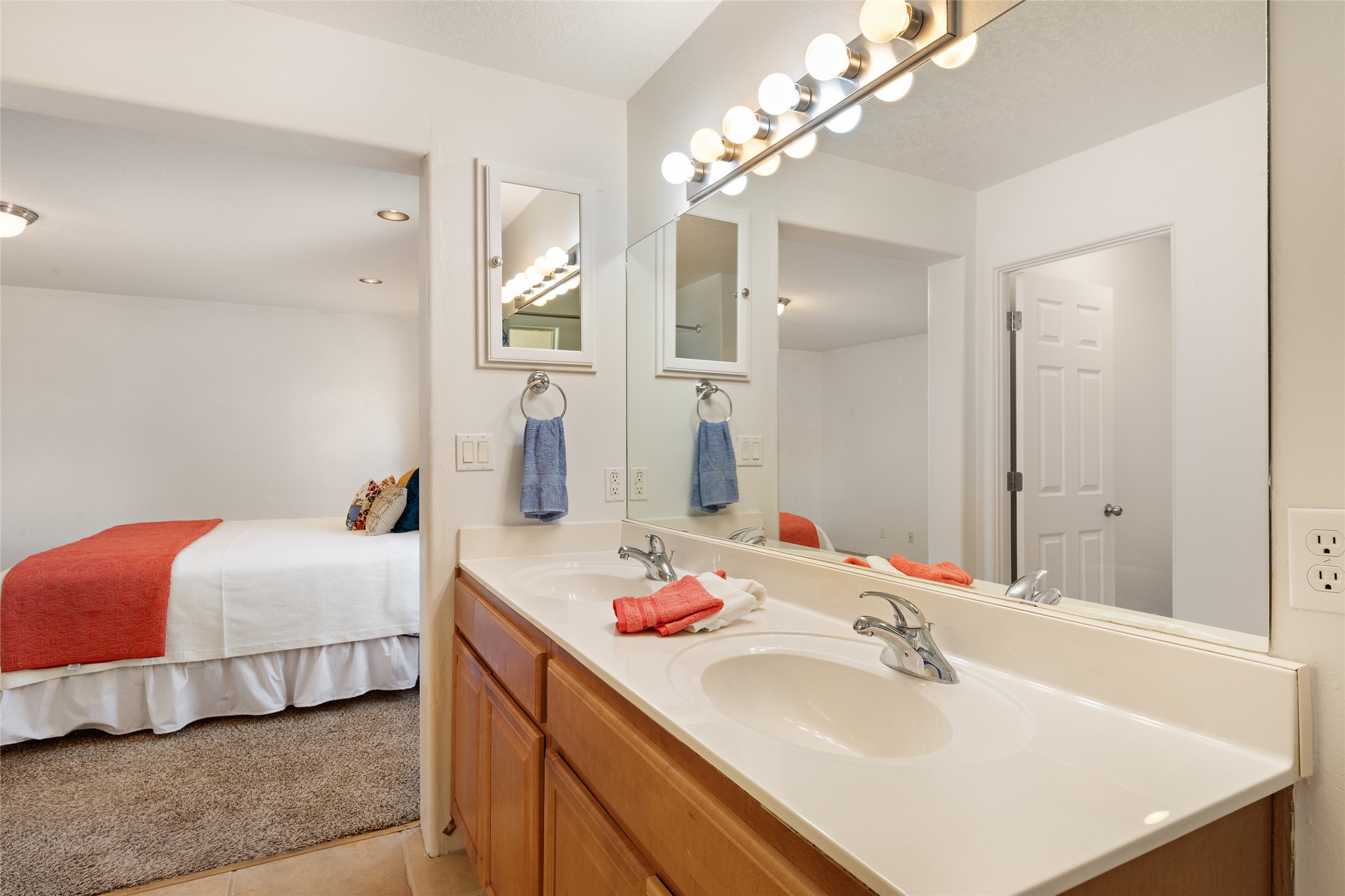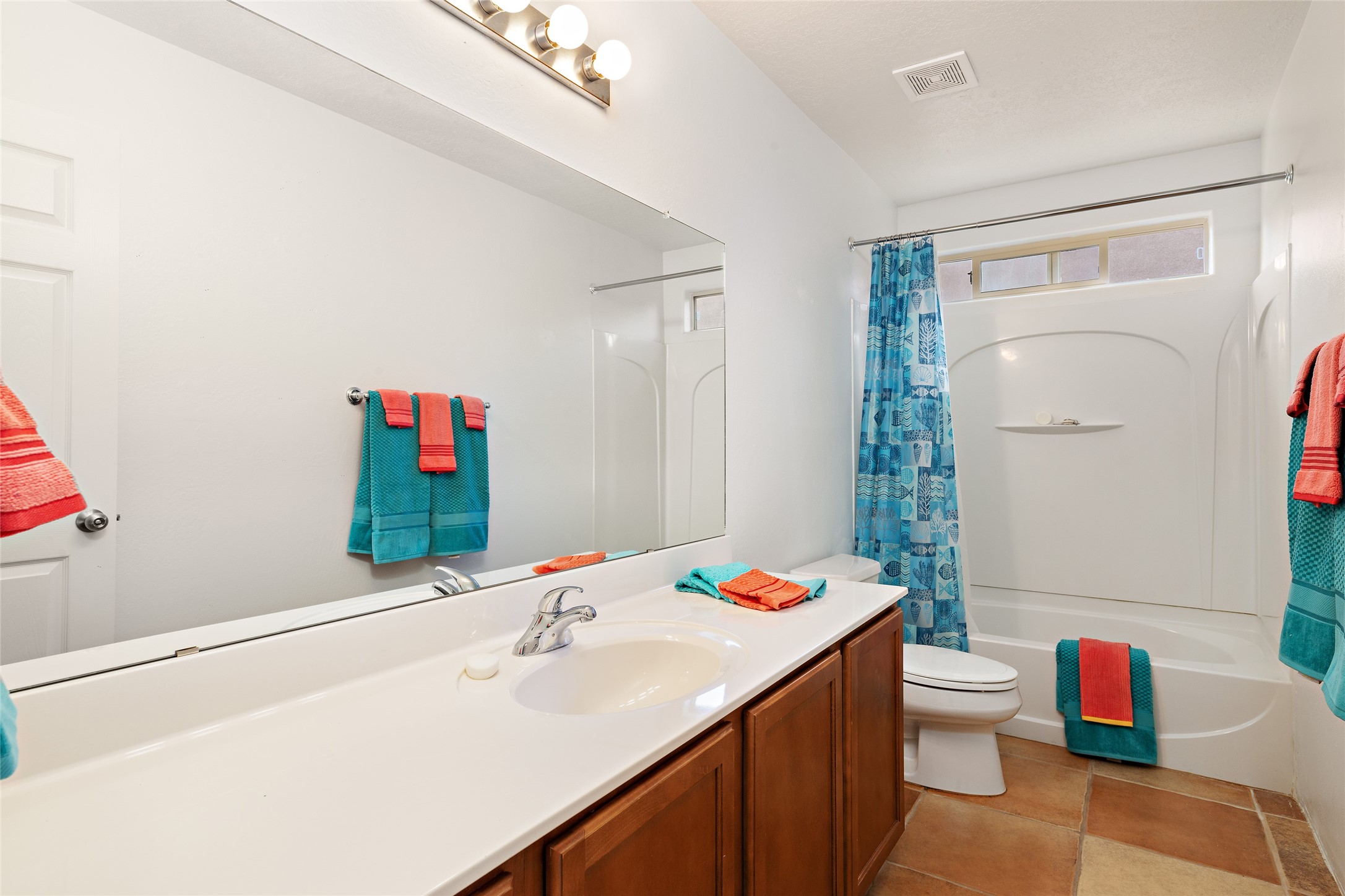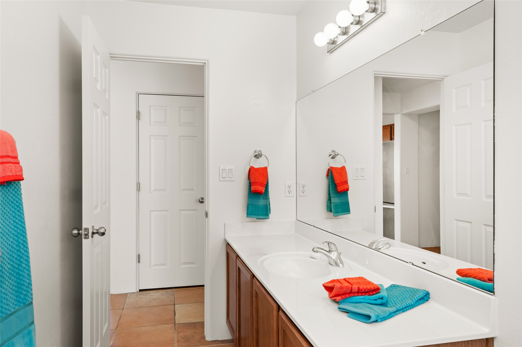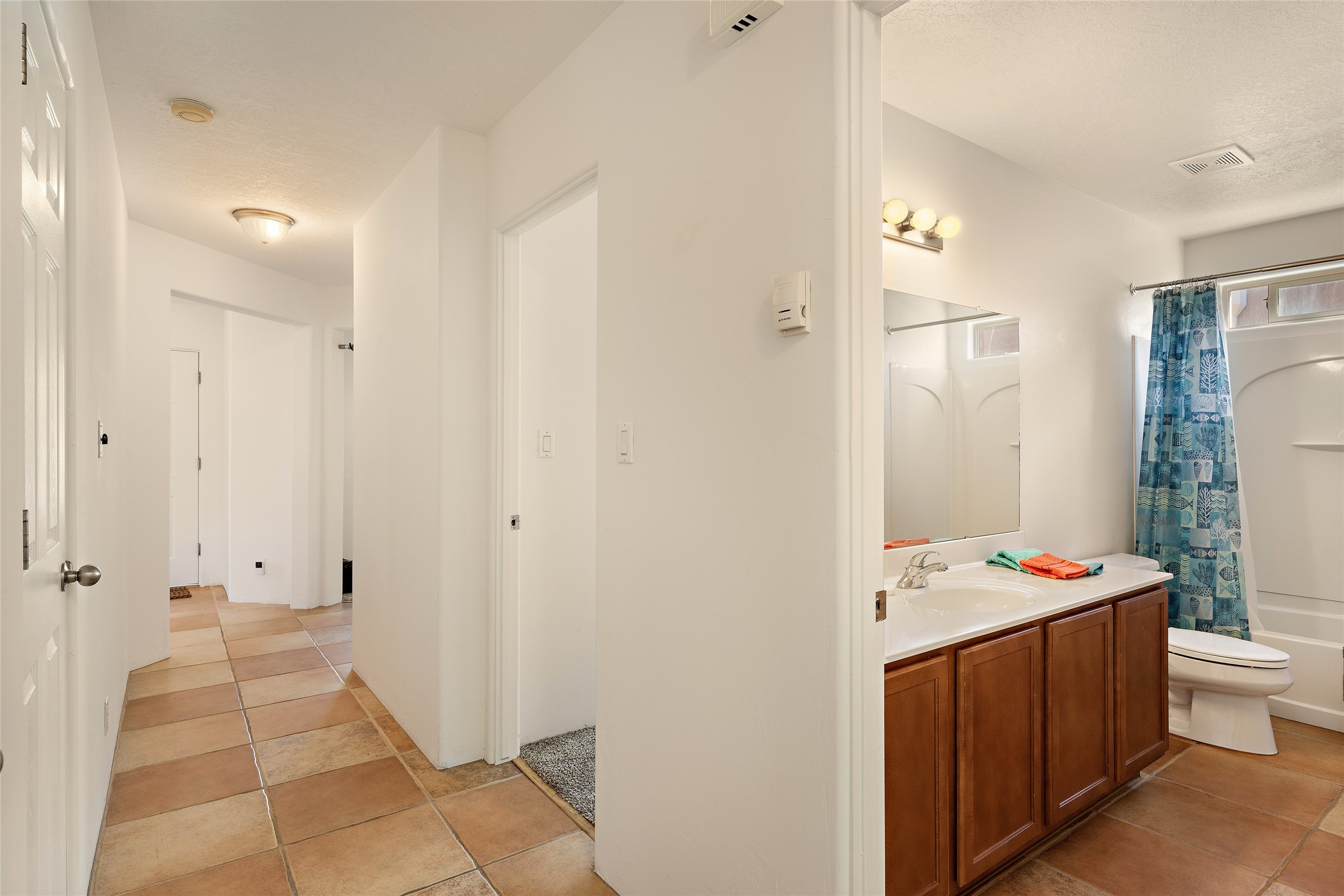 Best of Rancho Vieja! Single-level 3 Bedroom/ 2 Bath Home with Formal Dining or Study, and 2 car garage. This Pecos floor plan home is situated across from a small park which creates green open space! Well designed for quality living with natural light. Great room with a gas fireplace, opens to the Kitchen. Patio doors access from kitchen to the private and spacious north courtyard boasting a covered portal, view of the park, and plenty of area within the landscaped courtyard for gardening or a pet to enjoy. Kitchen has Stainless appliances, a large, double-door pantry, and tile counter tops. At present the fourth Bedroom or office is set up beautifully as a formal dining room. The Primary Bedroom is separate and large enough for a sitting area! A garden style bath that includes a soaking tub with shower, walk-in closet, double sinks & compartmented water closet. The two spacious secondary Bedrooms are both adjacent to a good size full Bath. The Laundry Room is adjacent to the 2-car Garage, which has finished walls. In-floor radiant heat as well as an evaporative cooler. The landscaping and the irrigation system were recently upgraded by the Owner to create a pleasant oasis to relax, and to enjoy. A great property and floor plan to entertain in, both inside or out. Rancho Viejo is a Master-Planned community with miles of trails to venture out on bike or on foot plus there are several parks to enjoy! E-Z access to the Community College, and schools. Presbyterian Hospital, Santa Fe Place Mall and 1-25 are just minutes away. A great place to call home!