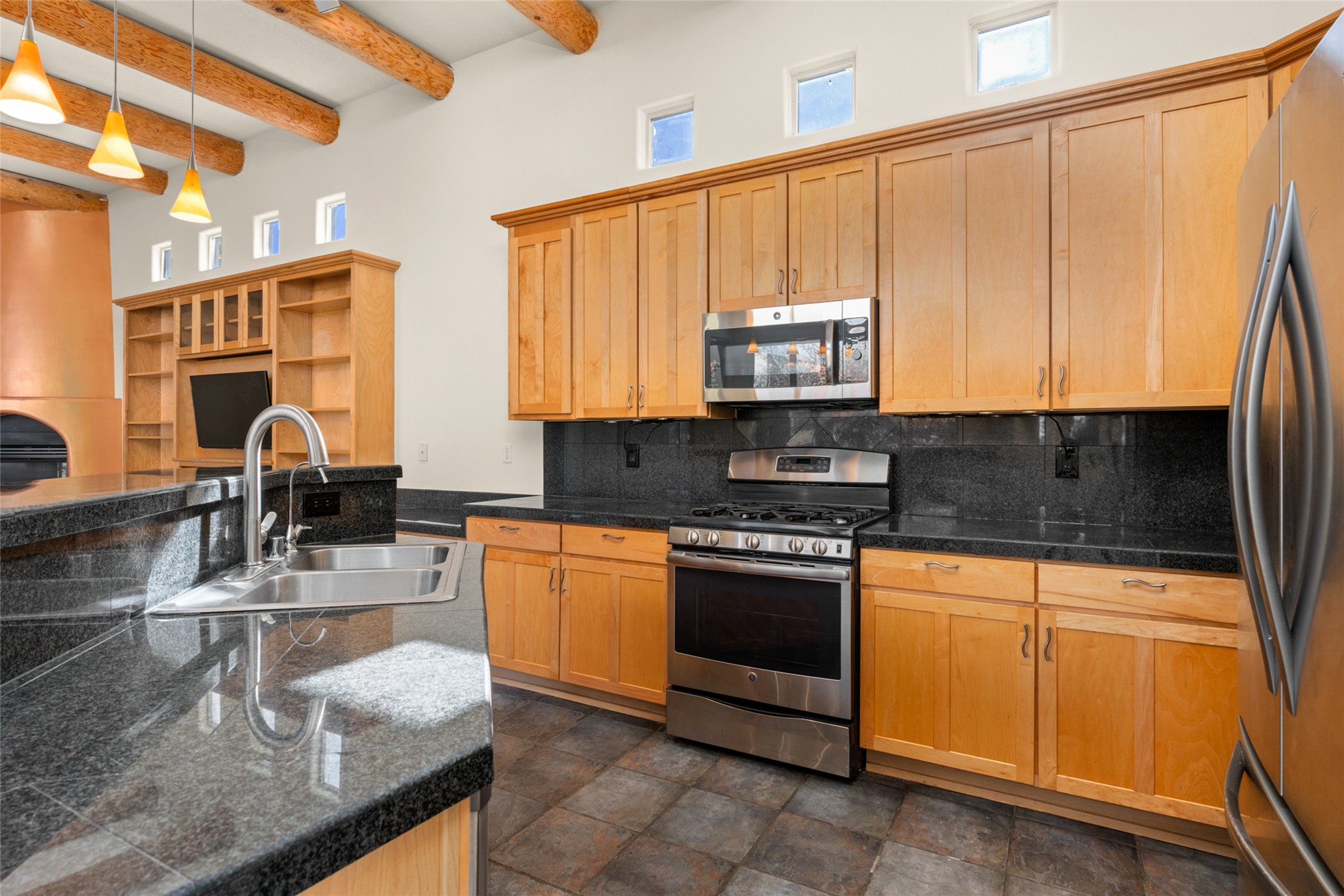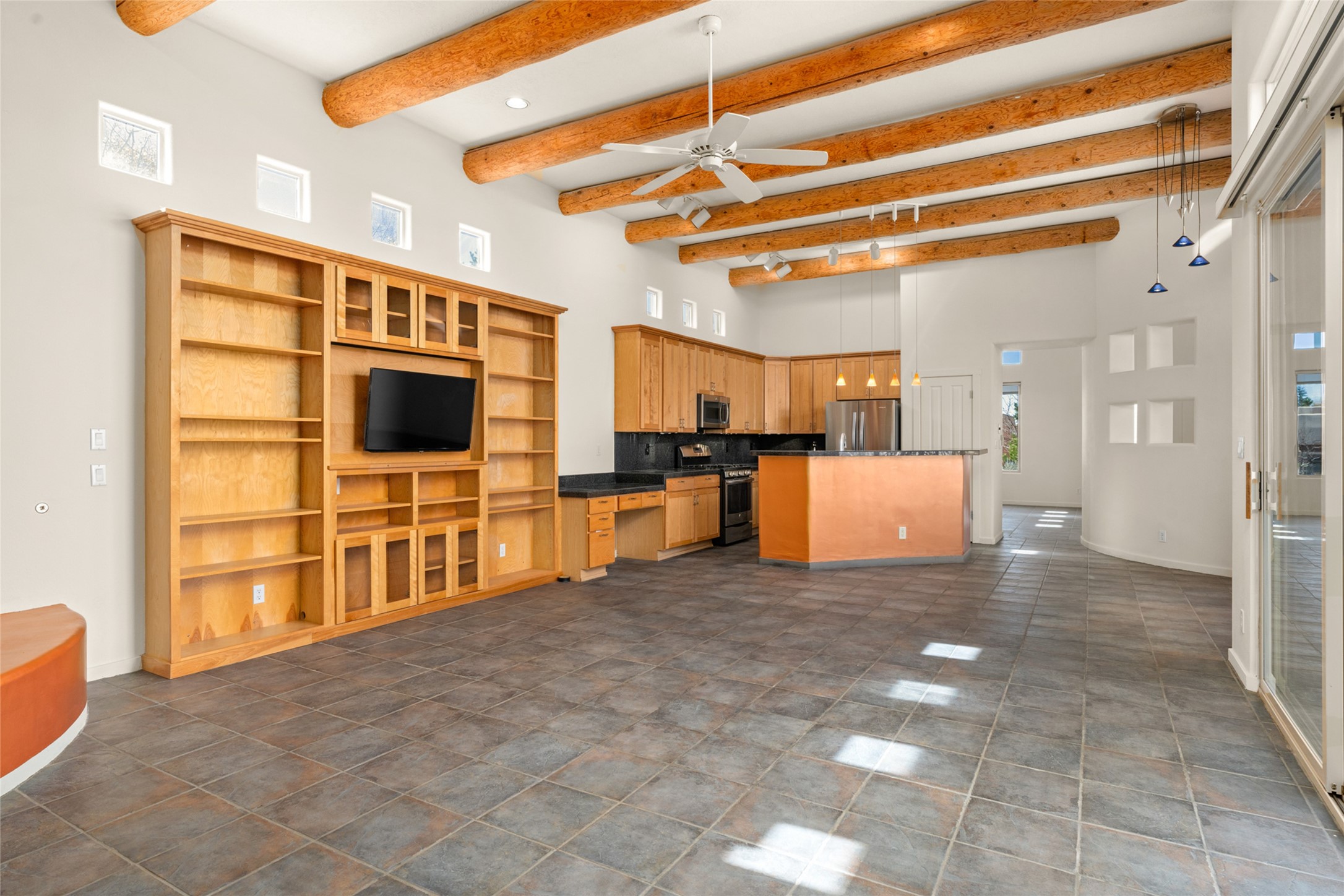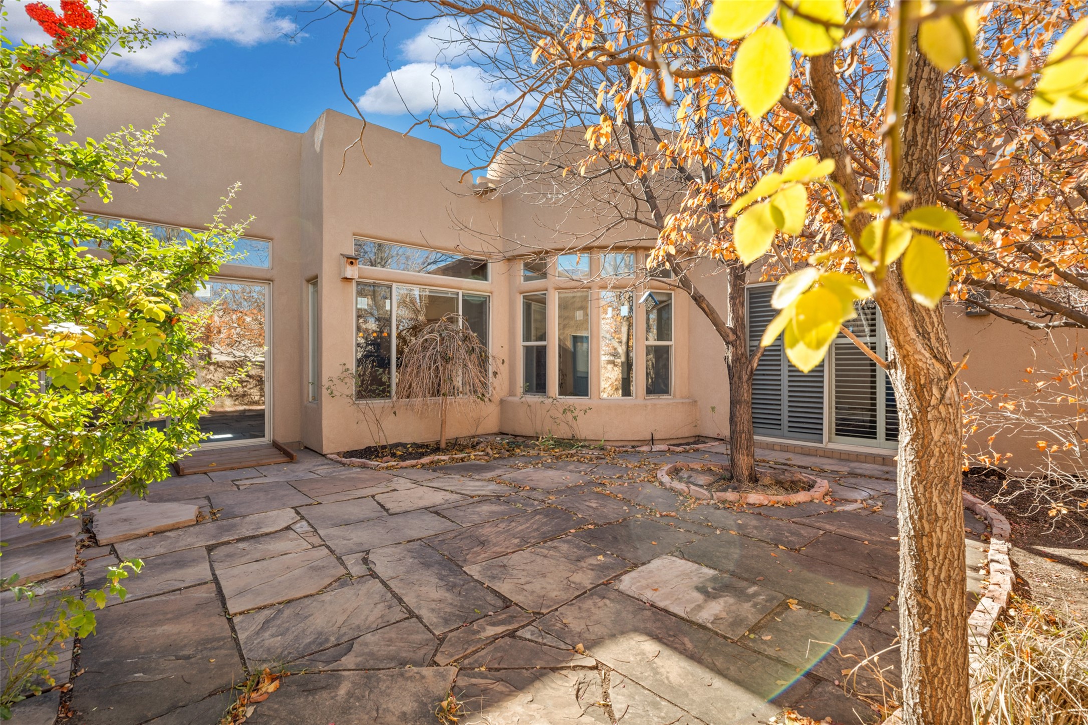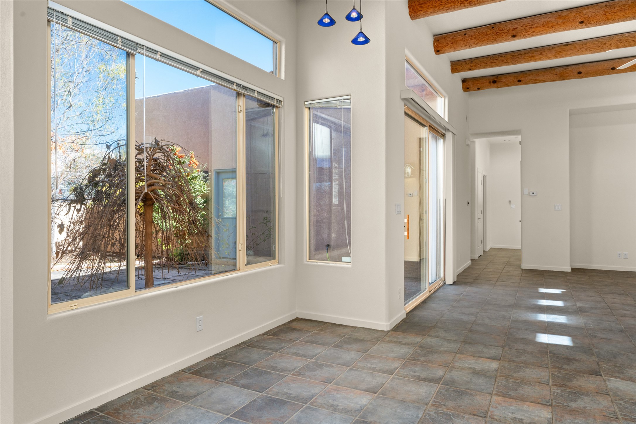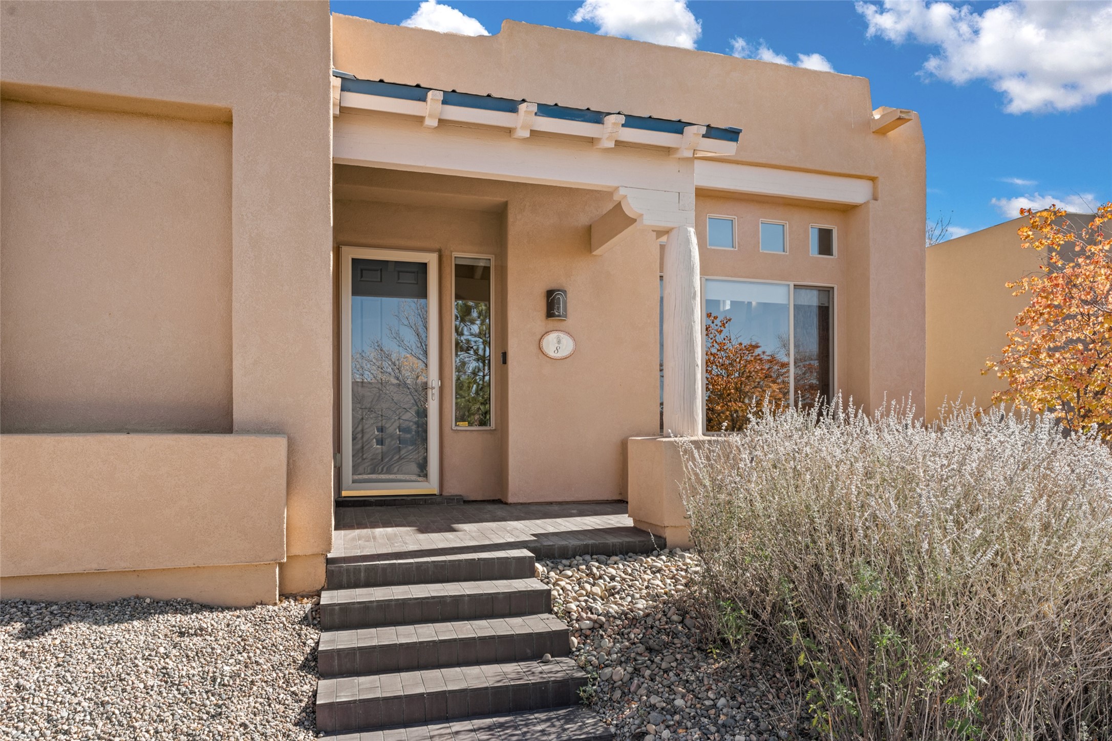 Set on a corner lot with its twin benefits of extra light and land, this bright, beautiful Luminaria model is a cut above. Custom-built wood display shelves, slate-look tiles and a new coat of creamy paint throughout create a feeling of refinement. The dazzling new steam shower and colorful, contemporary lighting speak to the seller's whimsical, artistic eye. Carpet in the two back bedrooms--the only rooms without hard-surface flooring--is brand new. A subtle ramp to the side courtyard and walk-in shower make this single-level home a bit more welcome for aging in place. Located in much-prized Windmill Ridge, this lovely home is an elegant treasure close to Rancho Viejo's many parks and walking trails.
