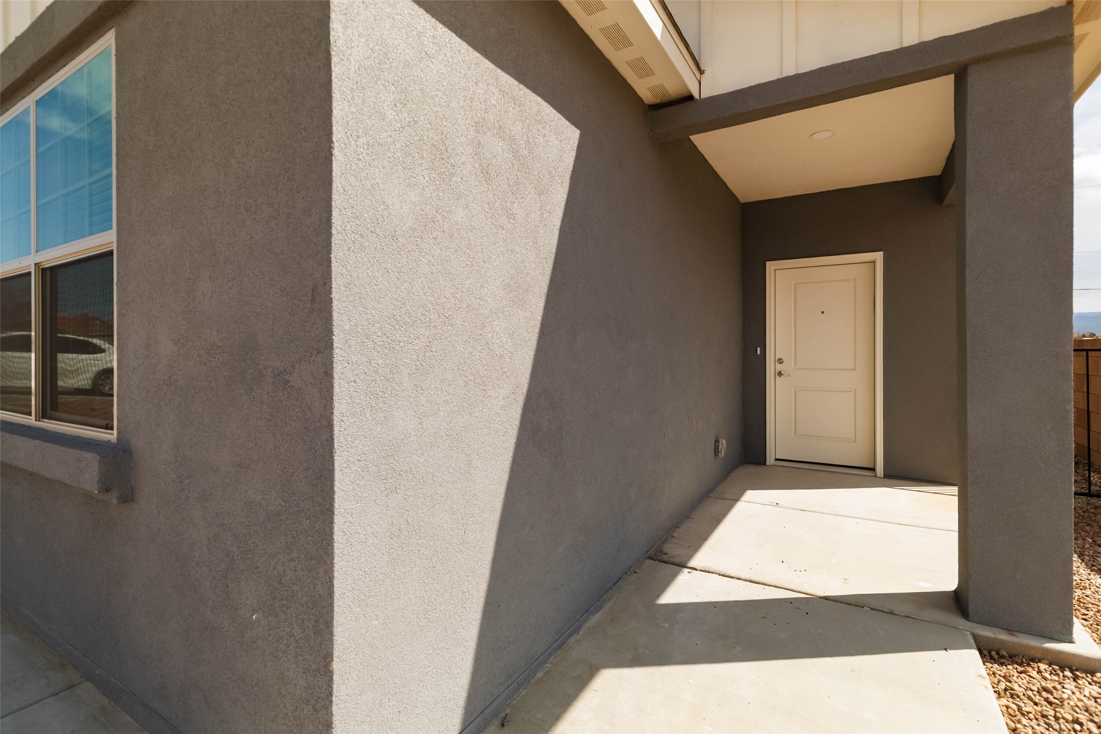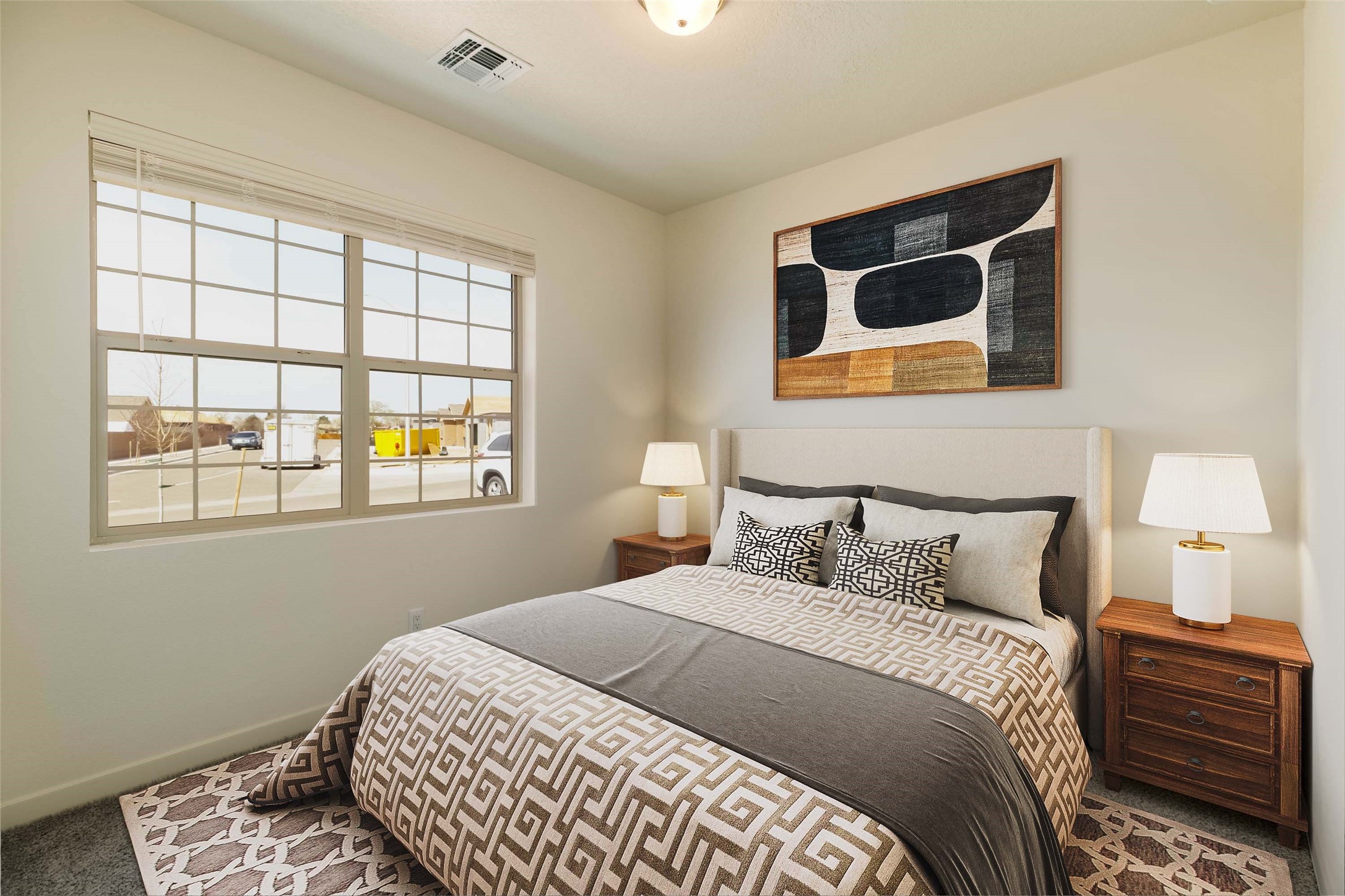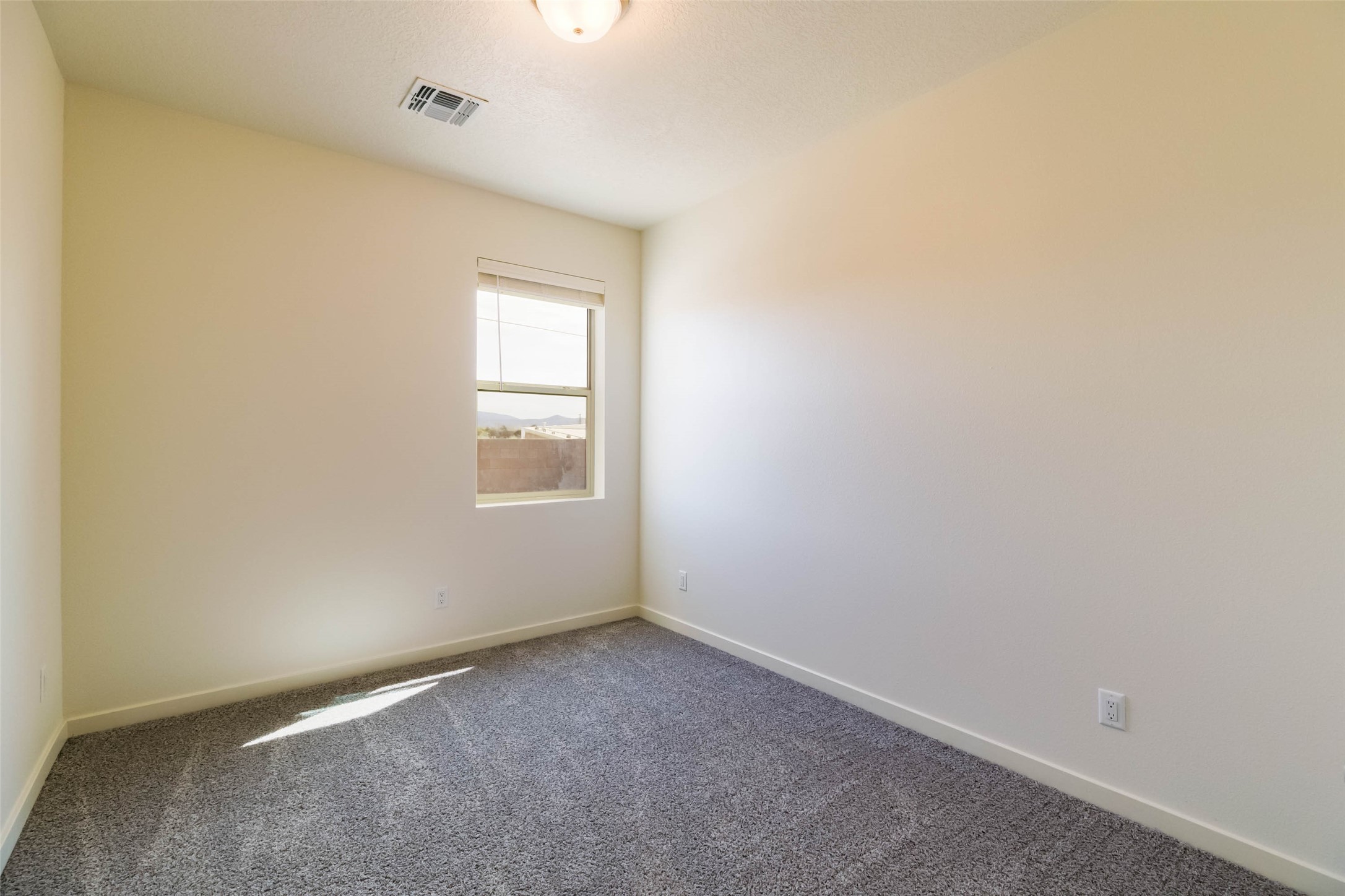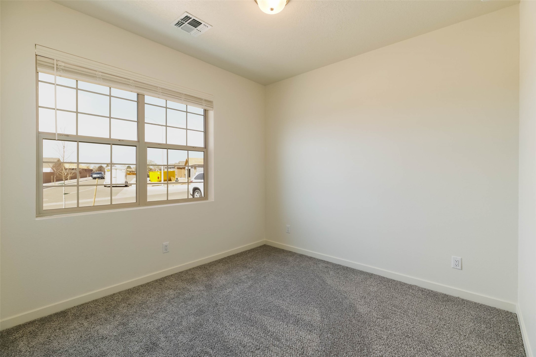 Great new home ready for the holidays in the new community of Geo Park. Really special floorplan features 3 bedrooms 2 baths + 2 car garage. Separate utility room. Vaulted ceiling in Living/dining/kitchen area gives this compact home a lot of volume and airiness. 13" ceiling in vaulted area and 9' ceilings in bedrooms, baths, entry, utility room. Separate pantry and spacious island in kitchen which has slider glass doors accessing back patio. Solid granite counter tops in kitchen with backsplash. Elegant 2 panel doors throughout. Flat panel birch cabinets. Owner's suite has walk-in closet. Ceramic tile in kitchen, entry, laundry room, dining area, living area, and bathrooms. Energy effiicient - NM Build Green Gold Level. Low E-dual pane windows with cam locks. Programmable thermostat, full foam infiltration pkg, 95% energy efficient gas furnace, and more. Recessed LED disc lighting. Garage door opener. Home is warranted through 2-10 Limited 10-yr Warranty AND exclusive Builder 1-year warranty. Come visit our furnished model. See agent remarks for Buyer Incentives!!