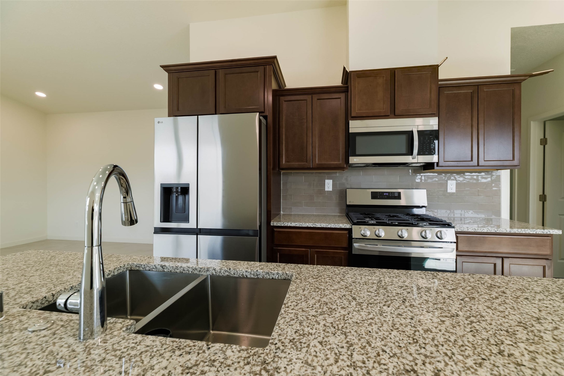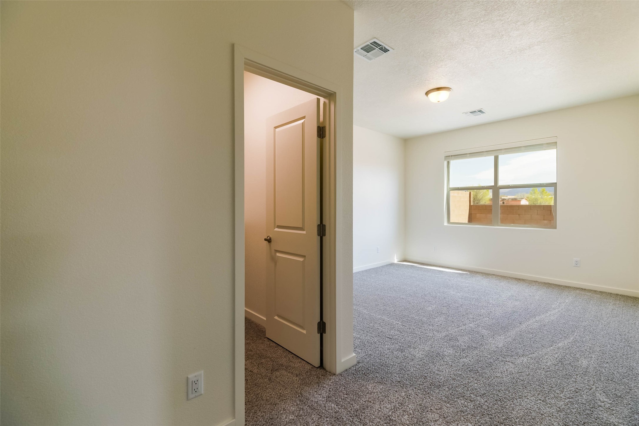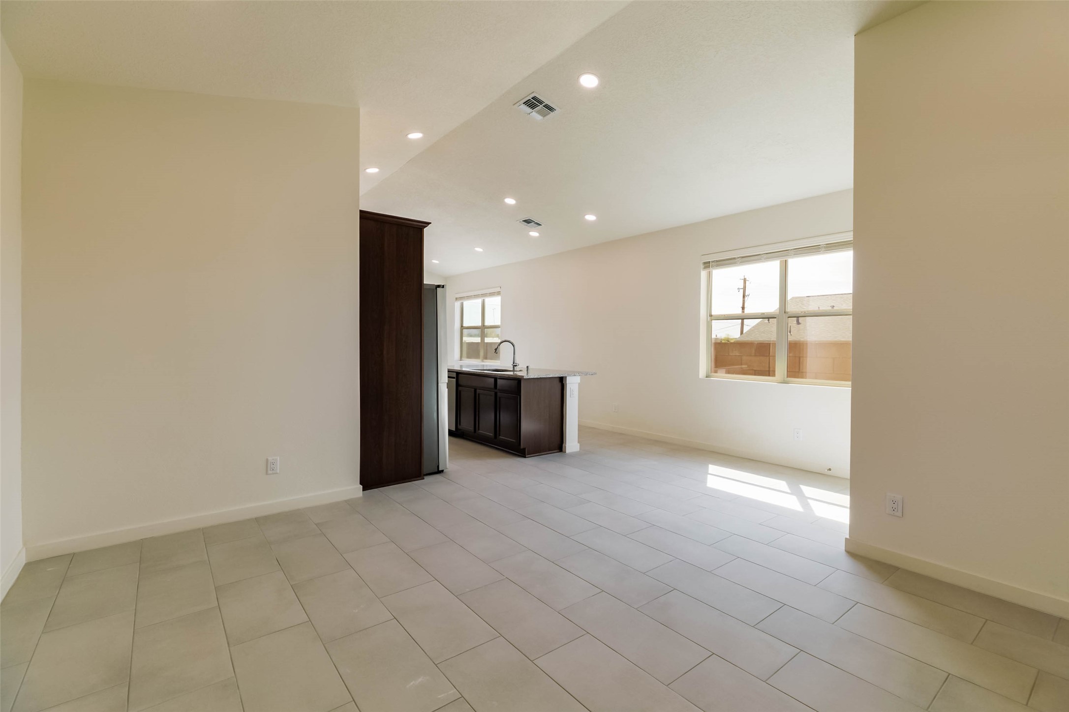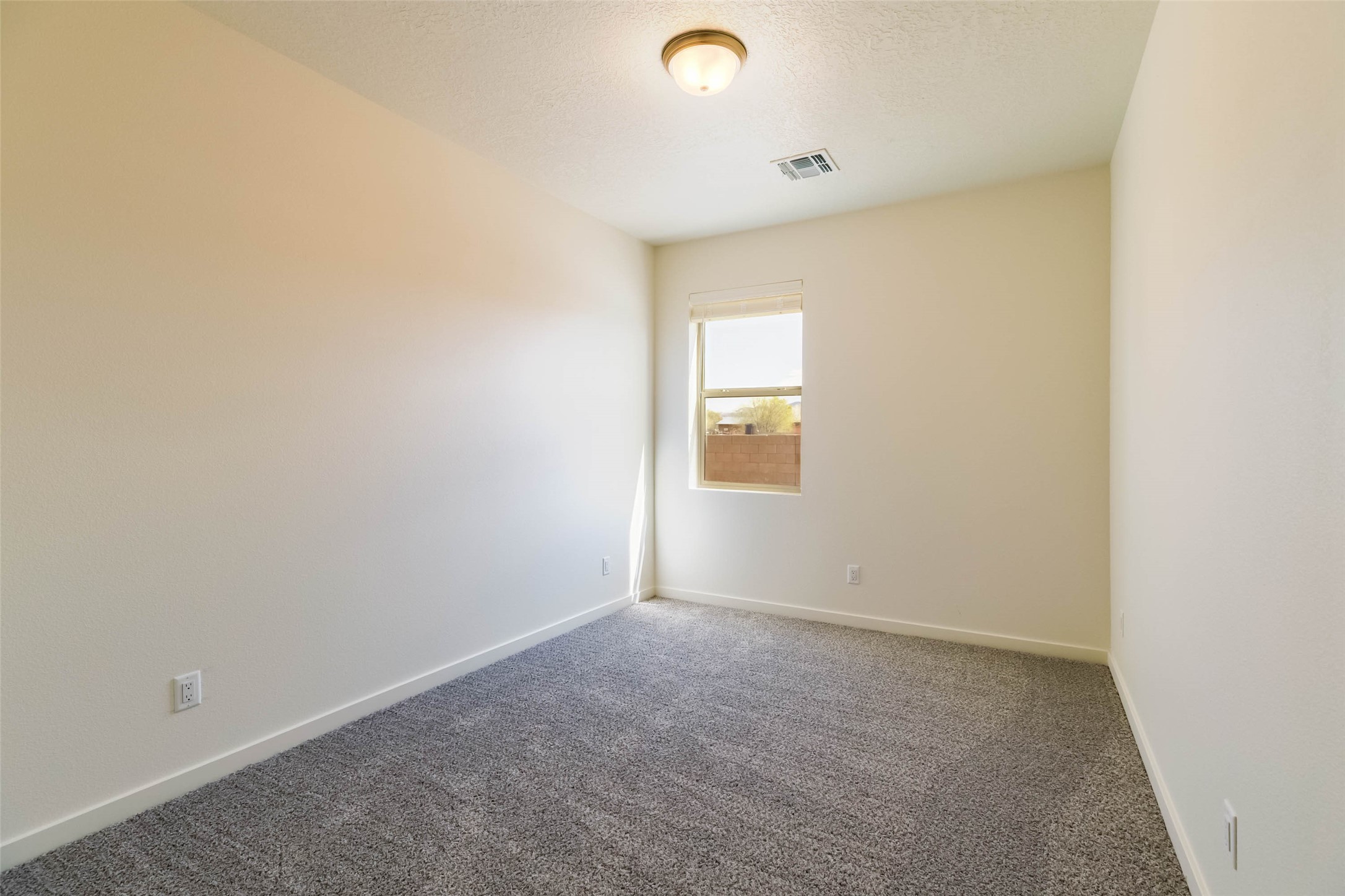 Great new home ready for the holidays in the new community of Geo Park. Really special floorplan features 3 bedrooms 2 baths + 2 car garage. Separate utility room. Vaulted ceiling in Living/dining/kitchen area gives this compact home a lot of volume and airiness. 13" ceiling in vaulted area and 9' ceilings in bedrooms, baths, entry, utility room. Separate pantry and spacious island in kitchen which has slider glass doors accessing back patio. Solid granite counter tops in kitchen with backsplash. Elegant 2 panel doors throughout. Flat panel birch cabinets. Owner's suite has walk-in closet. Ceramic tile in kitchen, entry, laundry room, dining area, living area, and bathrooms. Energy effiicient - NM Build Green Gold Level. Low E-dual pane windows with cam locks. Programmable thermostat, full foam infiltration pkg, 95% energy efficient gas furnace, and more. Recessed LED disc lighting. Garage door opener. Home is warranted through 2-10 Limited 10-yr Warranty AND exclusive Builder 1-year warranty. Come visit our furnished model. See agent remarks for Buyer Incentives!!