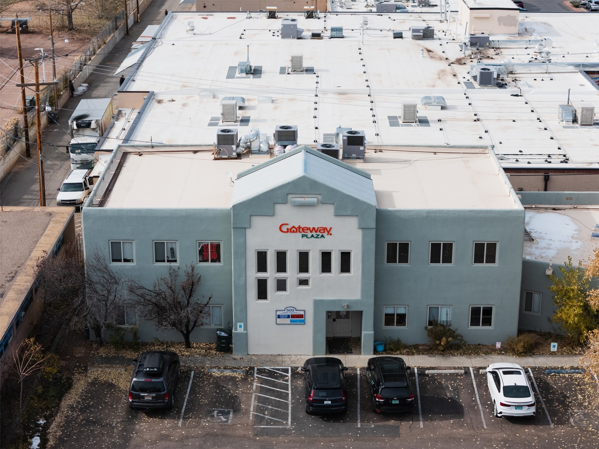 This freshly painted second-floor commercial space is perfect for office or retail use and is just minutes from downtown Santa Fe. The unit features five individual offices, a convenient storage closet, and a small kitchenette to meet your business needs. This space also has a private restroom for added convenience. Ideal for professionals or retailers seeking a prime location with a functional layout.