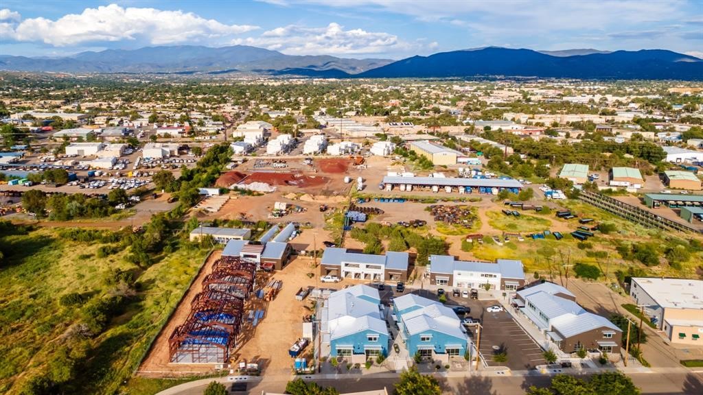 The Studios at Parkway Phase 2, currently under construction, is Santa Fe's newest commercial, industrial, and flex-use condominium development in the thriving Siler/Rufina Warehouse, Art & Innovation District.Designed with an industrial aesthetic, The Studios offer open, light-filled spaces with contemporary touches that create an inspiring environment for business. Each unit spans nearly 1,677 square feet, including 1,587 square feet of interior space ("walls in"), and features tall ceilings, large aluminum glass roll-up garage doors, expansive storefront windows, and finished concrete floors. Inside, you'll find LED lighting, handcrafted steel staircases with wood treads, and smooth drywall finishes. The ground floor encompasses 1,092 square feet, while the second story adds 584 square feet.These units are designed with flexibility in mind, with an option for Live-Work as an accessory to commercial use. Each unit has separately metered utilities, kitchen-ready hookups, a designated area for a shower, and thoughtfully landscaped grounds tailored for shipping and receiving. Zoned I-1, these state-of-the-art condominiums are suitable for a range of uses, from offices, galleries, and artist studios to warehouses, wellness businesses, and light industry. Additionally, the roof is prepared for solar PV installation, and the property is located in a Federal Opportunity Zone.